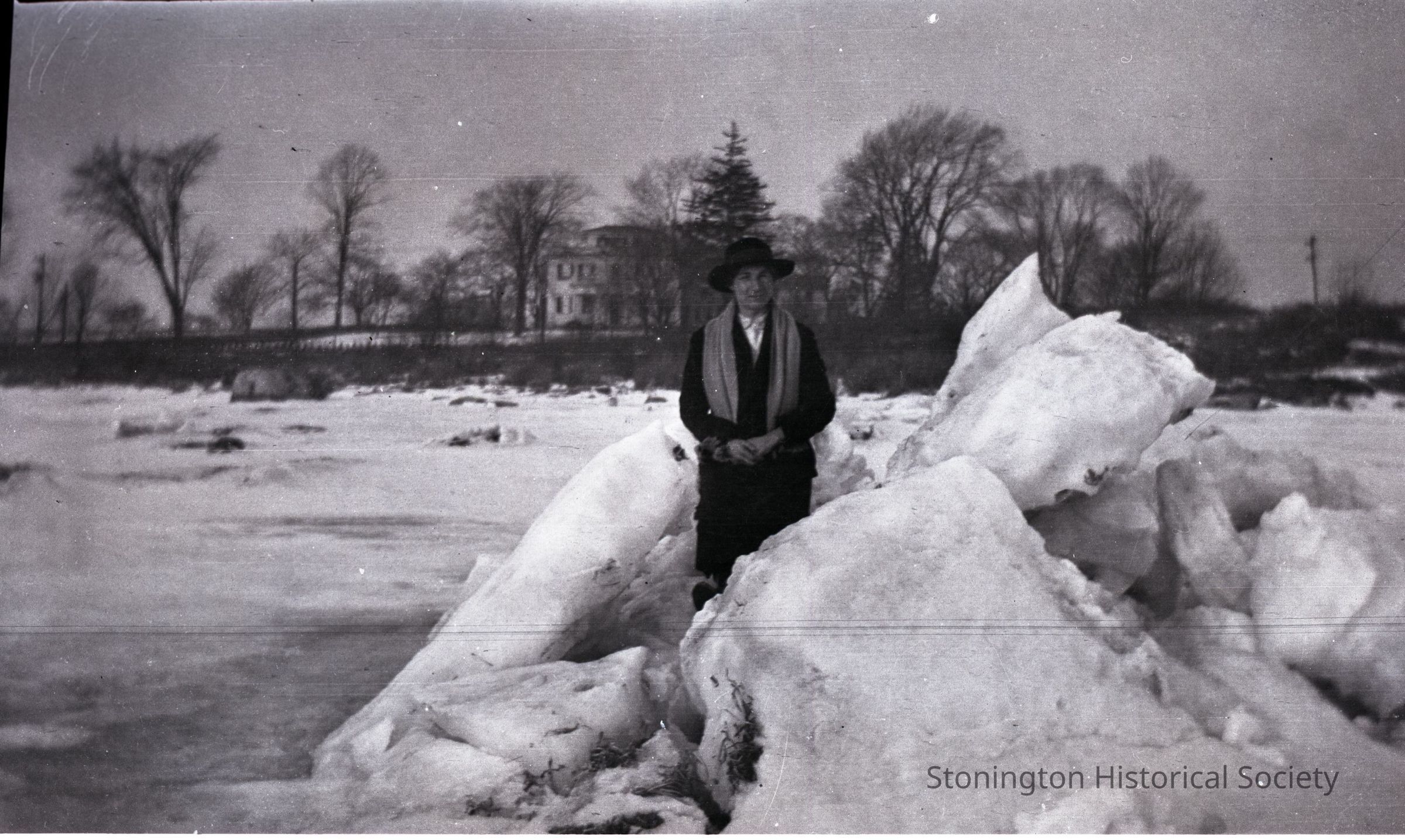 Woman on Quanaduck Cove with blocks of iceEntry/Object ID