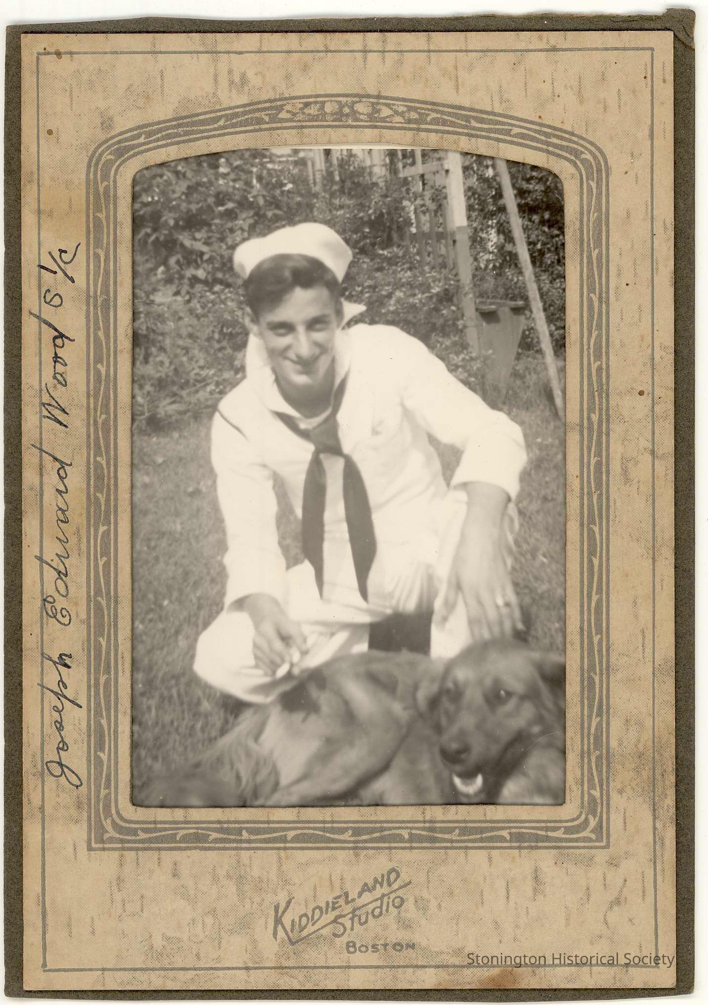 Photo of Joseph Edward Wood, Seaman 1st class. In cardboard frame
