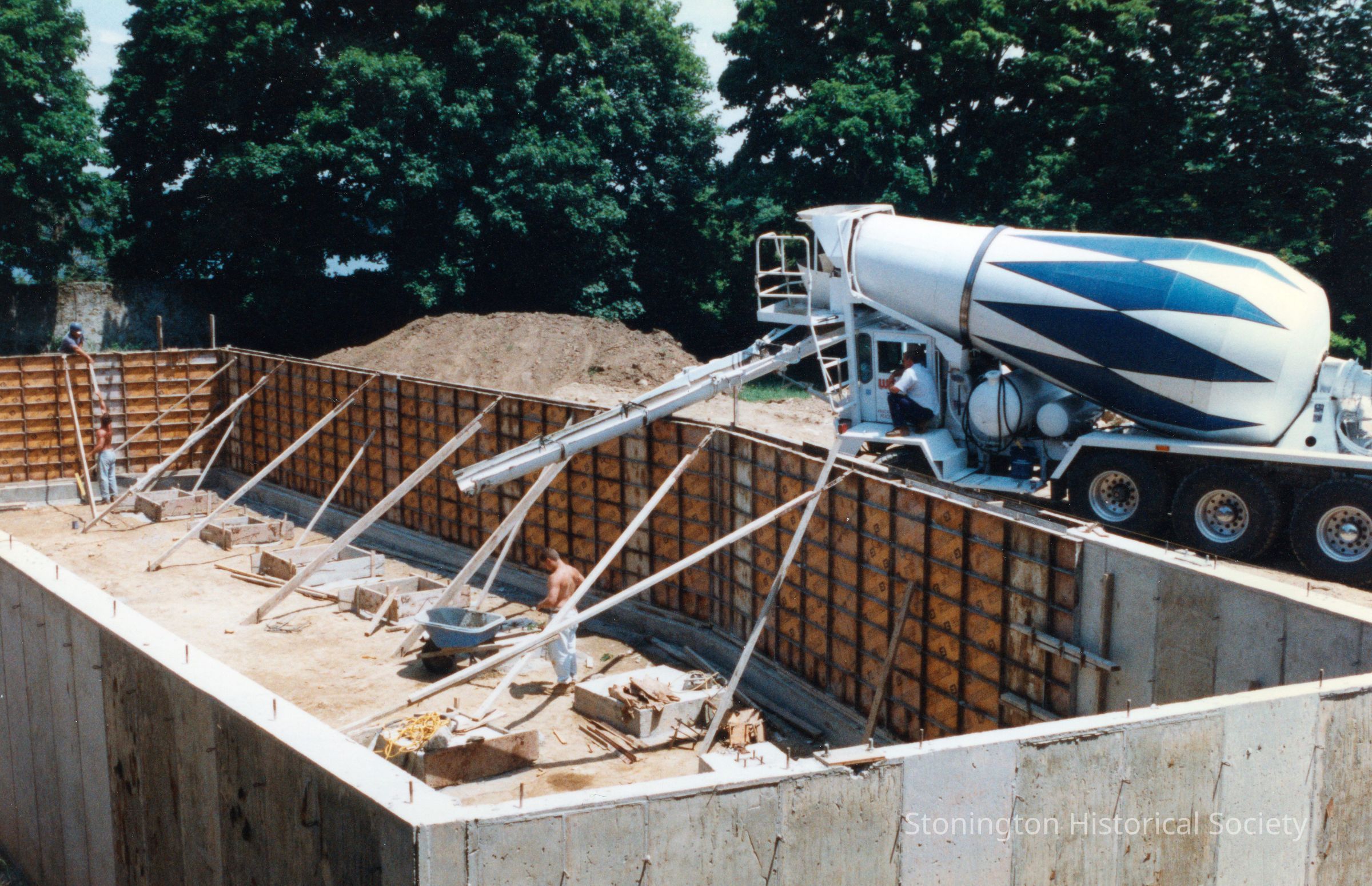 Construction of the Woolworth Library of the Stonington Historical Society next to the Palmer House.