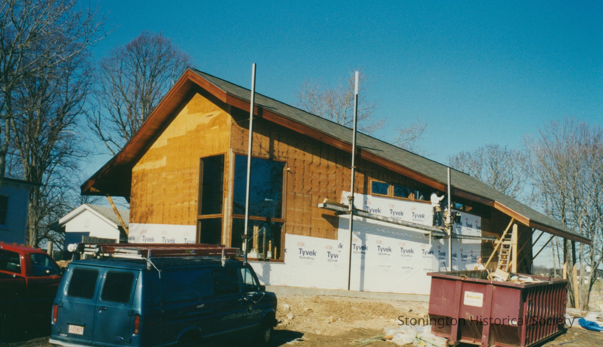 Construction of the Woolworth Library of the Stonington Historical Society next to the Palmer House.