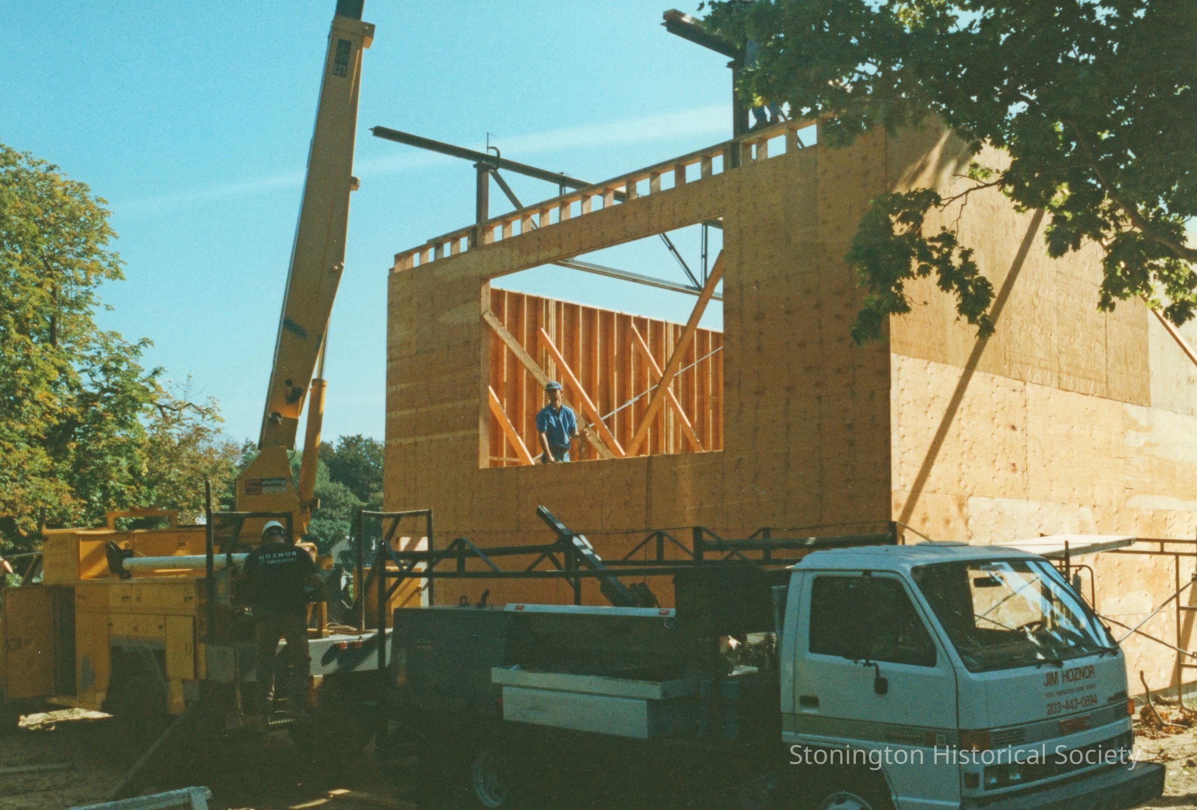 Construction of the Woolworth Library of the Stonington Historical Society next to the Palmer House.