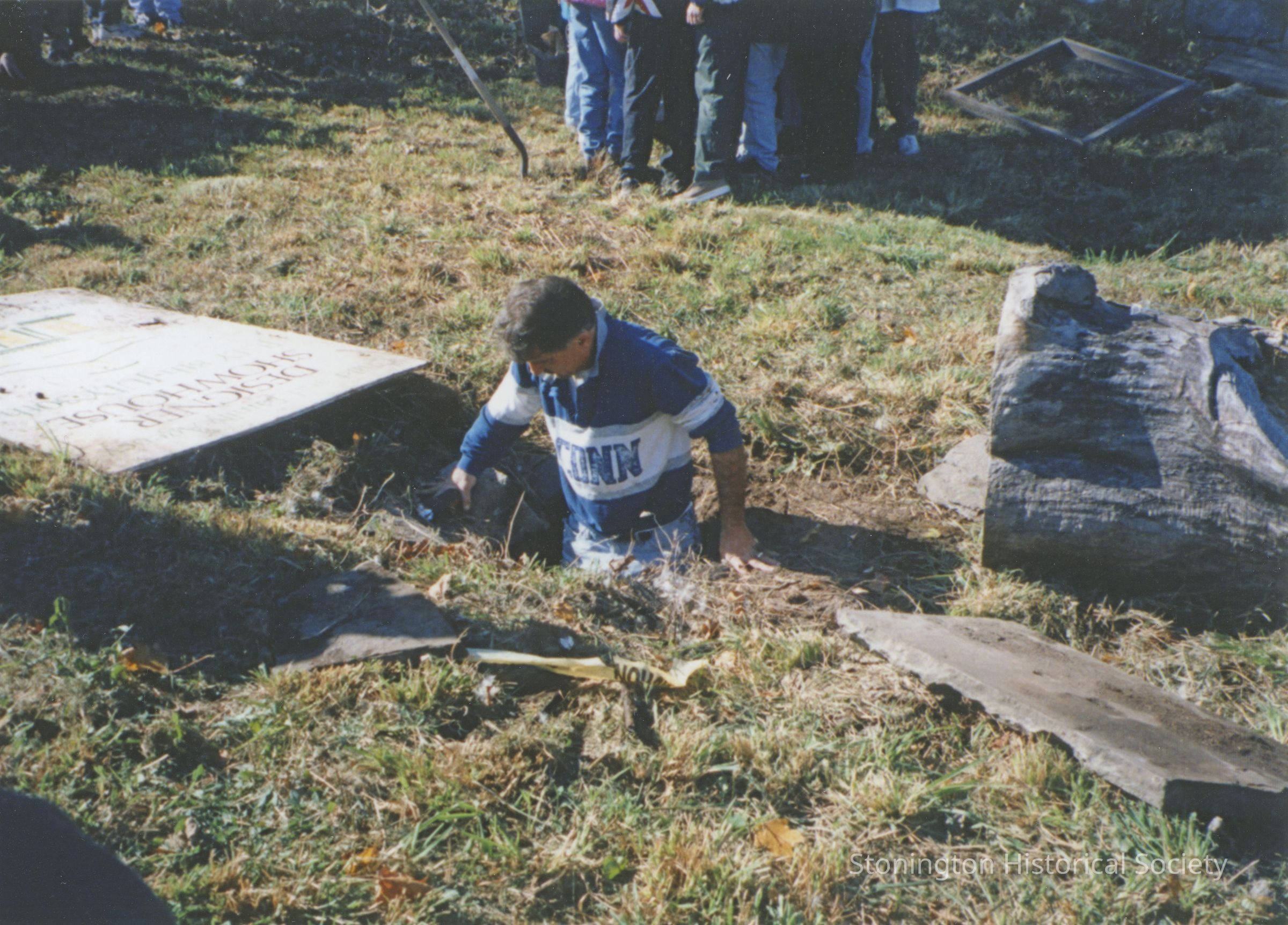 Library site before construction. Archaeological dig with Stonington schoolchildren and Nick Bellantoni, State Archaeologist. Schools participating were Dean's Mill, West Vine, West Broad, Pine Point and Pawcatuck Middle.Collection