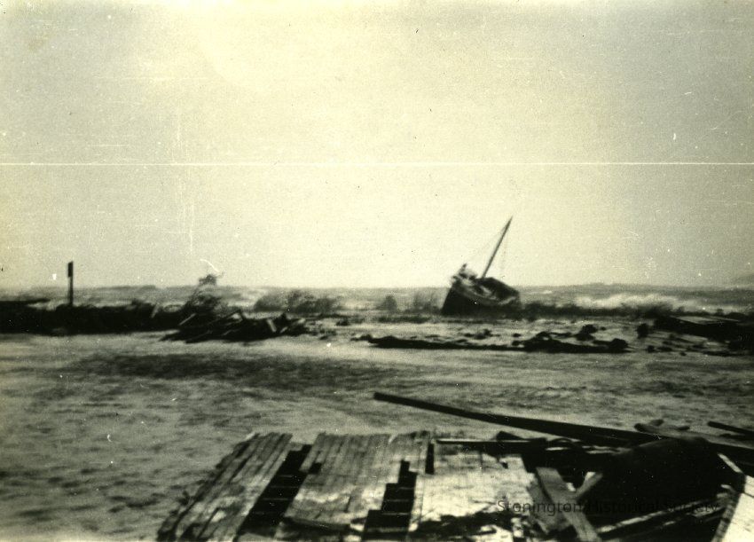 Wrecked fishing boats, possibly at end of Stonington Point on Little Narragansett Bay side