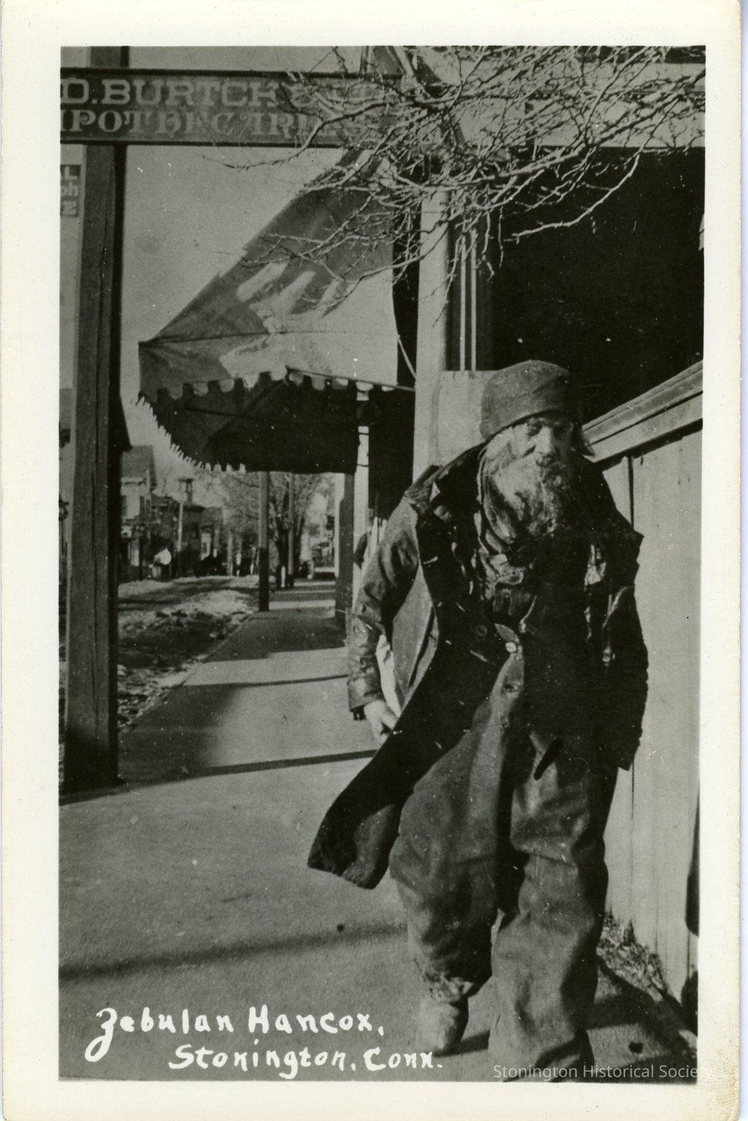 Zebulon Hancox outside of Burtch Apothecary on Water Street.