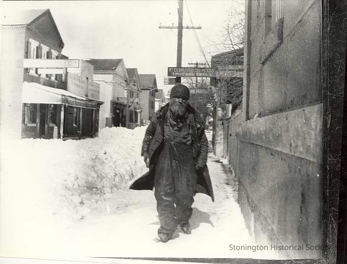 Zebulon Hancox before 1899 walking during winter