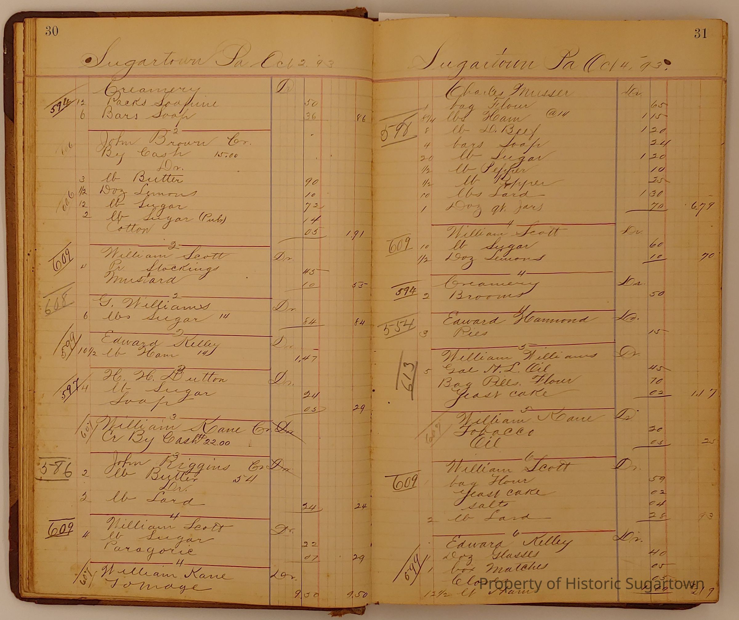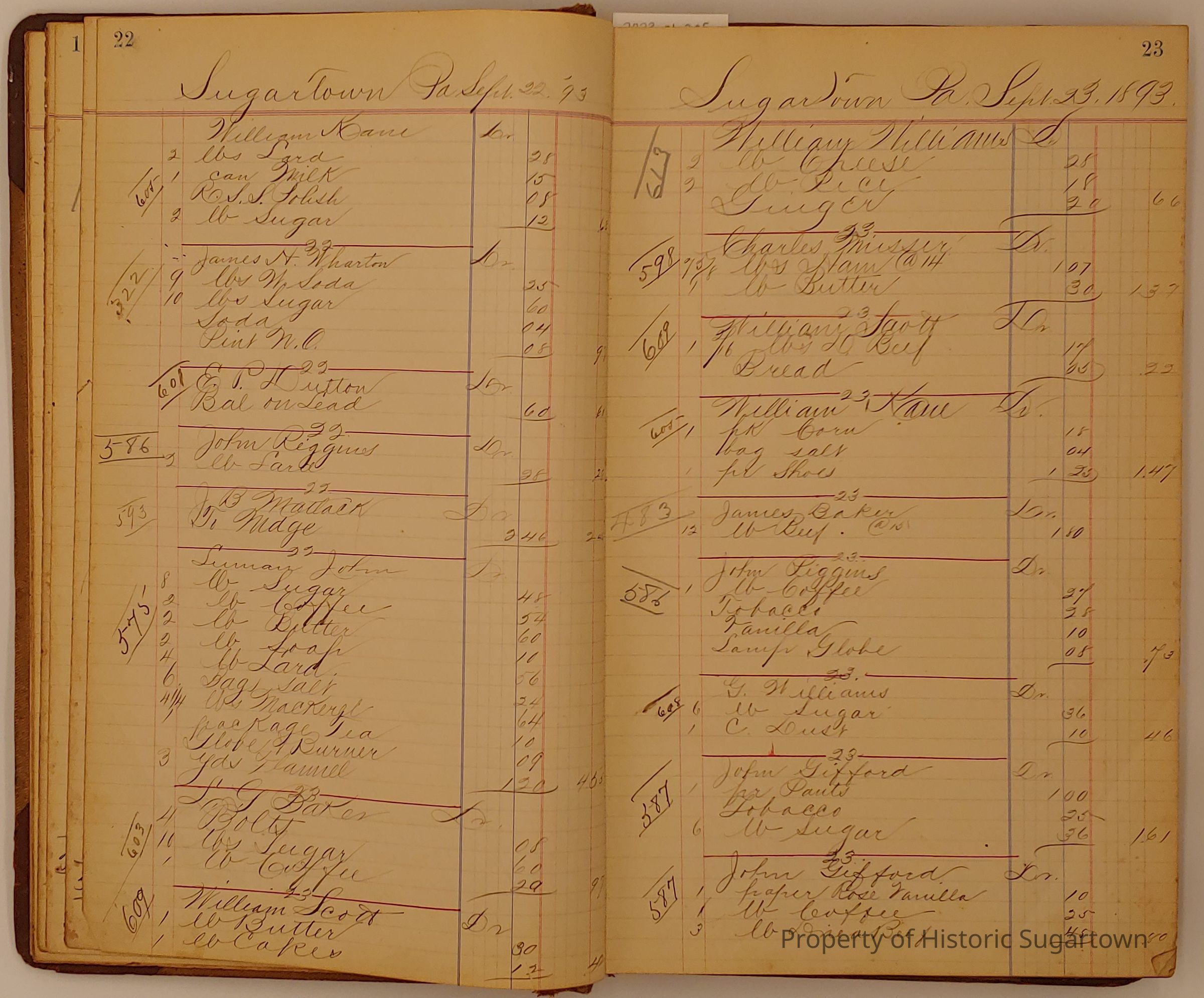 Hillery John Daybook 1893-1894 for General Store in Sugartown PA. Details sales records for general store, customers include local names that populate this archive.Collection