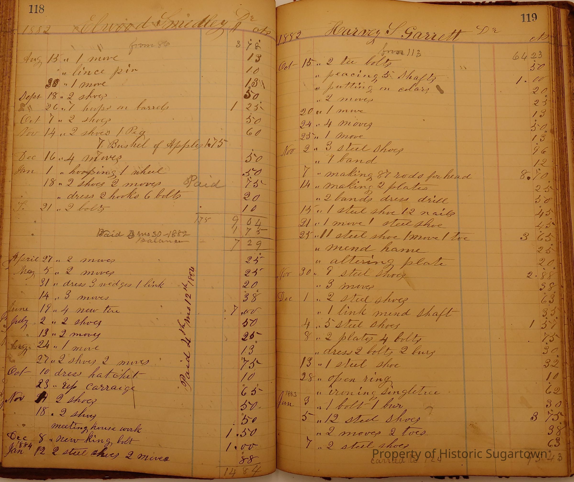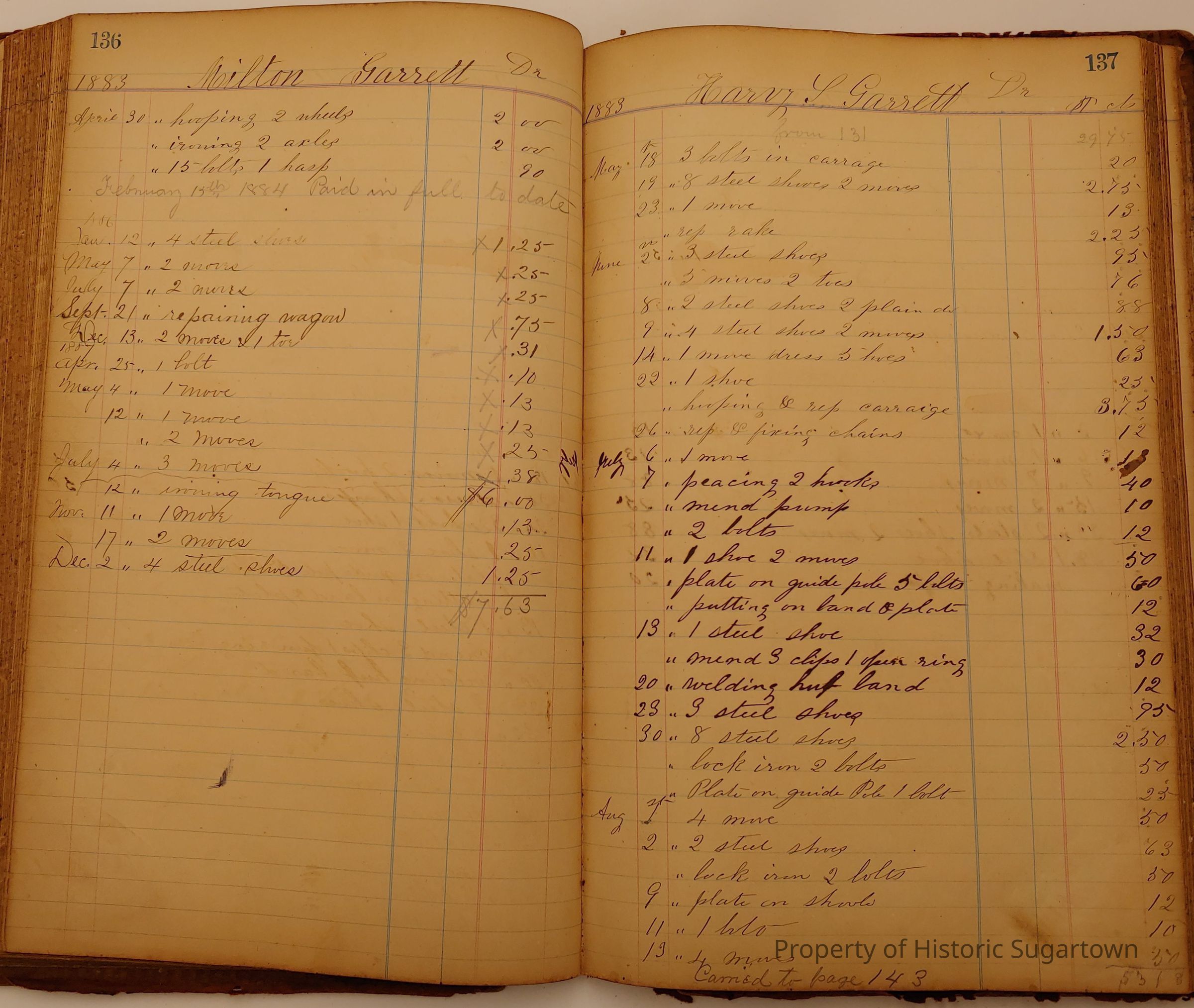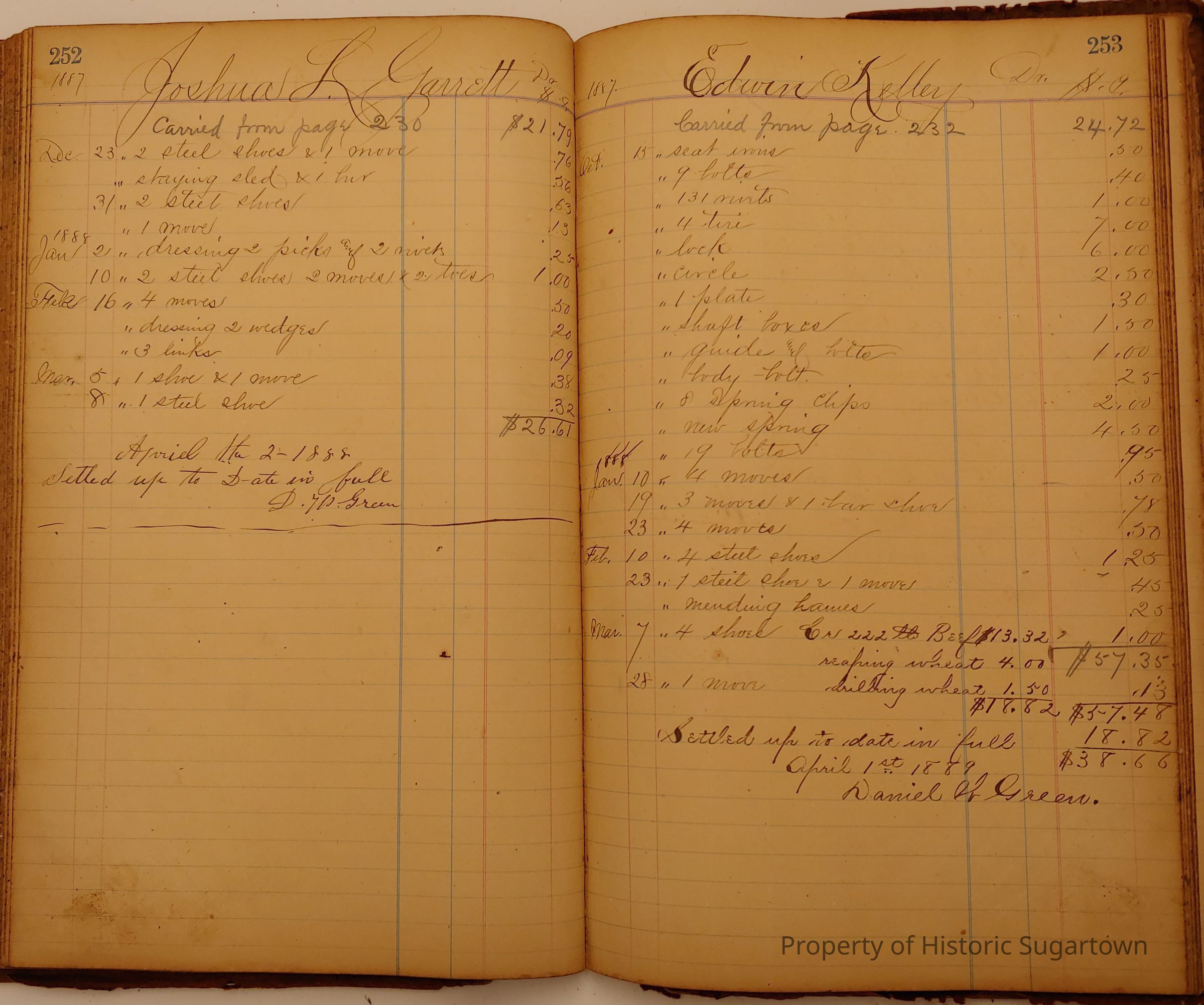 Local Blacksmith Daniel Green’s daybook and/or ledgers. This collection contains two daybooks with daily entries from 1864 to 1887. The daybooks in this collection contain many local and familiar names that populate this archive, including the Garrett family.Context