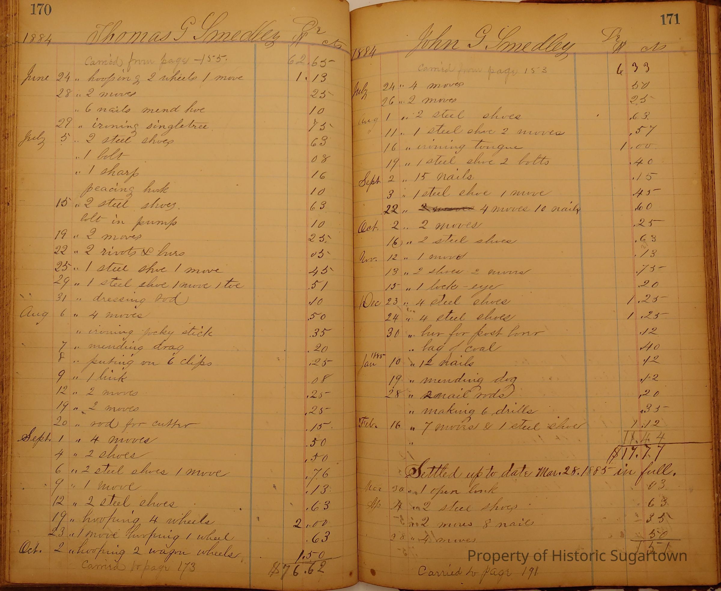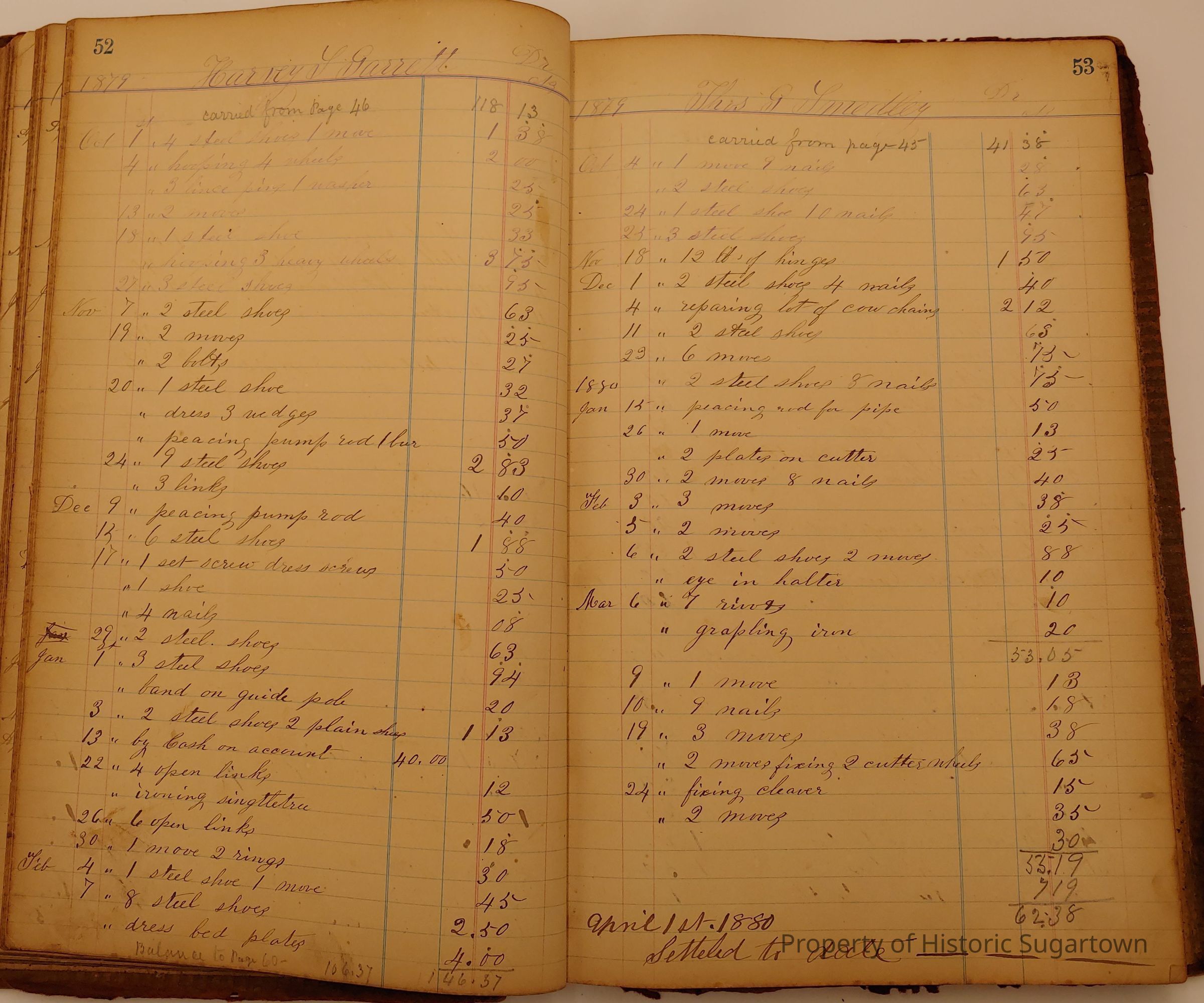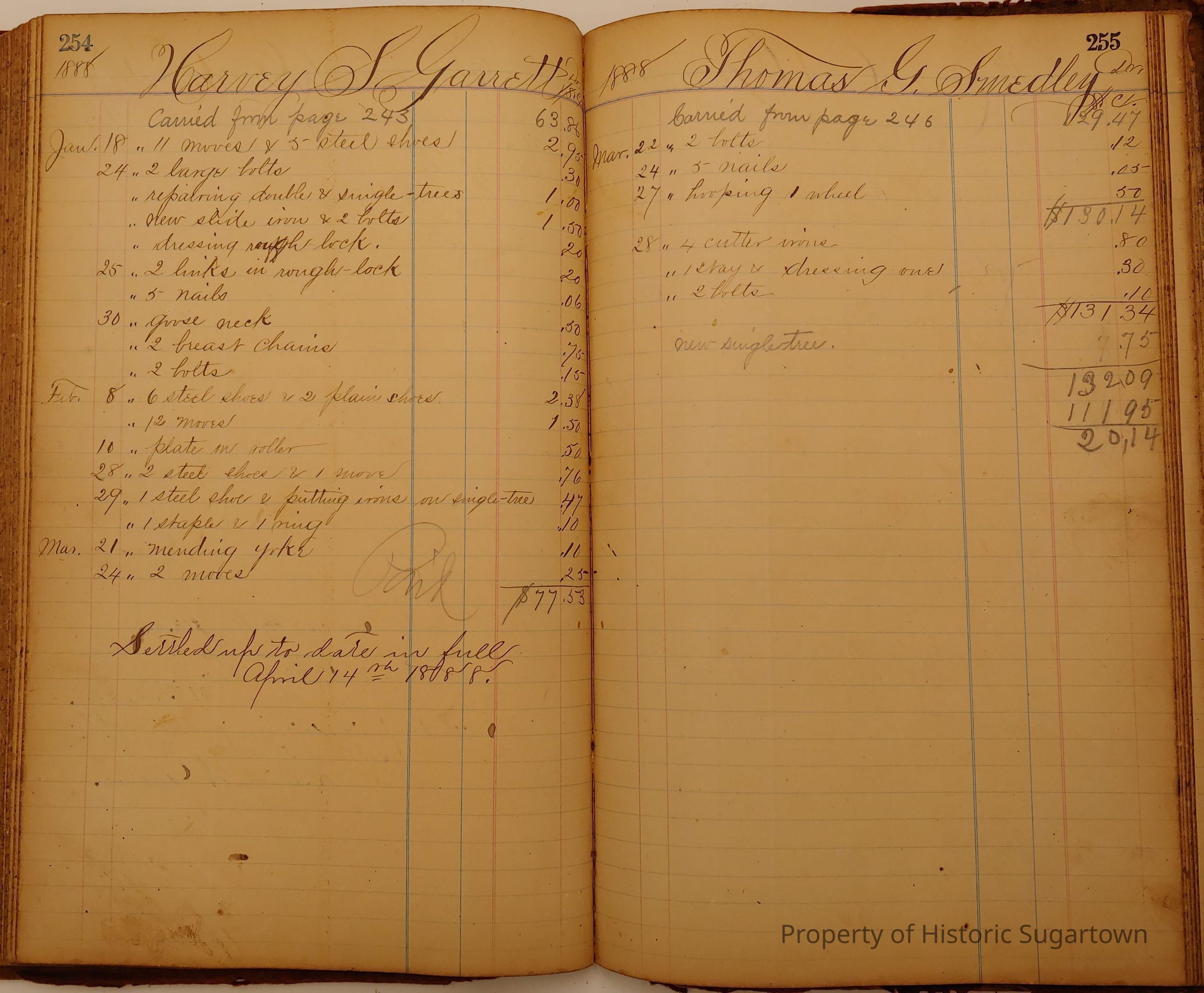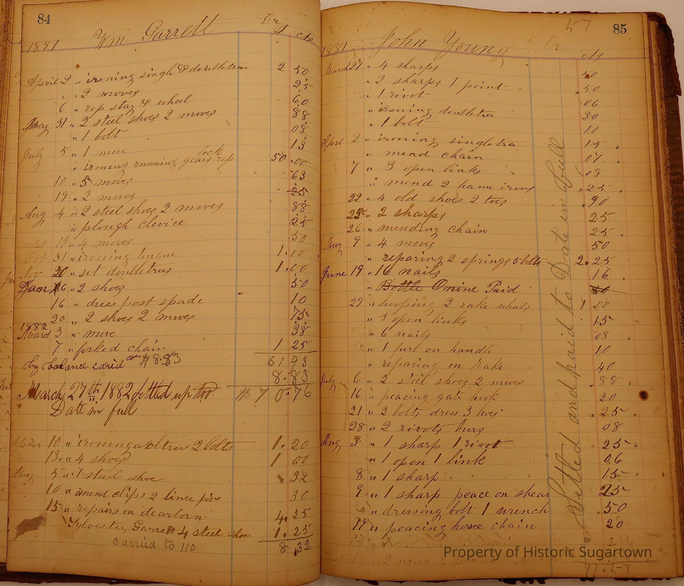 Local Blacksmith Daniel Green’s daybook and/or ledgers. This collection contains two daybooks with daily entries from 1864 to 1887. The daybooks in this collection contain many local and familiar names that populate this archive, including the Garrett family.Context