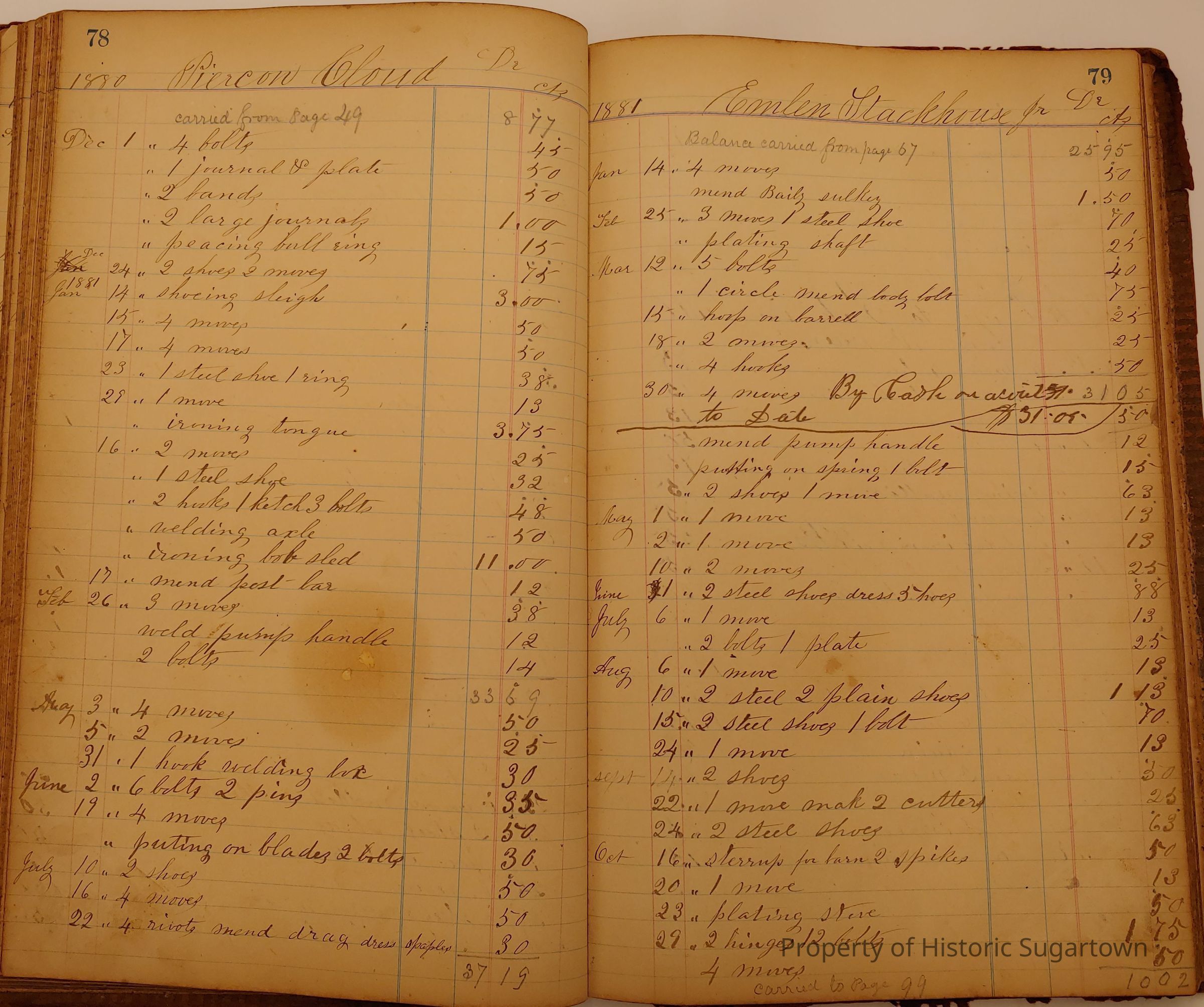 Daniel W. Green, Blacksmith Collection 1864-1887/Daybook 1874-1887Entry/Object ID