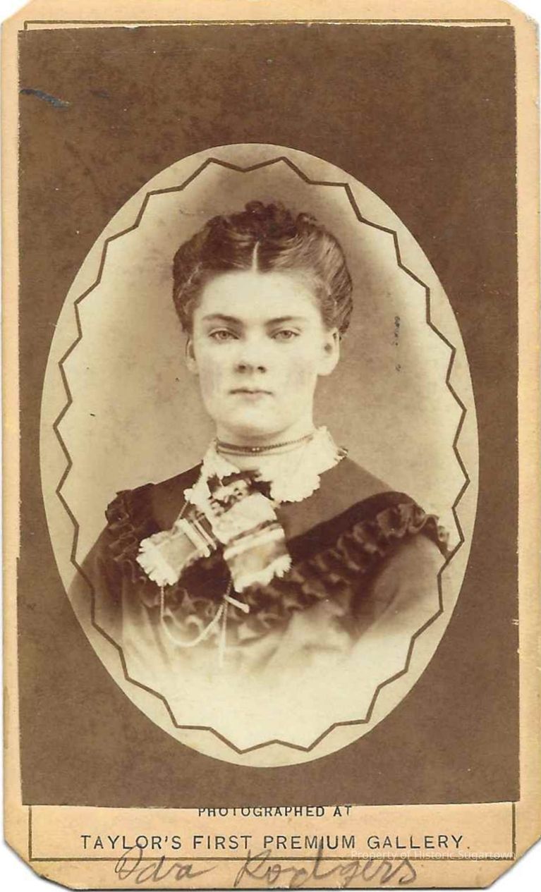 Carte-de-visite photograph (1871-72) of Ida Rodgers Stackhouse by West Chester, PA photographer Thomas W. Taylor at Taylor's First Premium Gallery, No. 30 East Gay Street, West Chester, PA.