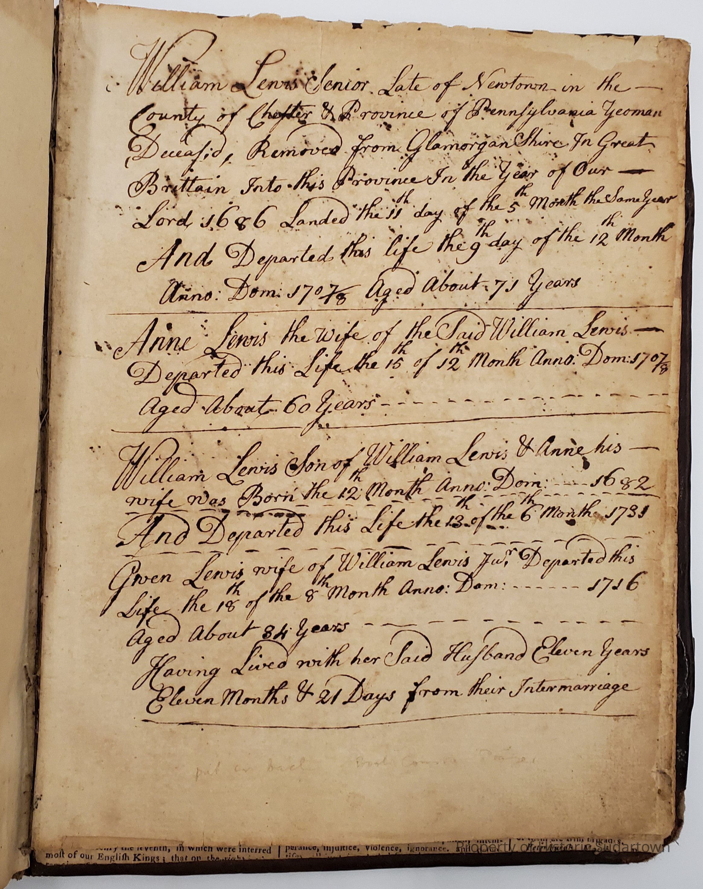 Garrett Family Manuscript Collection/The Lewis Family Bible [1765]Entry/Object ID