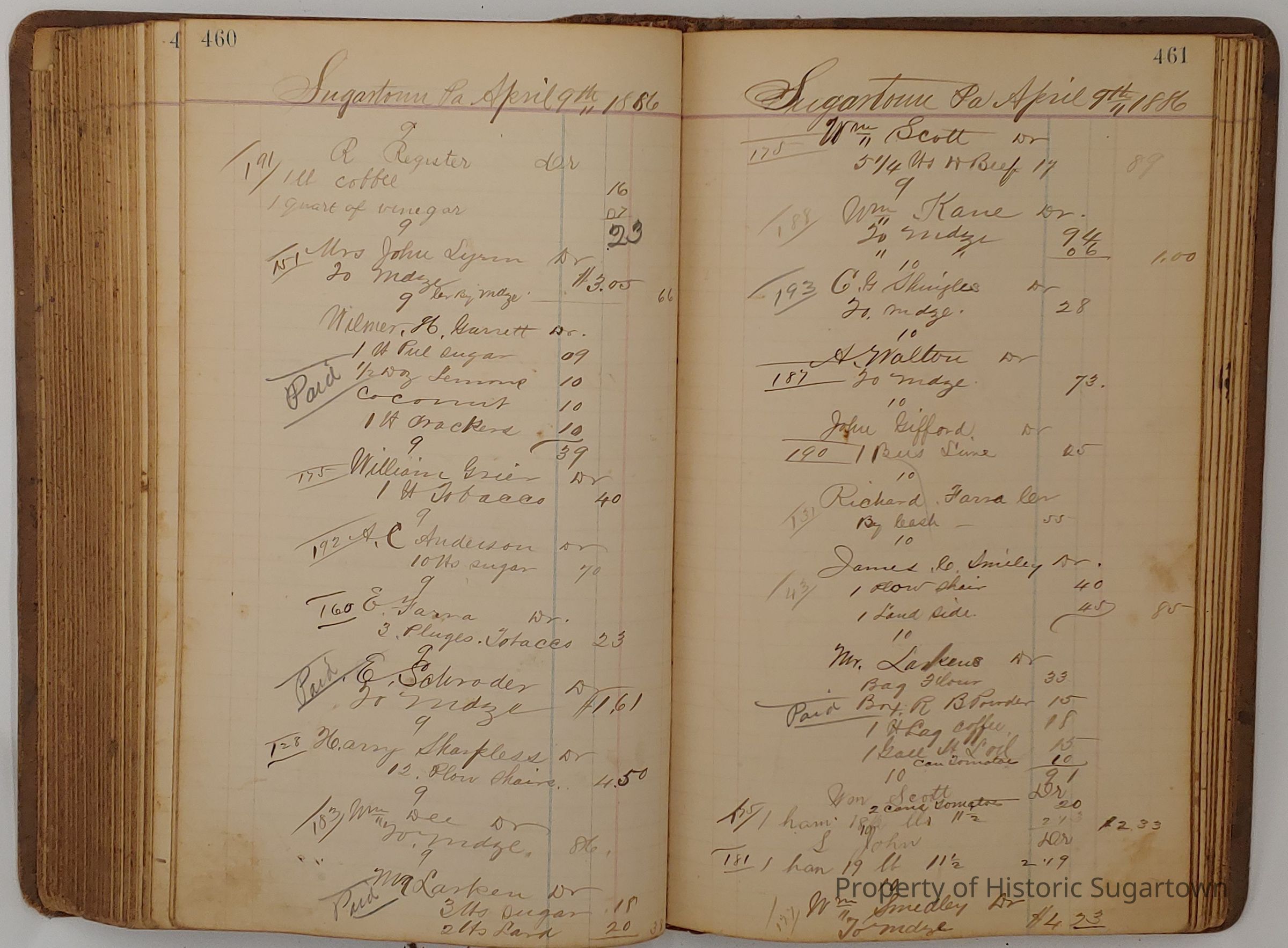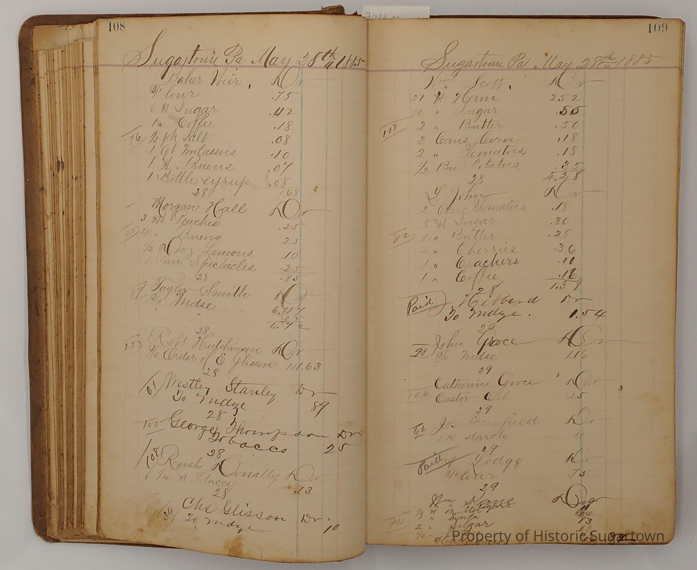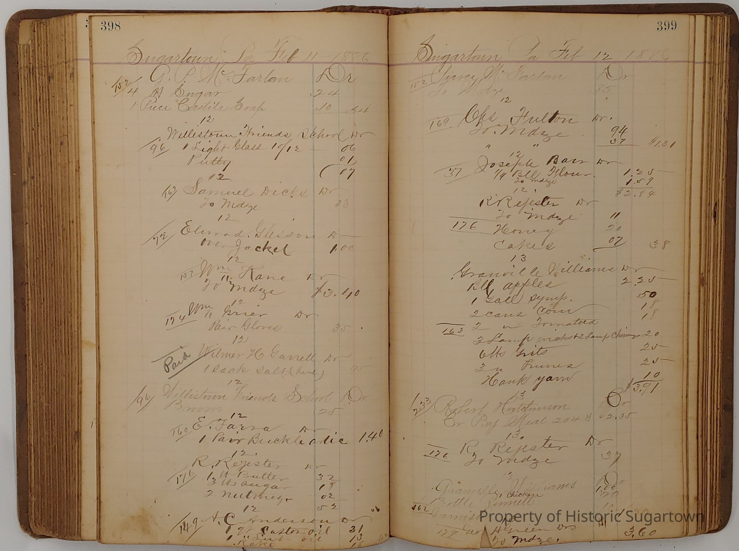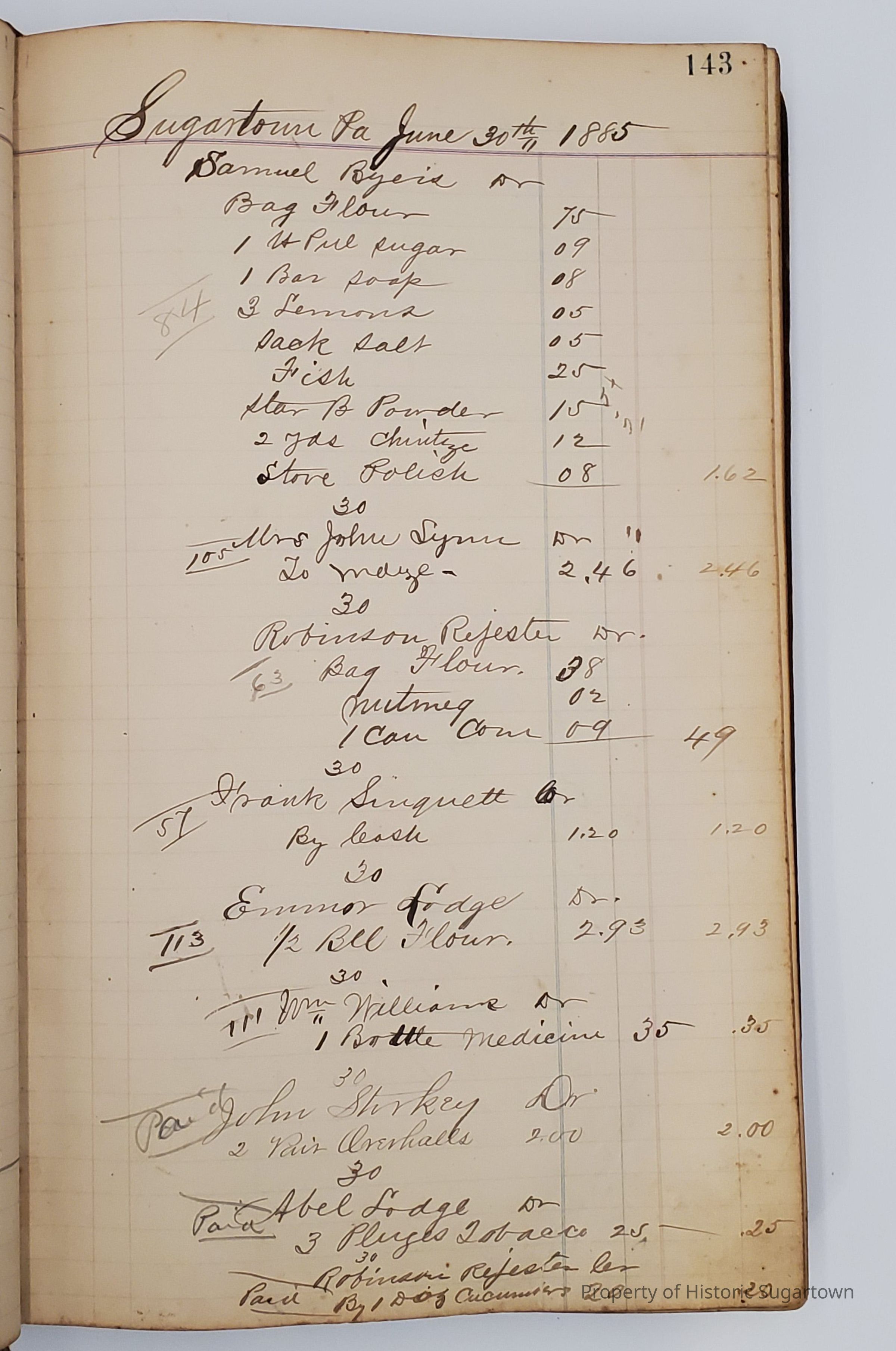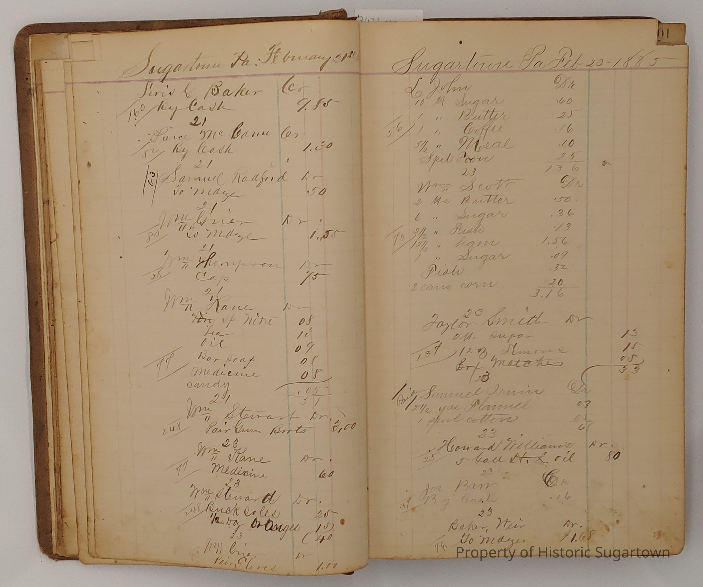 Hillery John Daybook 1885-1886 for General Store in Sugartown PA. Details sales records for general store, customers include local names that populate this archive.Collection