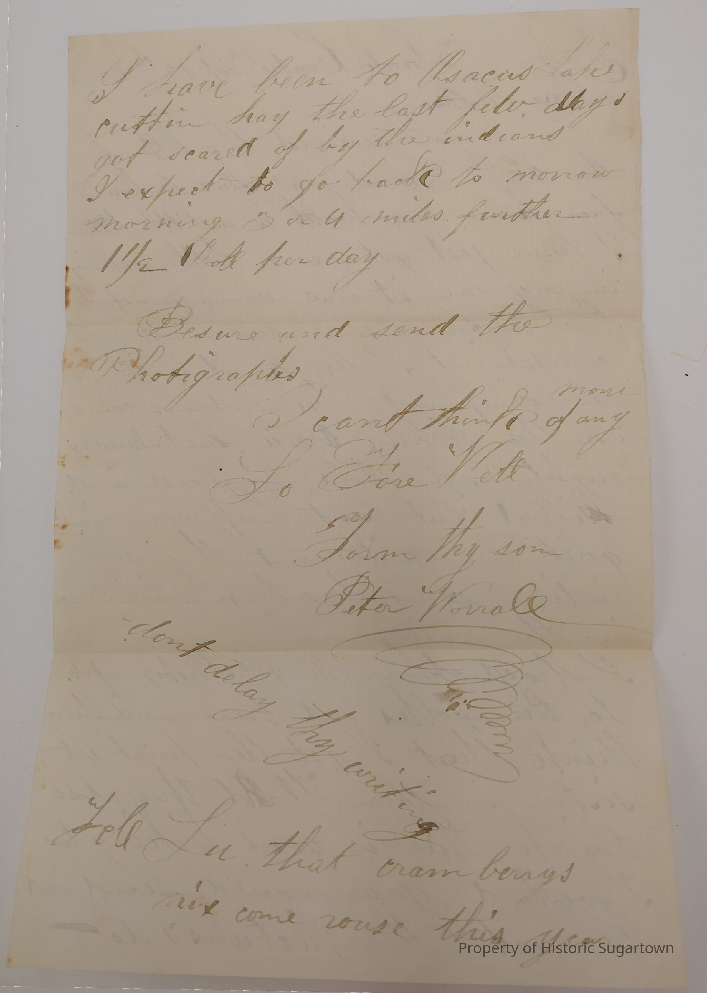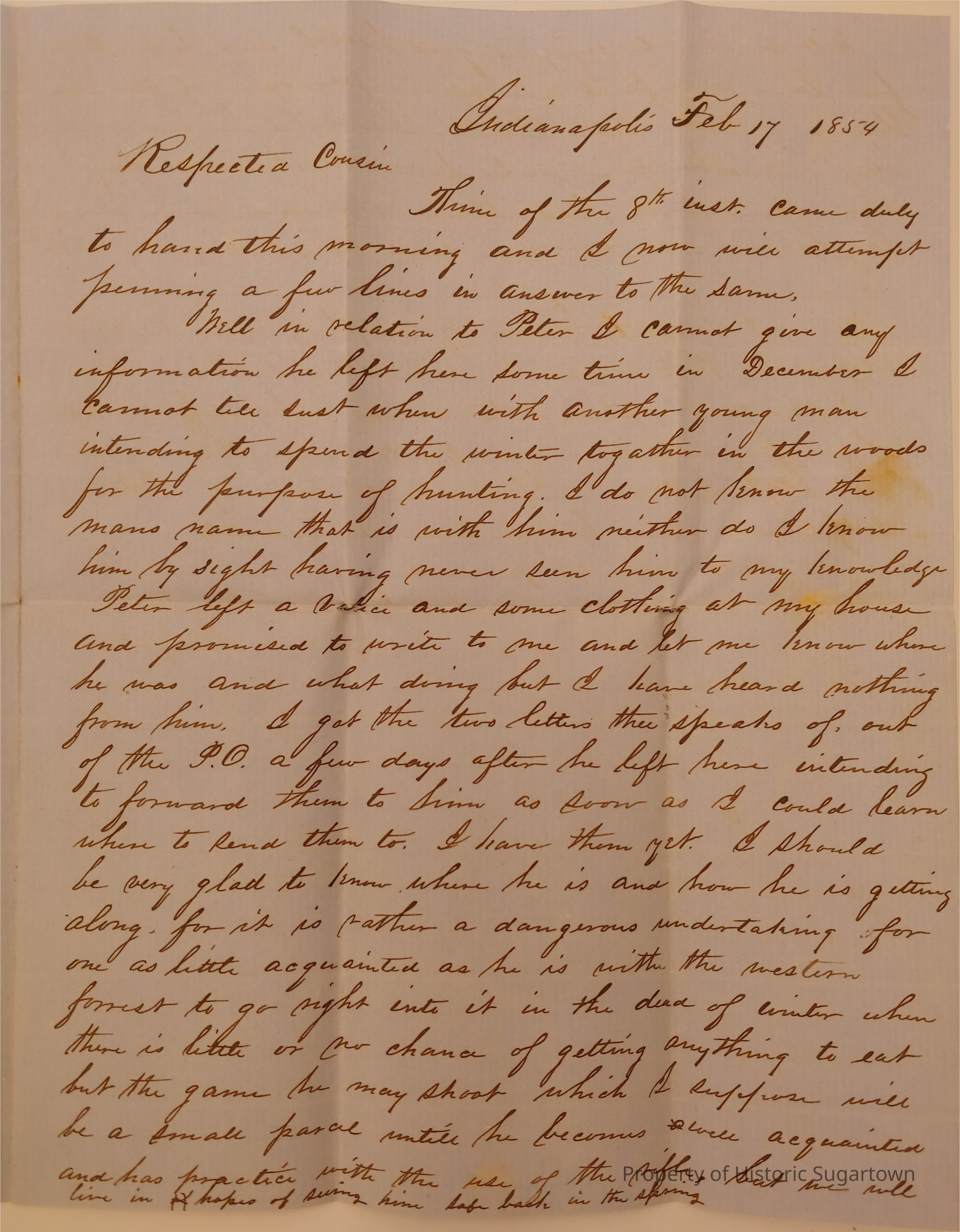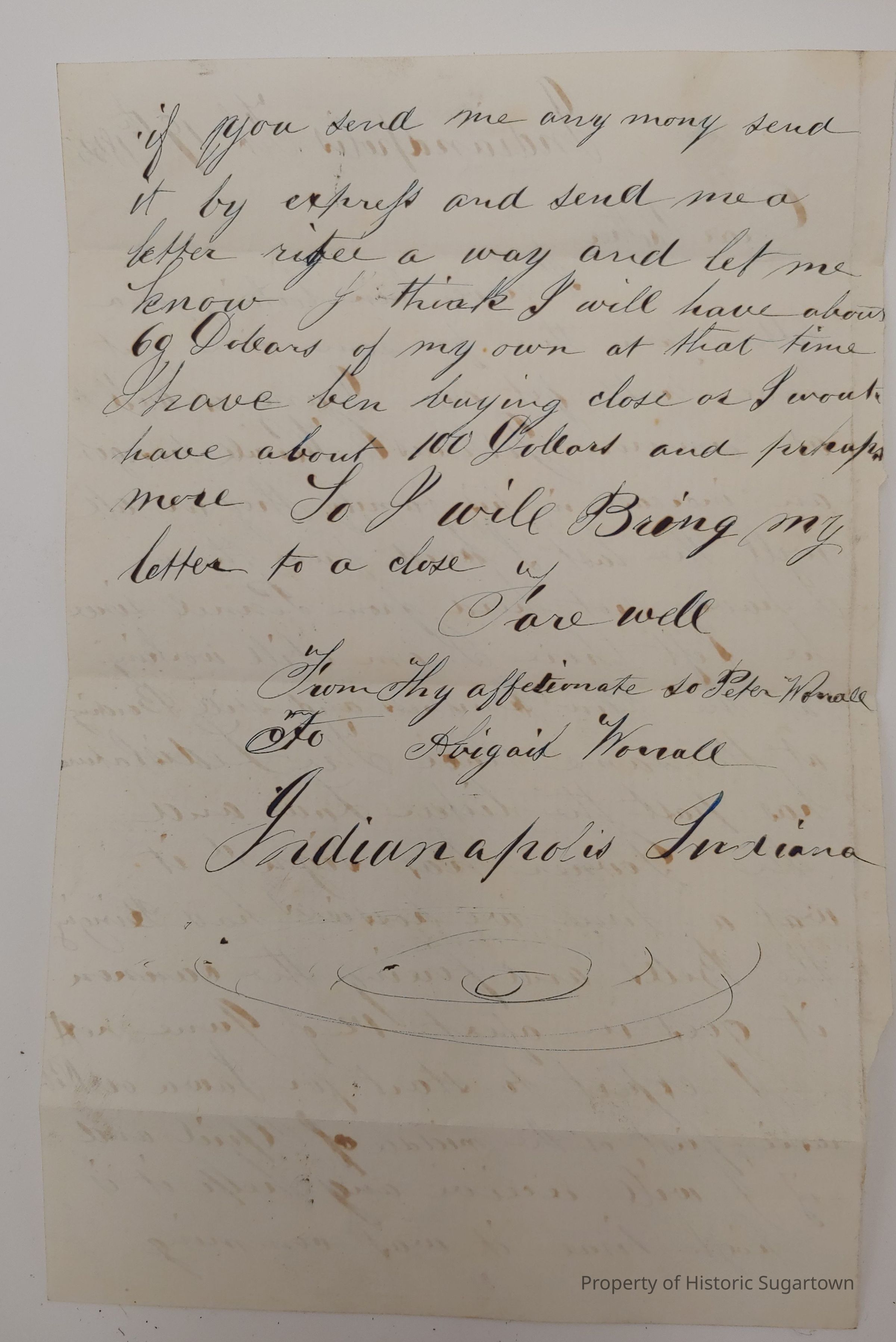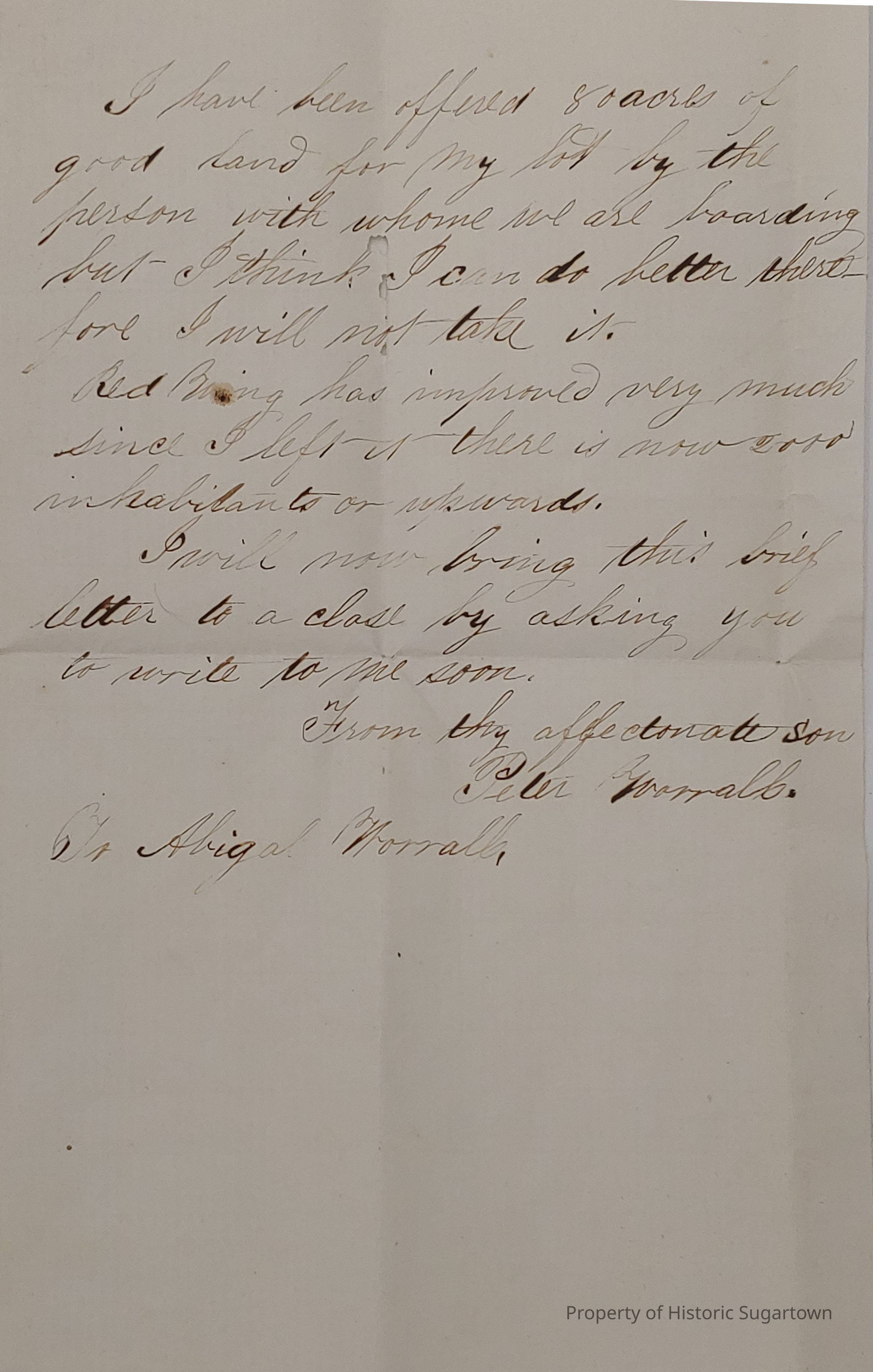 Feb. 22nd, 1852 Letter from Abigail Worrall's sister Sallie A. Thatcher mentioning not having seen each other in a while and her annoyance with Sharpless (Abigail's husband) not keeping his promise to visit. She asks about Abigail's children including Hanna, mentions a funeral she was unable to attend, and describes her recent illness, possibly influenza. "Eli Yarnell" and "Aunt Phebe" are mentioned; Sent from Wilmington, DE.