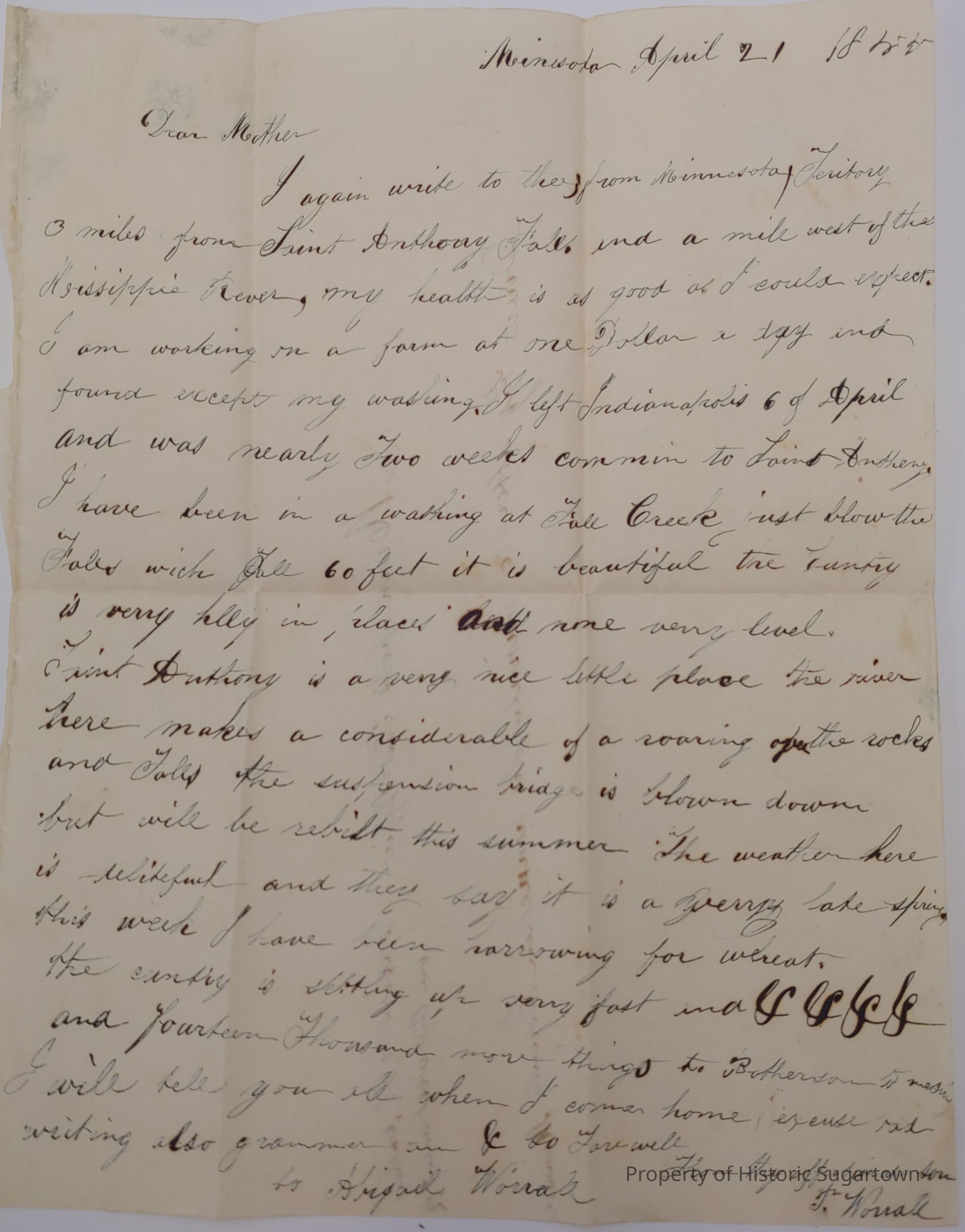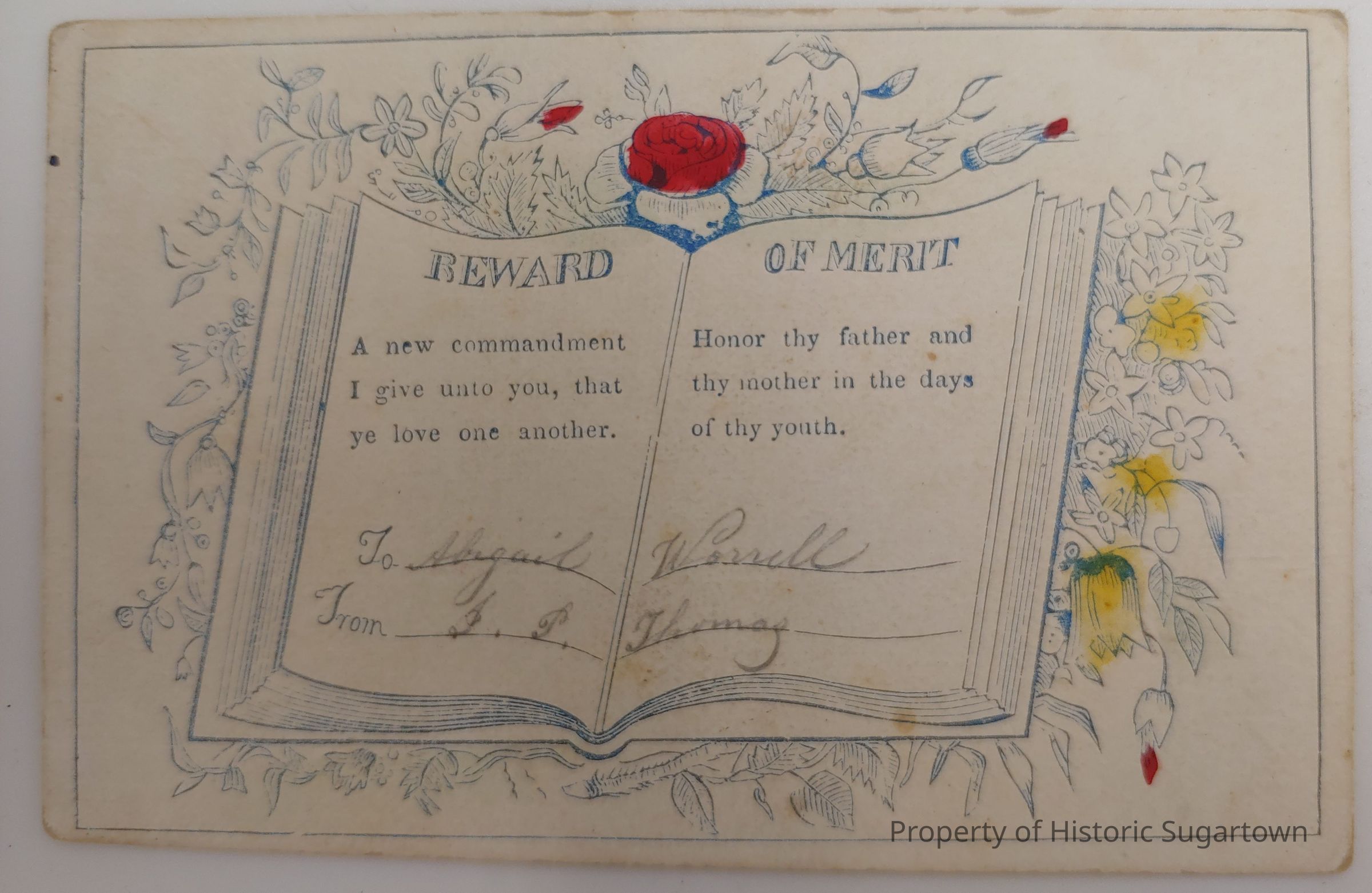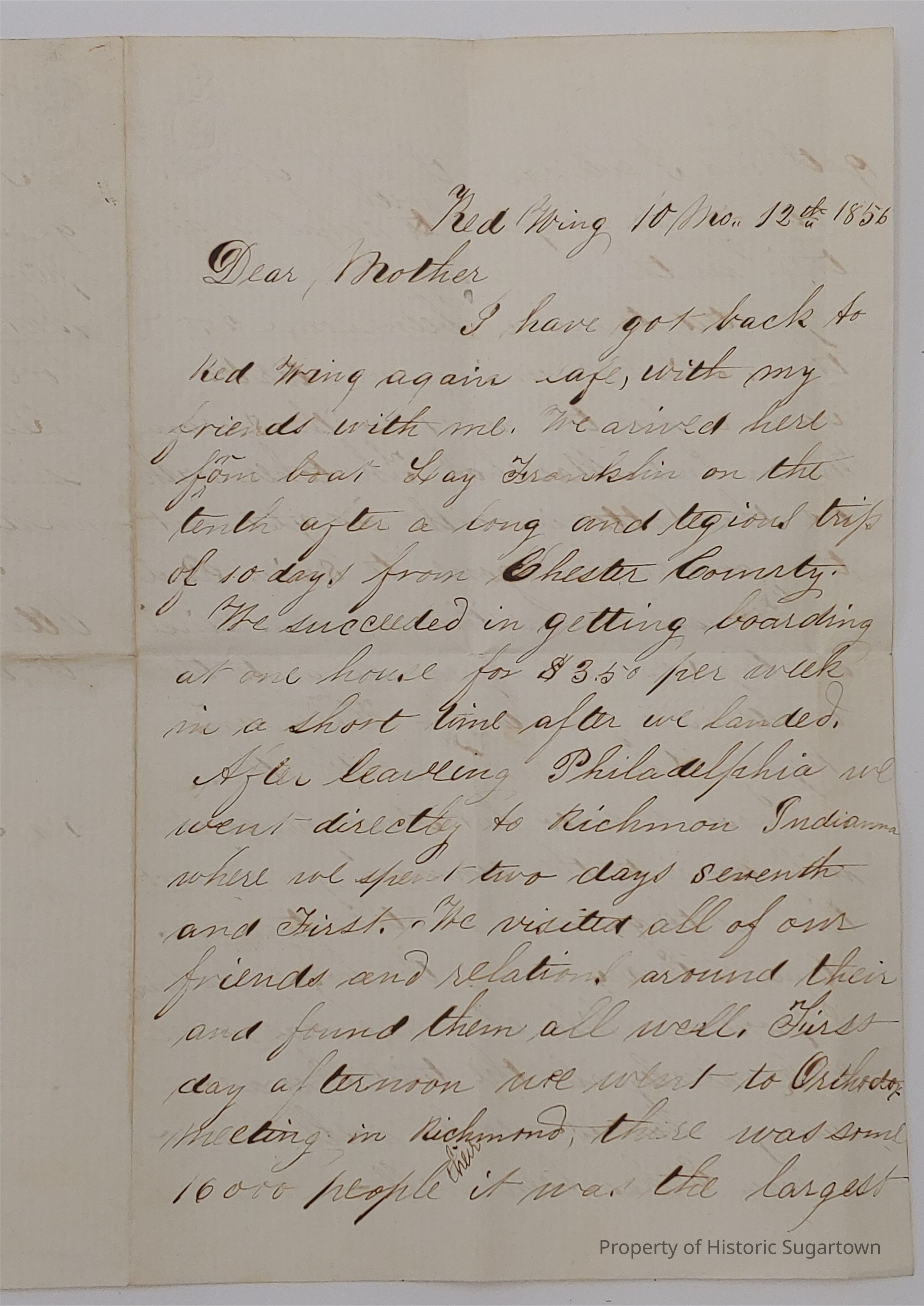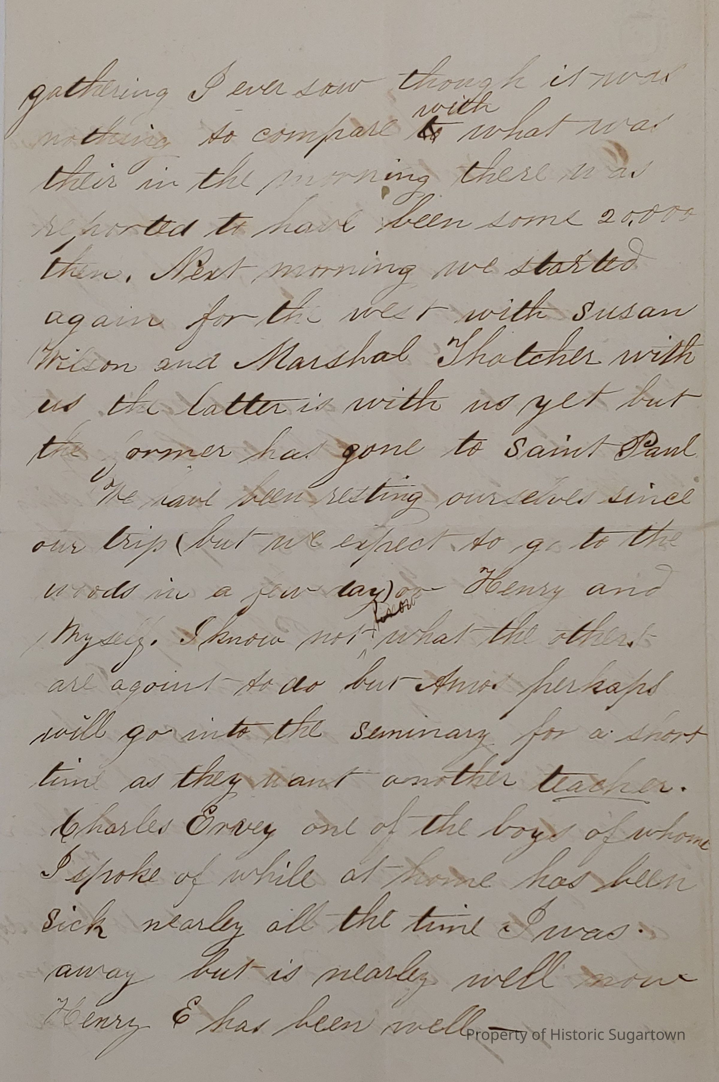 Feb. 22nd, 1852 Letter from Abigail Worrall's sister Sallie A. Thatcher mentioning not having seen each other in a while and her annoyance with Sharpless (Abigail's husband) not keeping his promise to visit. She asks about Abigail's children including Hanna, mentions a funeral she was unable to attend, and describes her recent illness, possibly influenza. "Eli Yarnell" and "Aunt Phebe" are mentioned; Sent from Wilmington, DE.