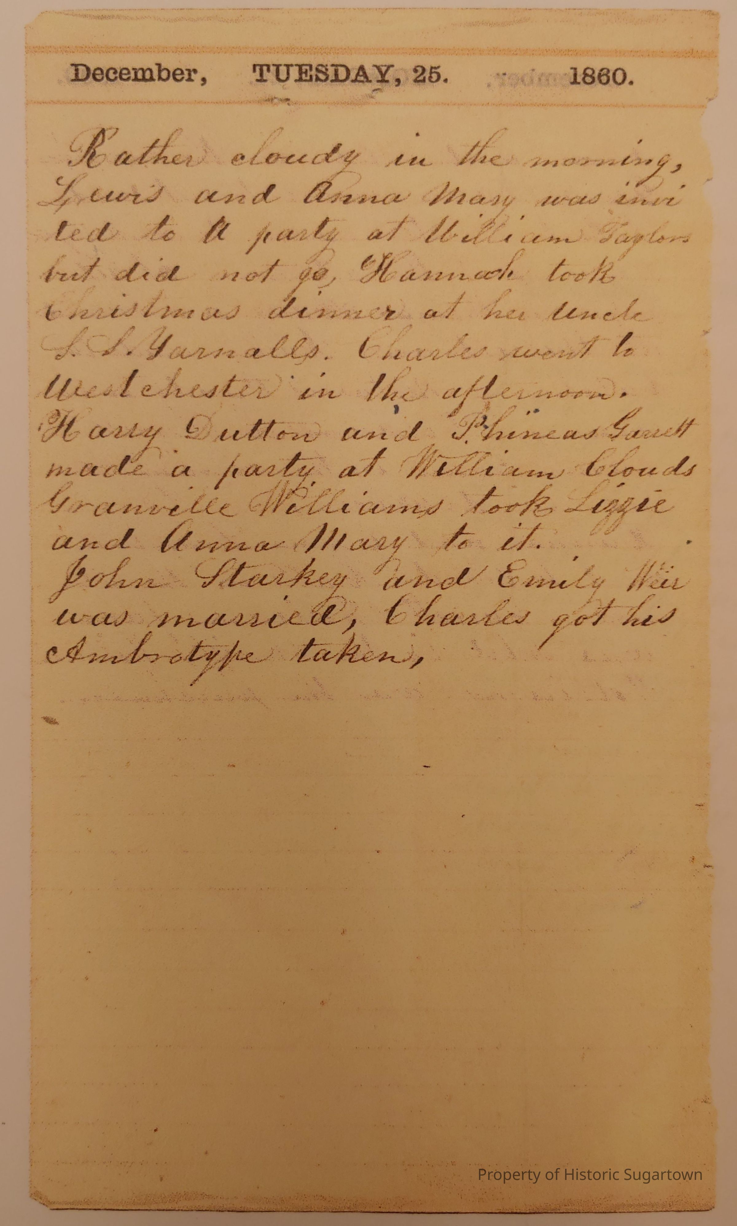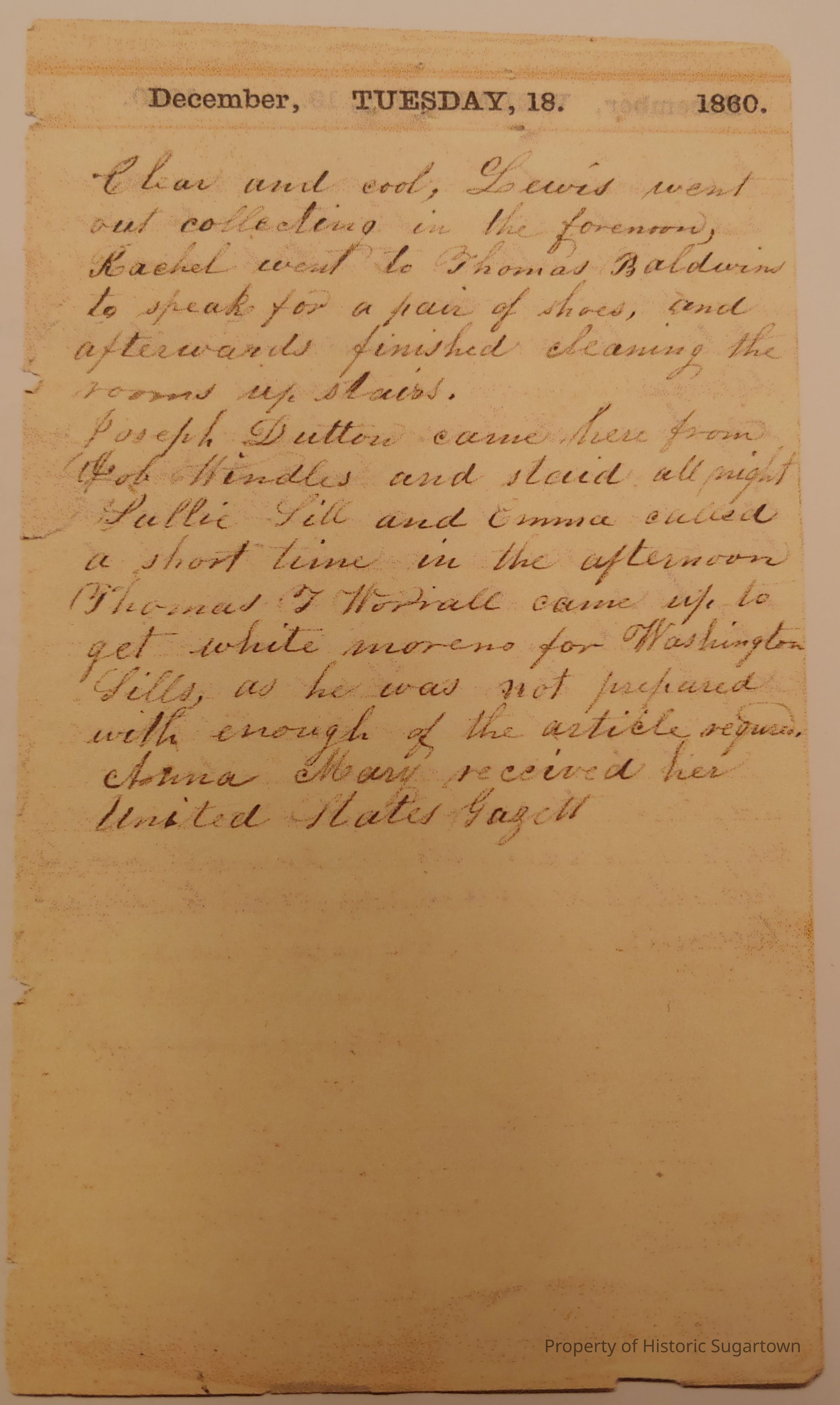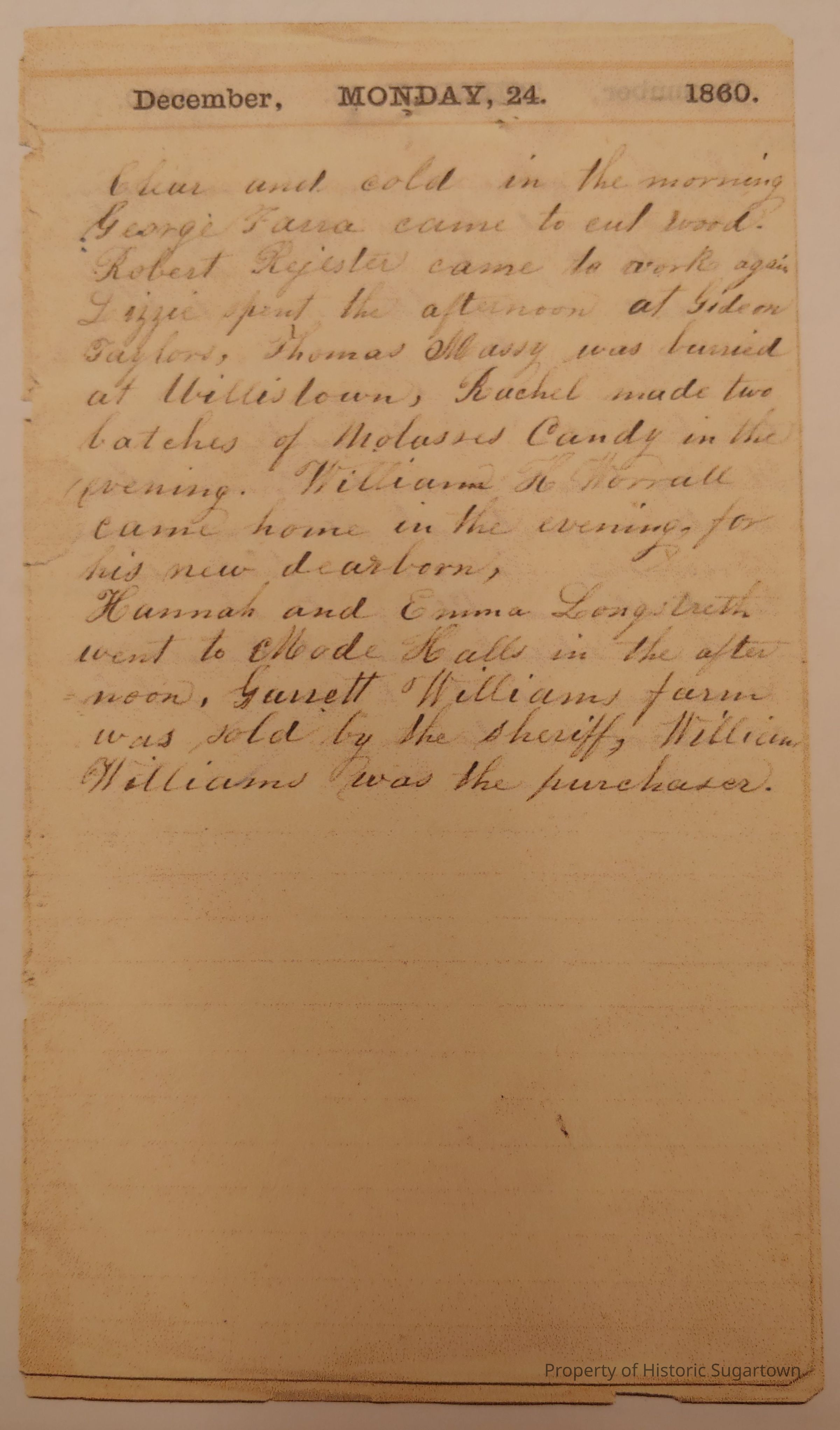 Copies of four Abigail Thatcher Worrall journal entries. Original on display at Carriage Museum.Collection