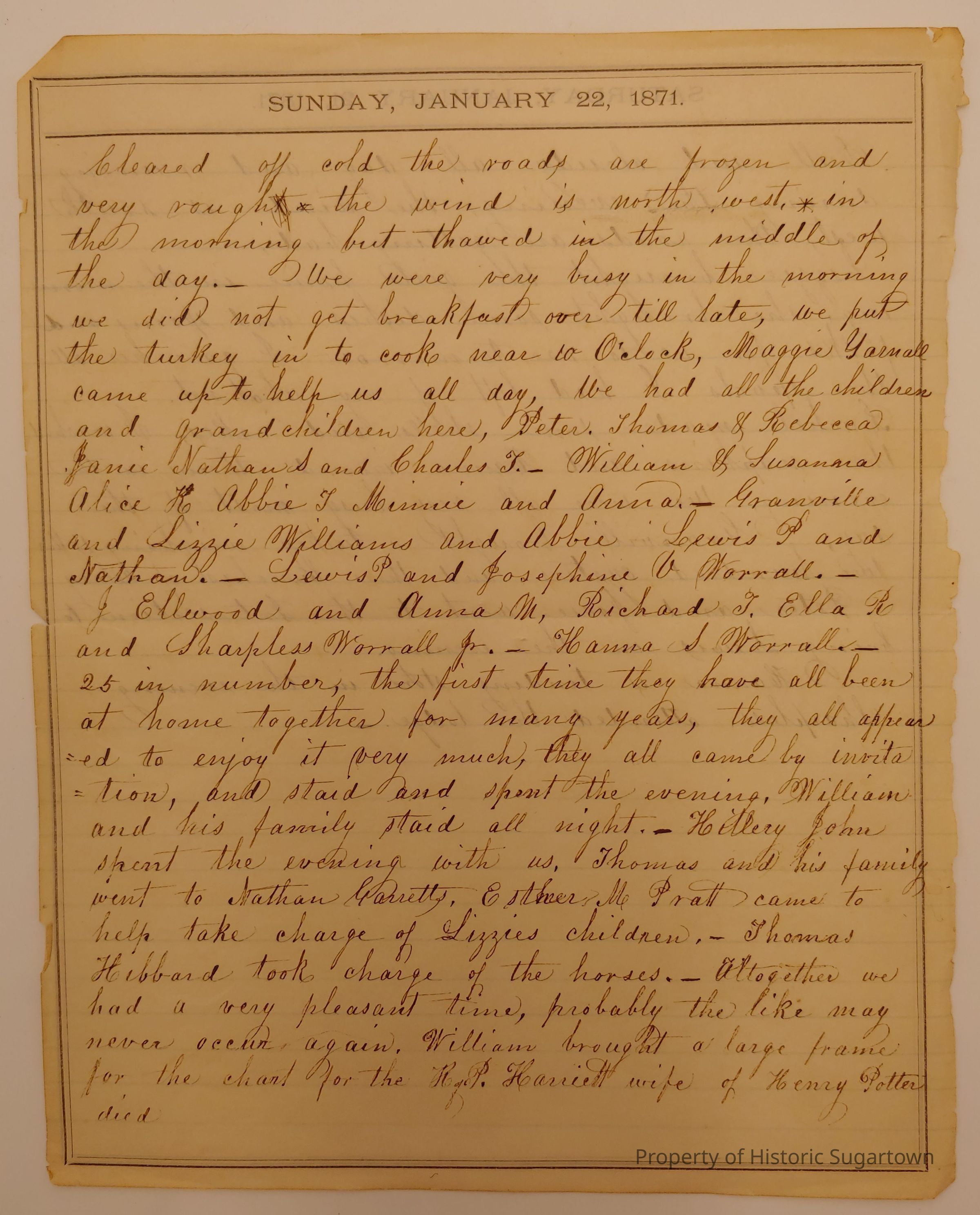 Abigail Worrall, journal entries (1860, 1871)Tags