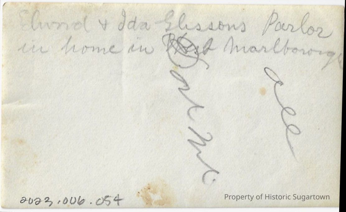Local Families Photograph Collection/Elwood and Amy Ida Glissons’ parlor in home in West MarlboroughEntry/Object ID