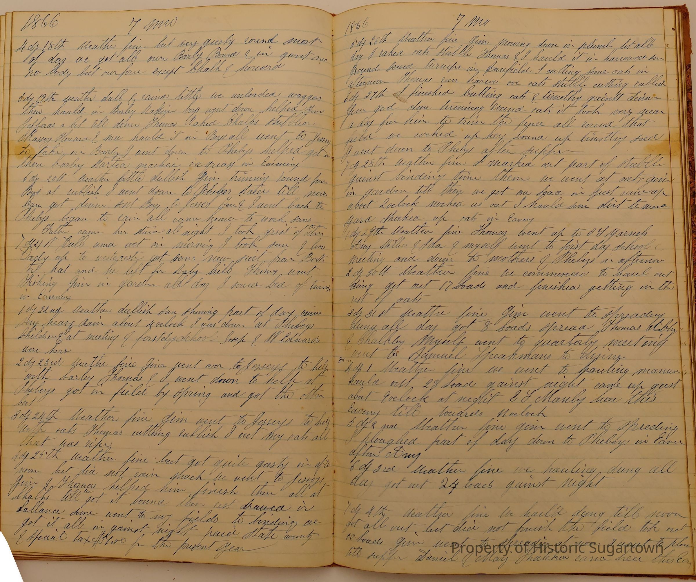 The Garrett Family Manuscript Collection (MSS 002) consists of local deeds and estate papers dating back as early as 1772. Some of the deeds are on vellum or oversized and fragile. A few family papers can be found in this collection as well; there is a poem for Sarah Garrett written by her father in 1834, and the Maris Garrett journal from 1864 includes daily entries, mostly weather reports and some family news.