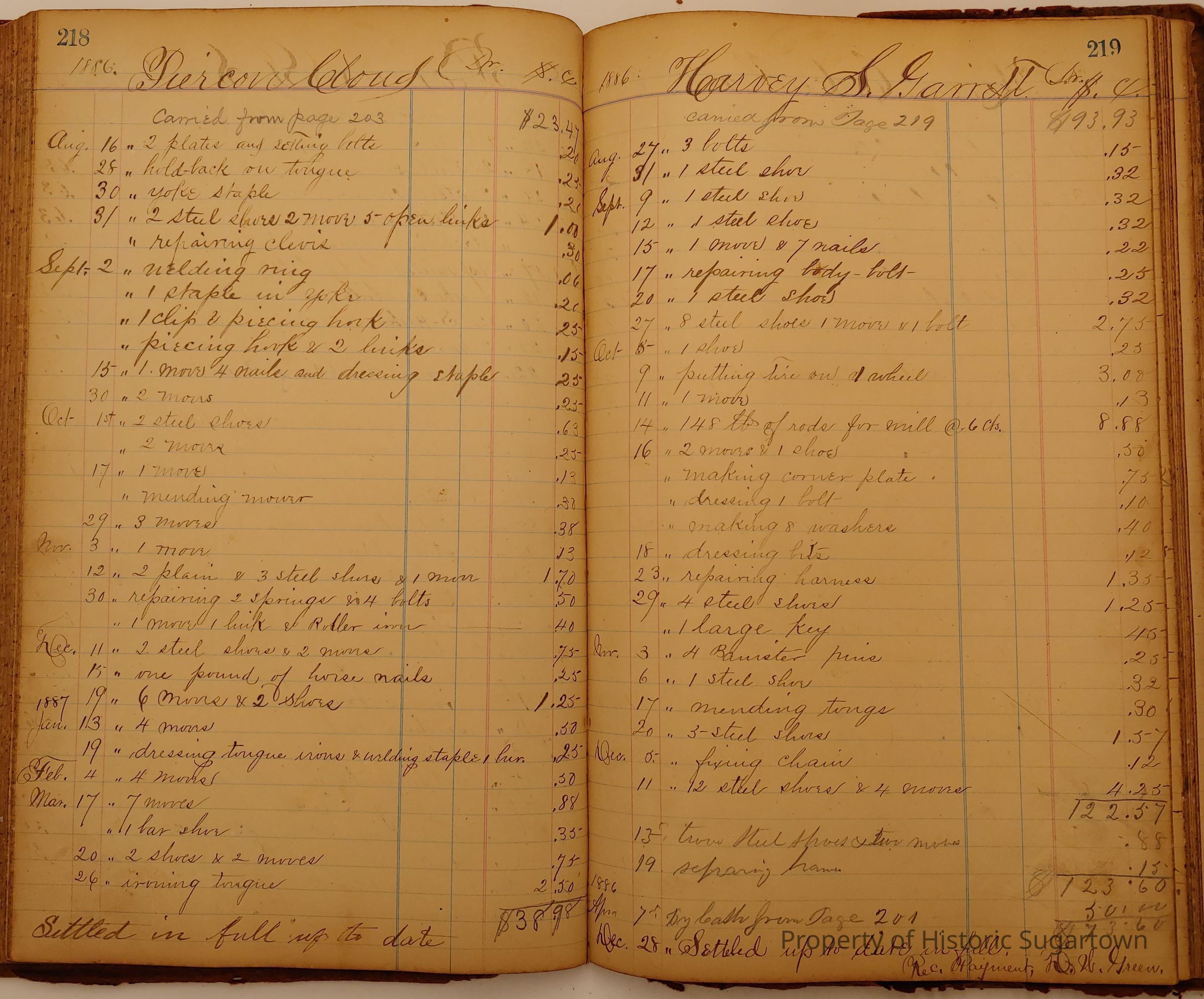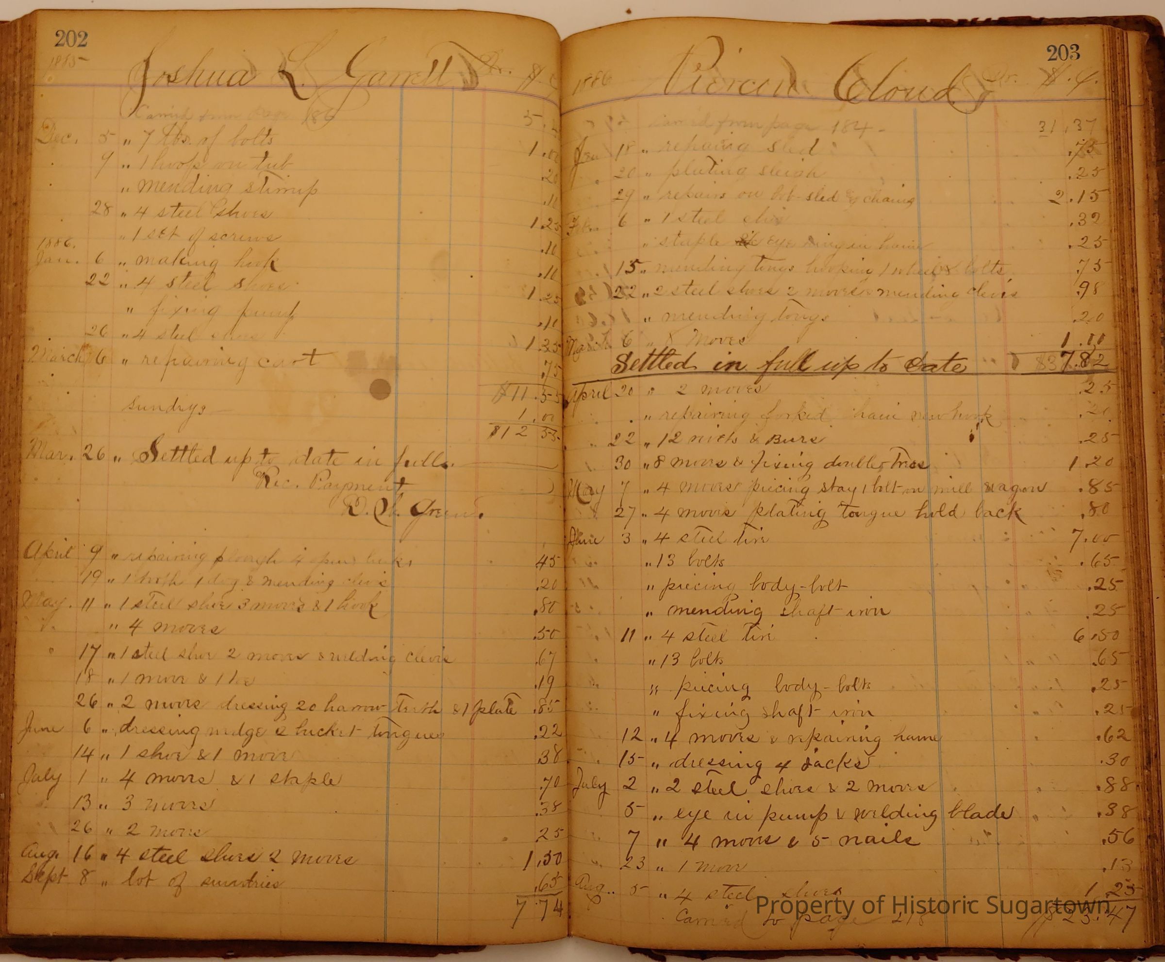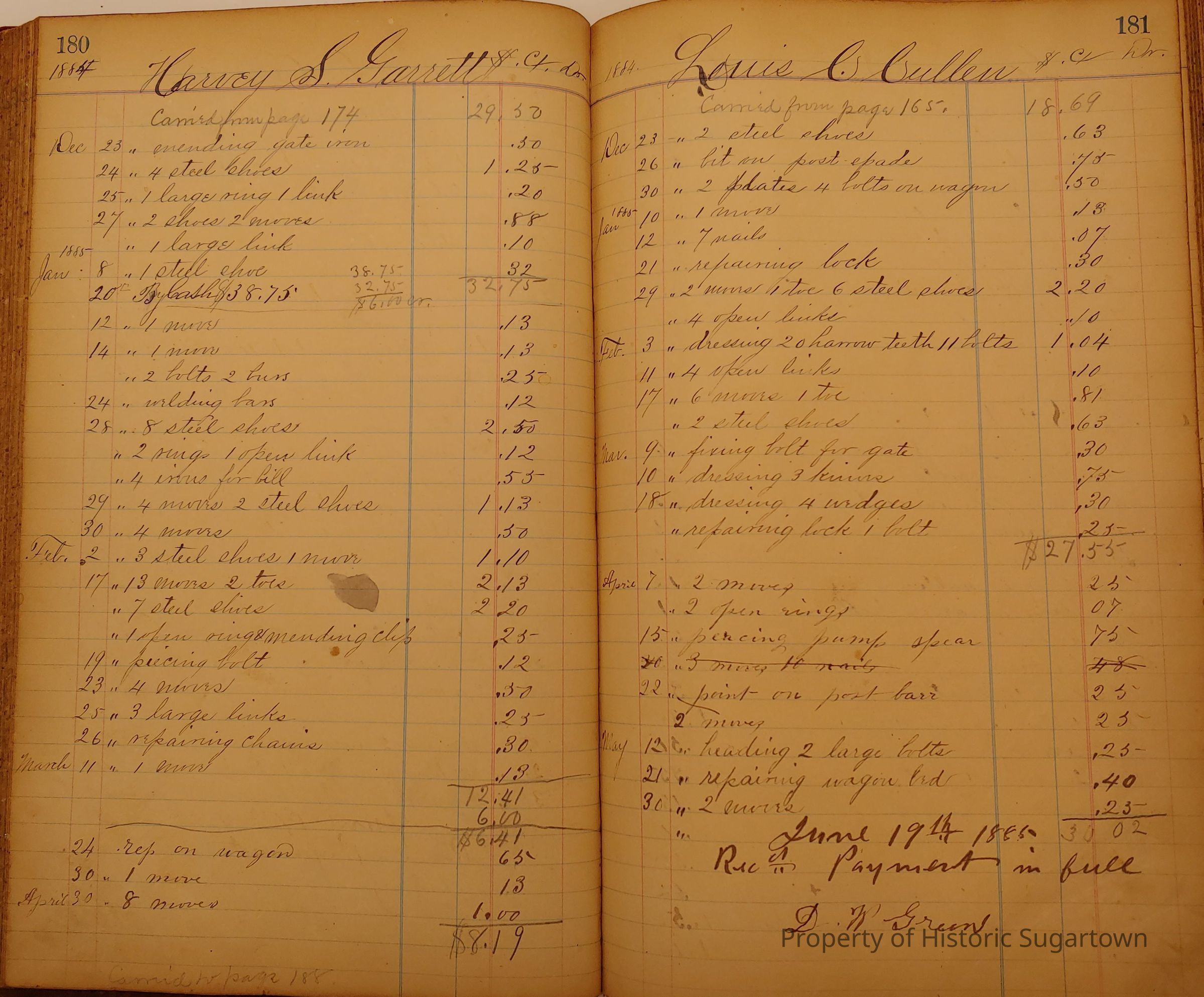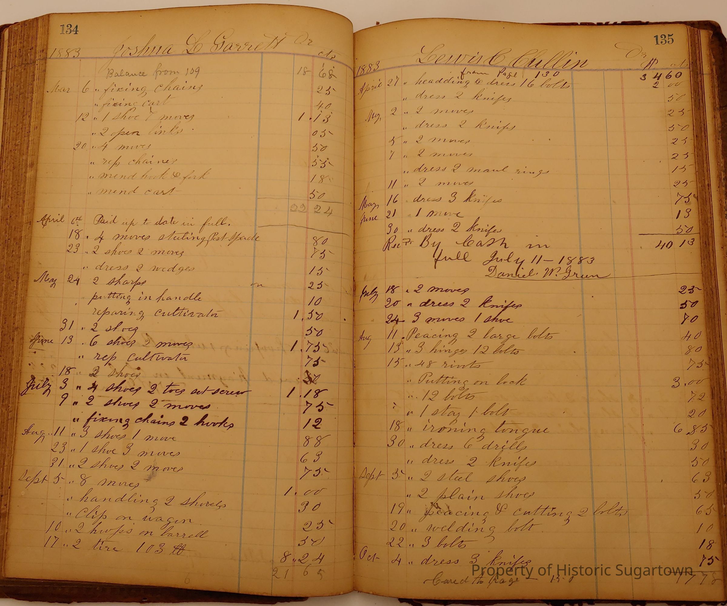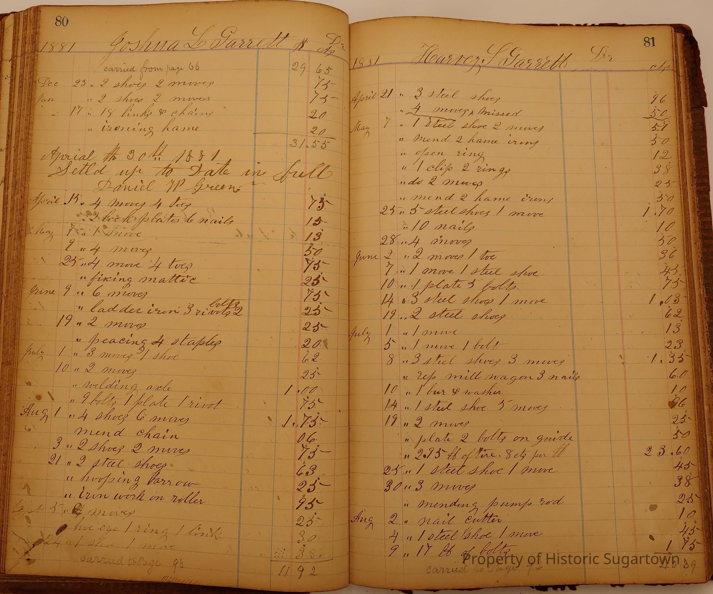 Local Blacksmith Daniel Green’s daybook and/or ledgers. This collection contains two daybooks with daily entries from 1864 to 1887. The daybooks in this collection contain many local and familiar names that populate this archive, including the Garrett family.Context