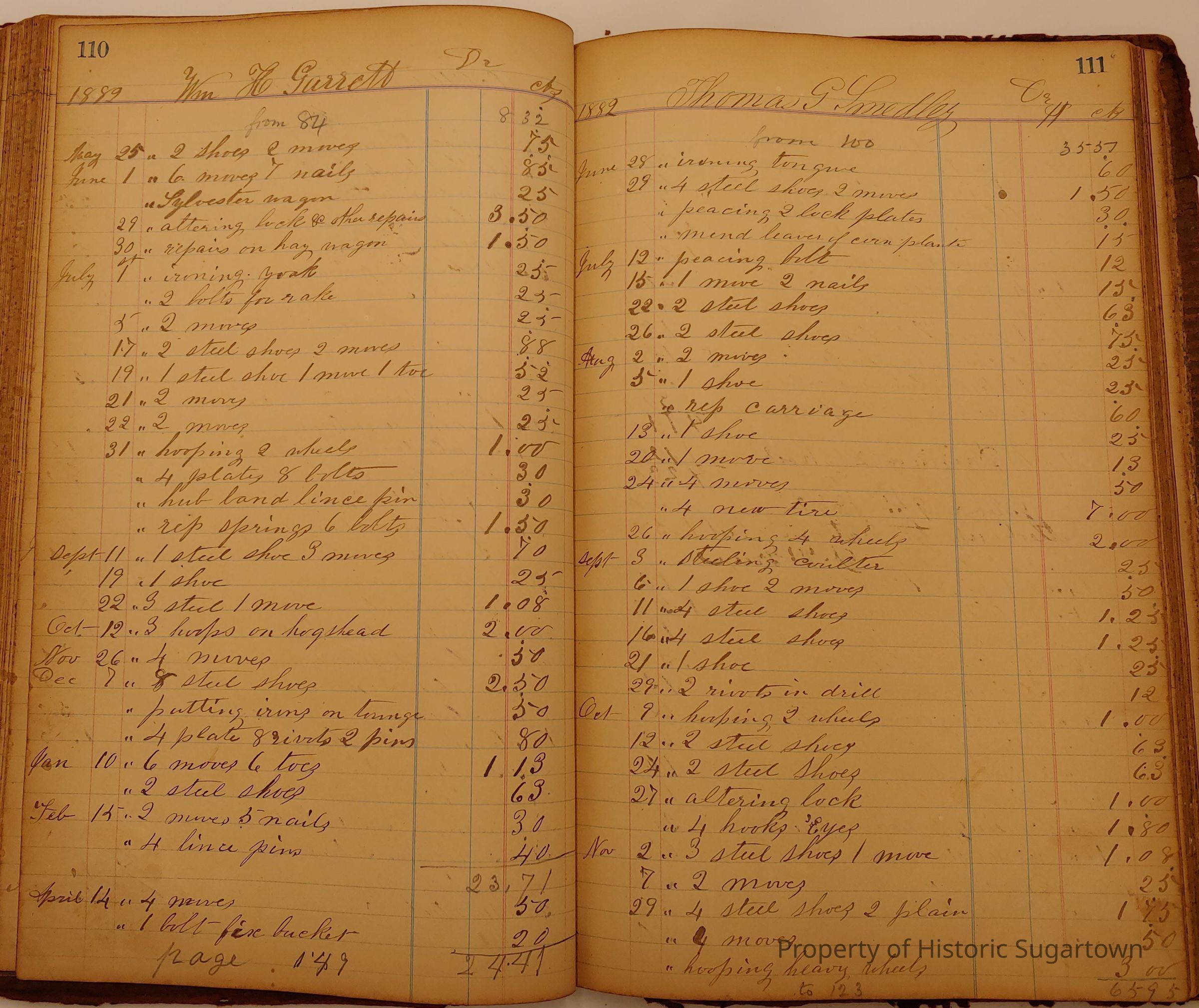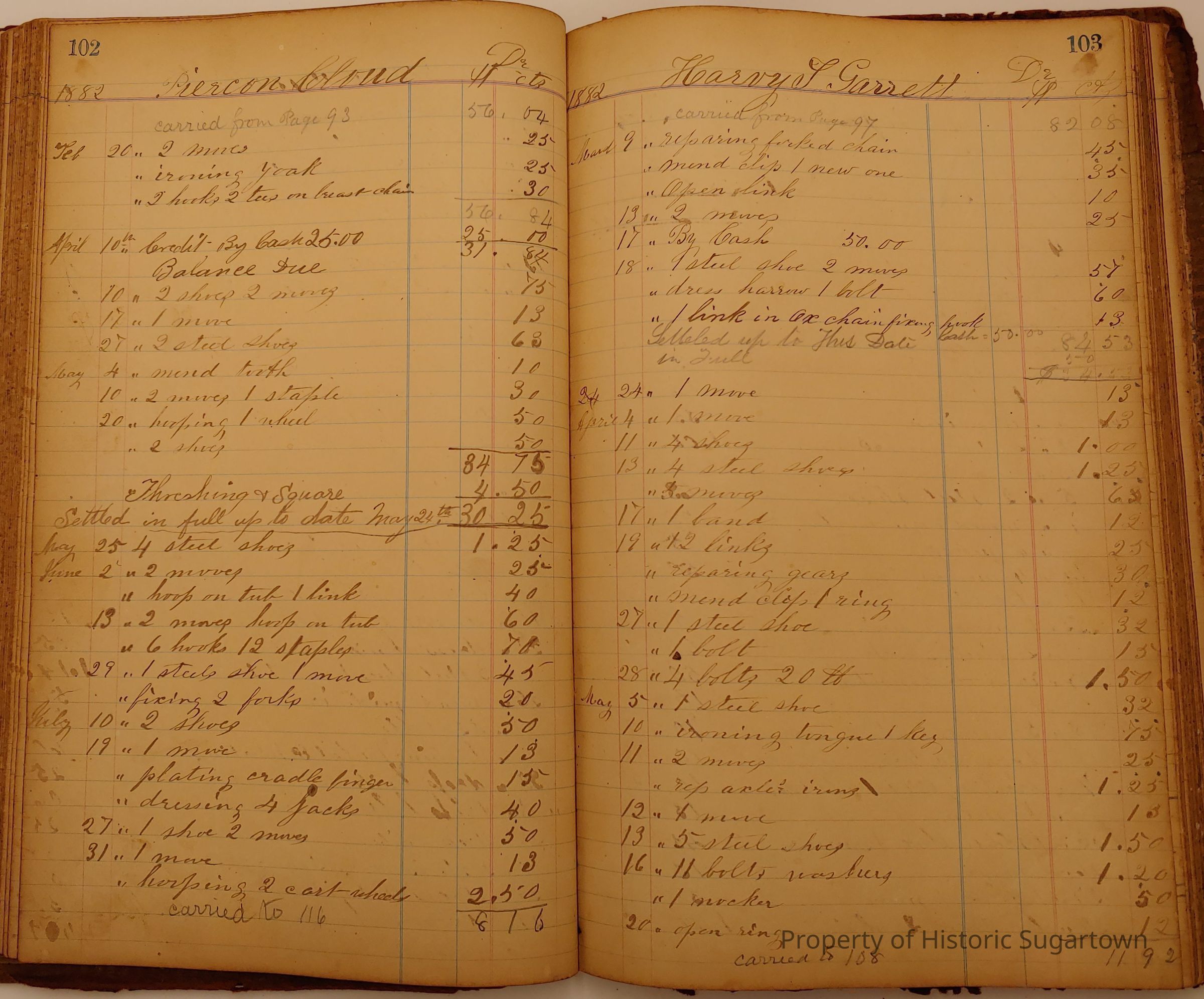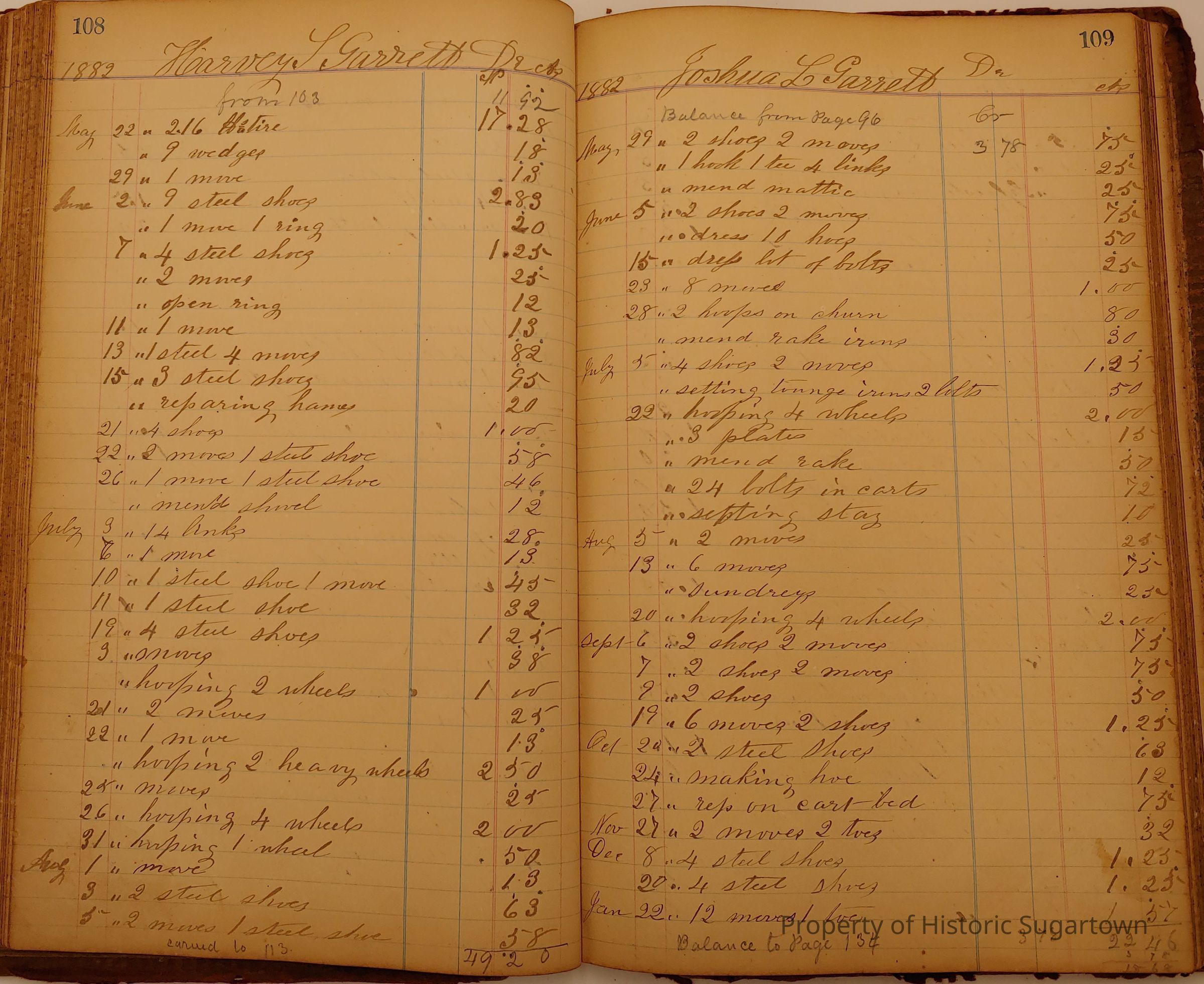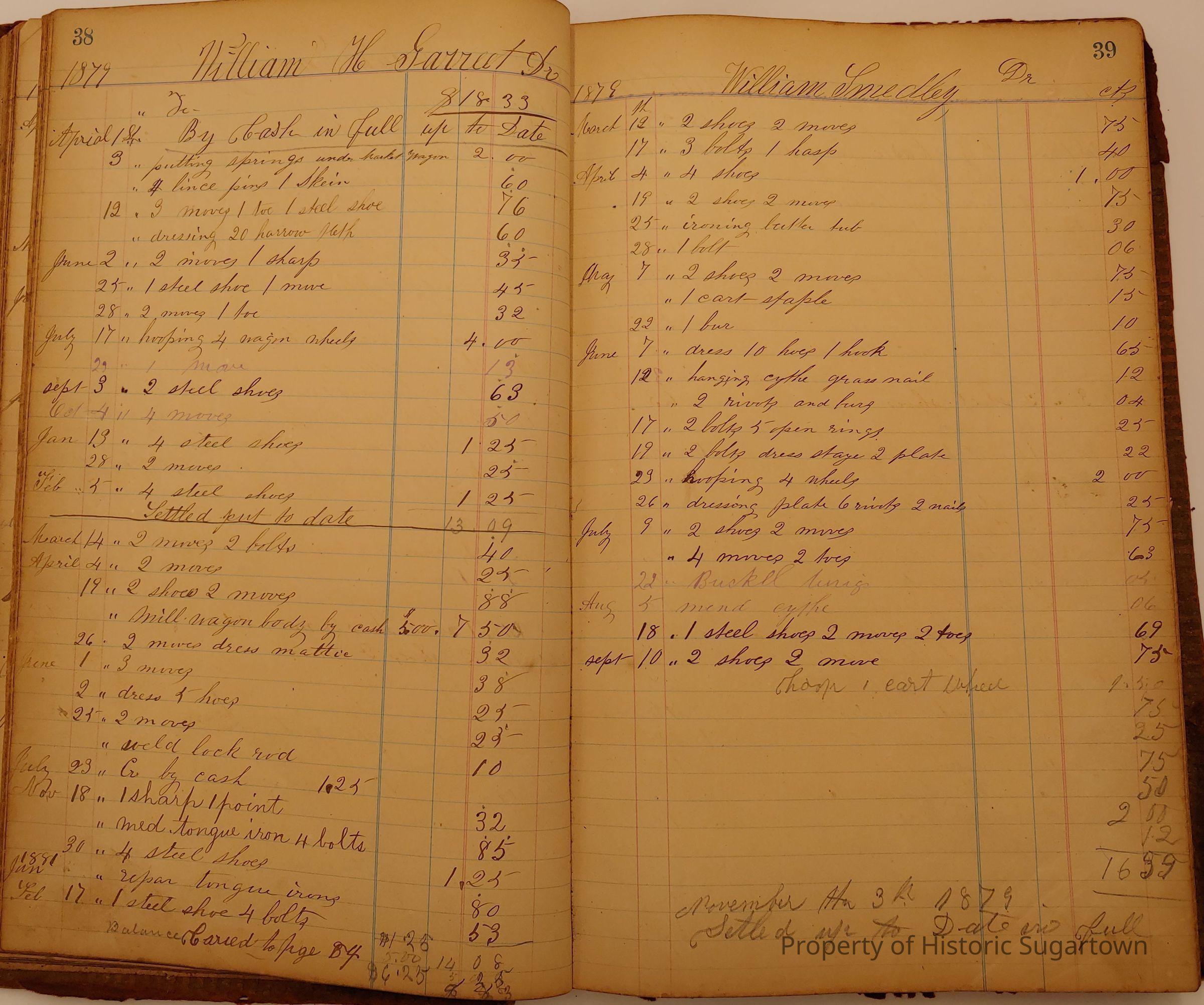 Local Blacksmith Daniel Green’s daybook and/or ledgers. This collection contains two daybooks with daily entries from 1864 to 1887. The daybooks in this collection contain many local and familiar names that populate this archive, including the Garrett family.Context