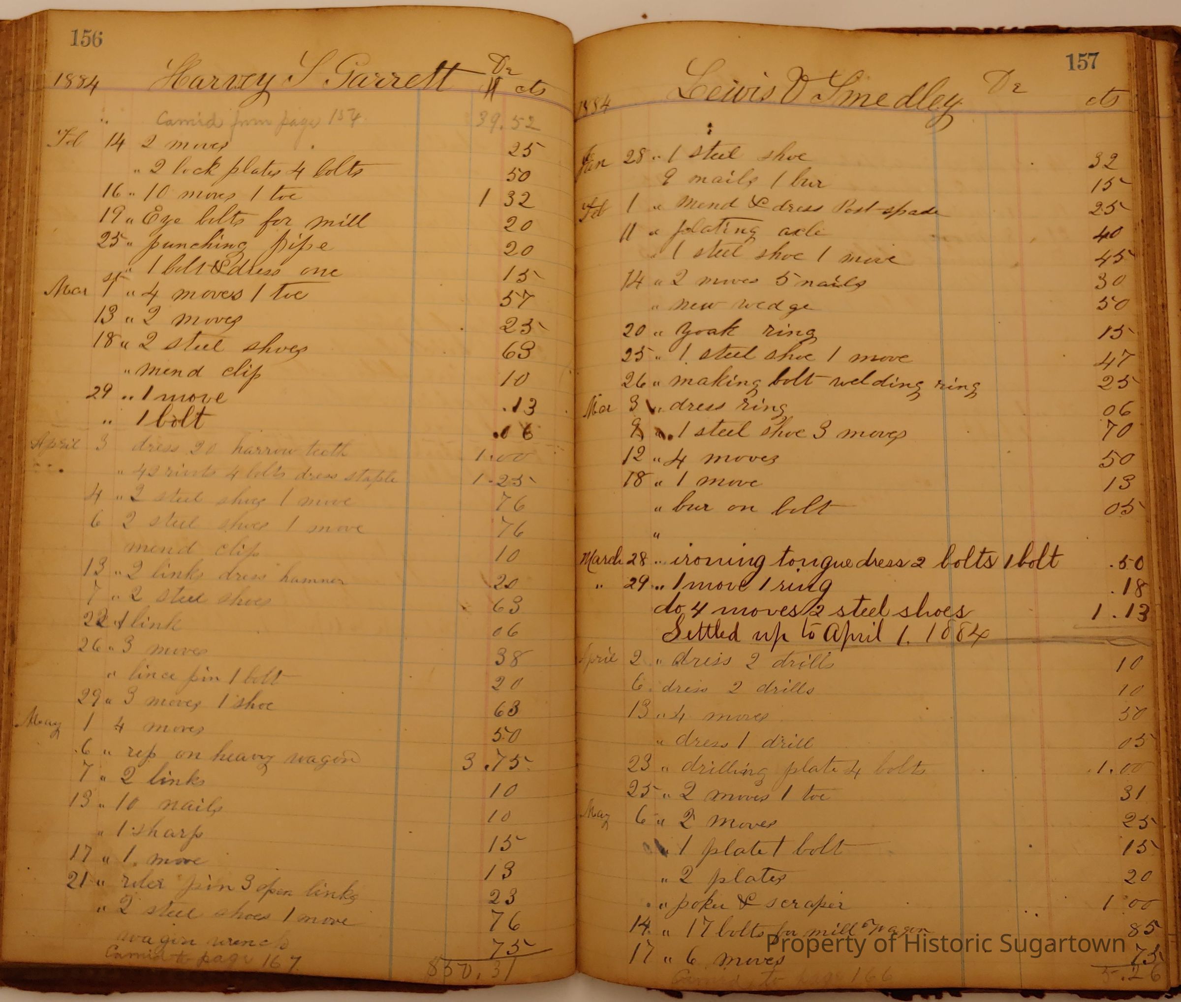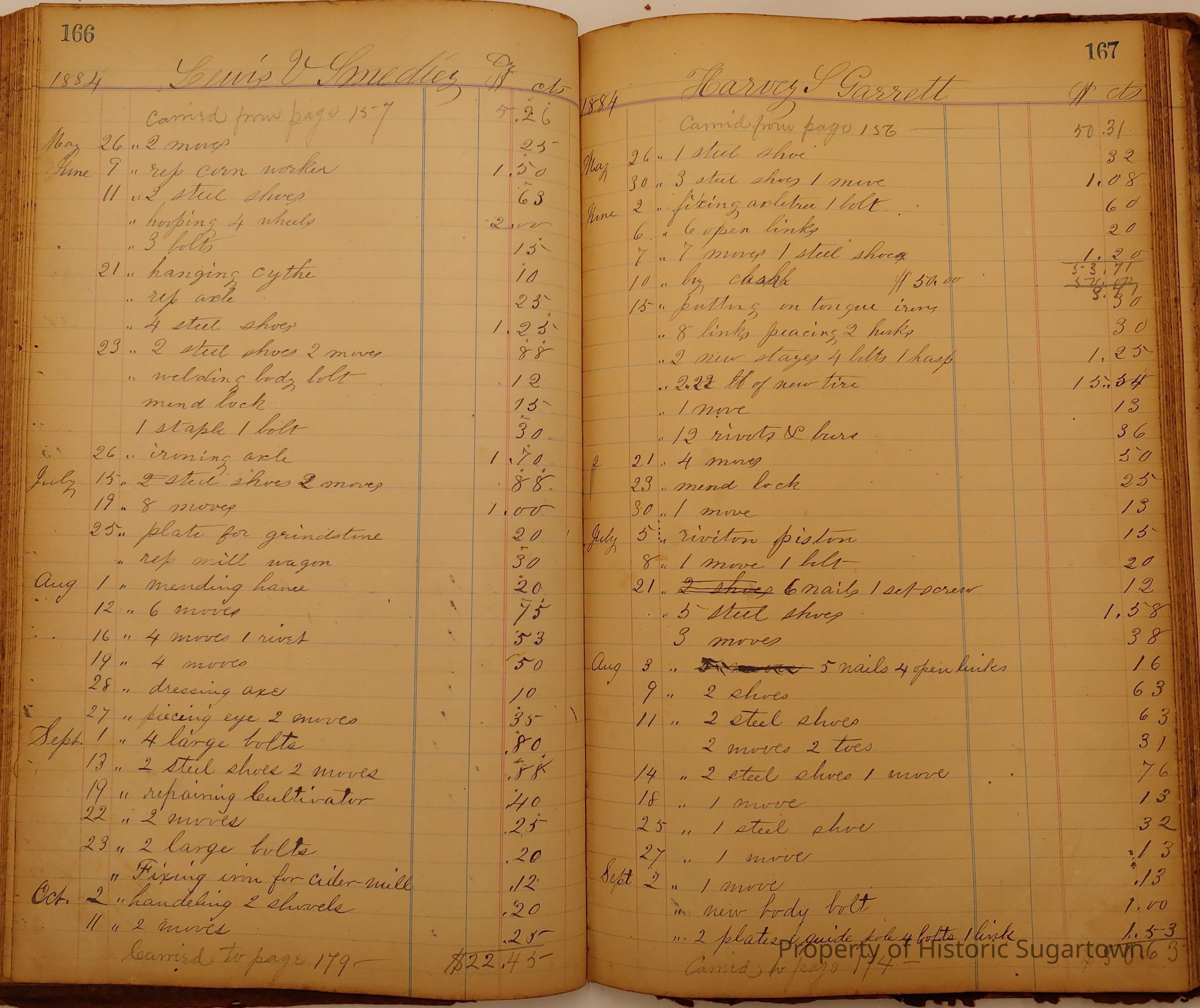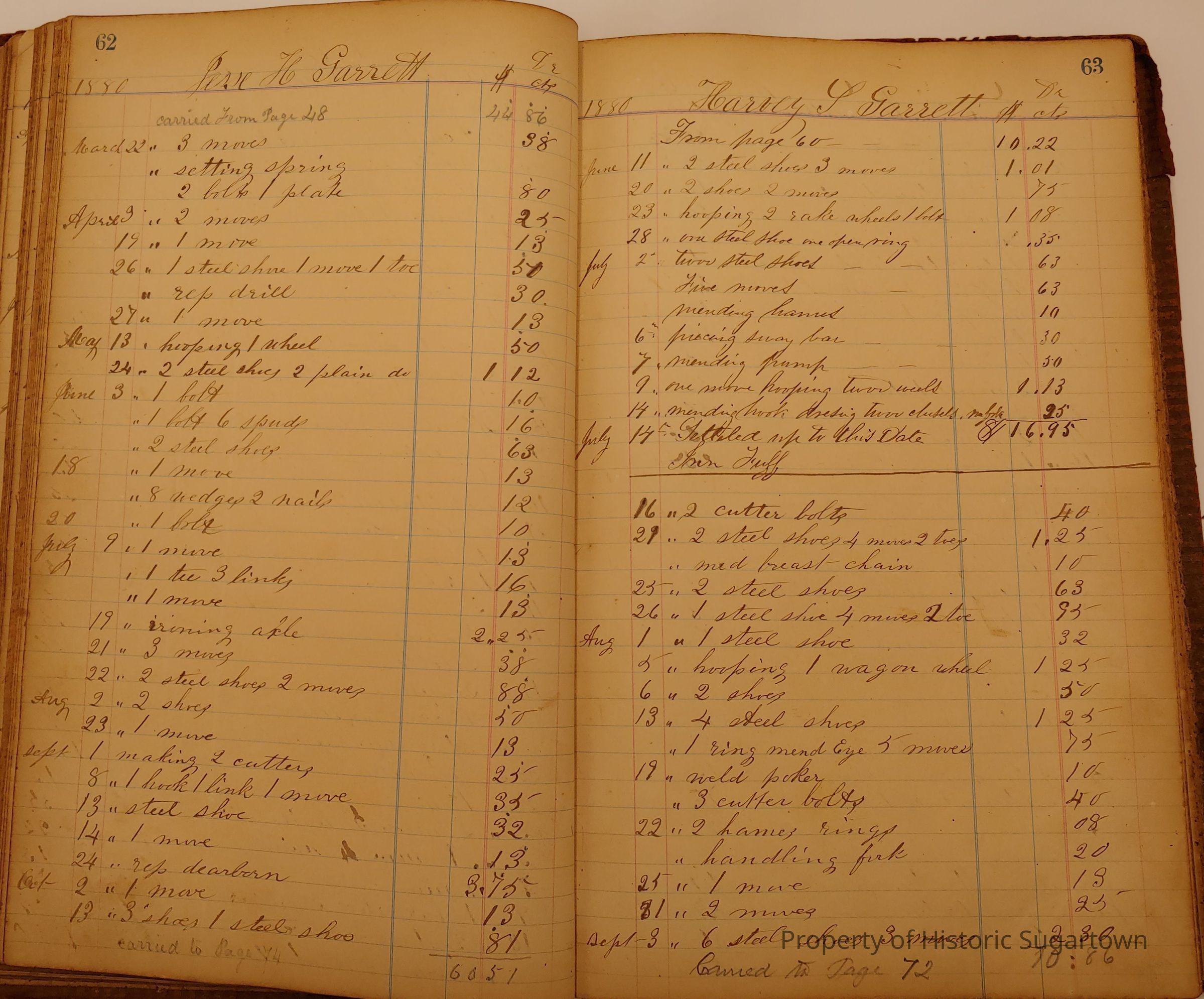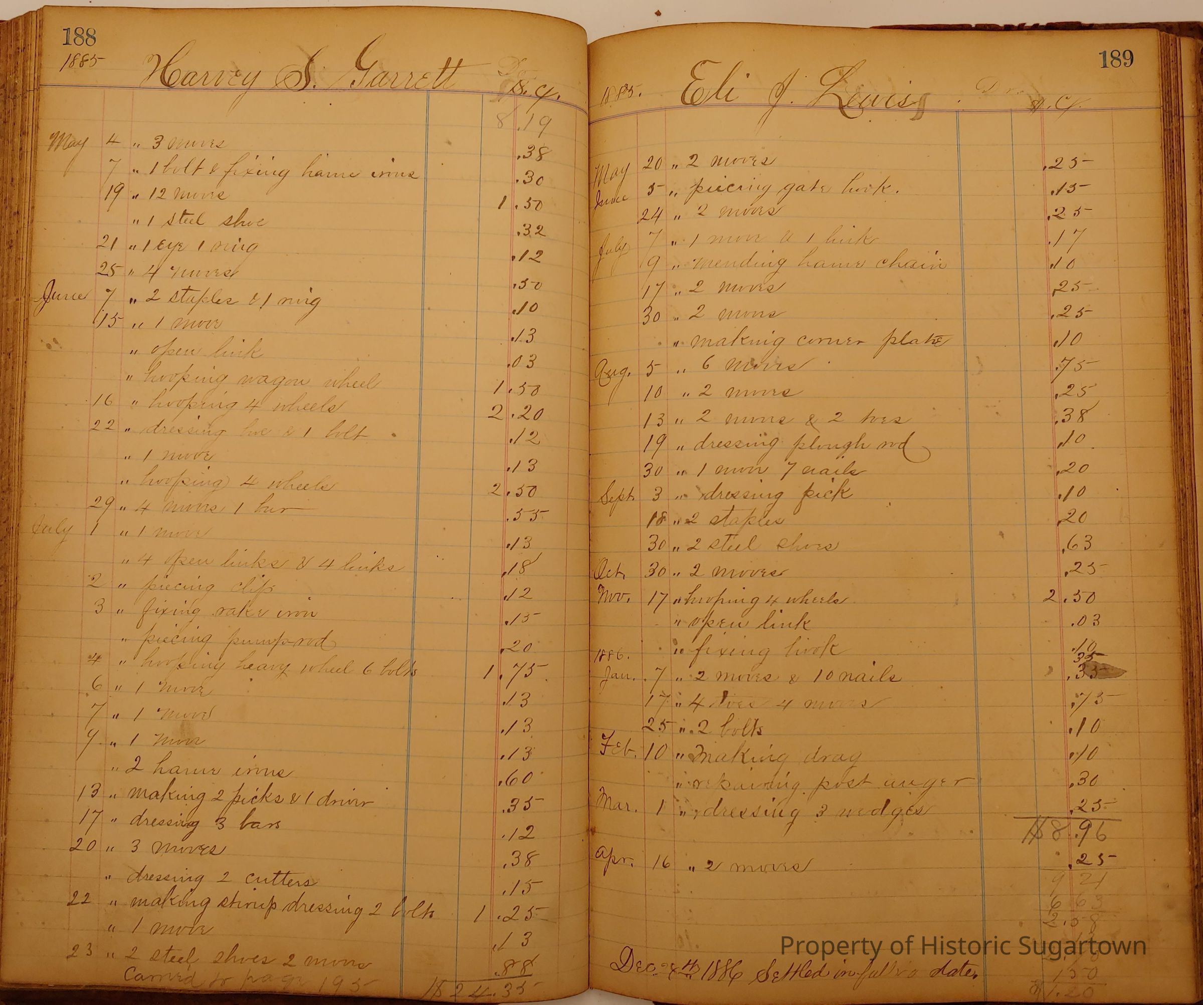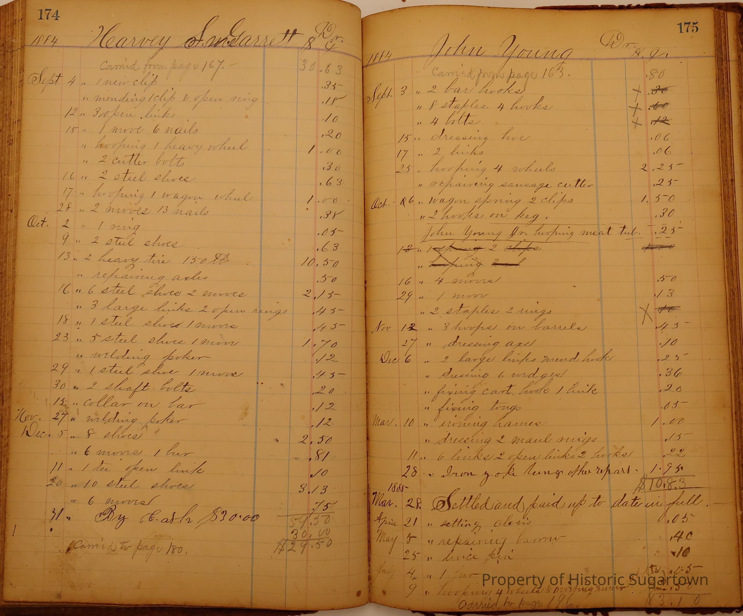 Local Blacksmith Daniel Green’s daybook and/or ledgers. This collection contains two daybooks with daily entries from 1864 to 1887. The daybooks in this collection contain many local and familiar names that populate this archive, including the Garrett family.Context