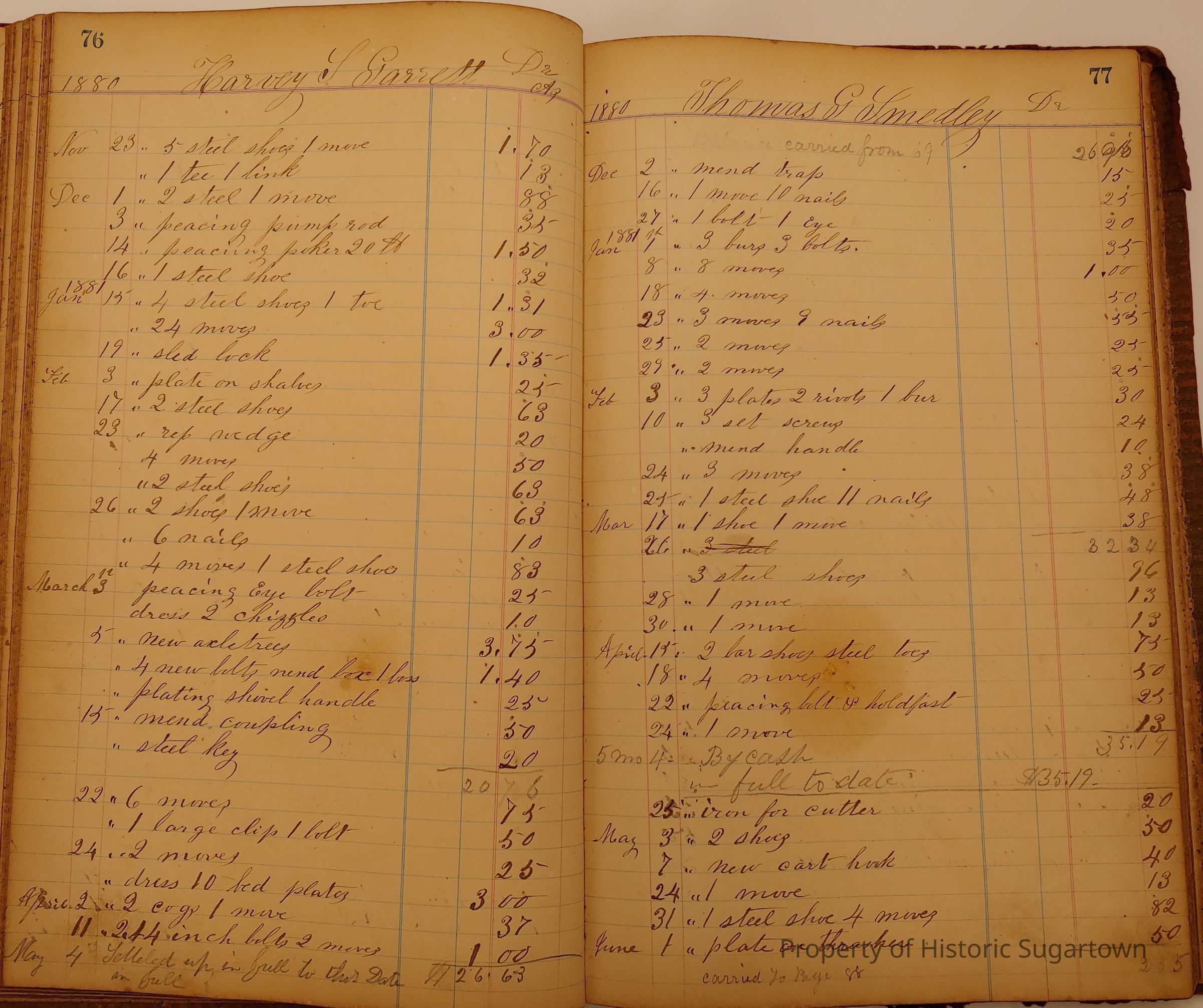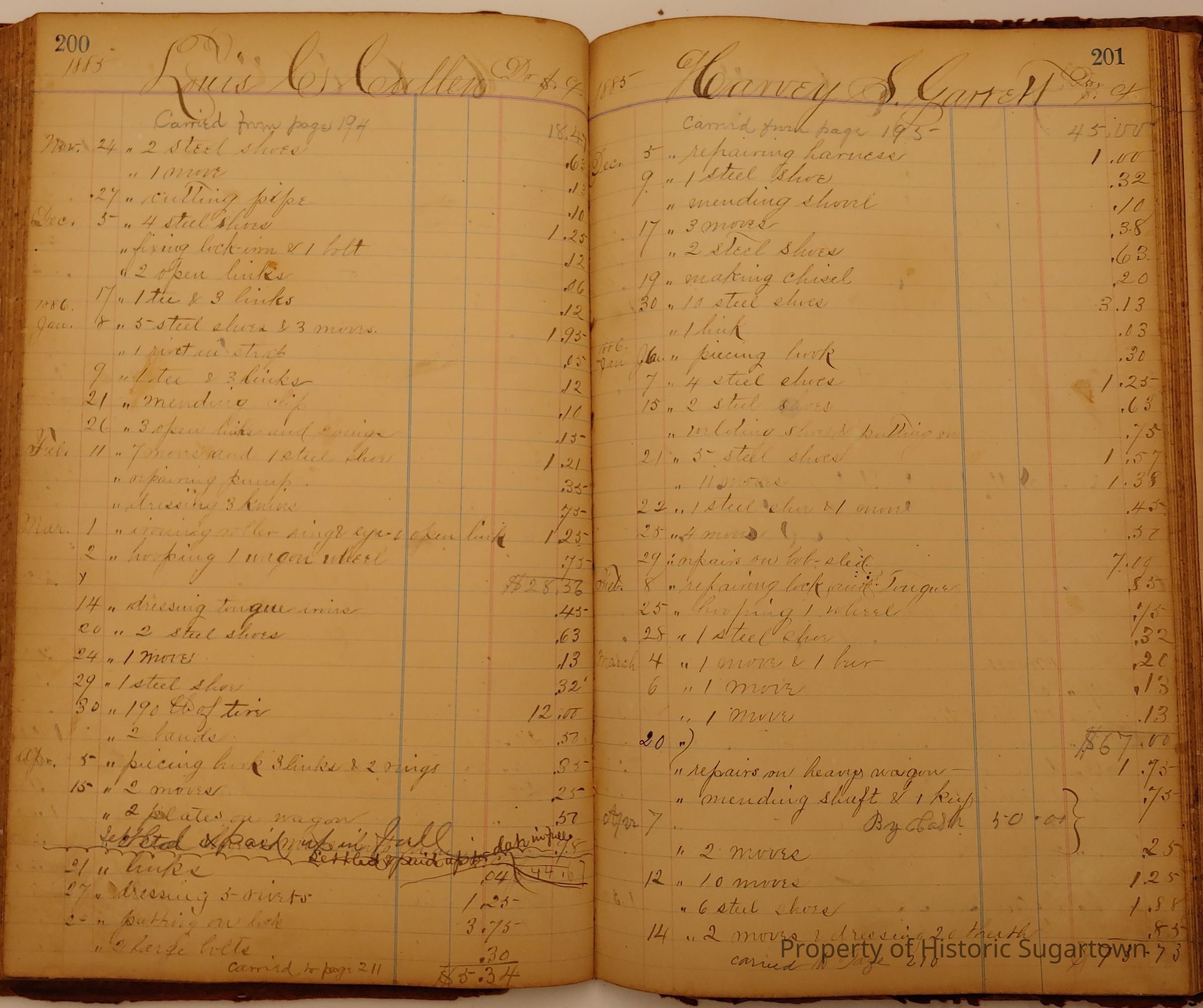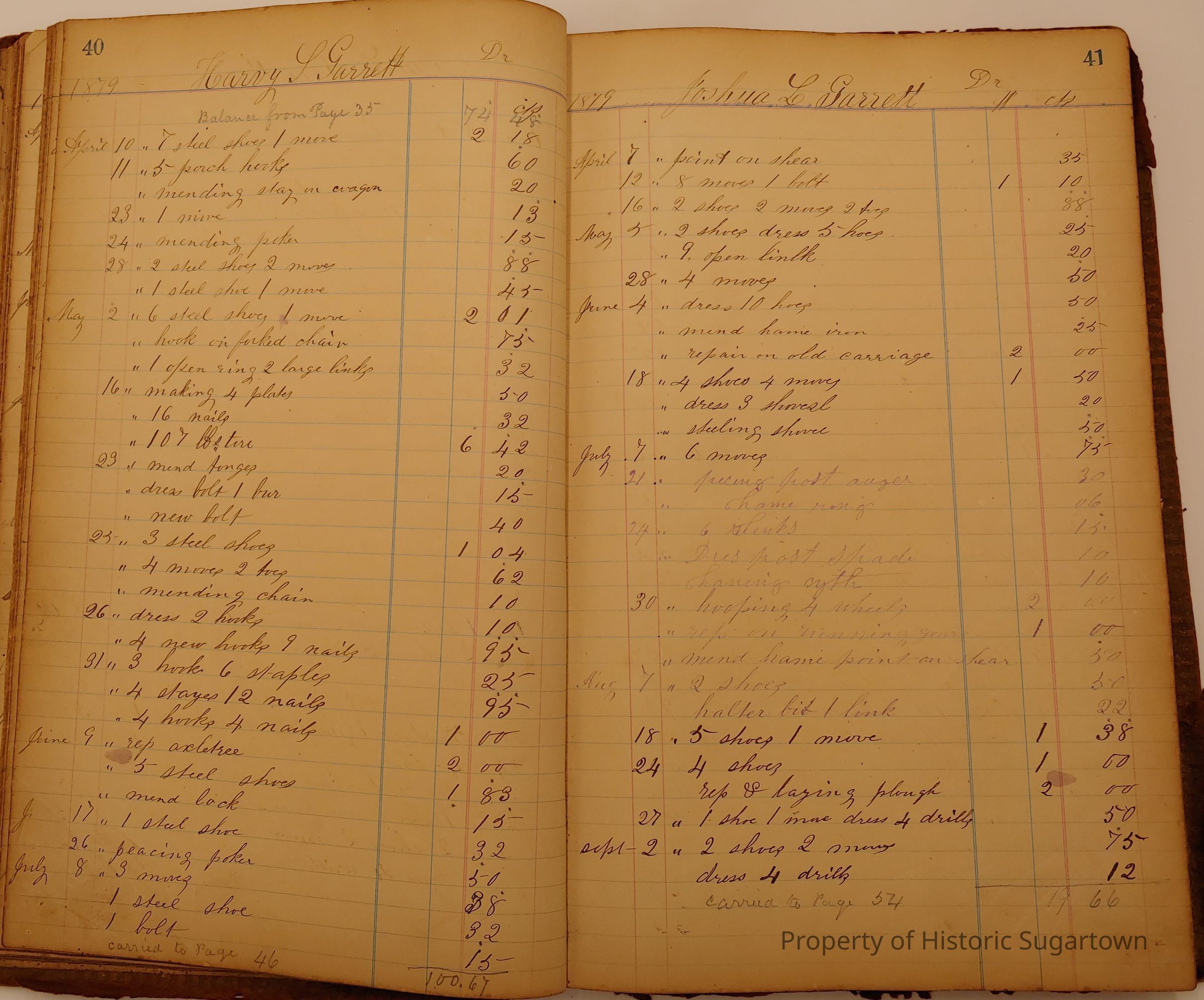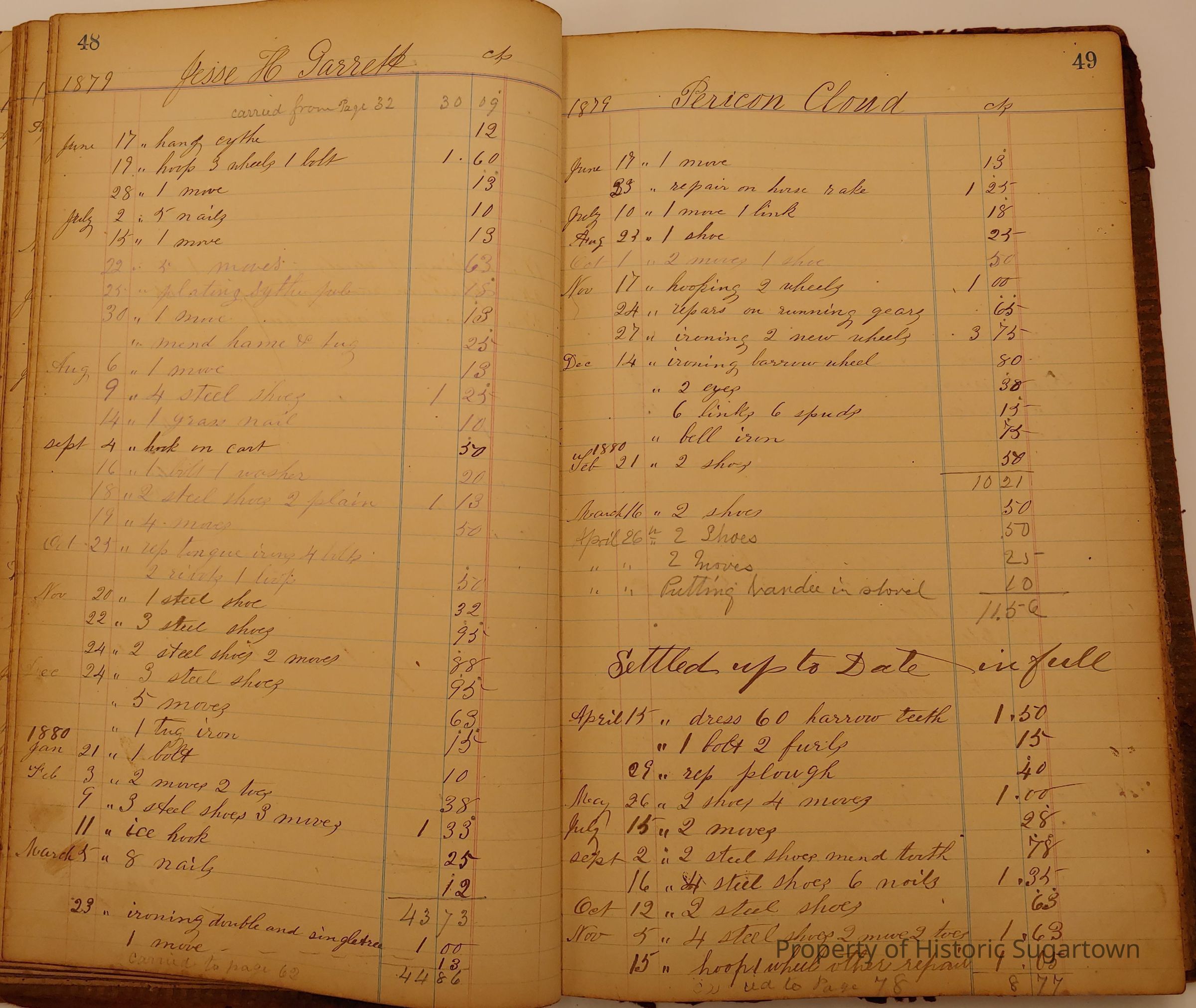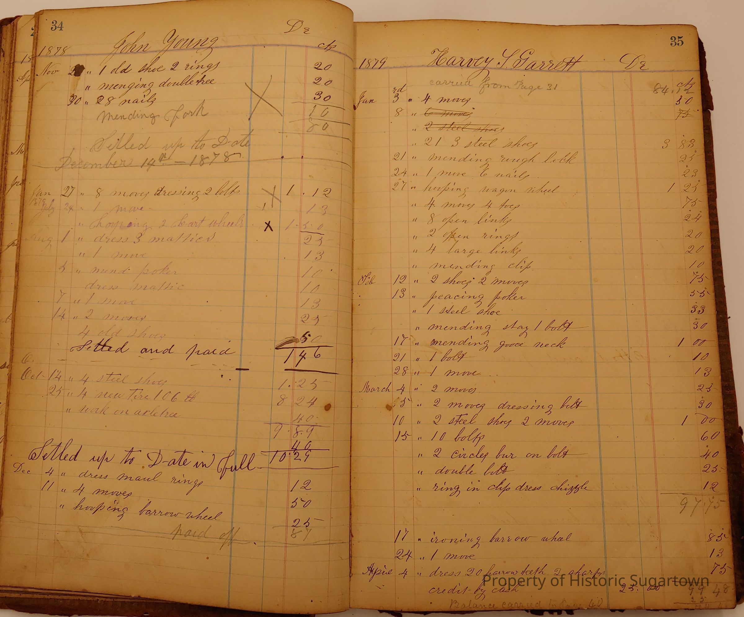 Local Blacksmith Daniel Green’s daybook and/or ledgers. This collection contains two daybooks with daily entries from 1864 to 1887. The daybooks in this collection contain many local and familiar names that populate this archive, including the Garrett family.Context