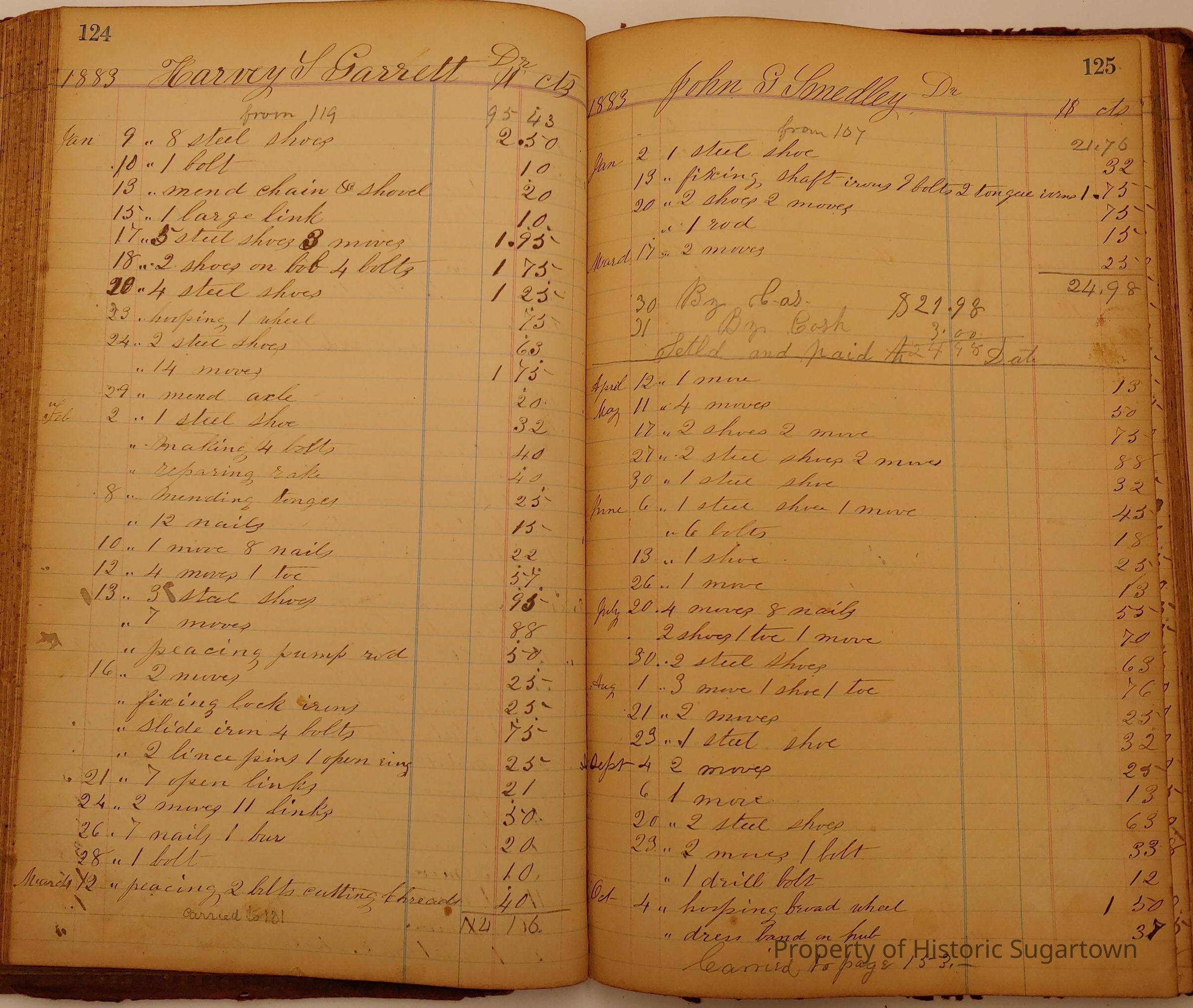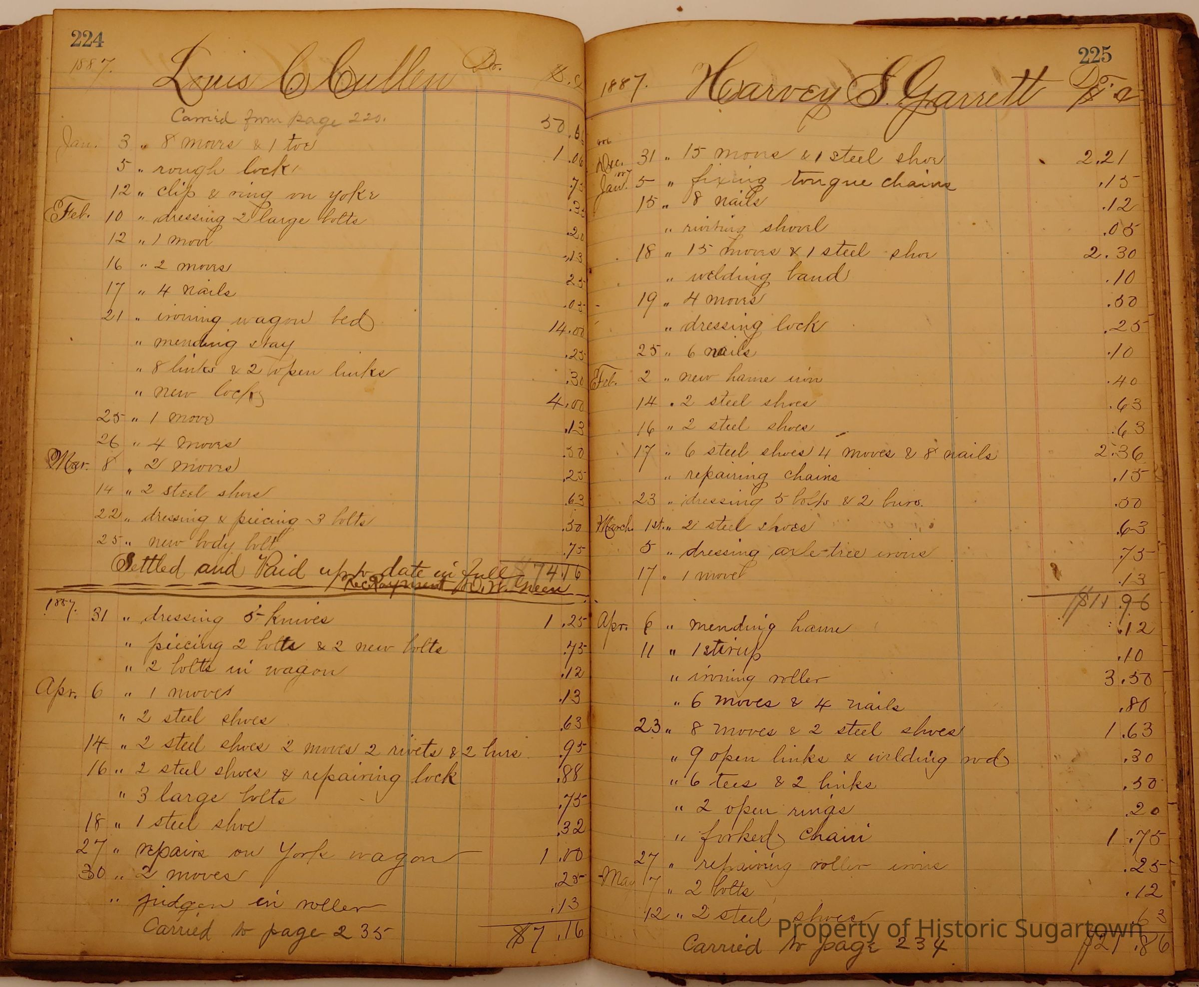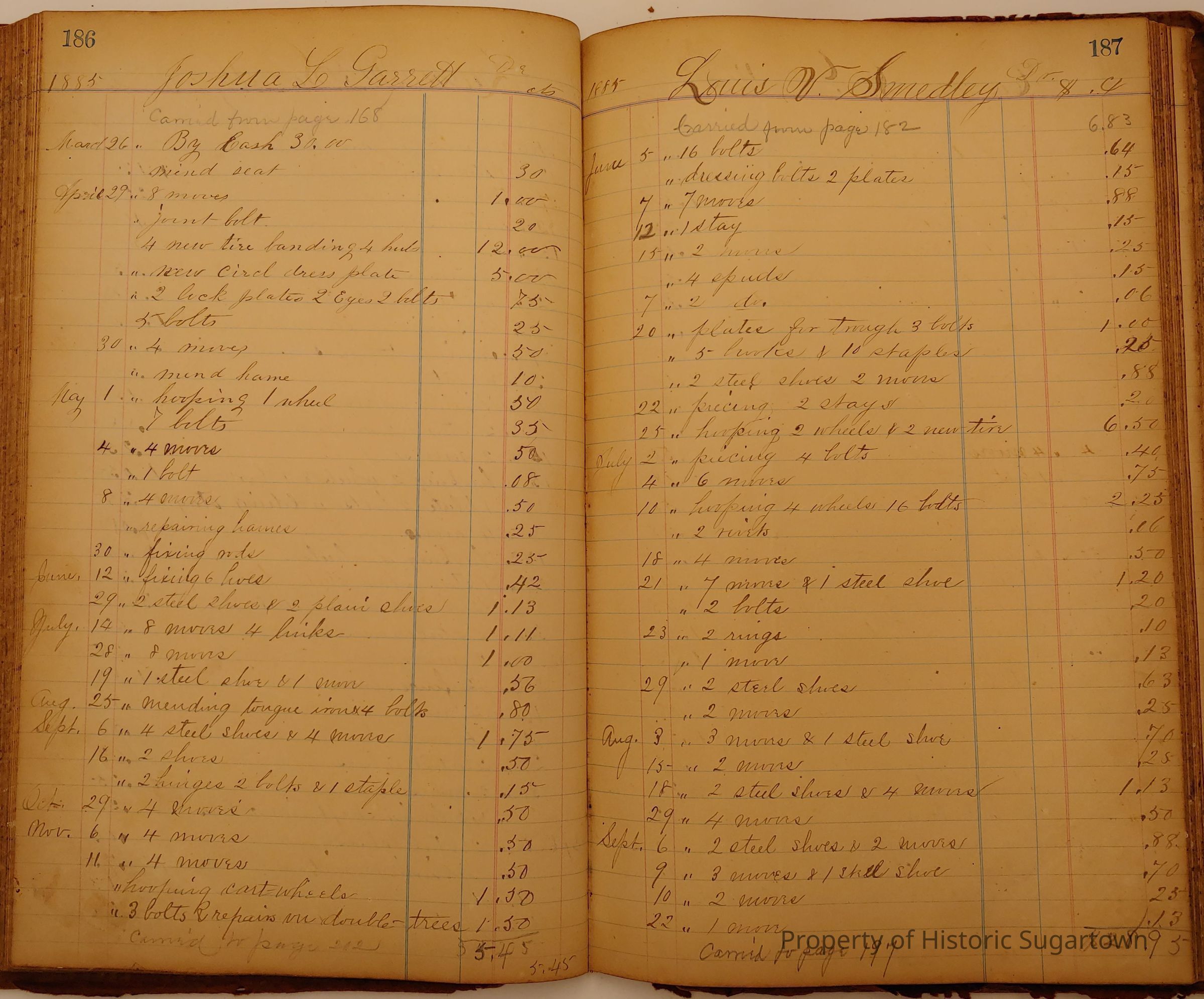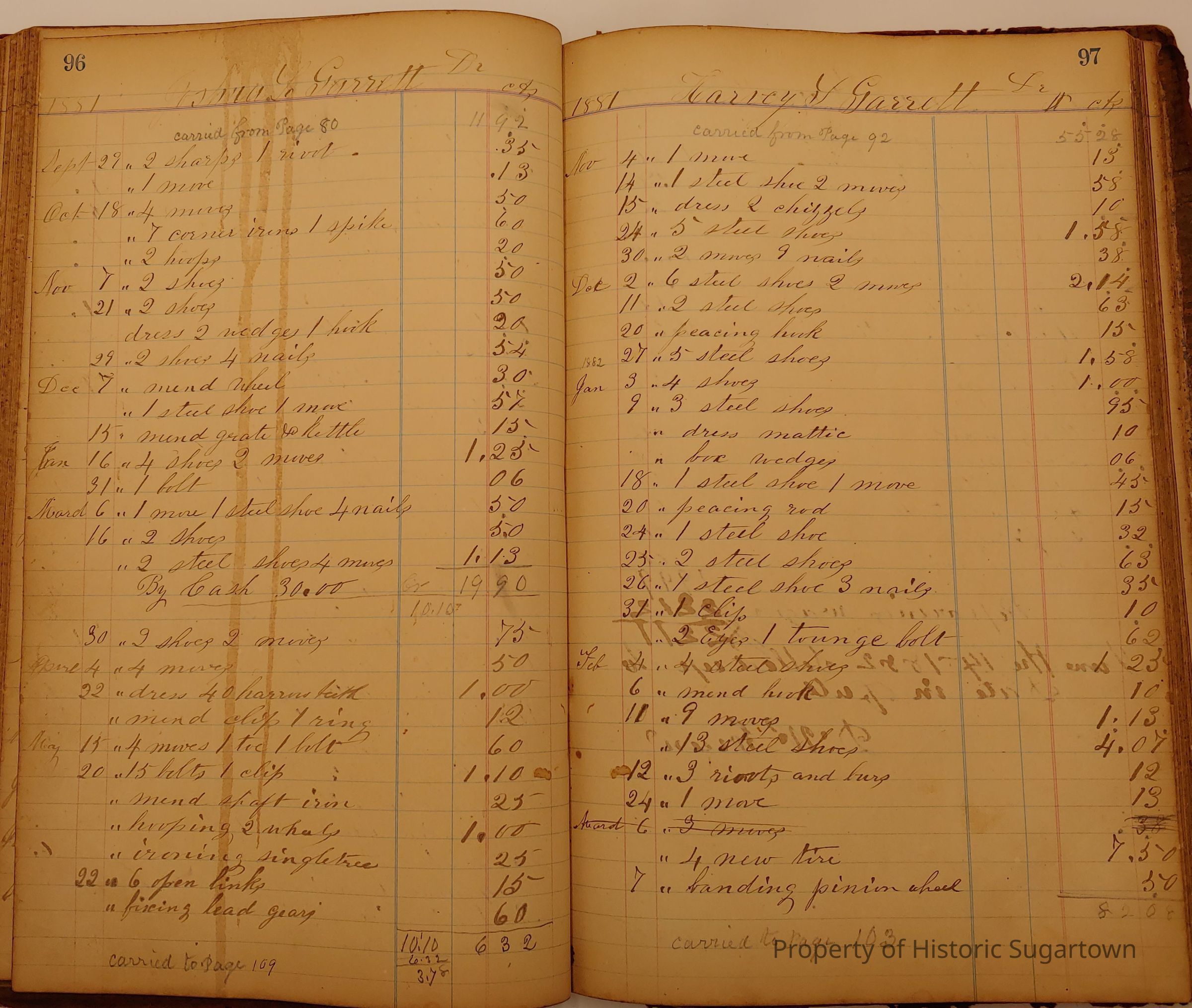 Local Blacksmith Daniel Green’s daybook and/or ledgers. This collection contains two daybooks with daily entries from 1864 to 1887. The daybooks in this collection contain many local and familiar names that populate this archive, including the Garrett family.Context