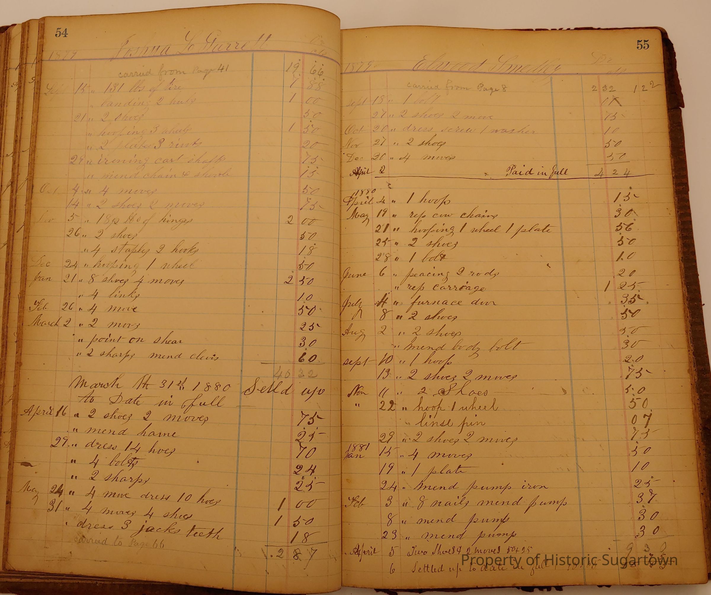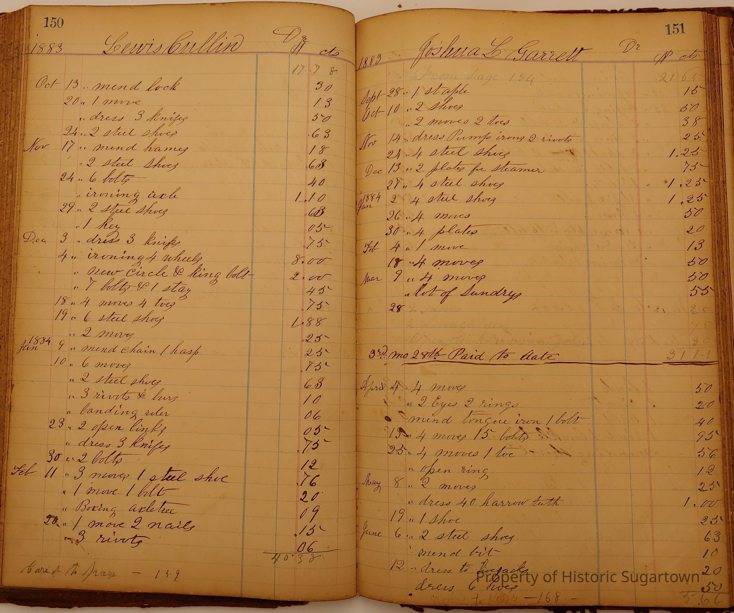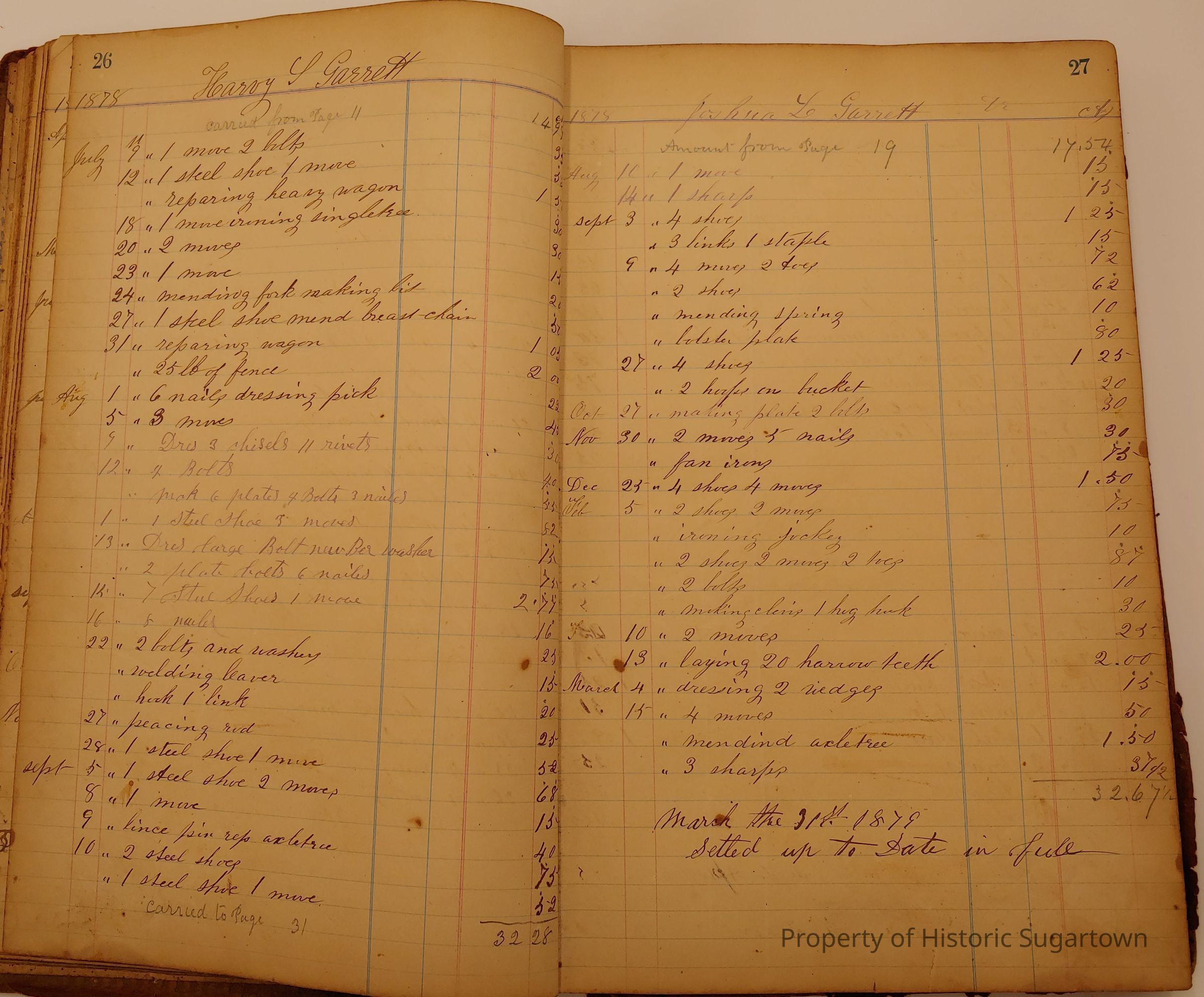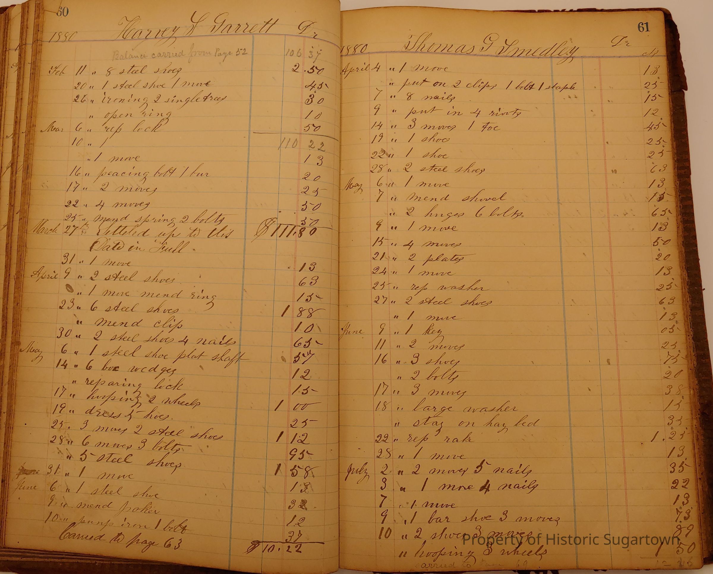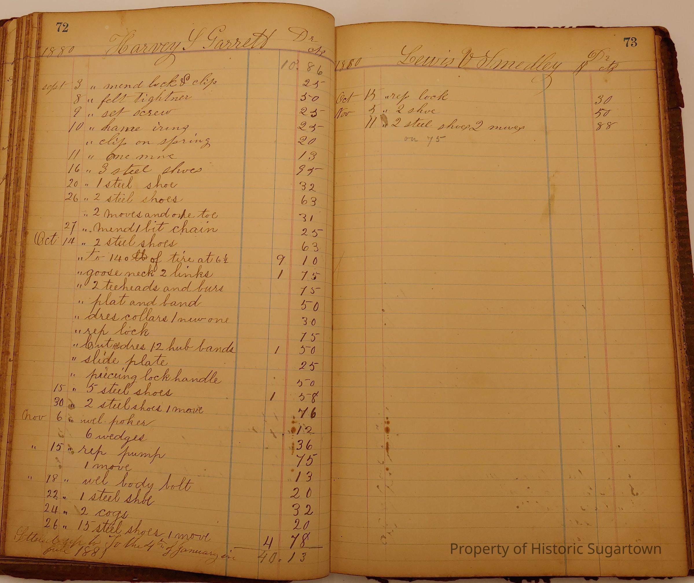 Local Blacksmith Daniel Green’s daybook and/or ledgers. This collection contains two daybooks with daily entries from 1864 to 1887. The daybooks in this collection contain many local and familiar names that populate this archive, including the Garrett family.Context