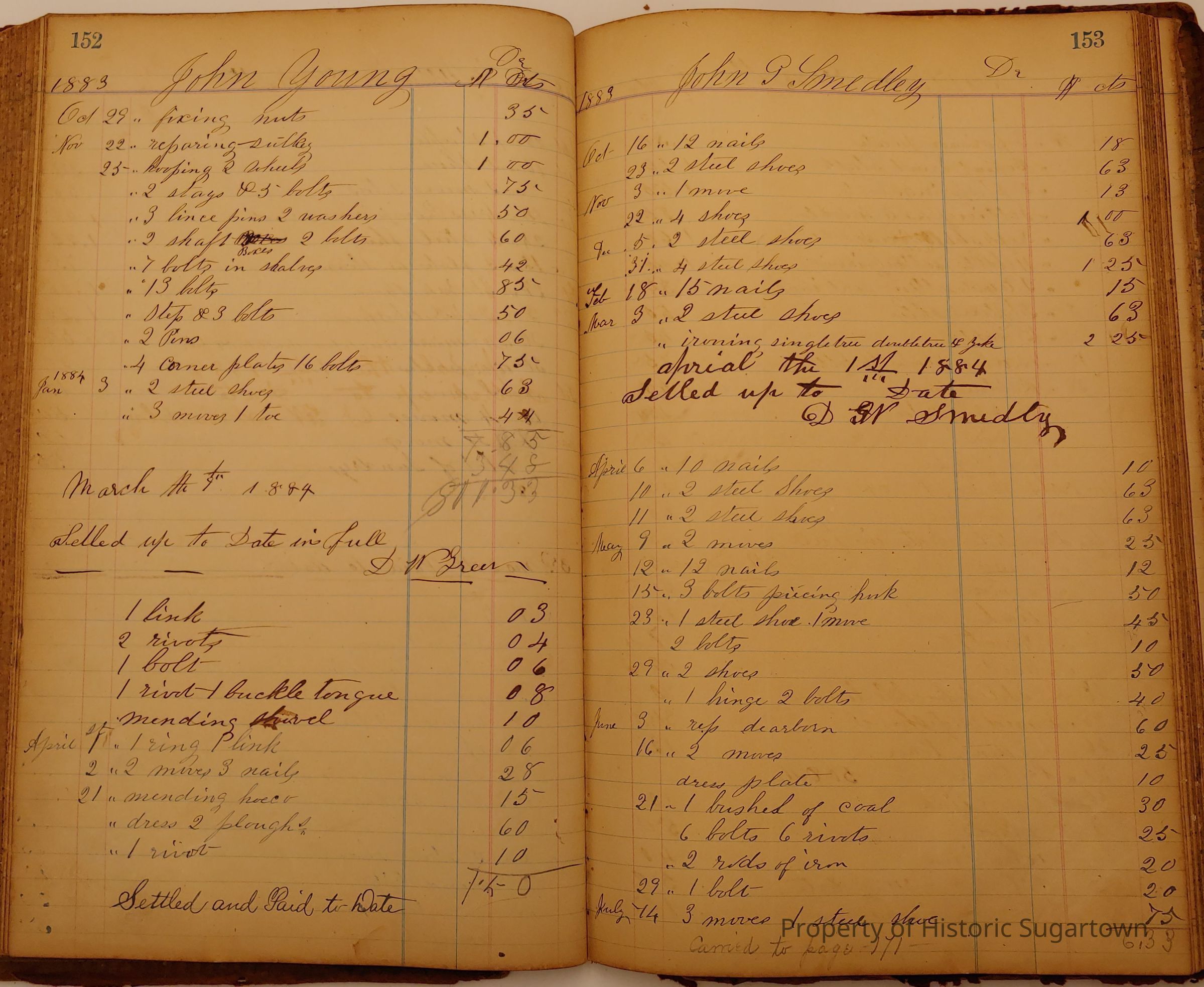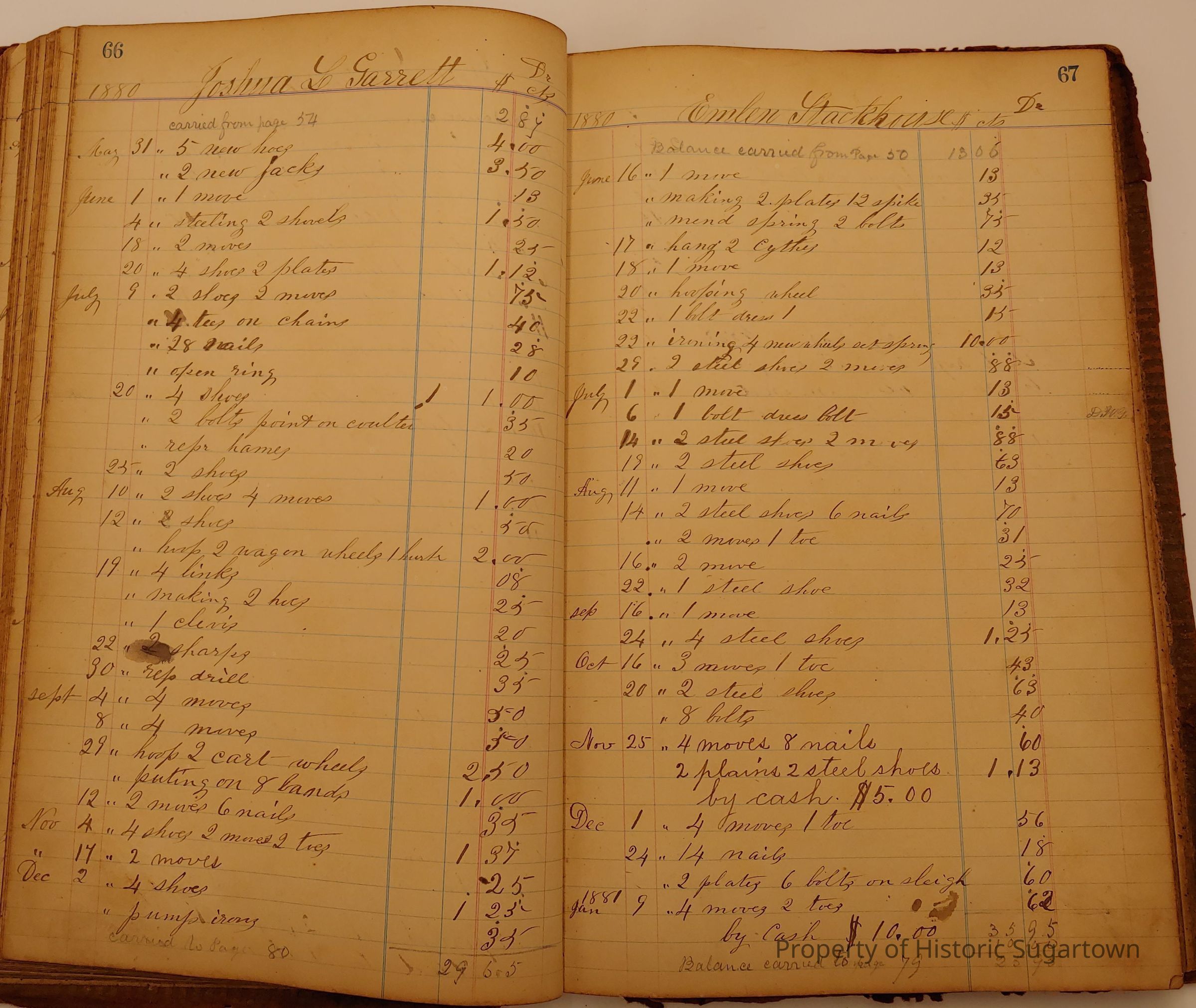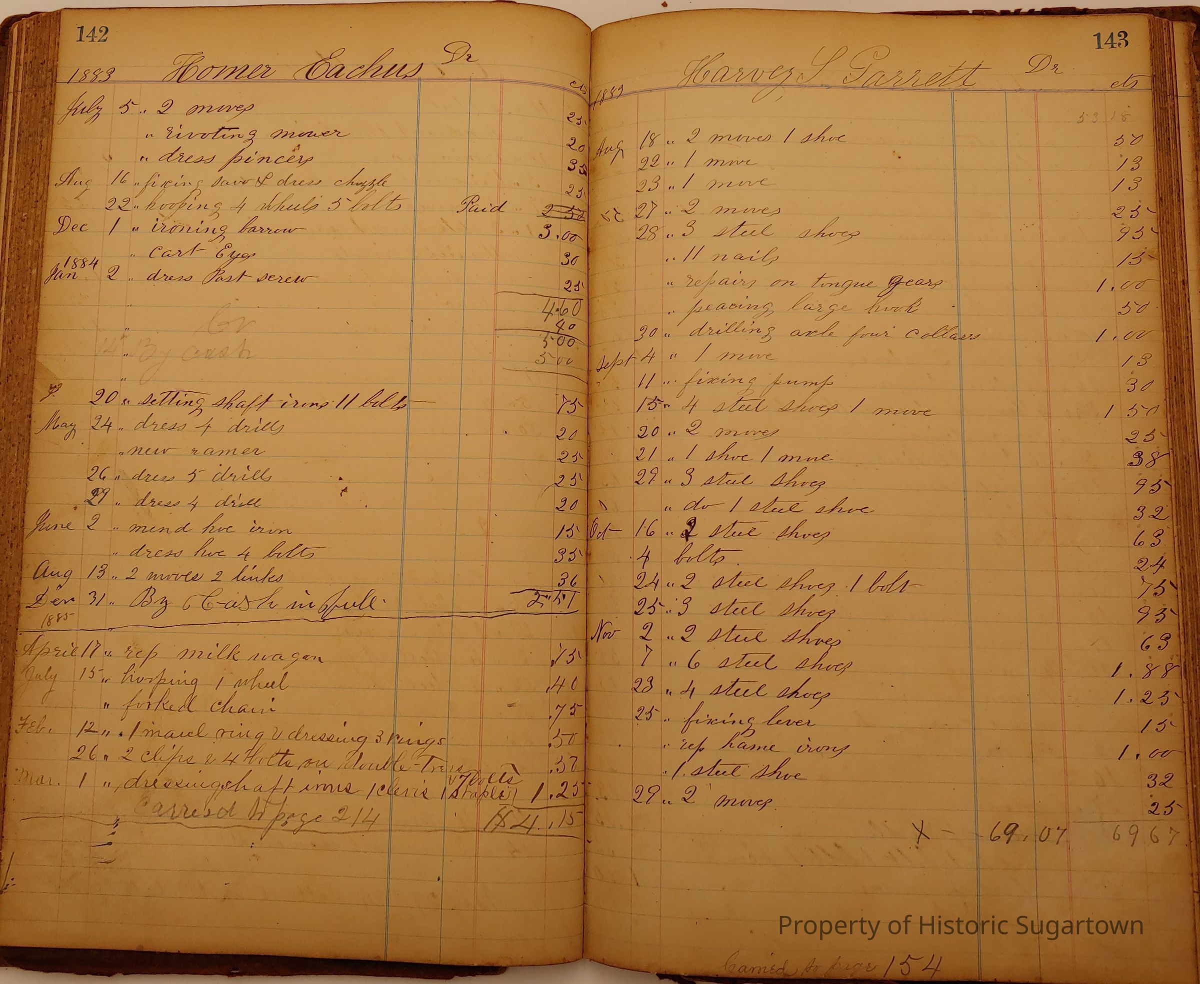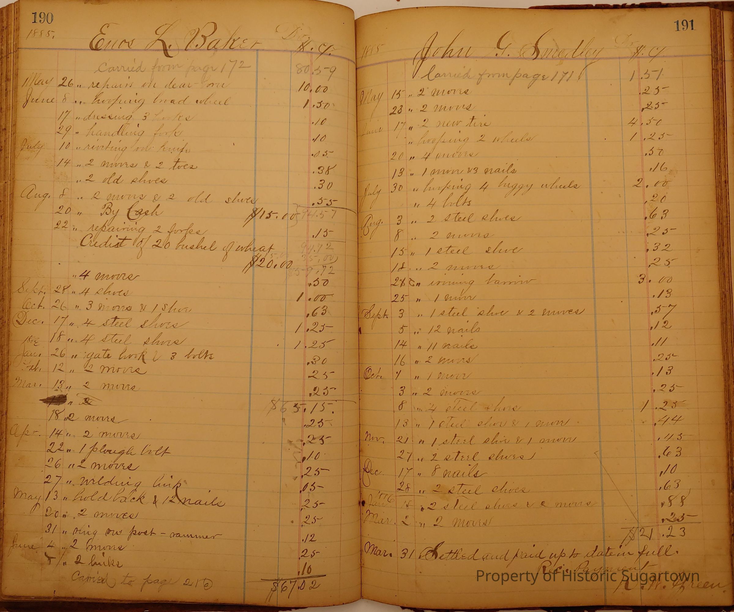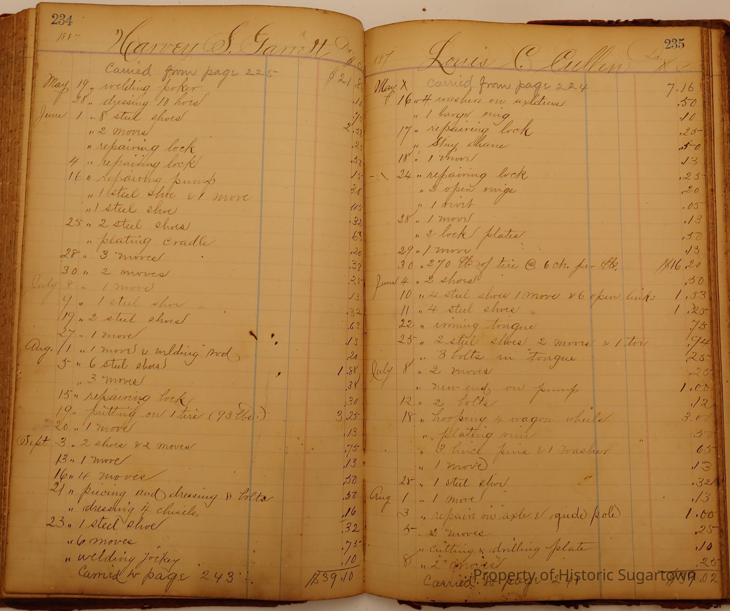 Local Blacksmith Daniel Green’s daybook and/or ledgers. This collection contains two daybooks with daily entries from 1864 to 1887. The daybooks in this collection contain many local and familiar names that populate this archive, including the Garrett family.Context