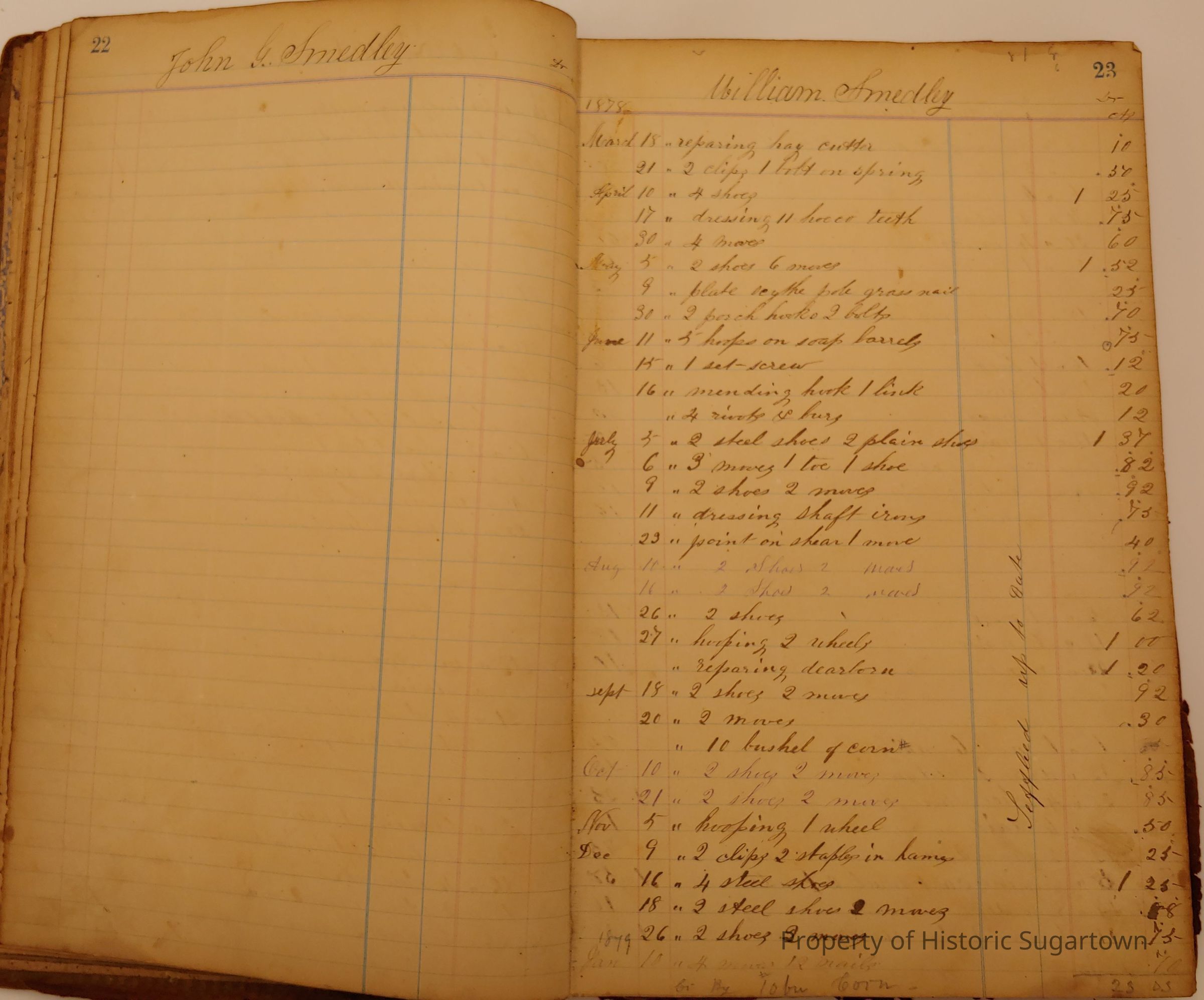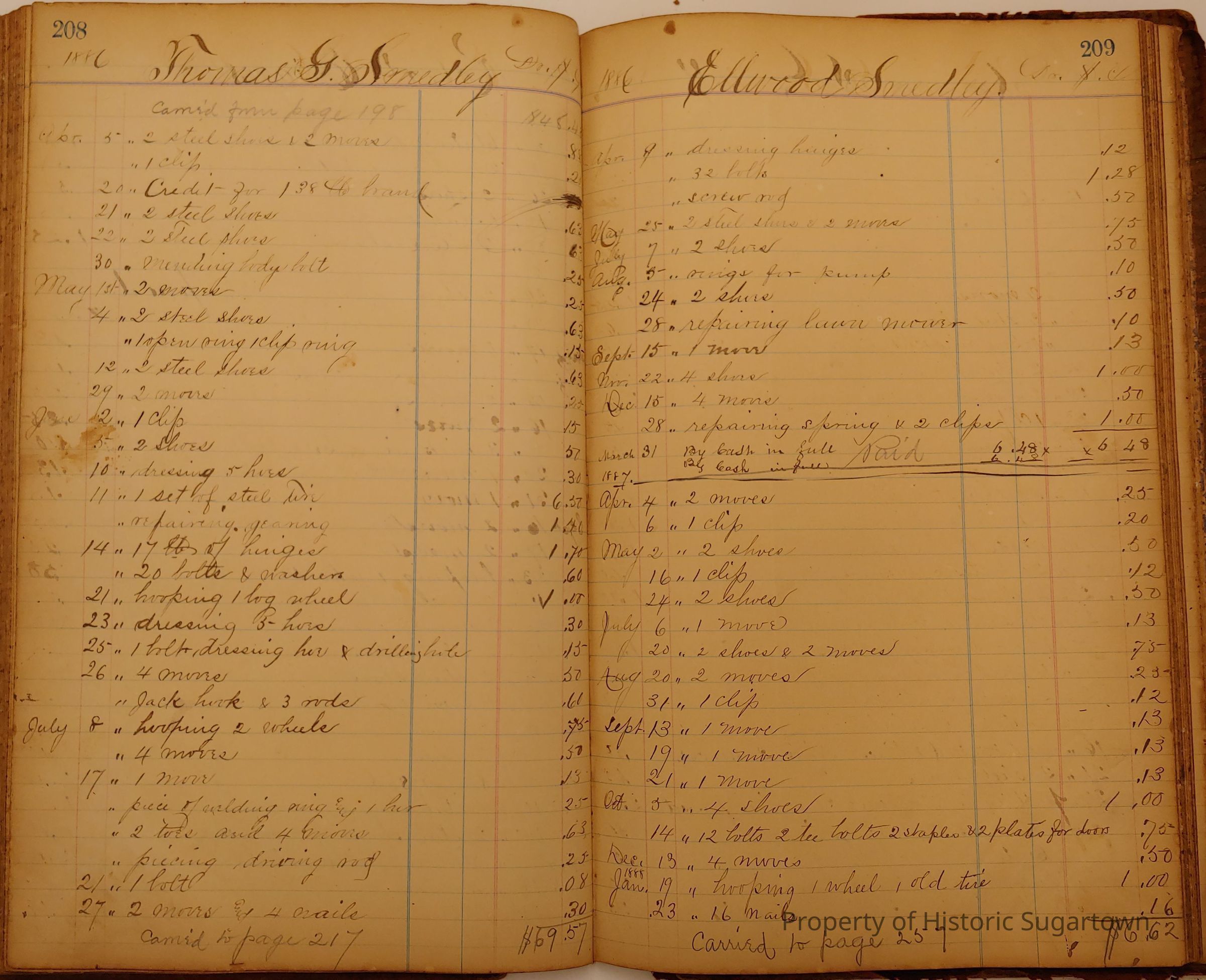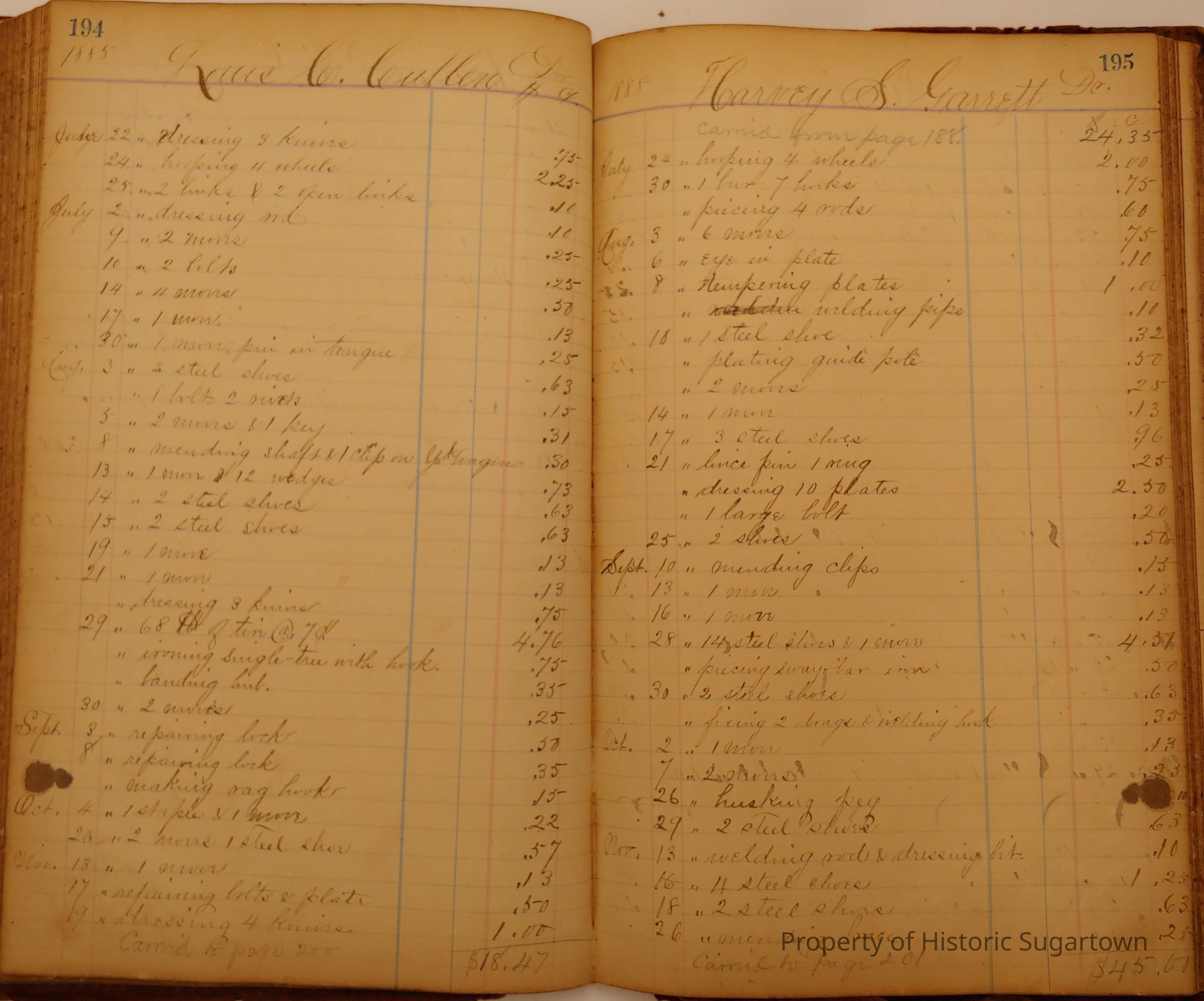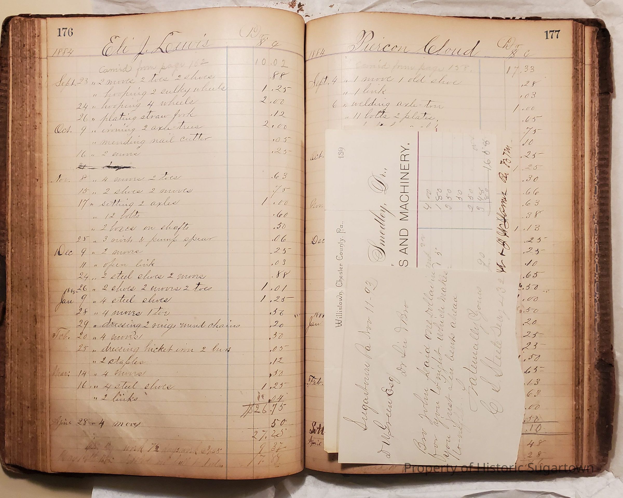 Local Blacksmith Daniel Green’s daybook and/or ledgers. This collection contains two daybooks with daily entries from 1864 to 1887. The daybooks in this collection contain many local and familiar names that populate this archive, including the Garrett family.Context
