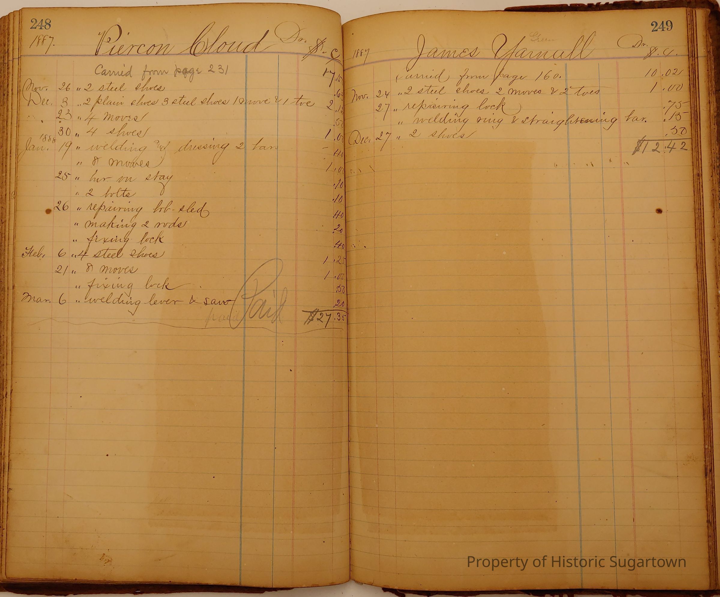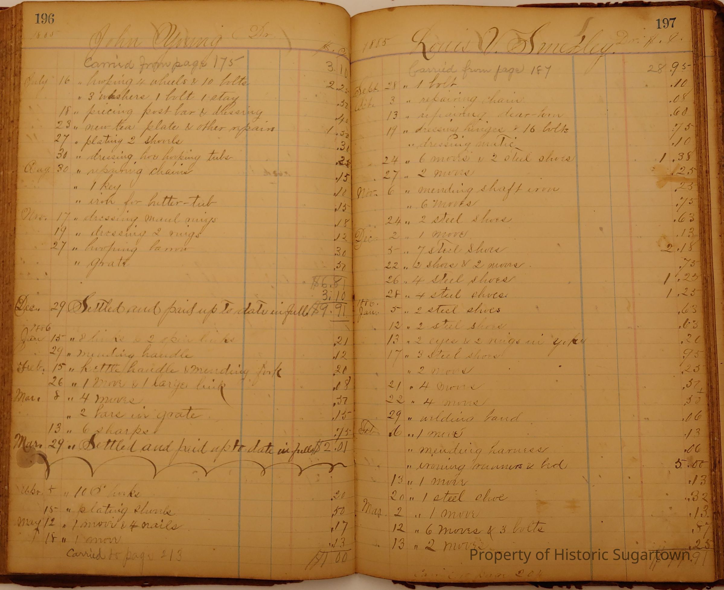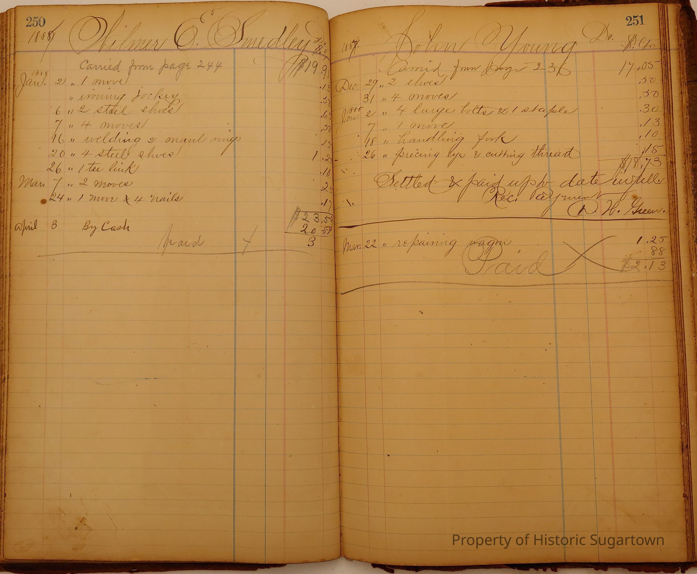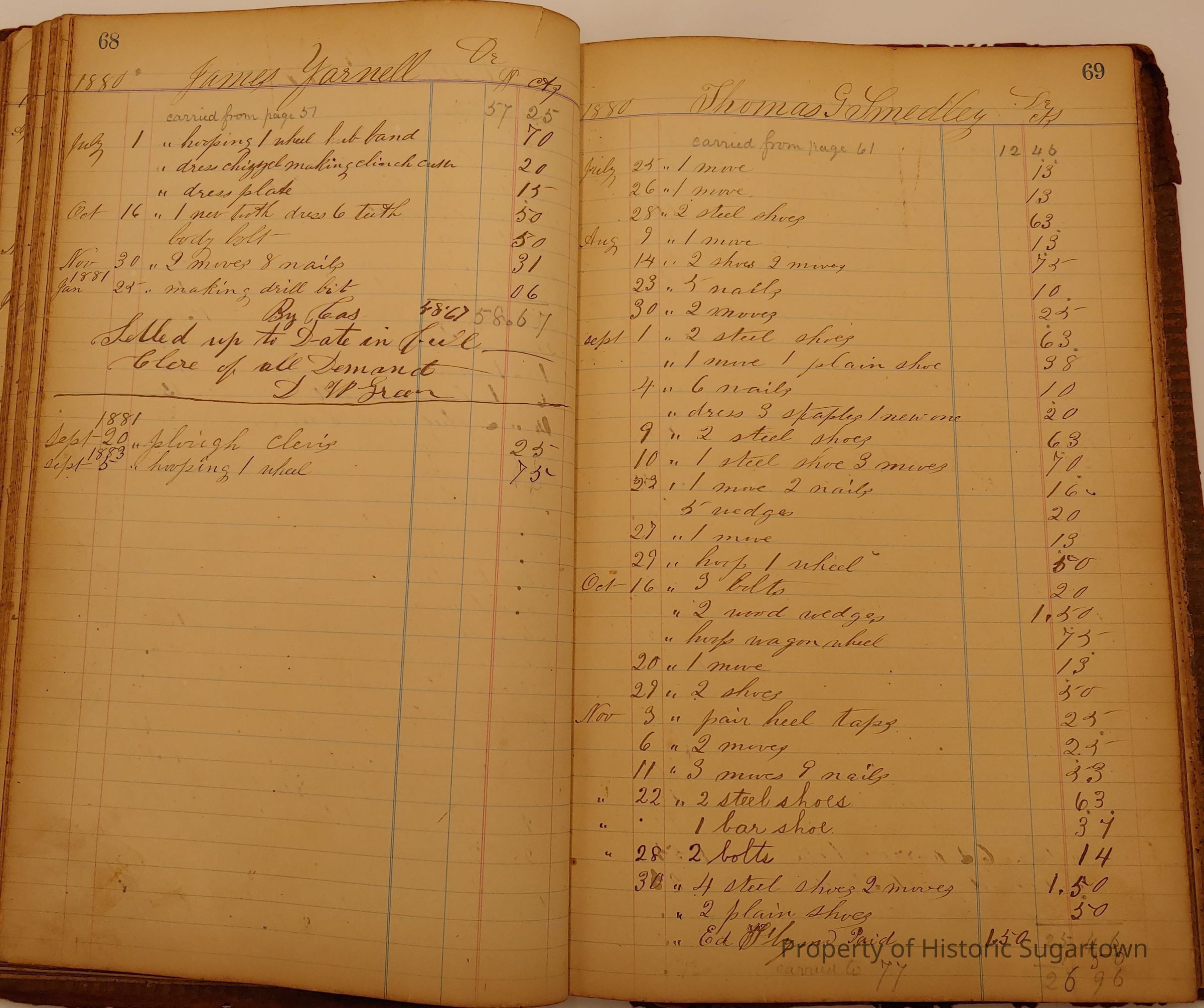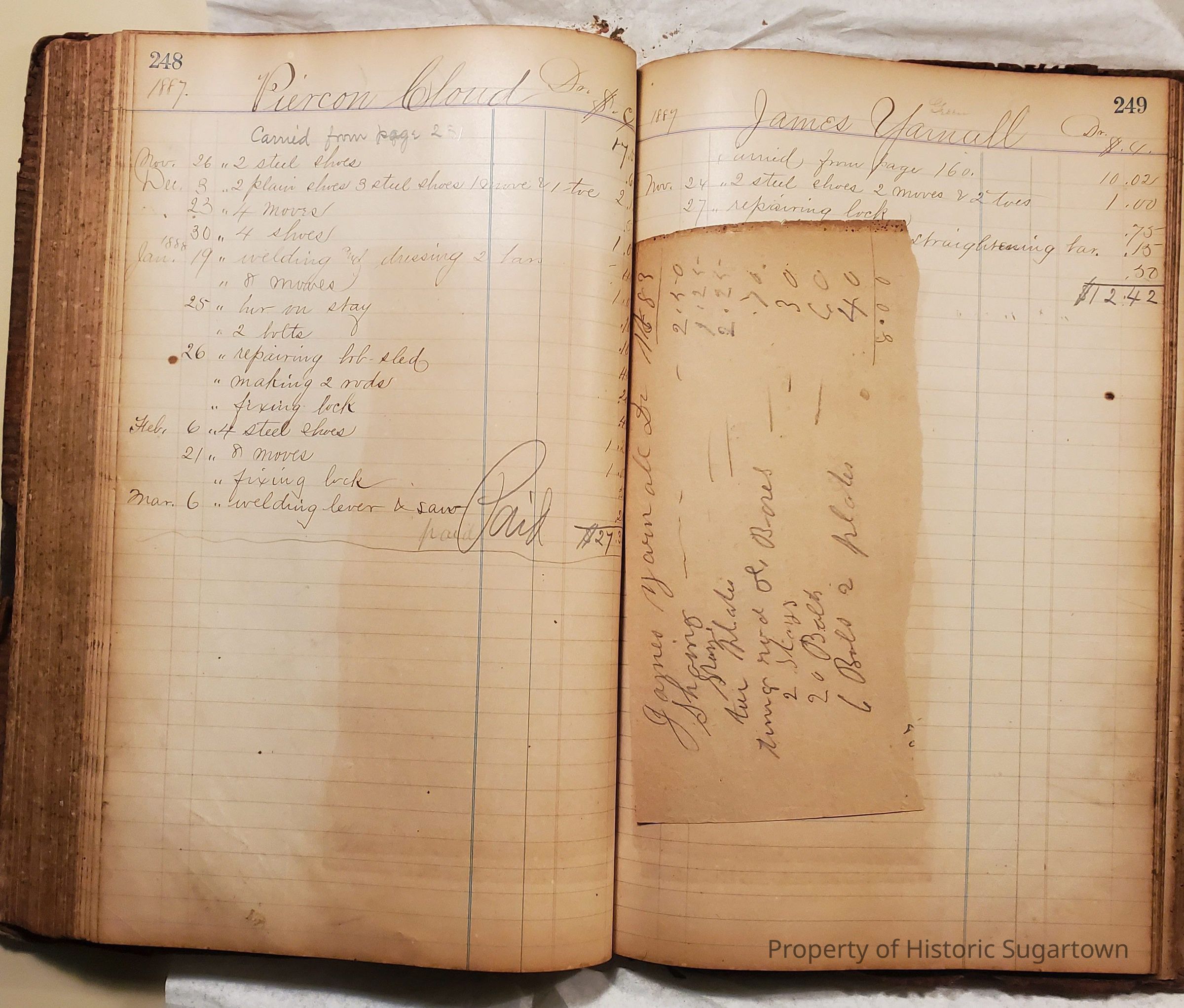 Local Blacksmith Daniel Green’s daybook and/or ledgers. This collection contains two daybooks with daily entries from 1864 to 1887. The daybooks in this collection contain many local and familiar names that populate this archive, including the Garrett family.Context