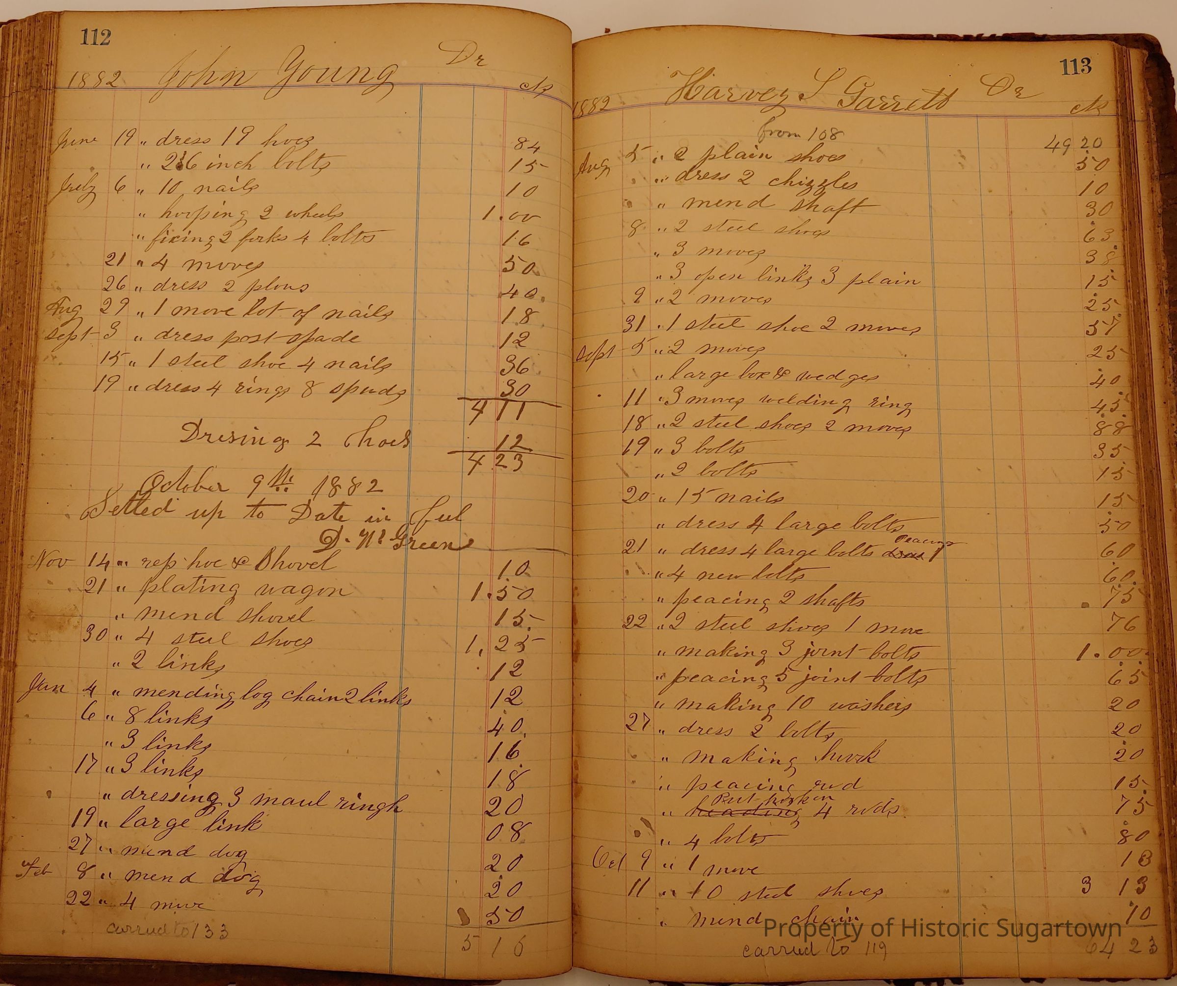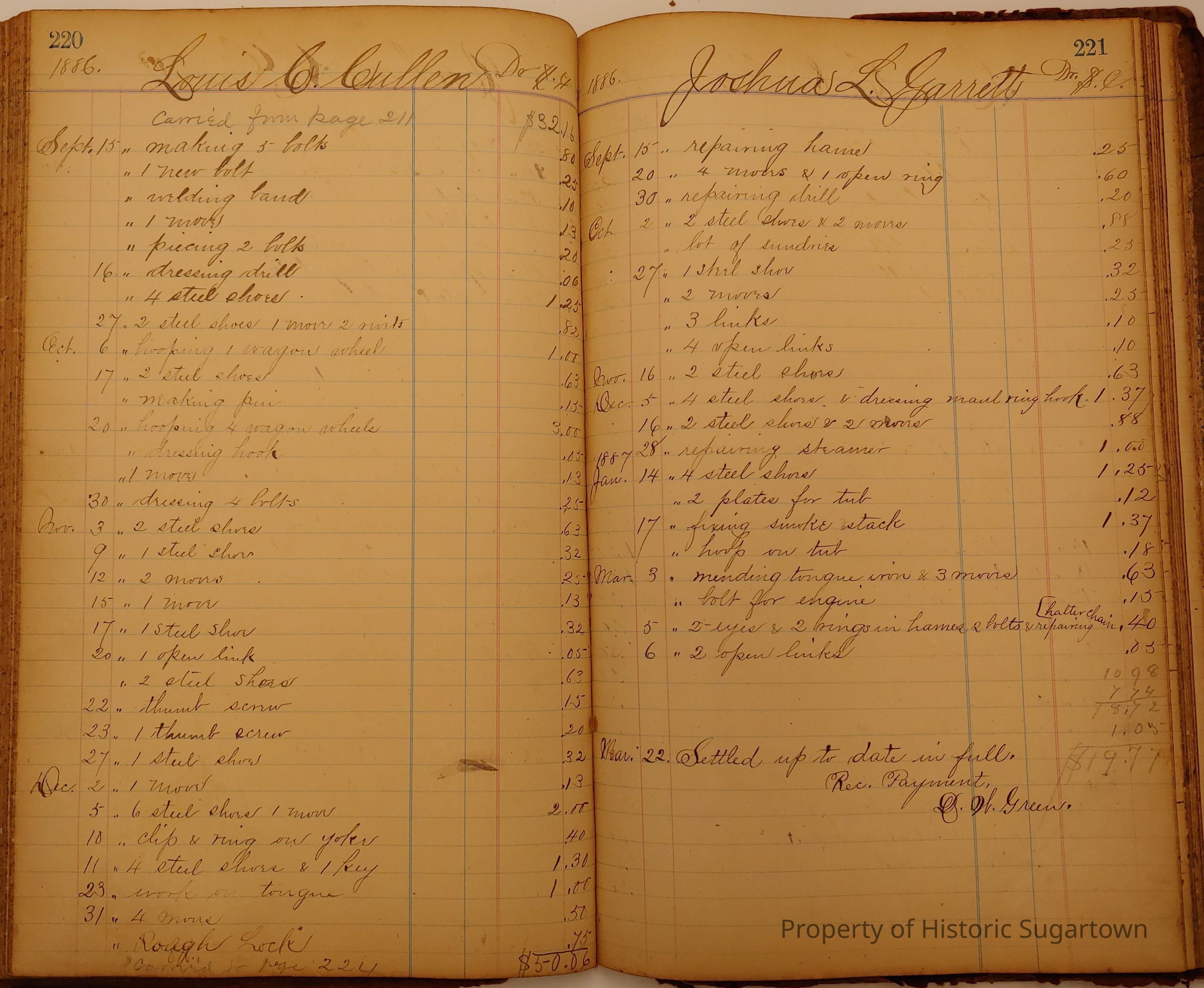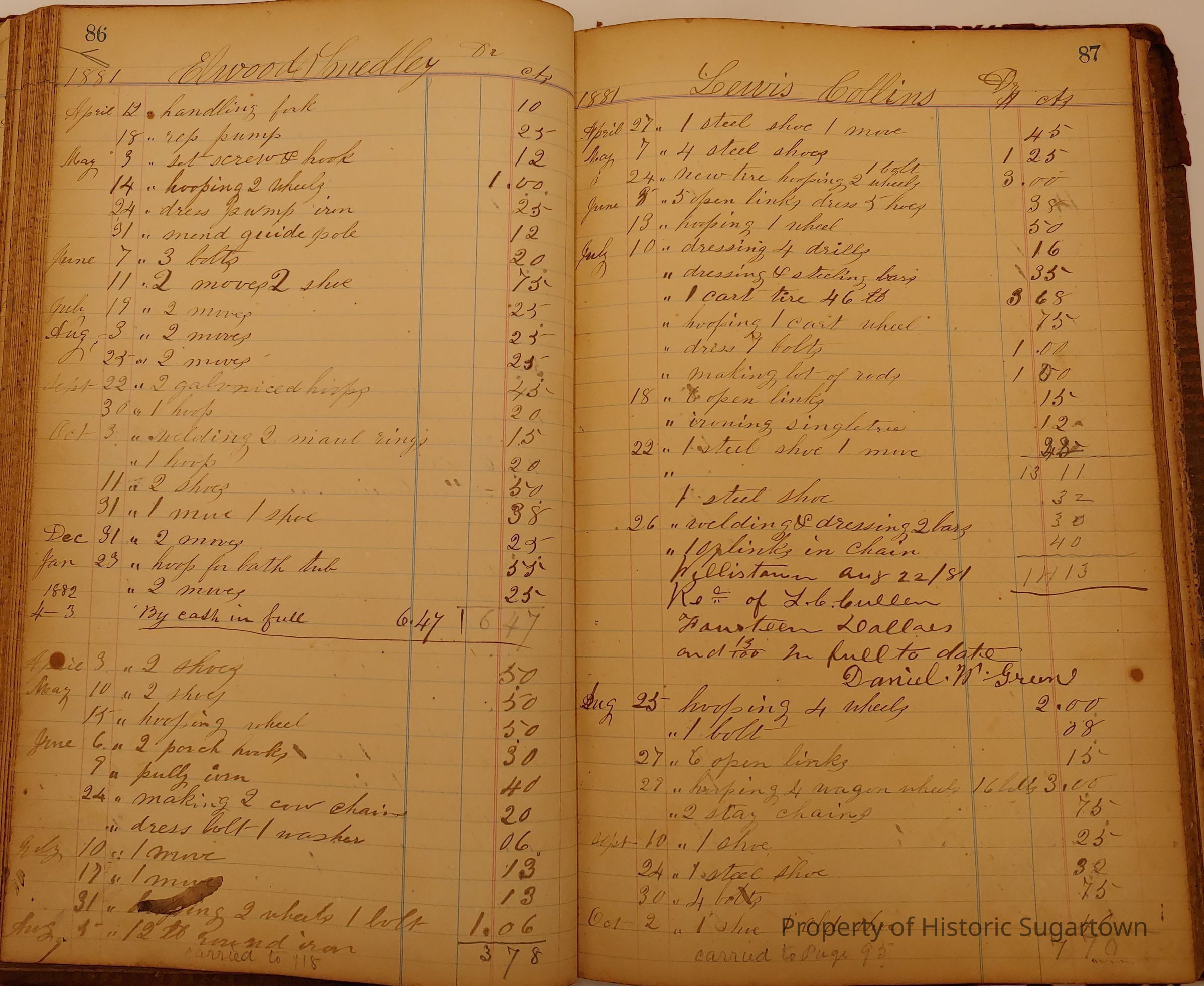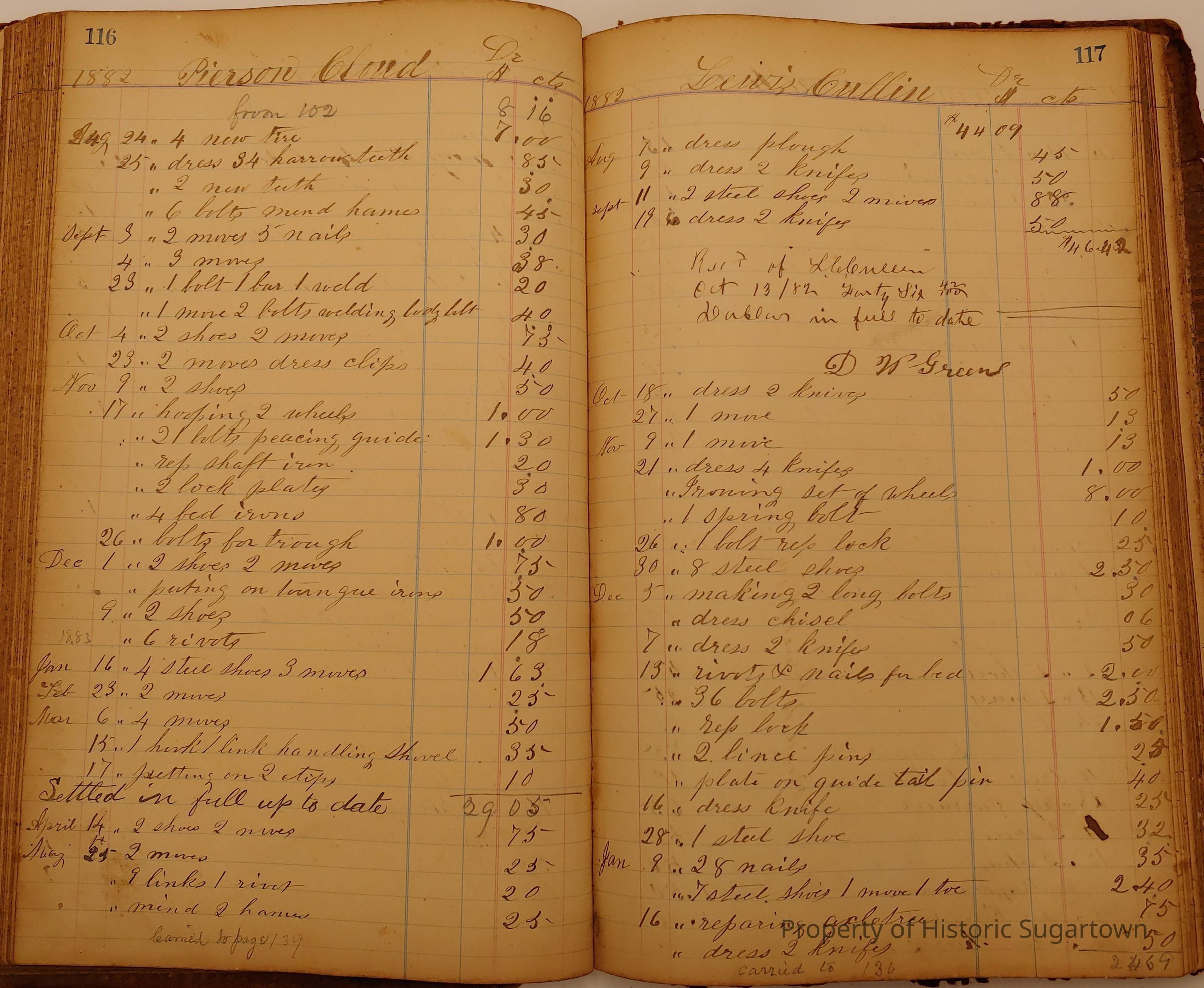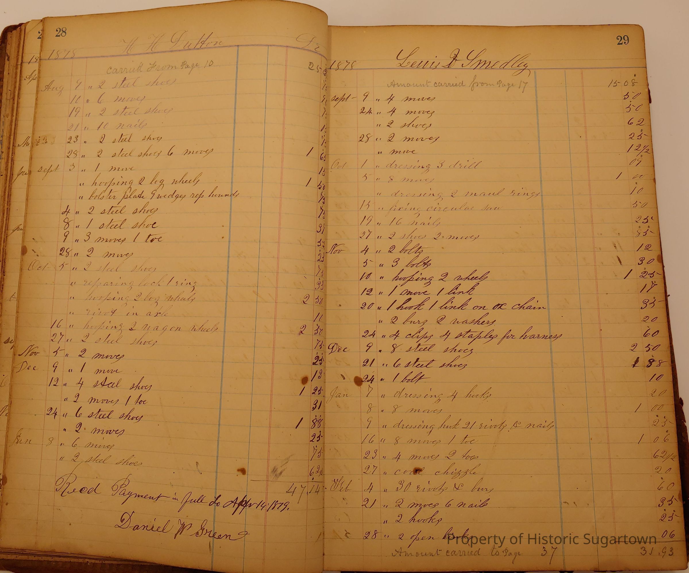 Daniel W. Green, Blacksmith Collection 1864-1887/Daybook 1874-1887Entry/Object ID