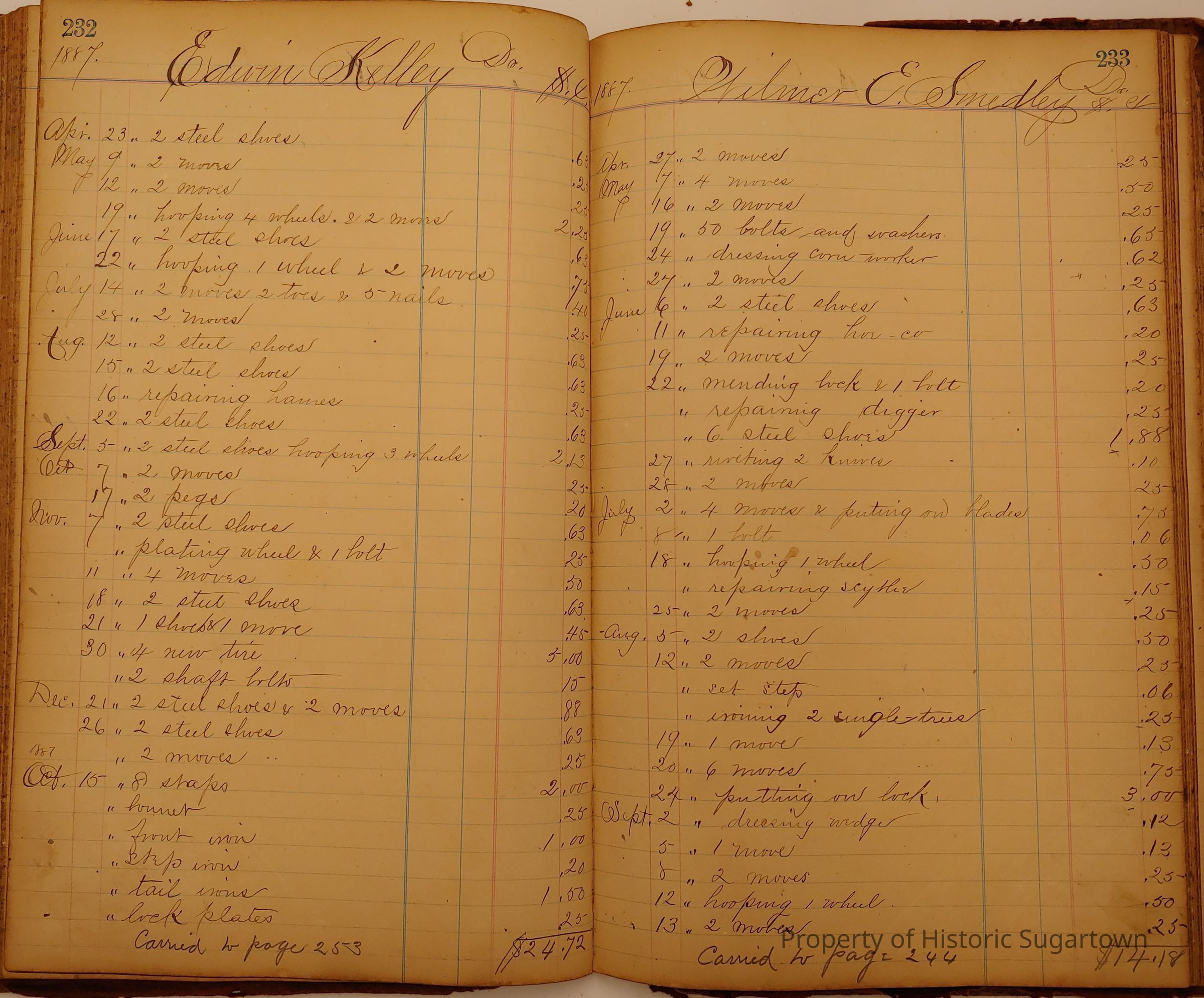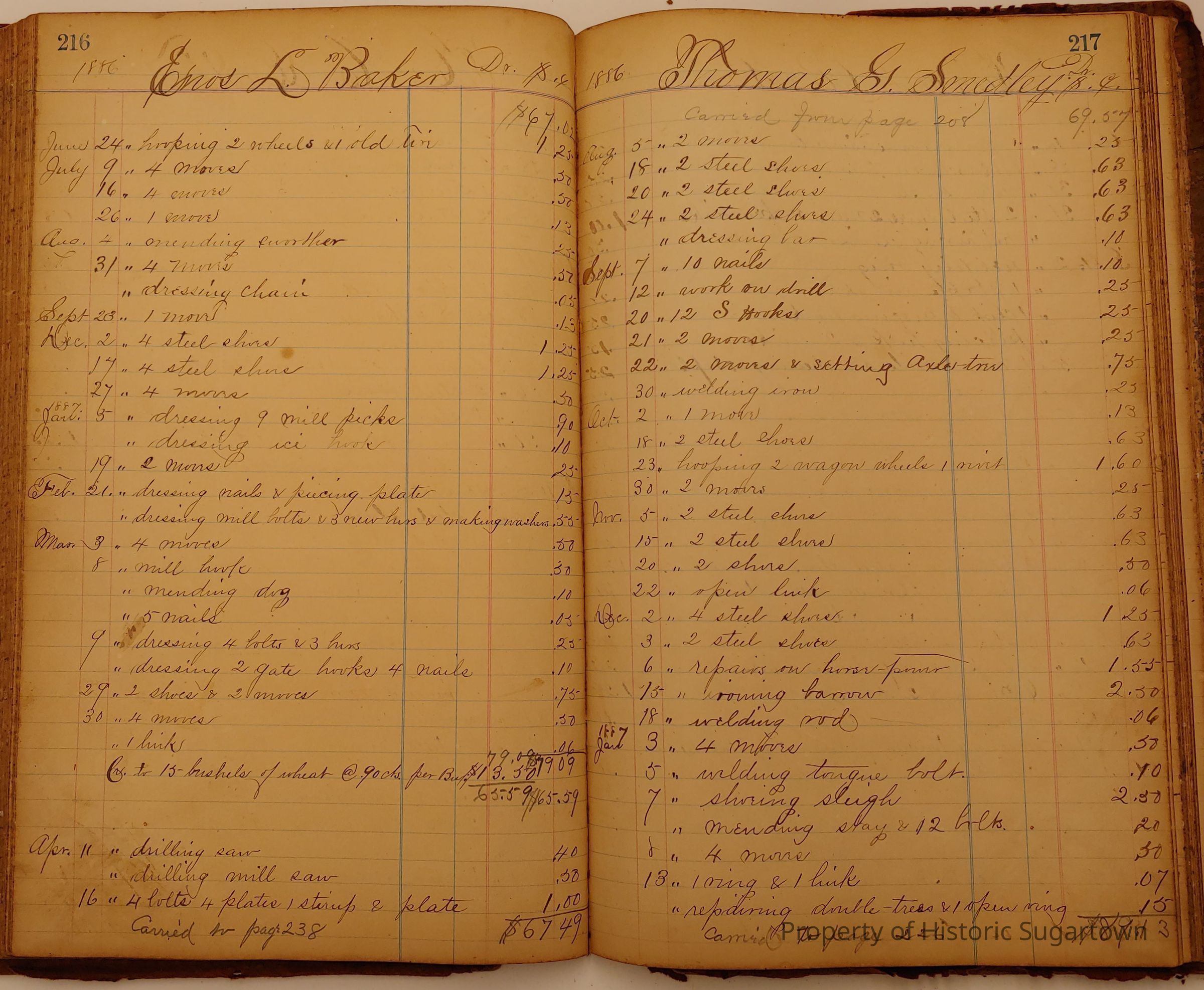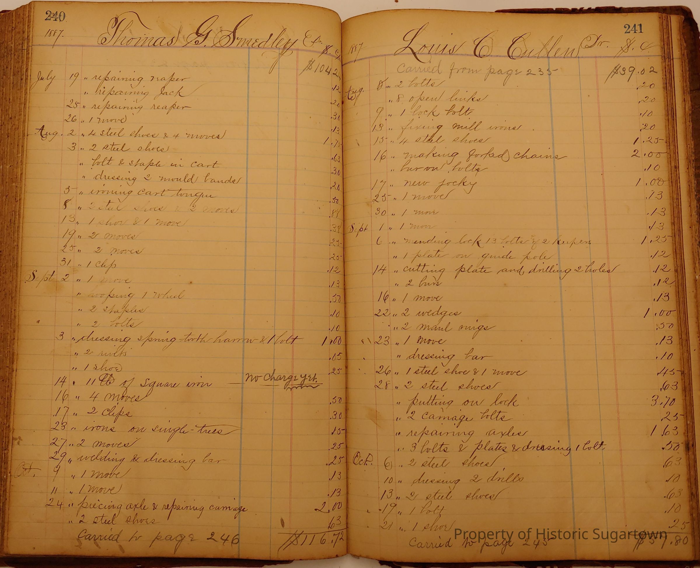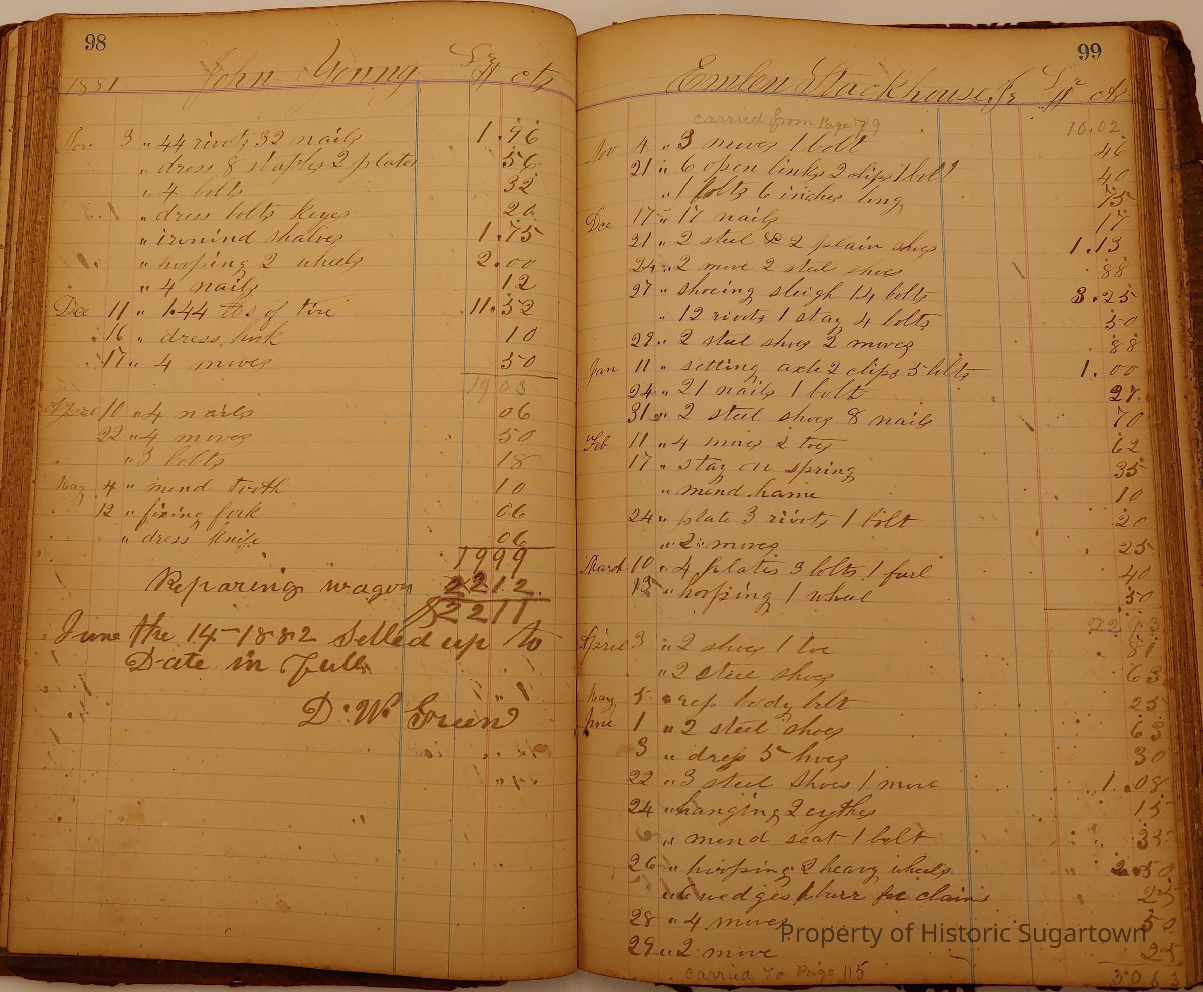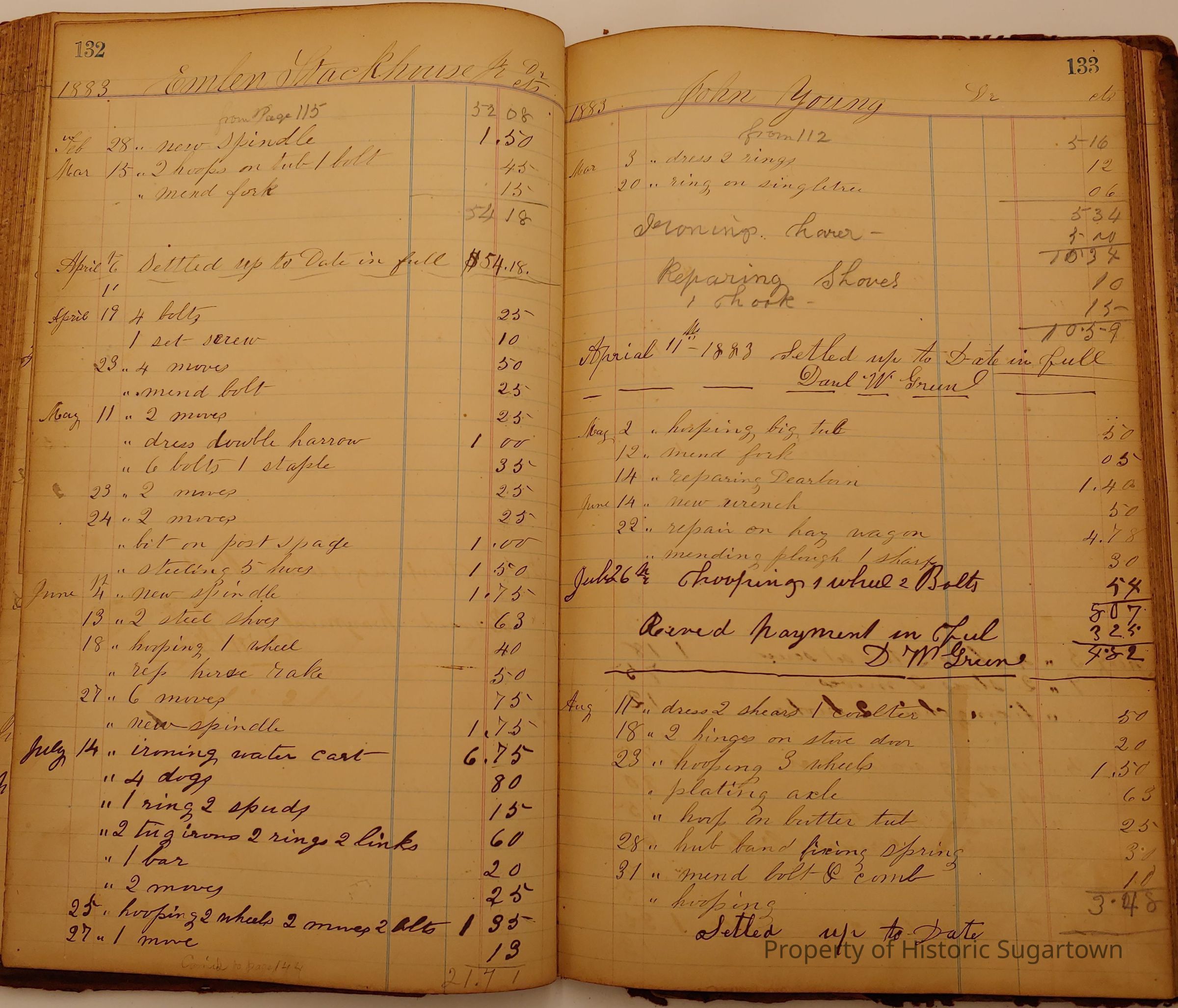 Daniel W. Green, Blacksmith Collection 1864-1887/Daybook 1874-1887Entry/Object ID