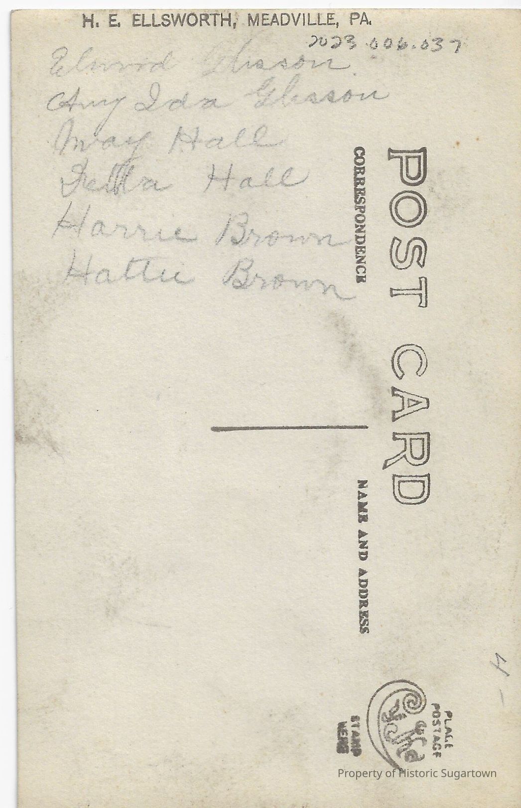 Postcard from Meadville, PA photographer Henry Edgarton Ellsworth's (1866-1954) studio. Ellsworth was a cousin of DeEtta and Mabel Hall.Collection