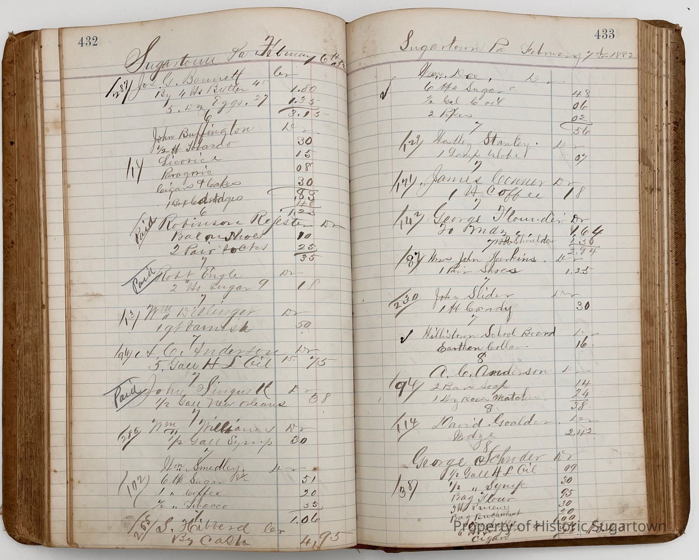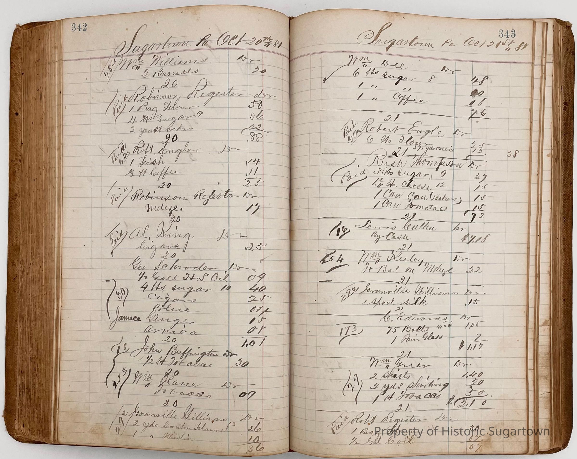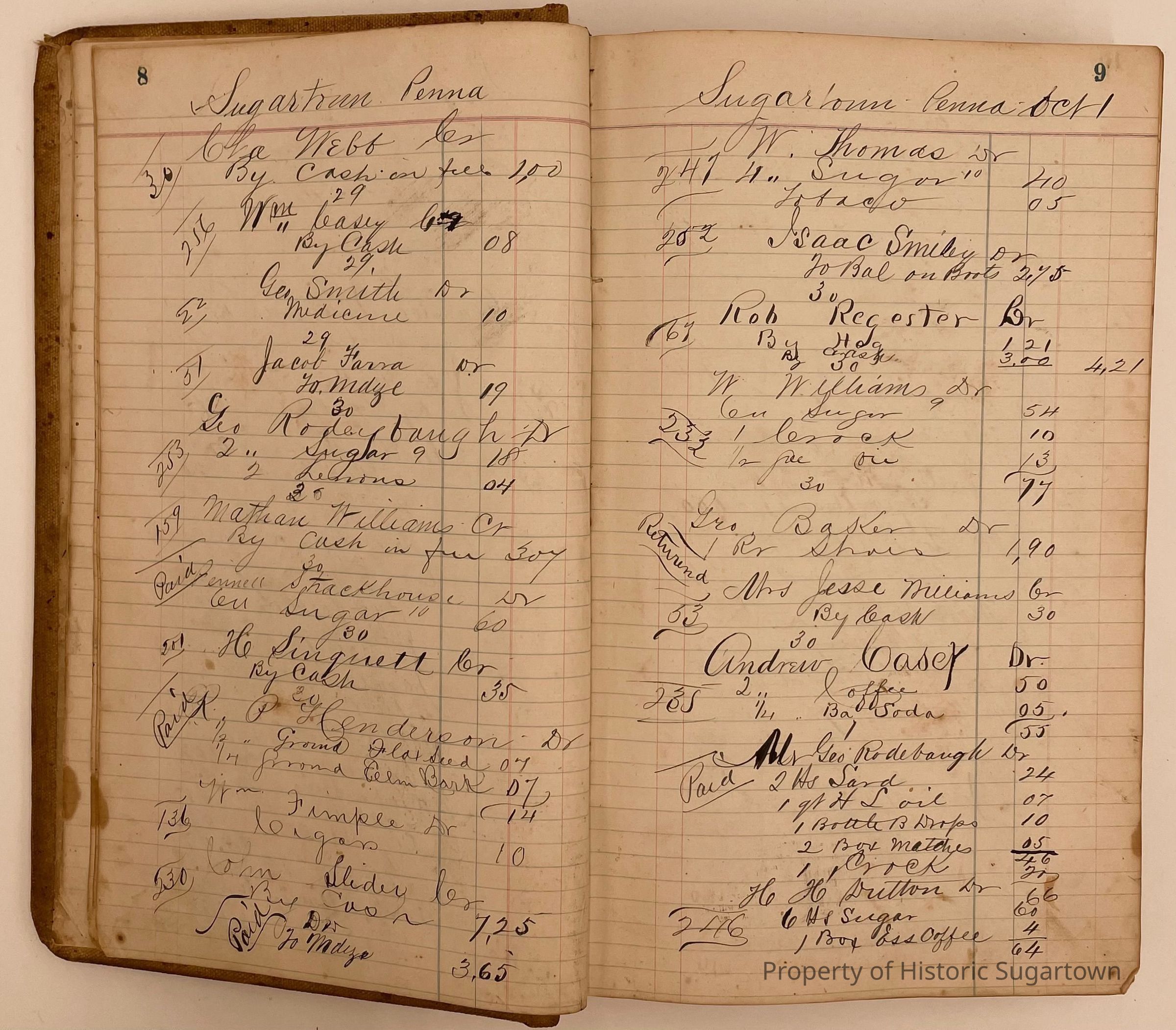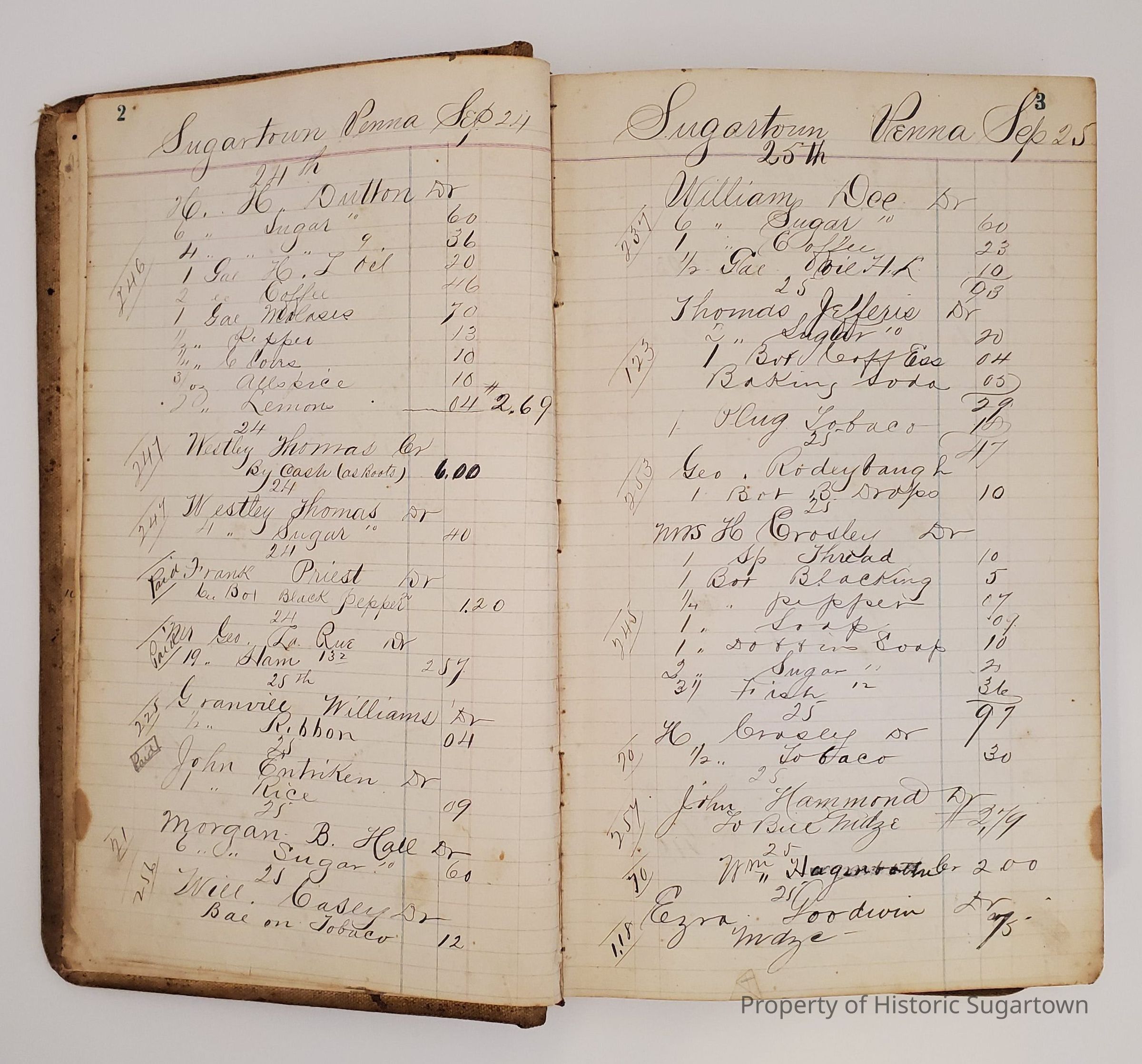 During the 1840s, Sharpless Worrall moved with his family to Sugartown in Willistown Township, Chester County, Pennsylvania, where he took over ownership of a general store and served as postmaster for 20 years. Upon his retirement, Worrall's son-in-law Hillery John took over the store, which he ran until his death. At that point it was taken over by Hillery's son, Clyde B. John, who eventually turned the business into an antiques shop. Worrall and John family papers and business records, 1830-1939, primarily consist of the business records of the general store under all three owners as well personal and family papers relating to the Worrall and John families.Context