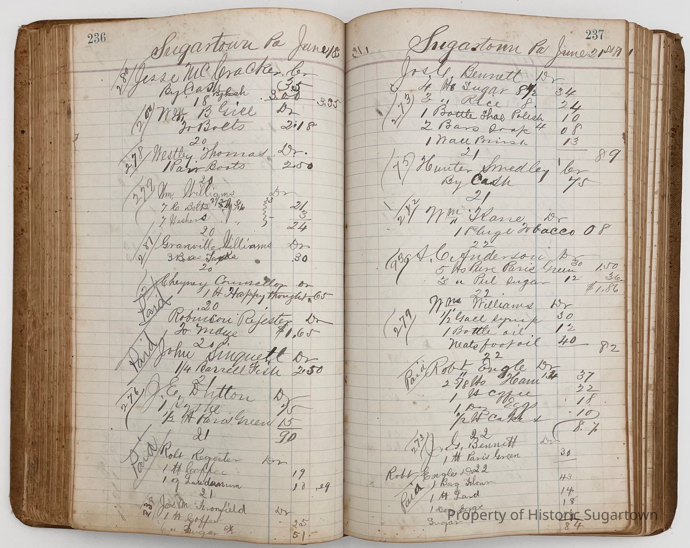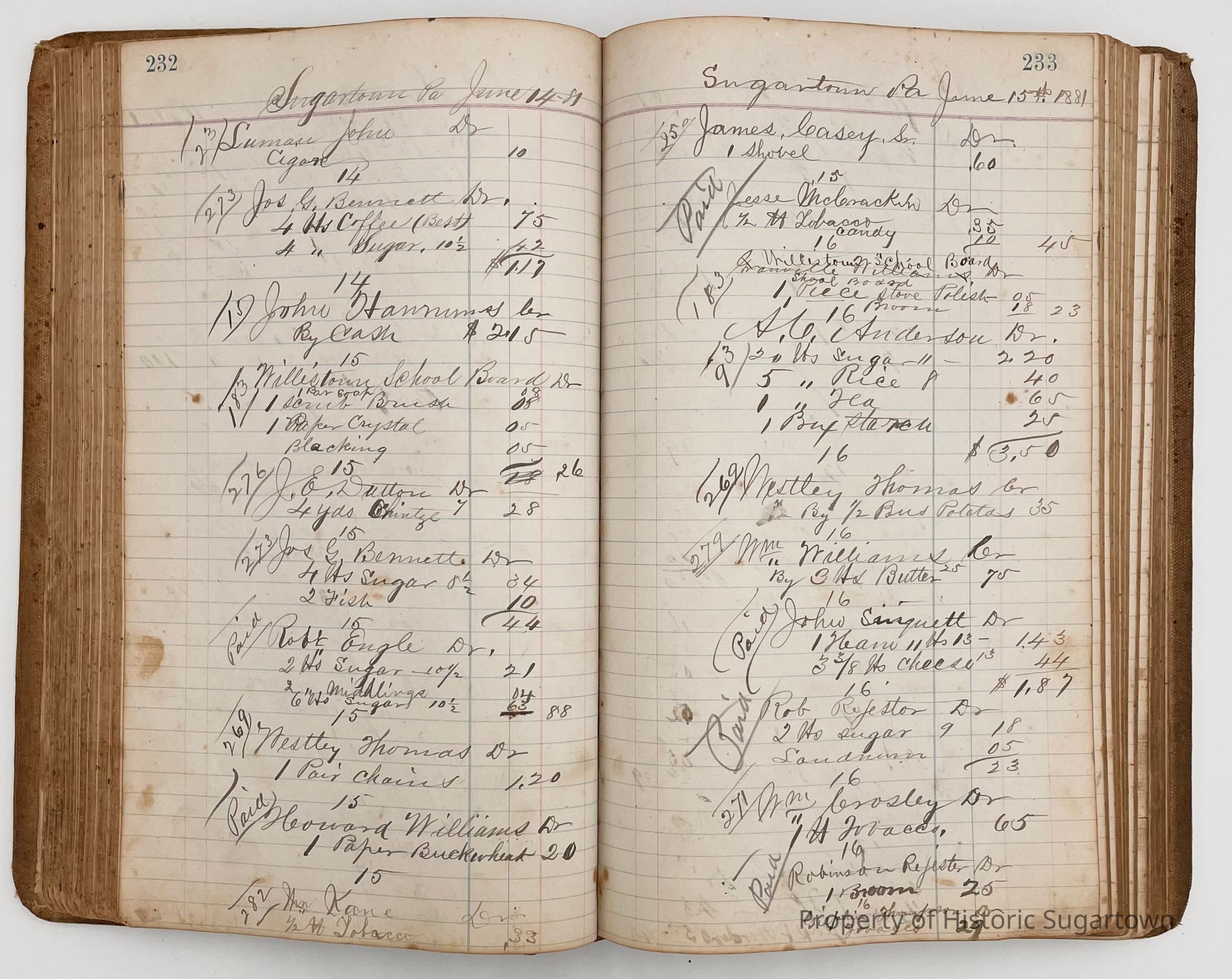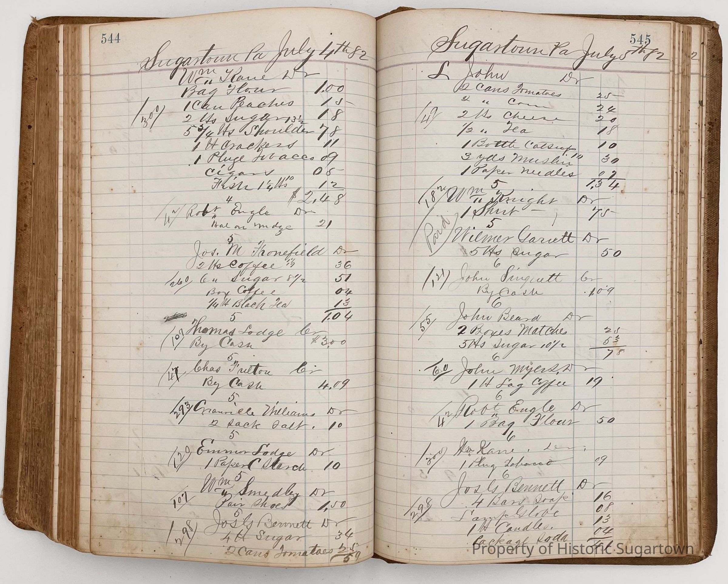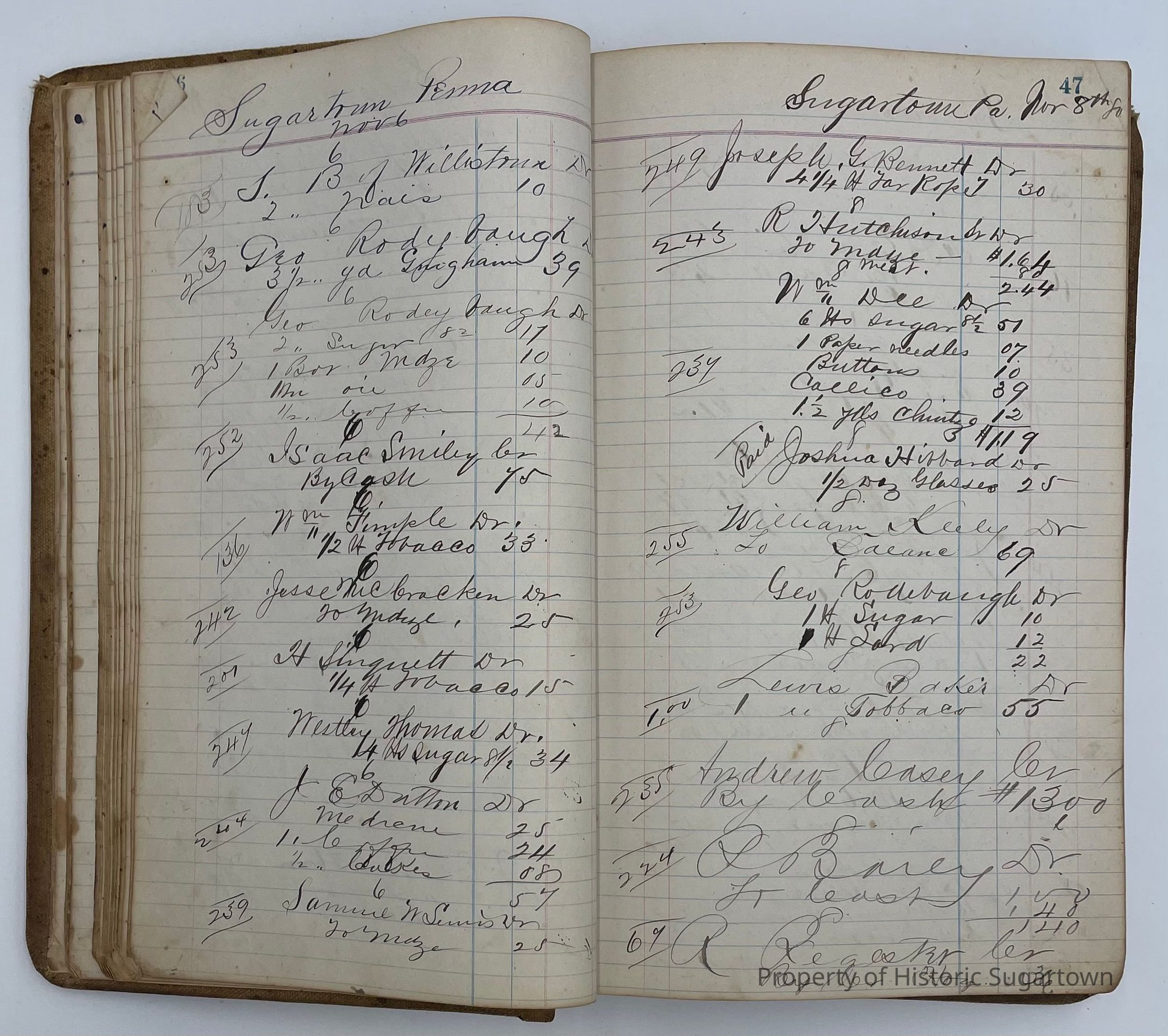 During the 1840s, Sharpless Worrall moved with his family to Sugartown in Willistown Township, Chester County, Pennsylvania, where he took over ownership of a general store and served as postmaster for 20 years. Upon his retirement, Worrall's son-in-law Hillery John took over the store, which he ran until his death. At that point it was taken over by Hillery's son, Clyde B. John, who eventually turned the business into an antiques shop. Worrall and John family papers and business records, 1830-1939, primarily consist of the business records of the general store under all three owners as well personal and family papers relating to the Worrall and John families.Context