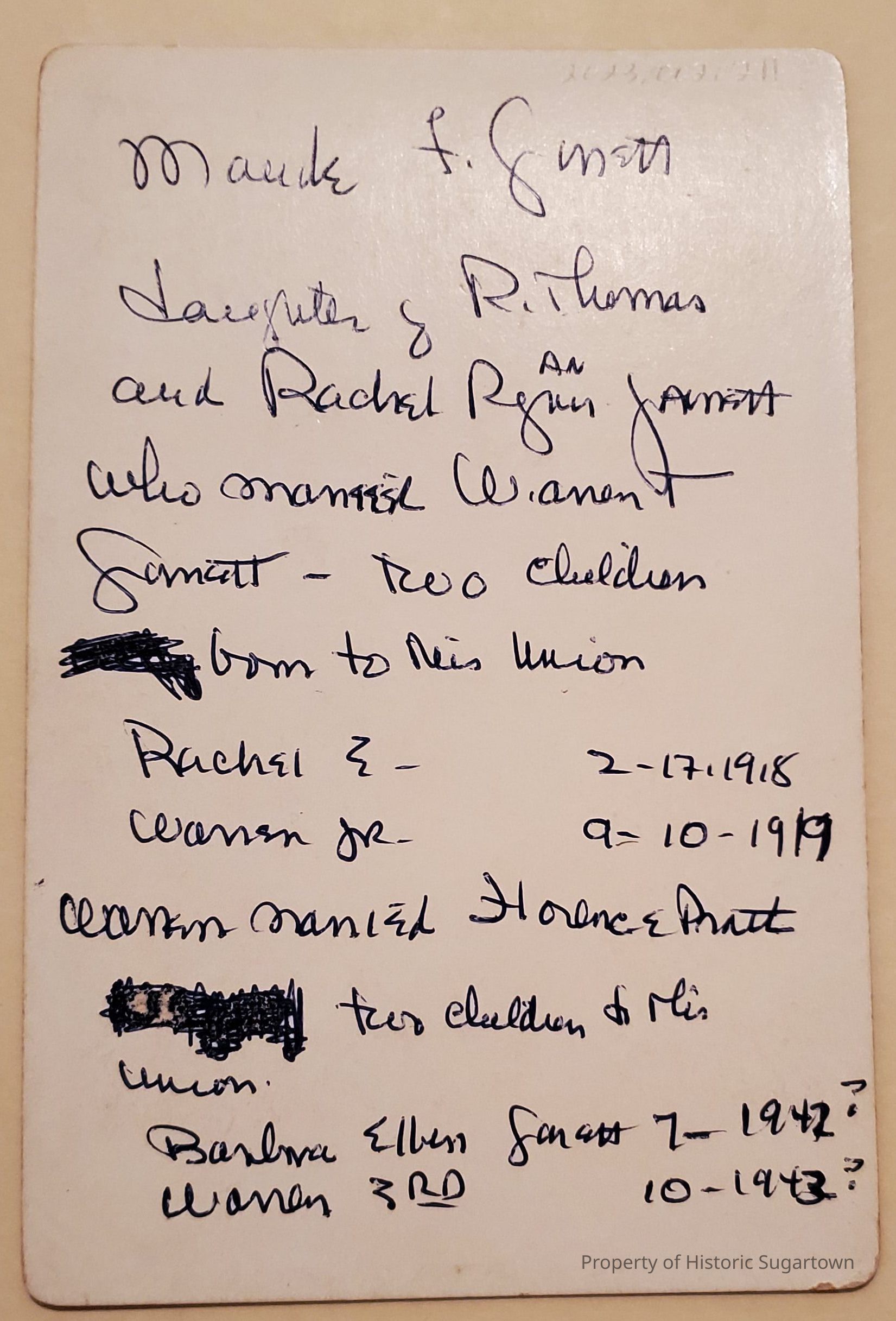 This collection is rich in artifacts and photographs. Additionally, a few artifacts from Warren Garret, including a pendant from a local masonic lodge, Thompson Lodge no. 340 from 1907. Family bibles from the Garrett and Lewis families containing family history and notes, can be found in this collection as well.Context