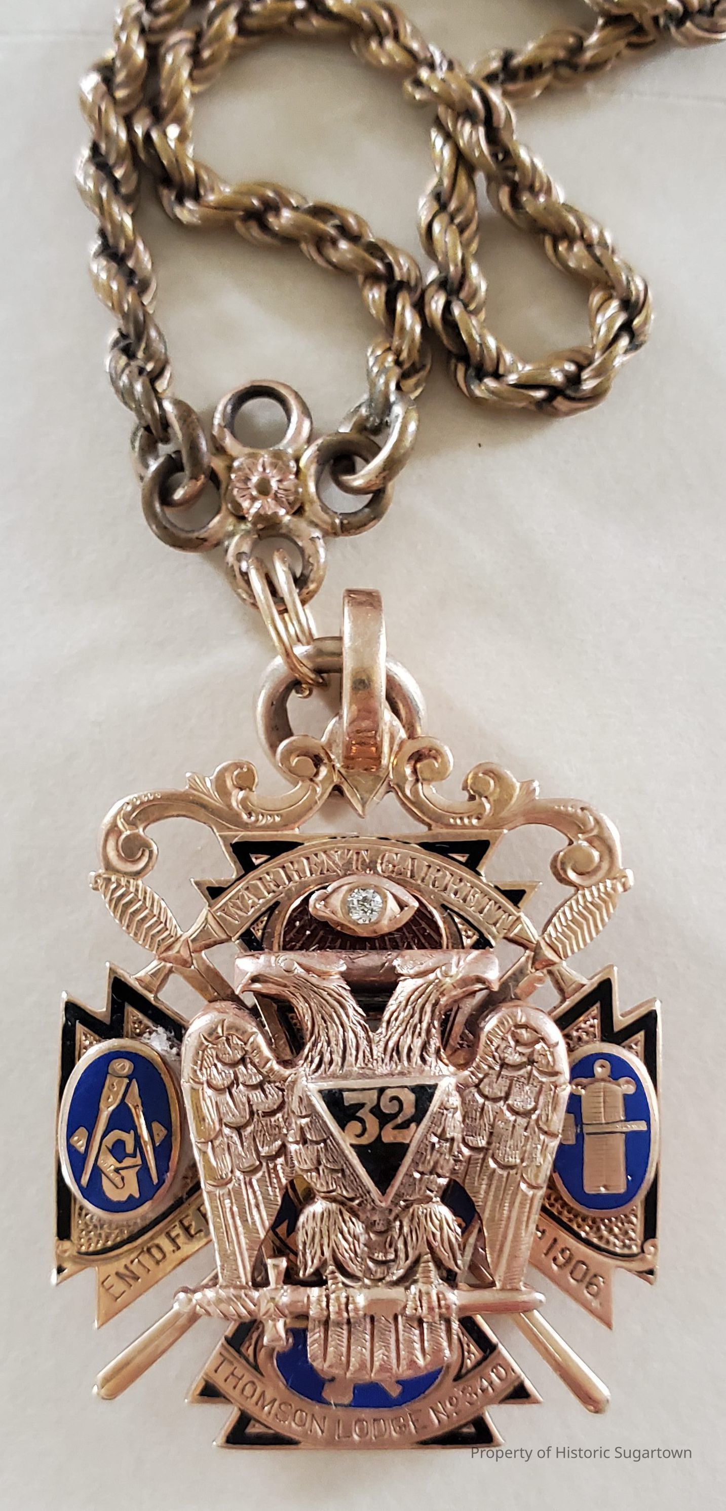 Garrett Family Manuscript Collection/Warren T. Garrett - Masonic Temple pendant necklace 1907 Thompson Lodge No. 340 (32nd Degree Mason).Entry/Object ID