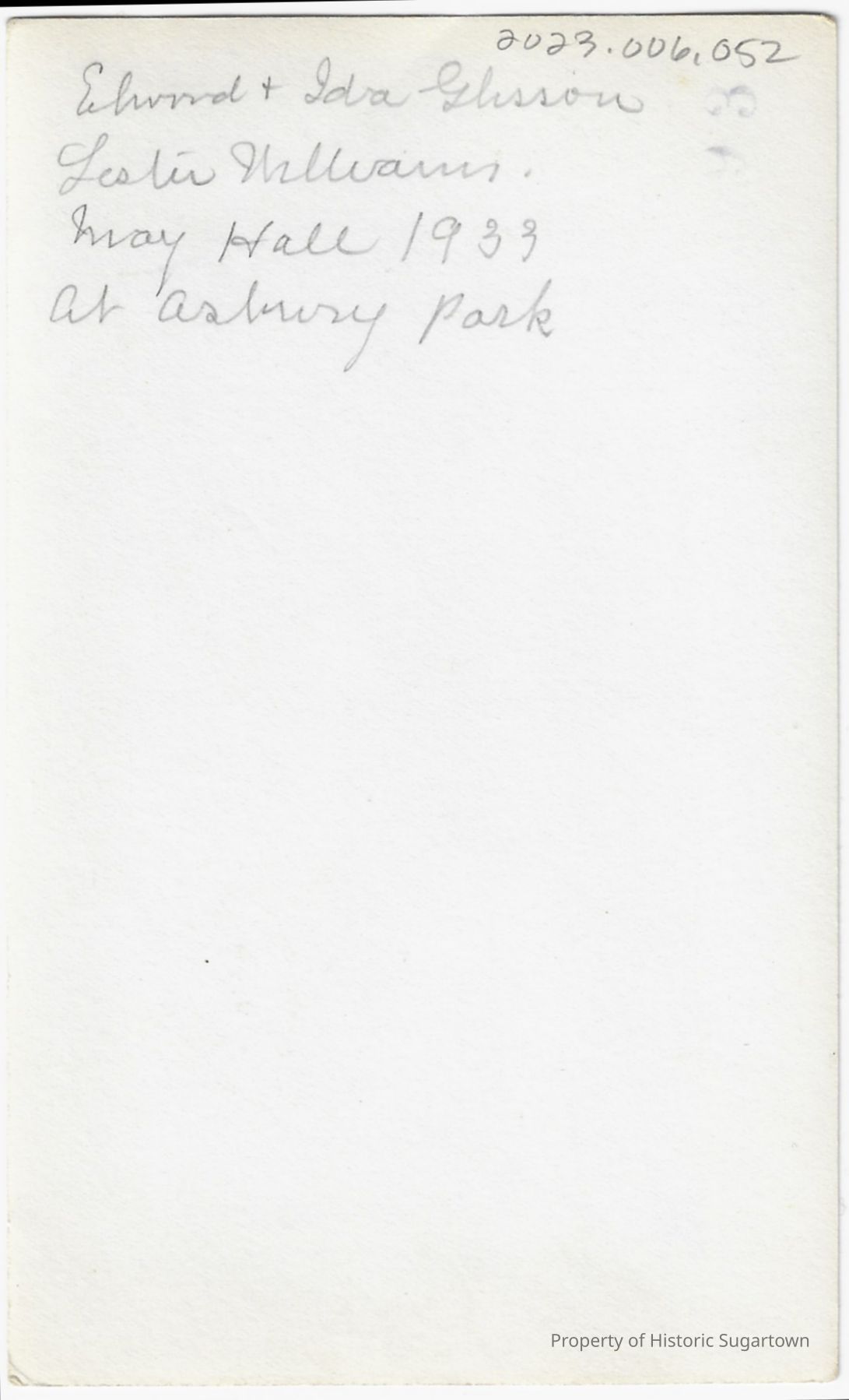 Local Families Photograph Collection/Elwood and Amy Ida Glisson, Lester Williams, May Hall; 1933 at Asbury ParkEntry/Object ID