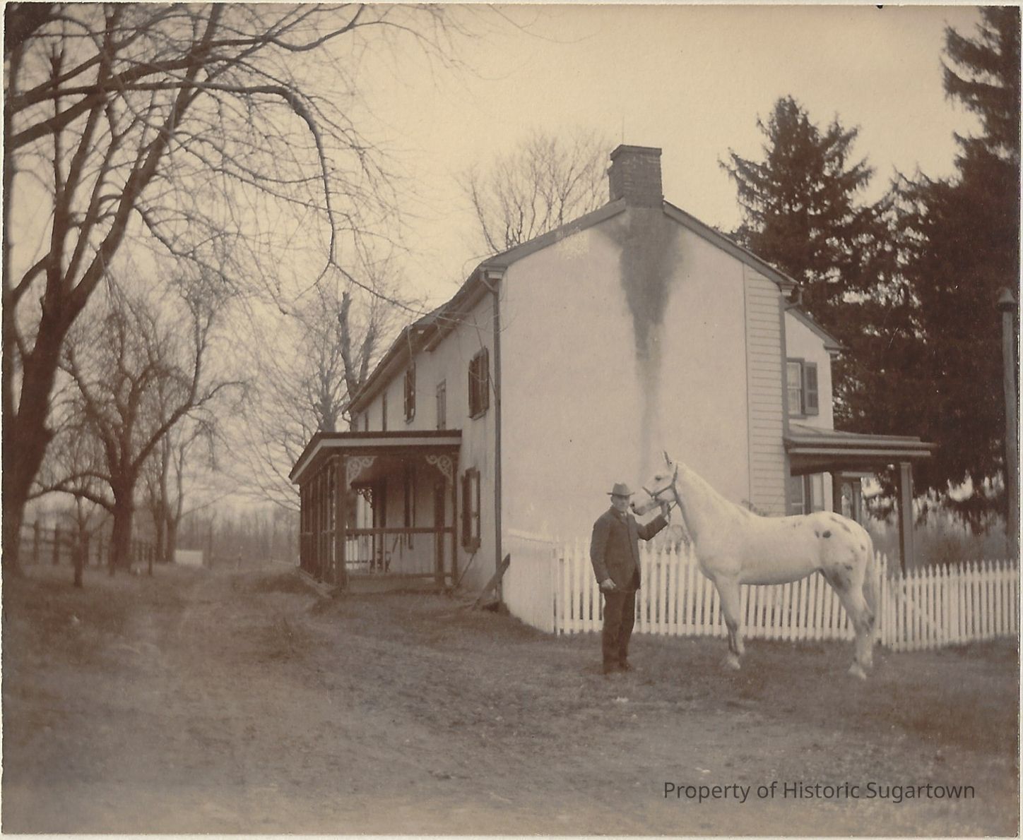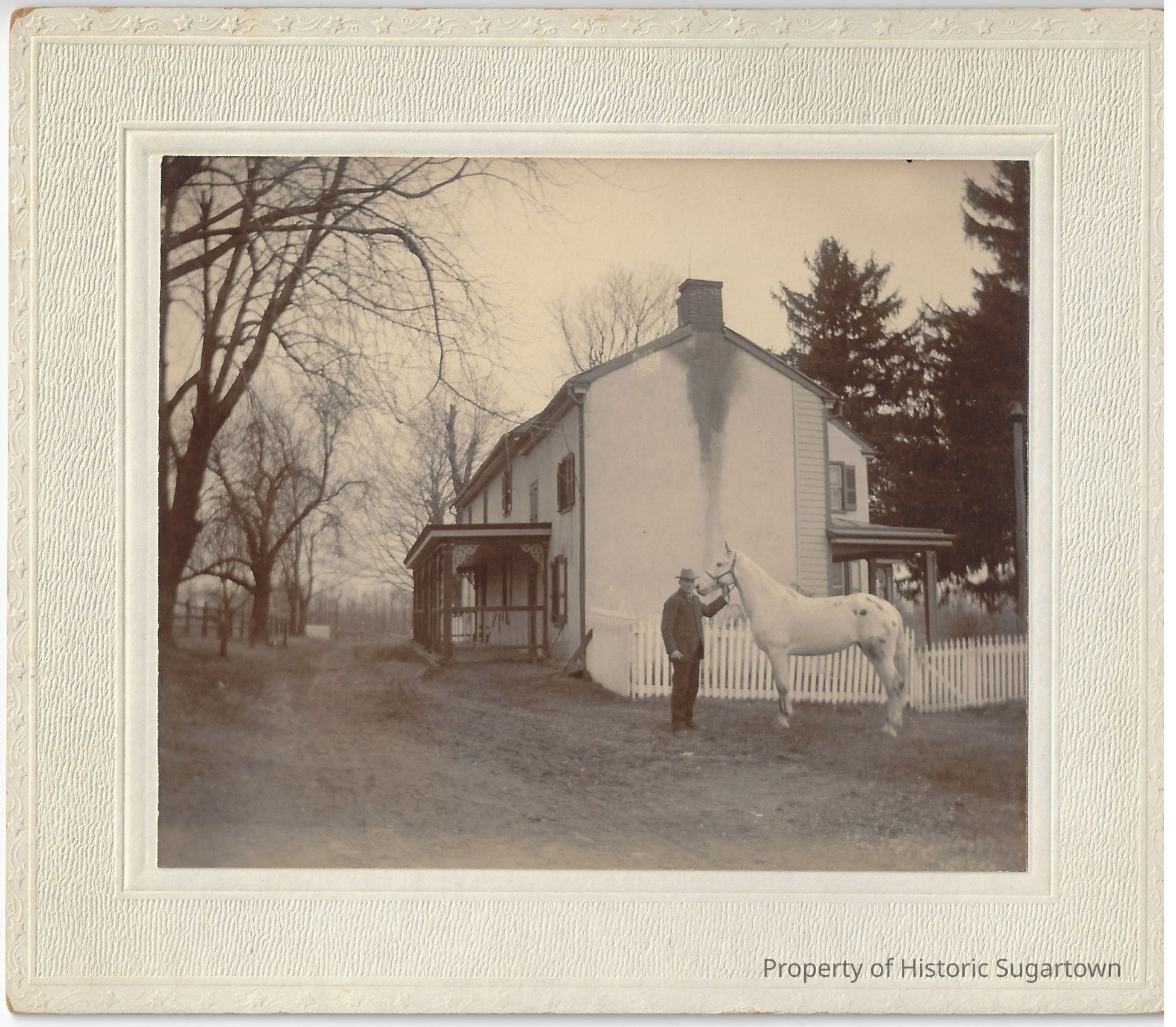 Elwood Glisson (1855-1938) and a horse on front of the home on his and Amy Ida Williams Glisson (1857-1944)'s farm. It is captioned “We moved there March 25th 1890”.Collection