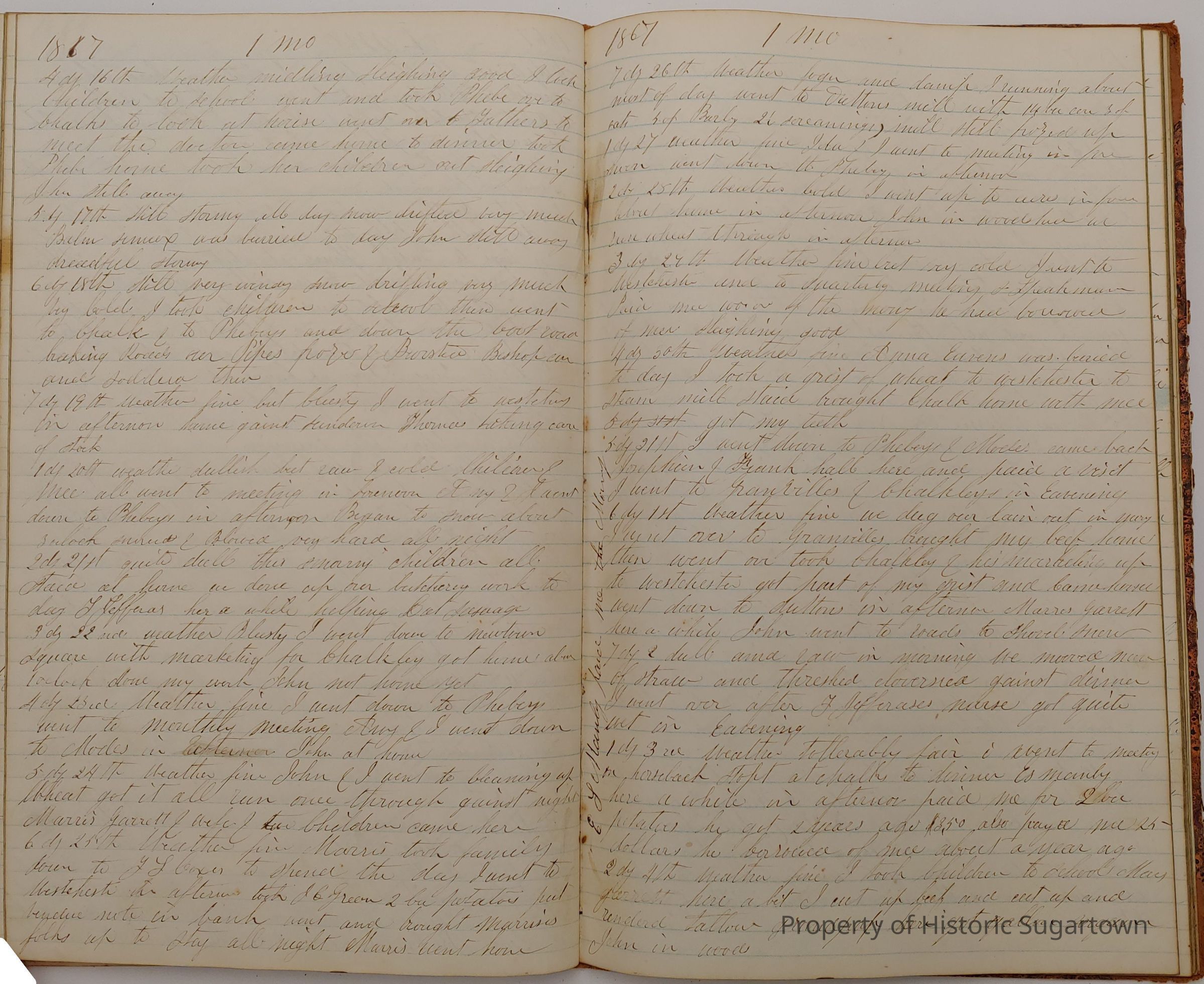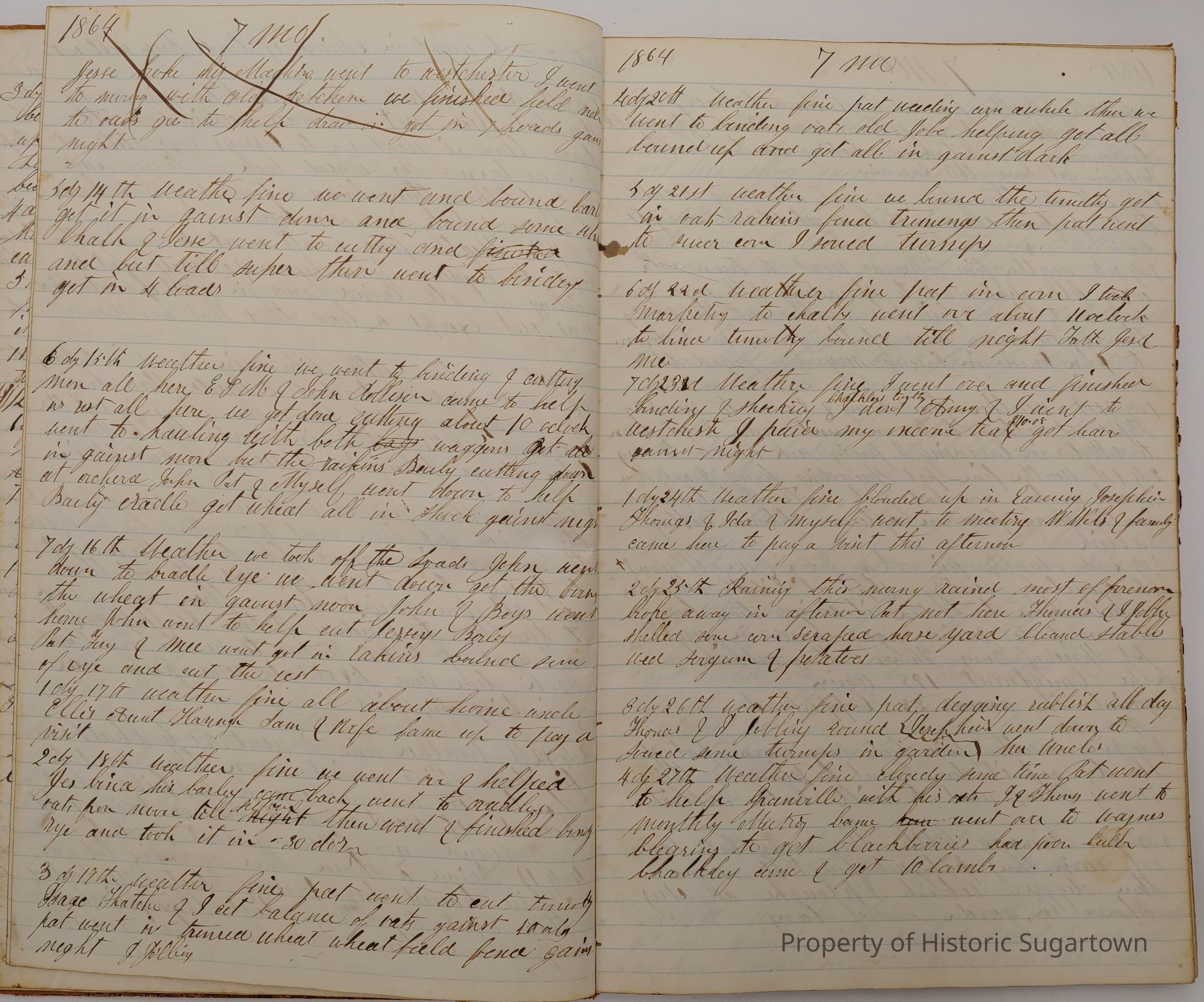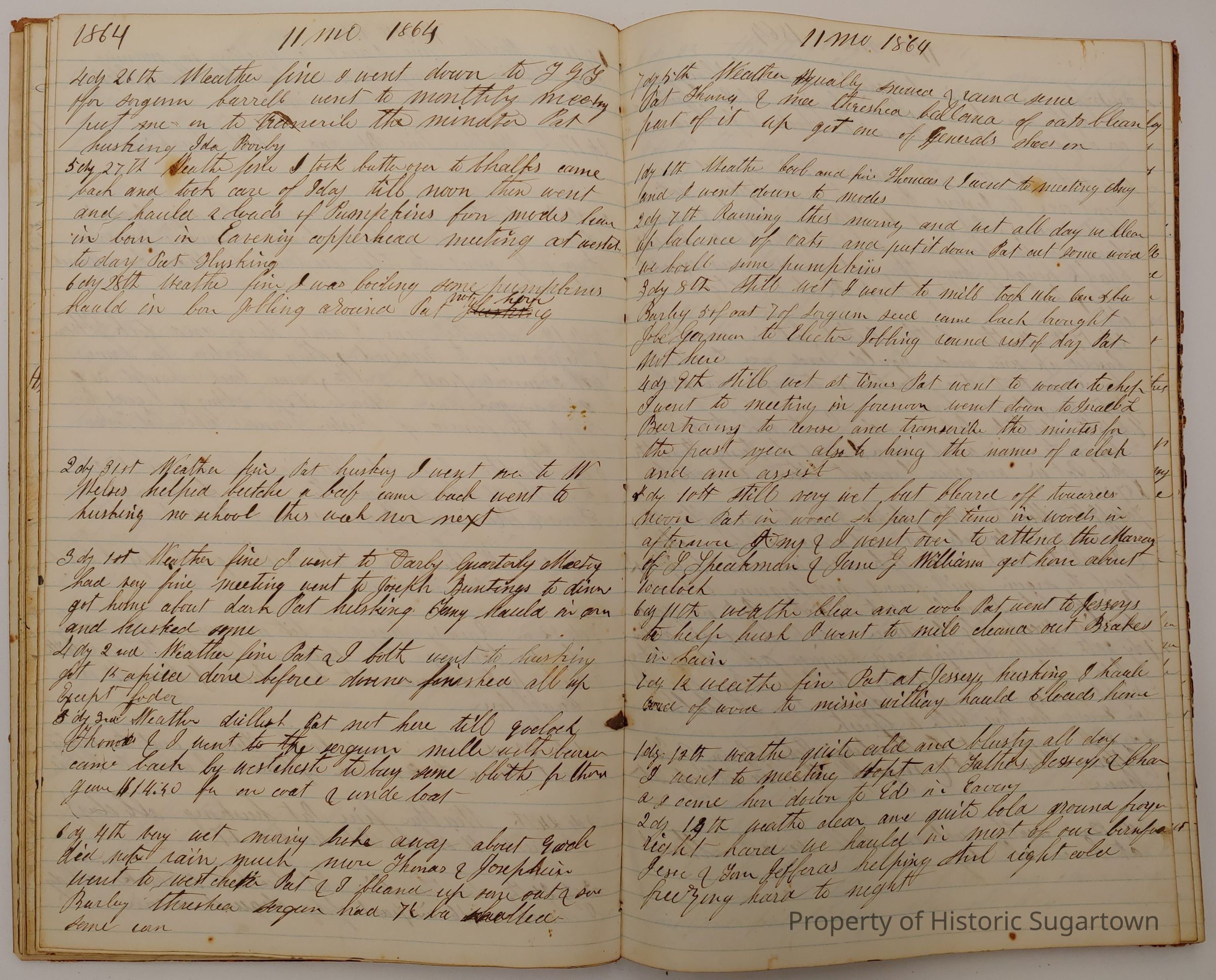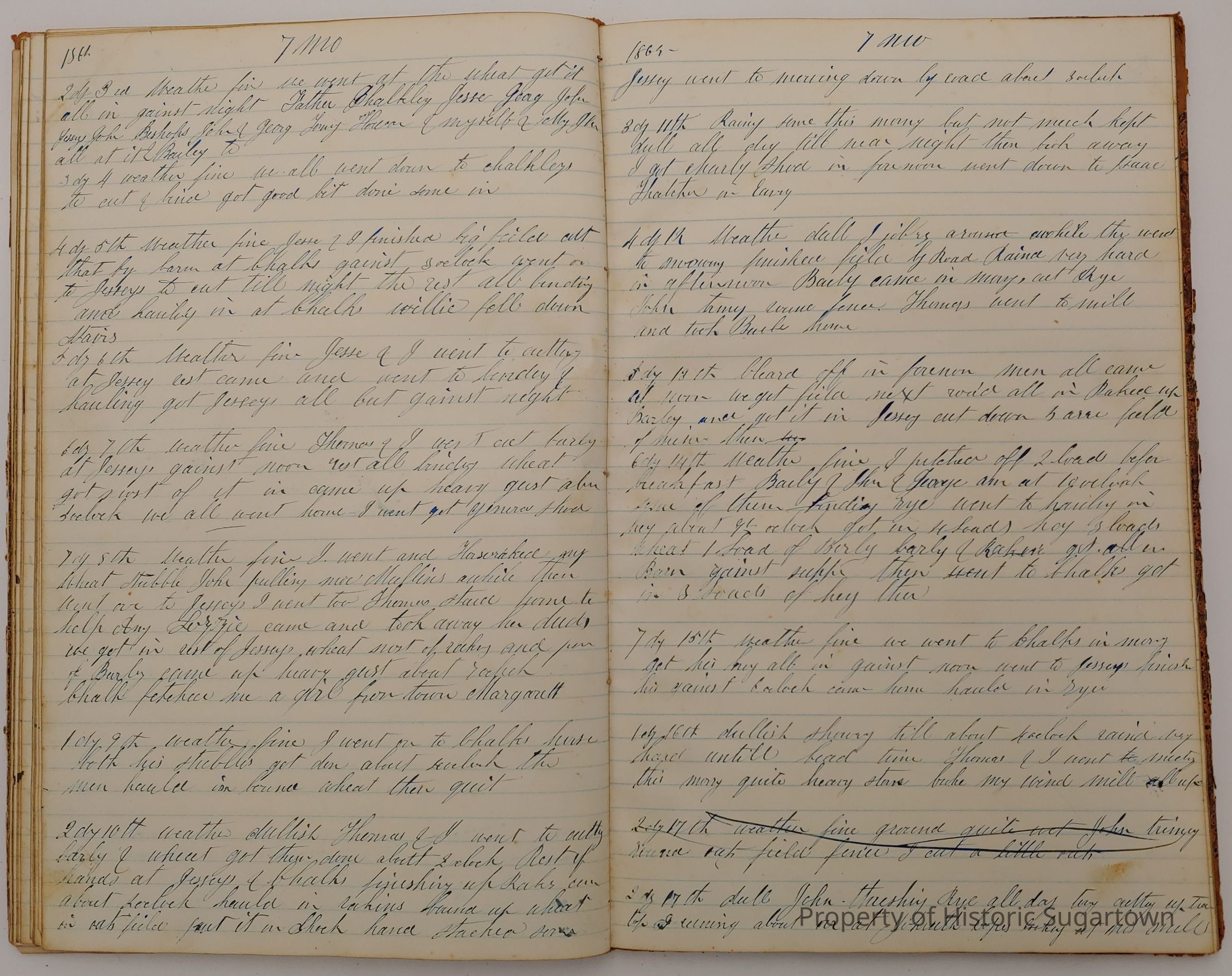 The Garrett Family Manuscript Collection (MSS 002) consists of local deeds and estate papers dating back as early as 1772. Some of the deeds are on vellum or oversized and fragile. A few family papers can be found in this collection as well; there is a poem for Sarah Garrett written by her father in 1834, and the Maris Garrett journal from 1864 includes daily entries, mostly weather reports and some family news.