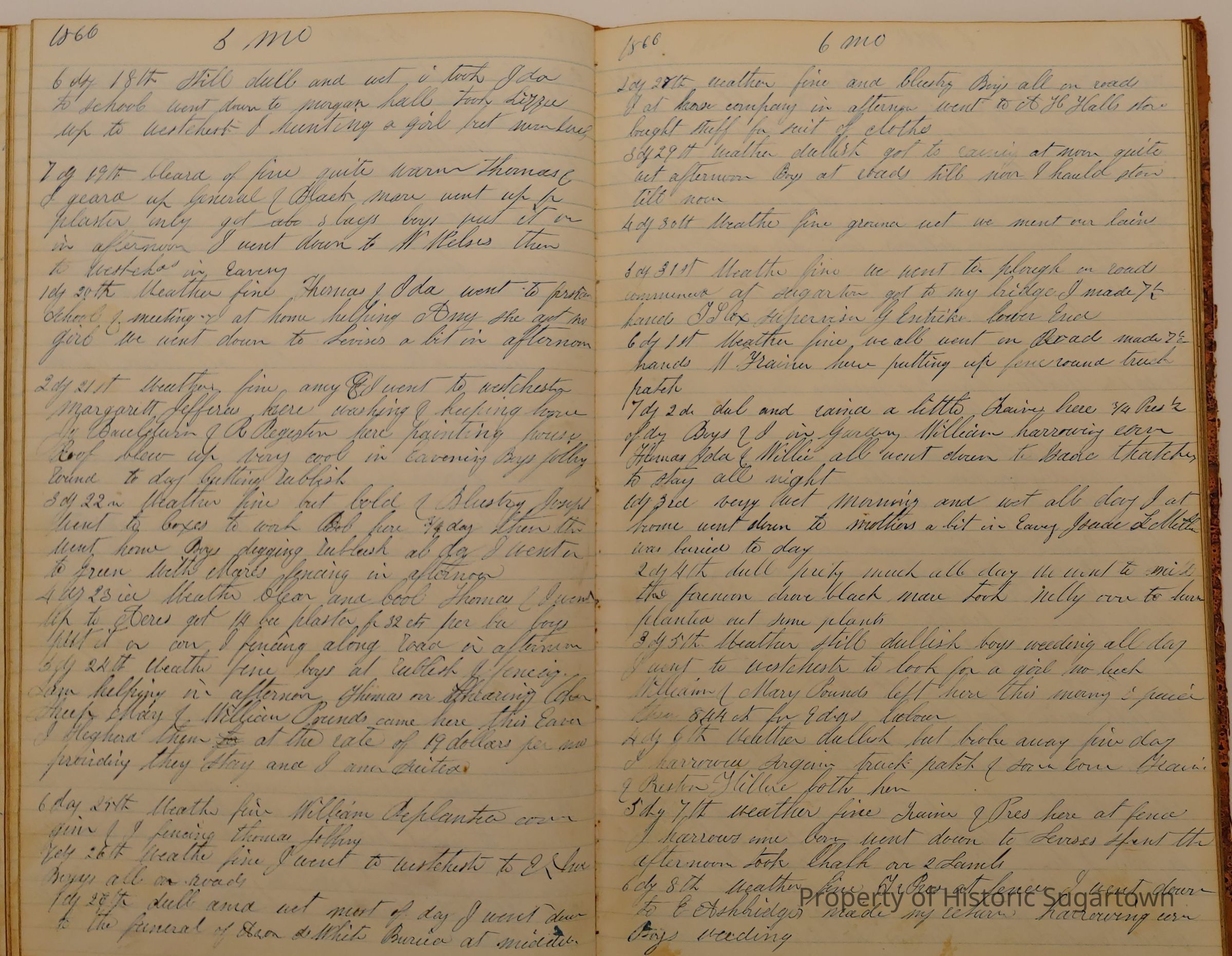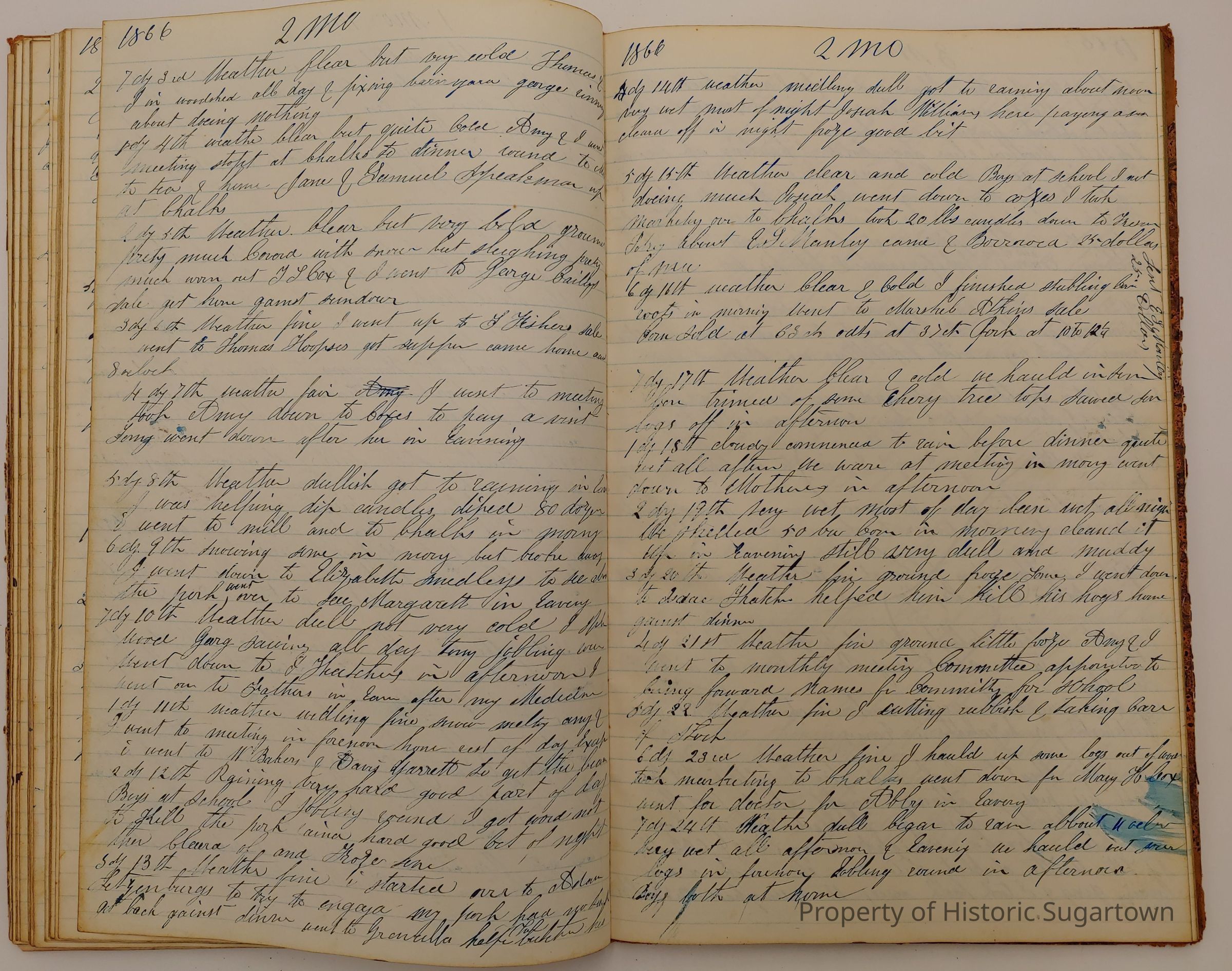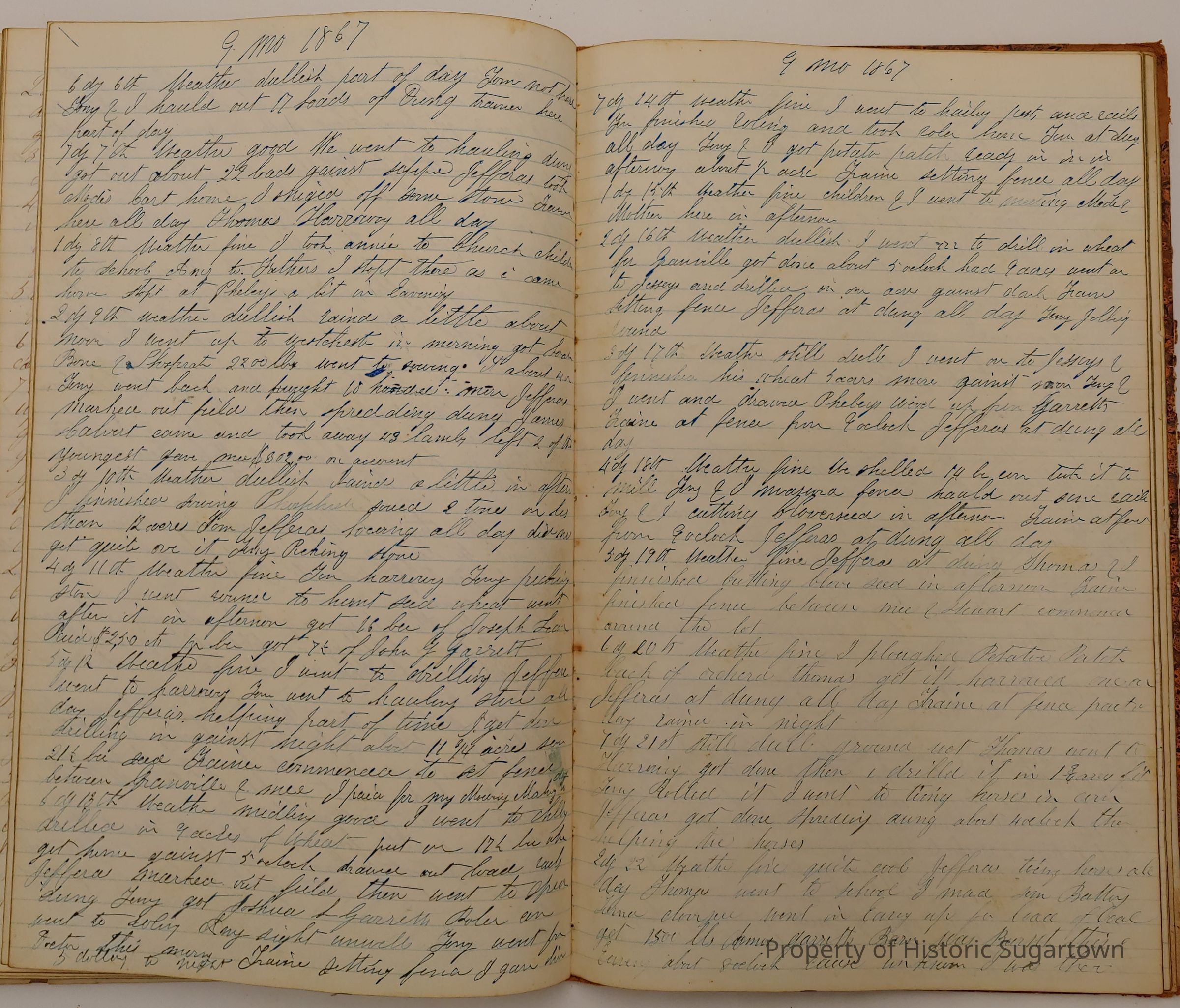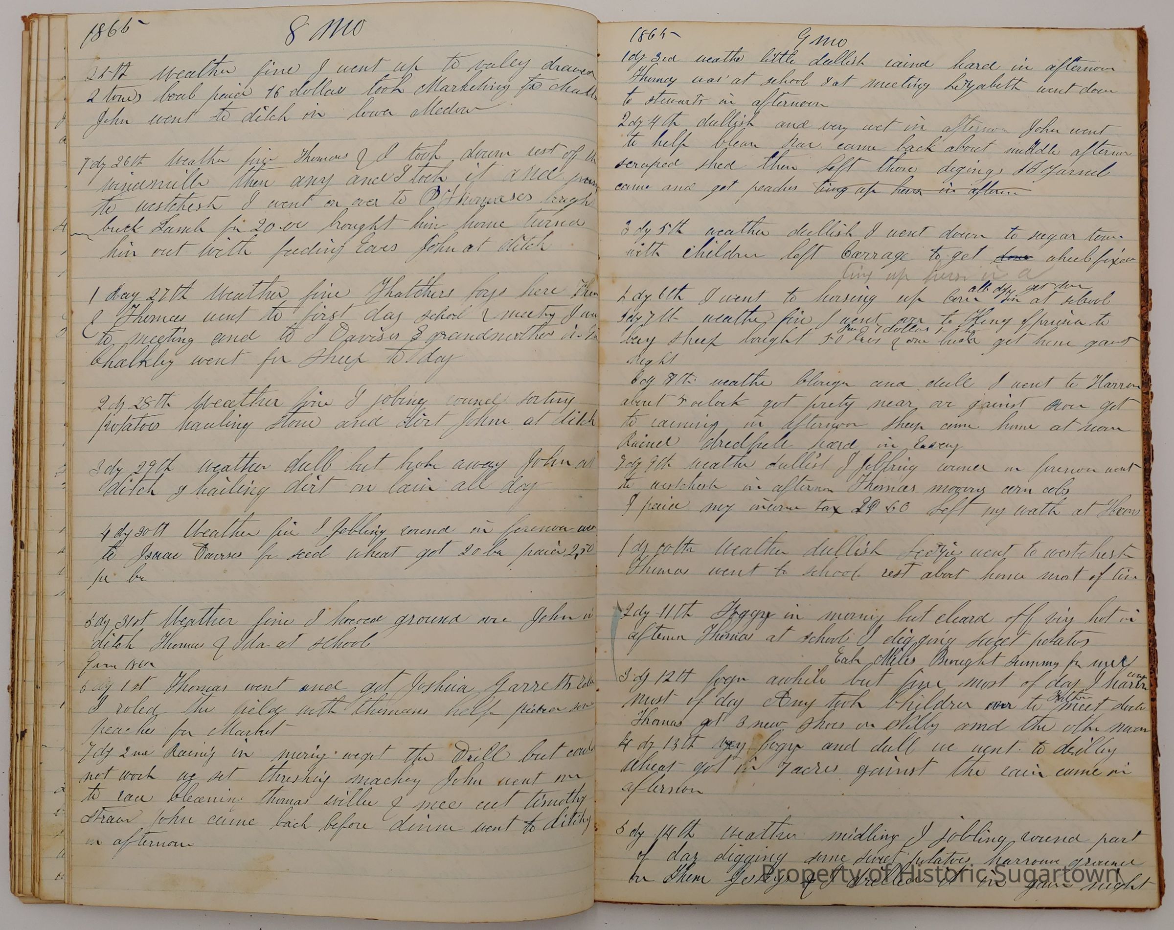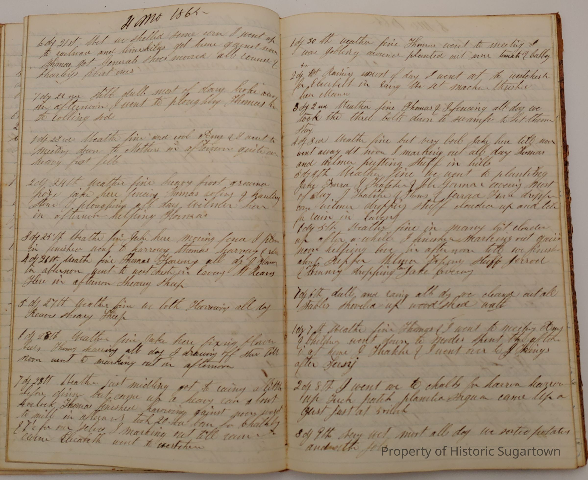 The Garrett Family Manuscript Collection (MSS 002) consists of local deeds and estate papers dating back as early as 1772. Some of the deeds are on vellum or oversized and fragile. A few family papers can be found in this collection as well; there is a poem for Sarah Garrett written by her father in 1834, and the Maris Garrett journal from 1864 includes daily entries, mostly weather reports and some family news.