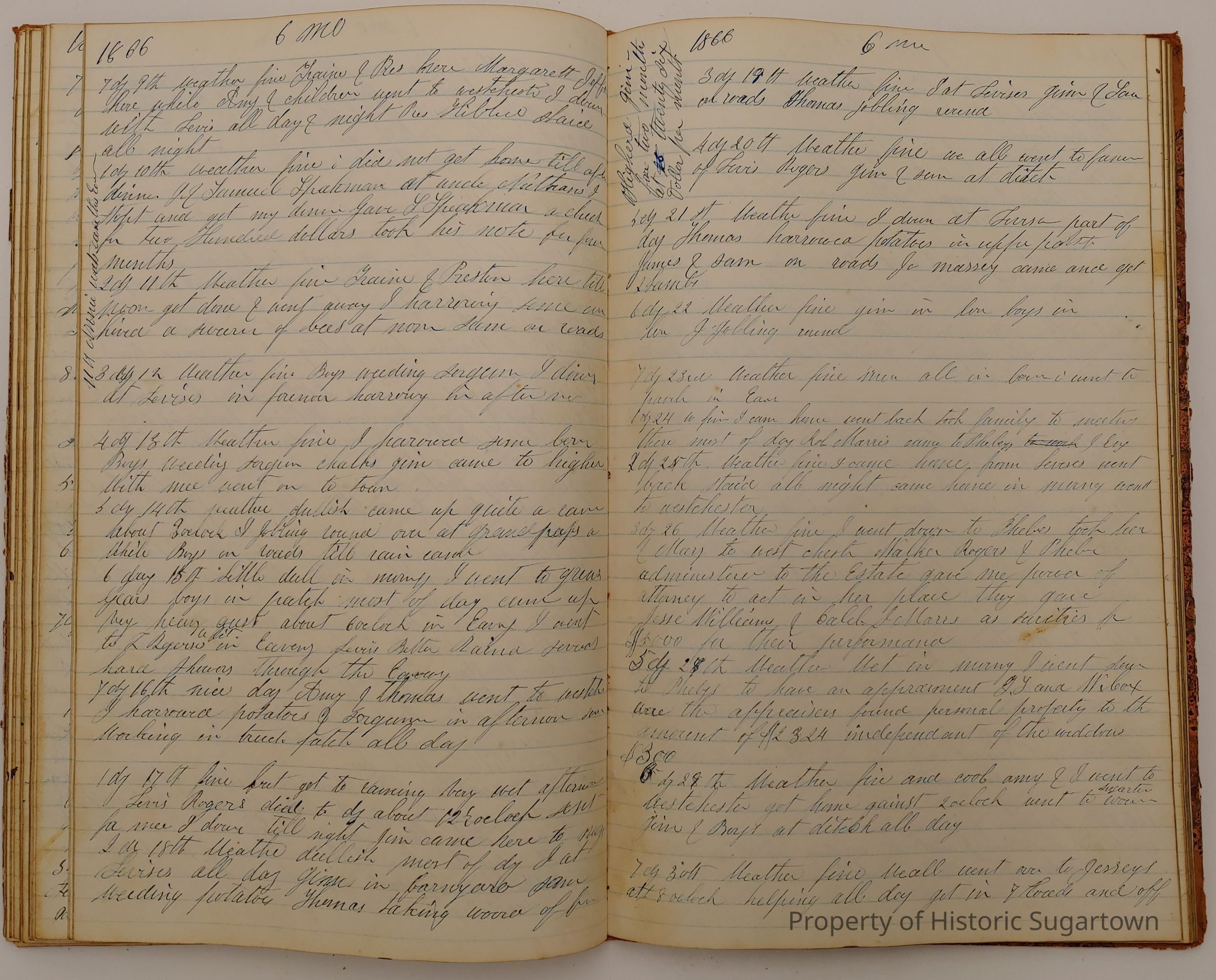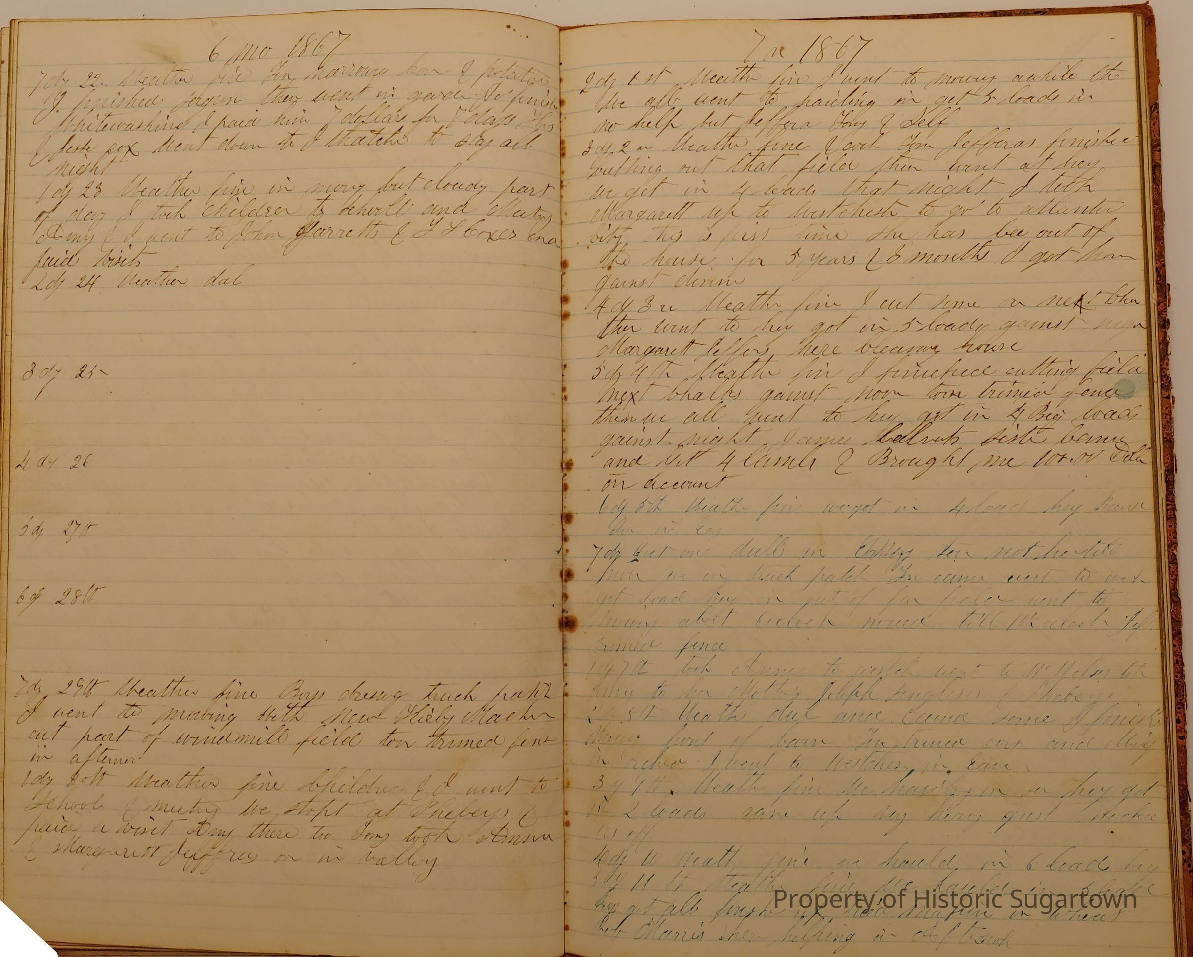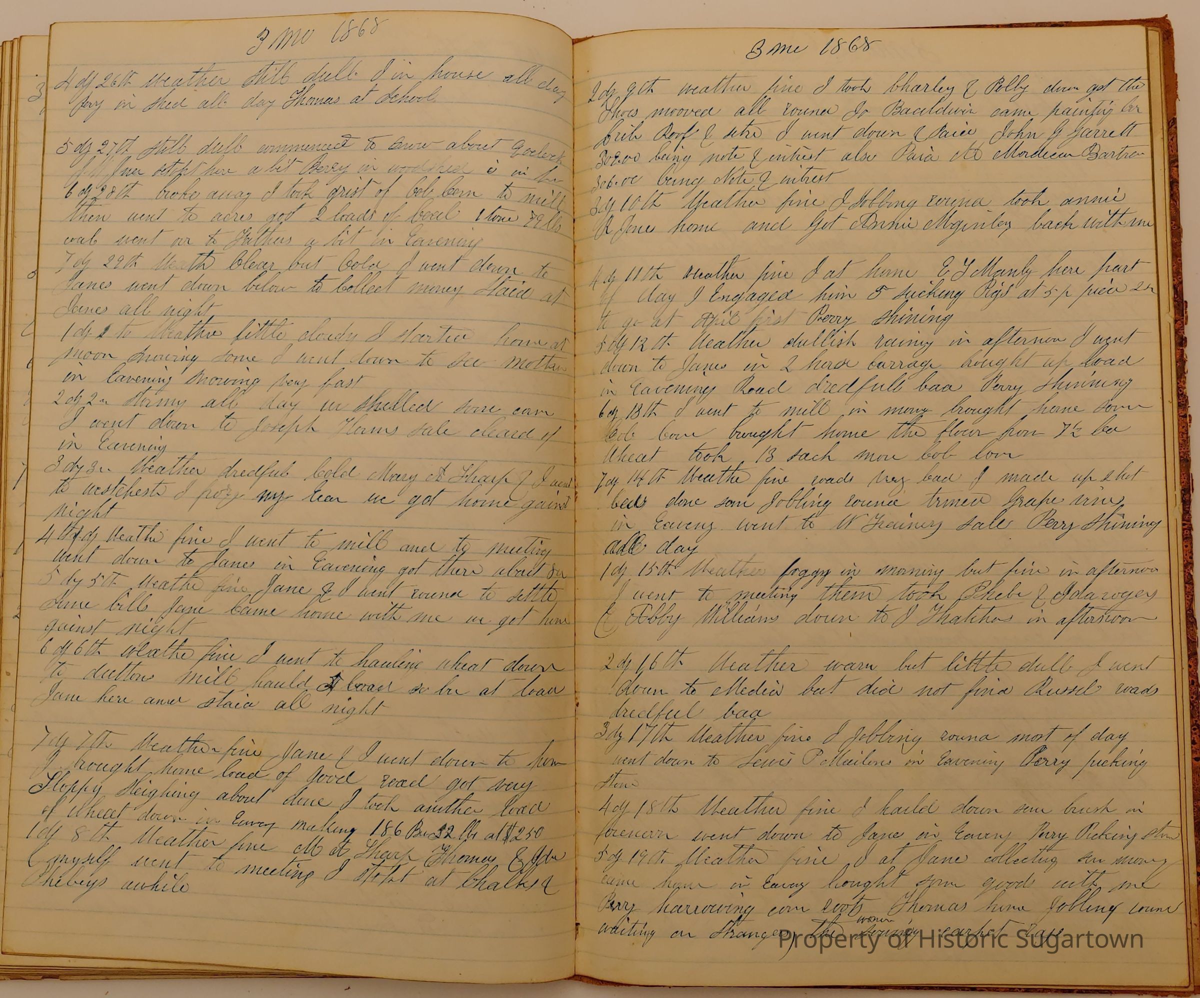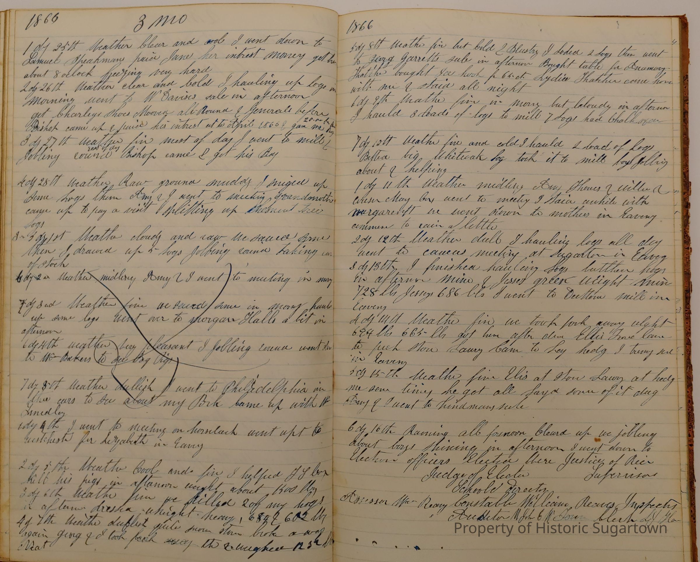 The Garrett Family Manuscript Collection (MSS 002) consists of local deeds and estate papers dating back as early as 1772. Some of the deeds are on vellum or oversized and fragile. A few family papers can be found in this collection as well; there is a poem for Sarah Garrett written by her father in 1834, and the Maris Garrett journal from 1864 includes daily entries, mostly weather reports and some family news.