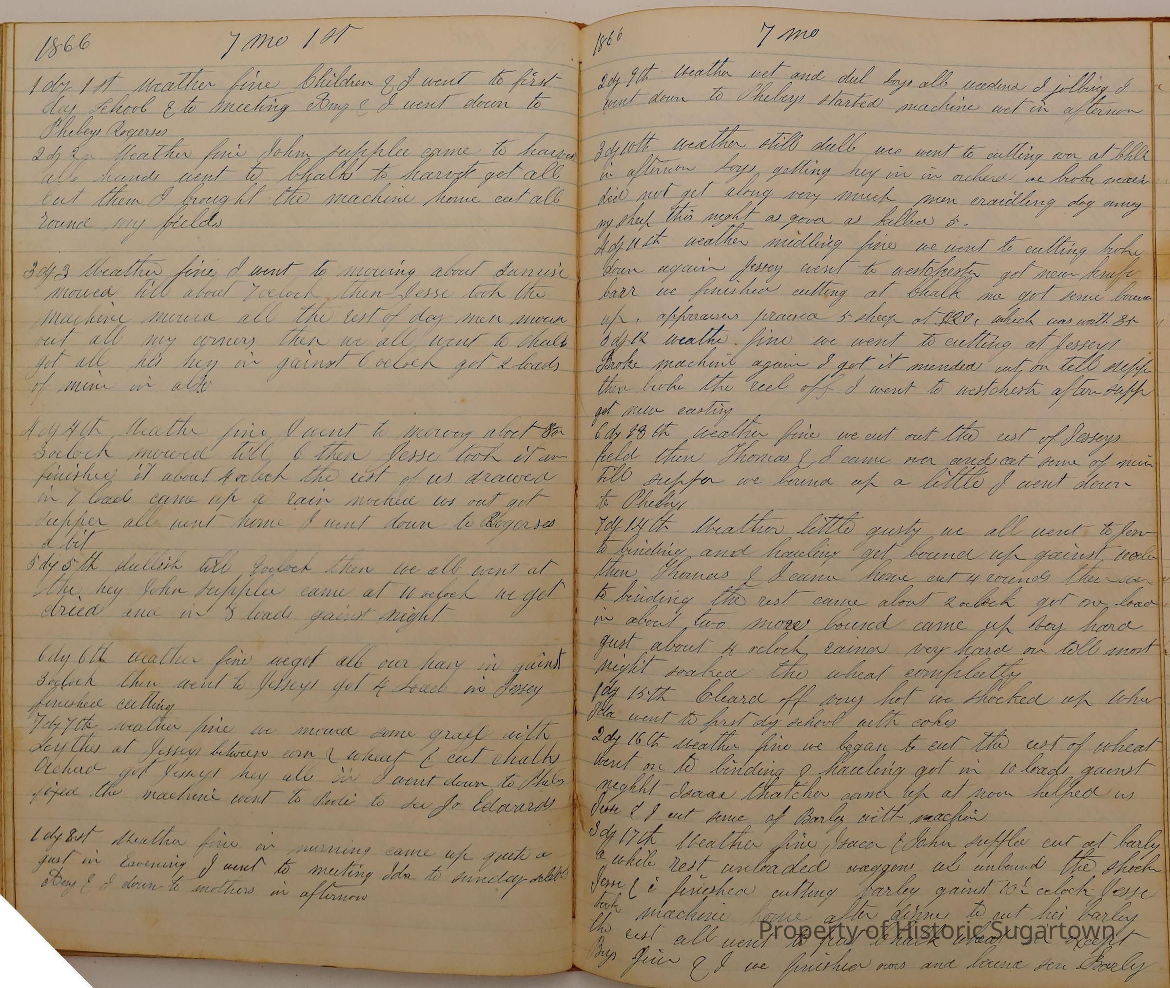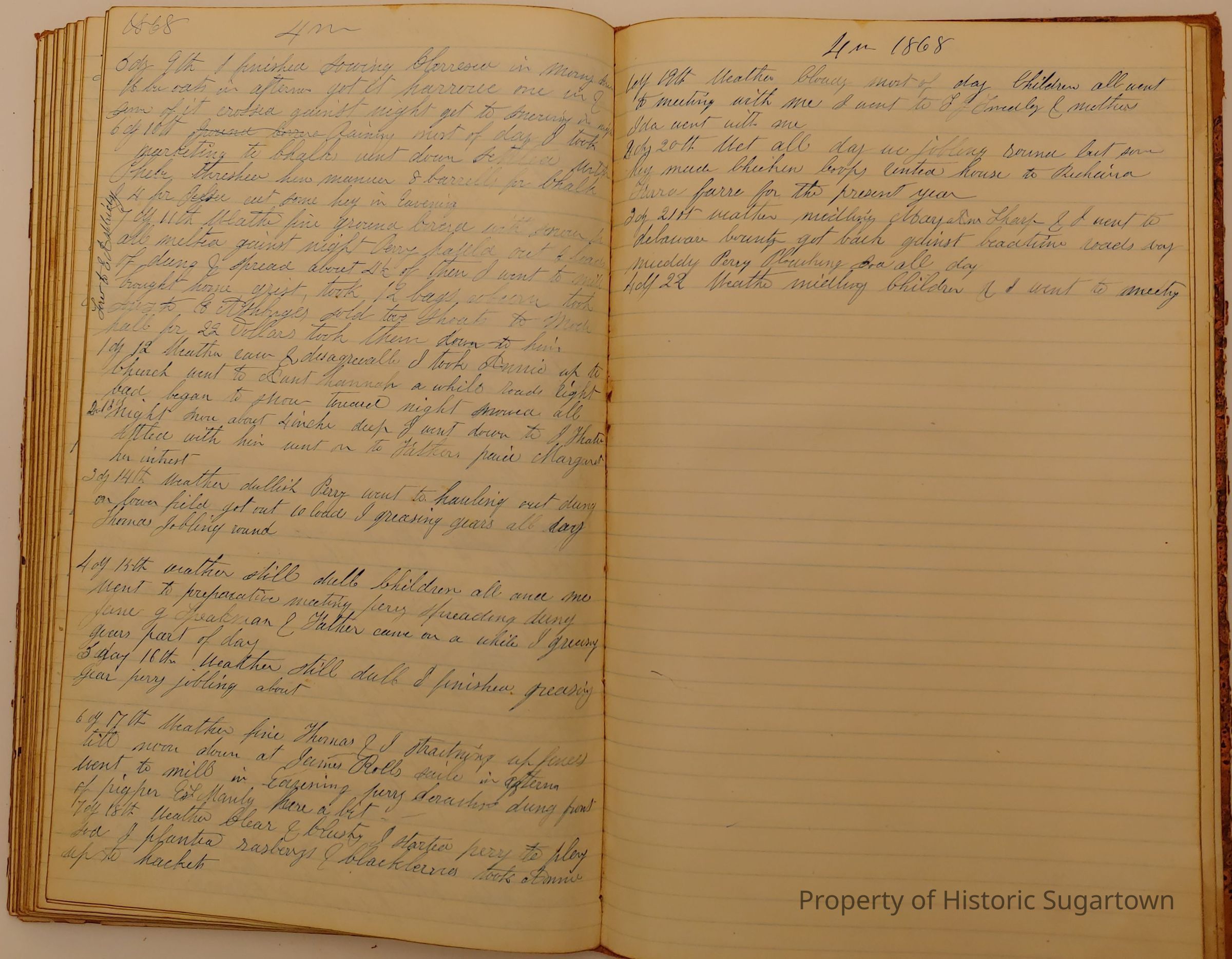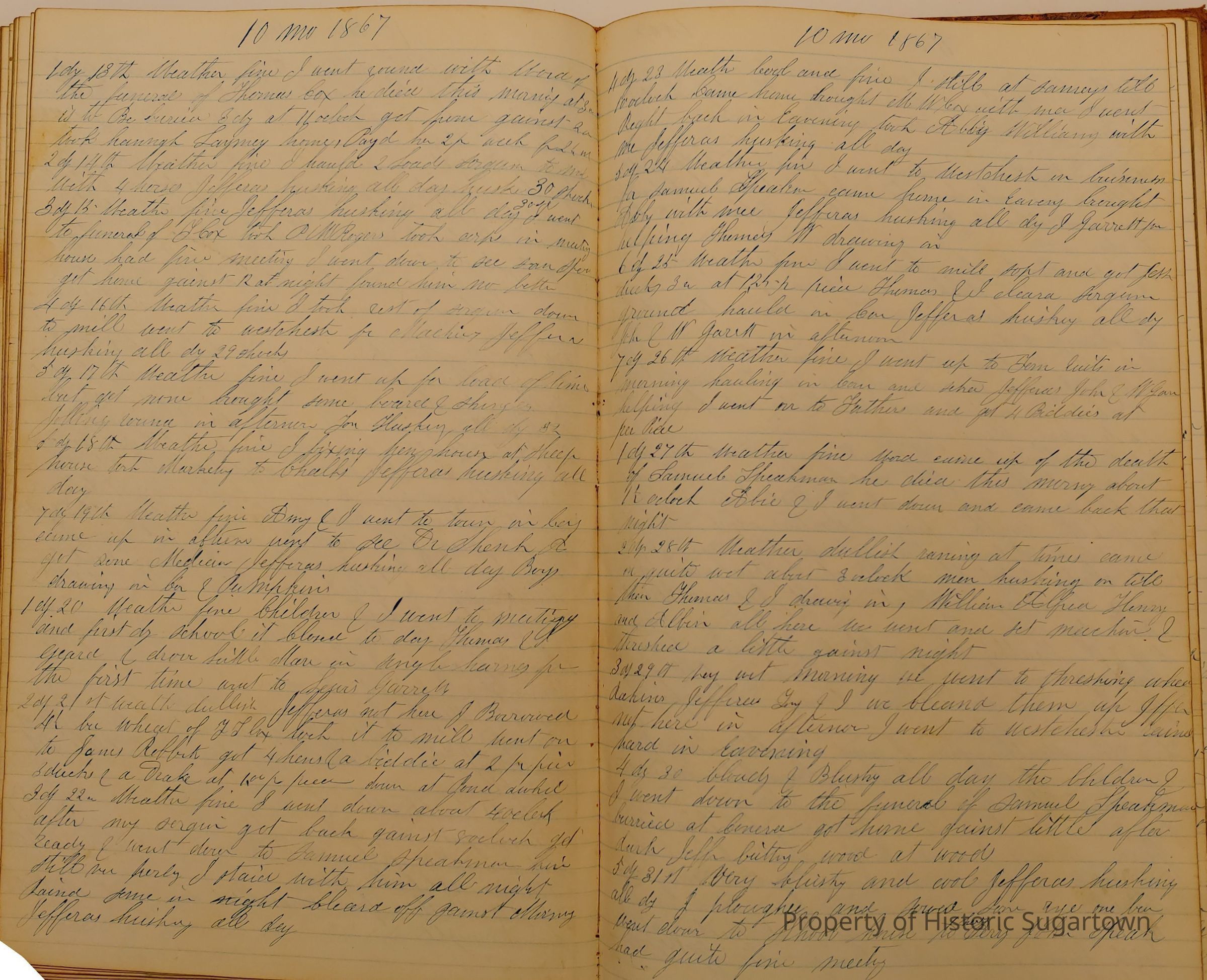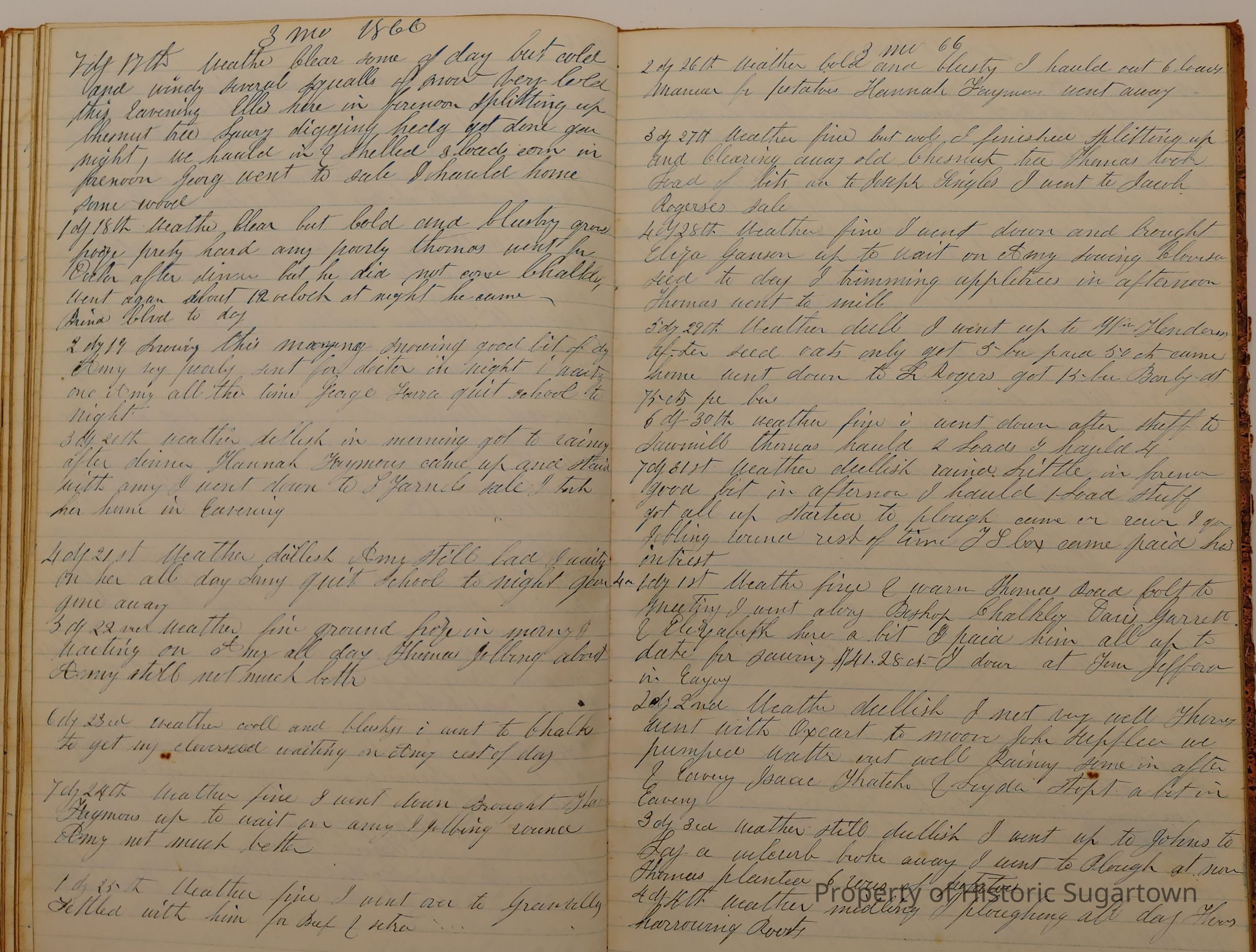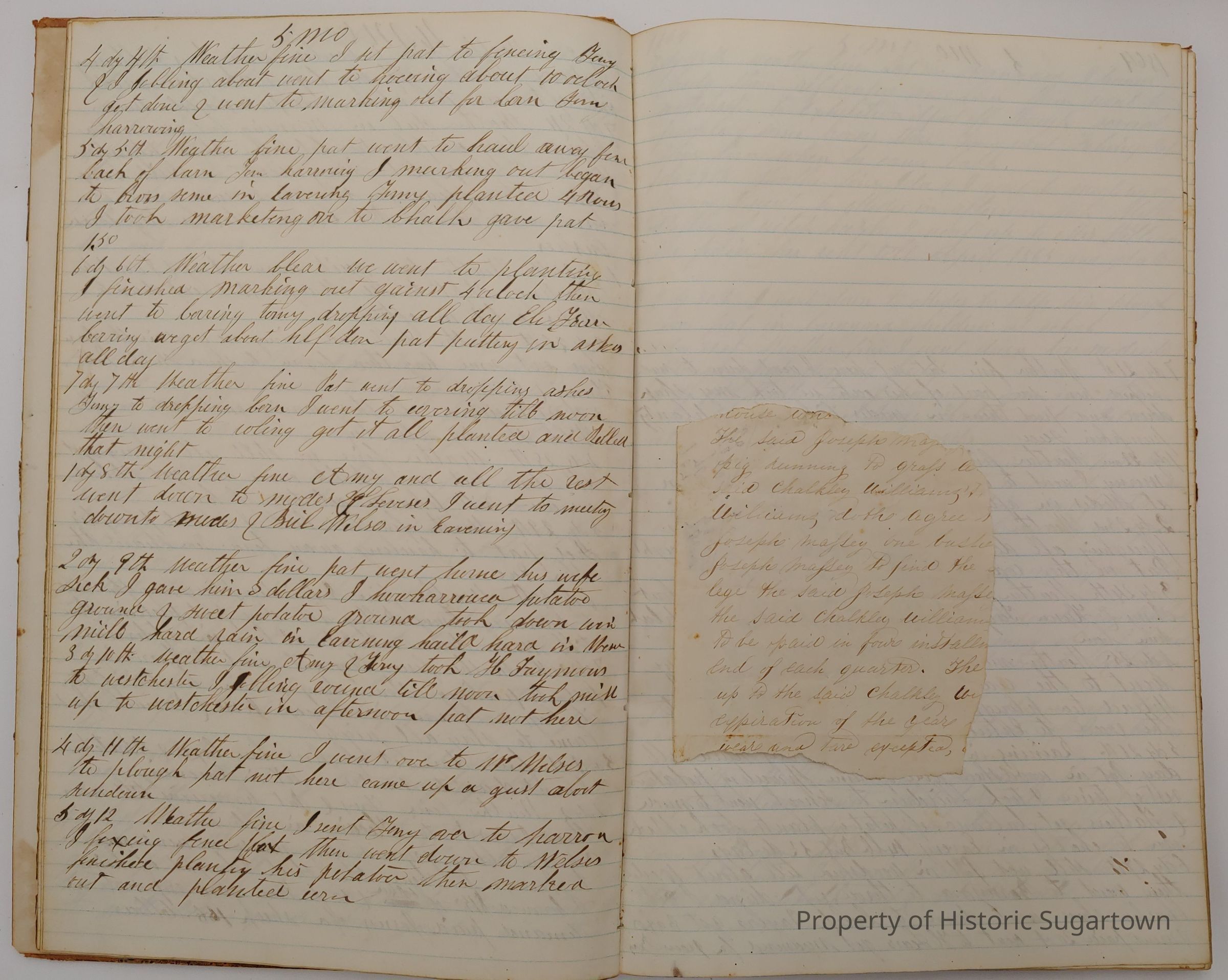 The Garrett Family Manuscript Collection (MSS 002) consists of local deeds and estate papers dating back as early as 1772. Some of the deeds are on vellum or oversized and fragile. A few family papers can be found in this collection as well; there is a poem for Sarah Garrett written by her father in 1834, and the Maris Garrett journal from 1864 includes daily entries, mostly weather reports and some family news.