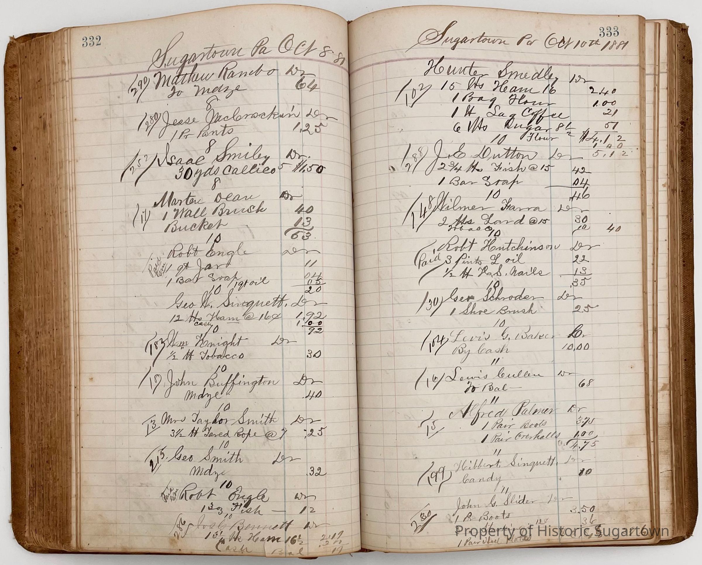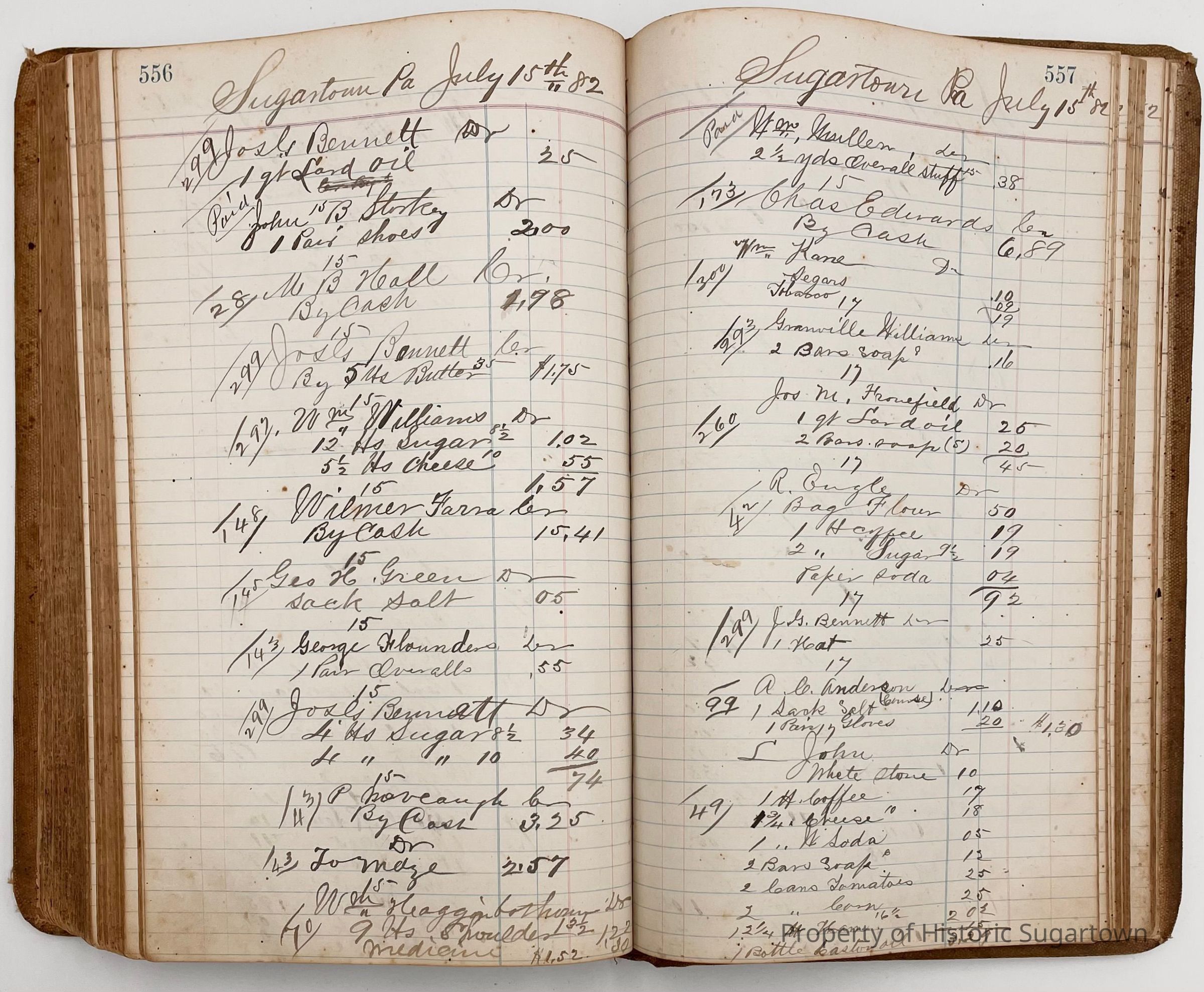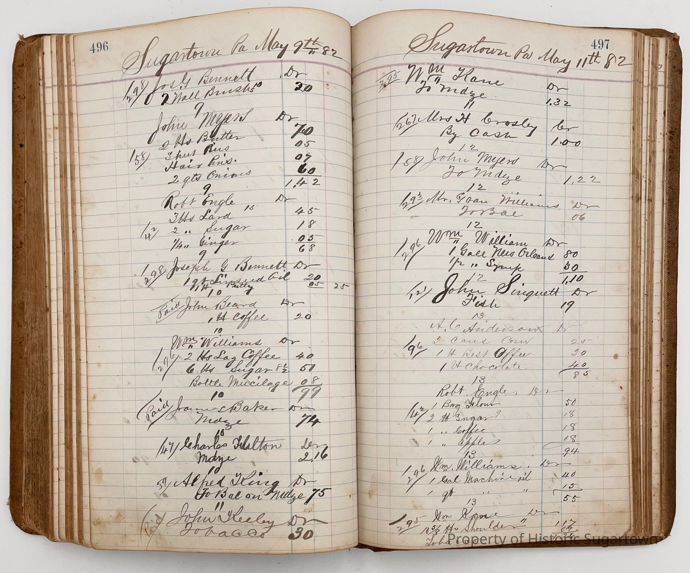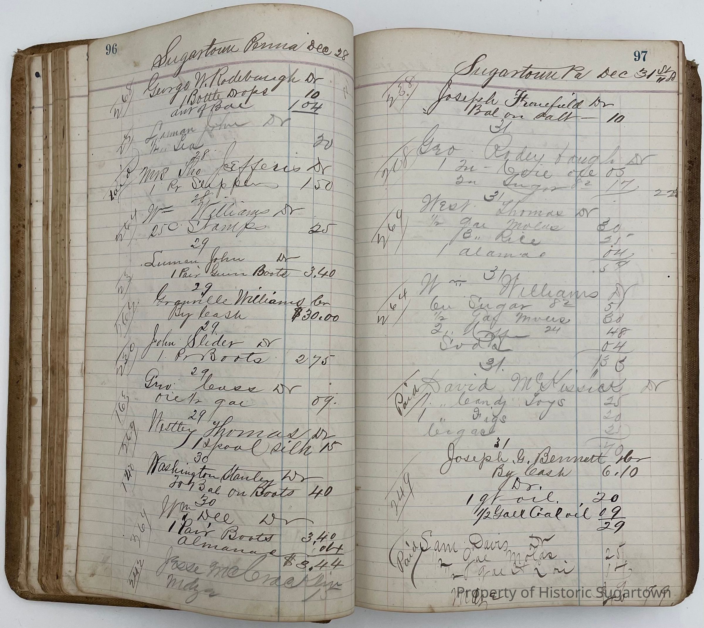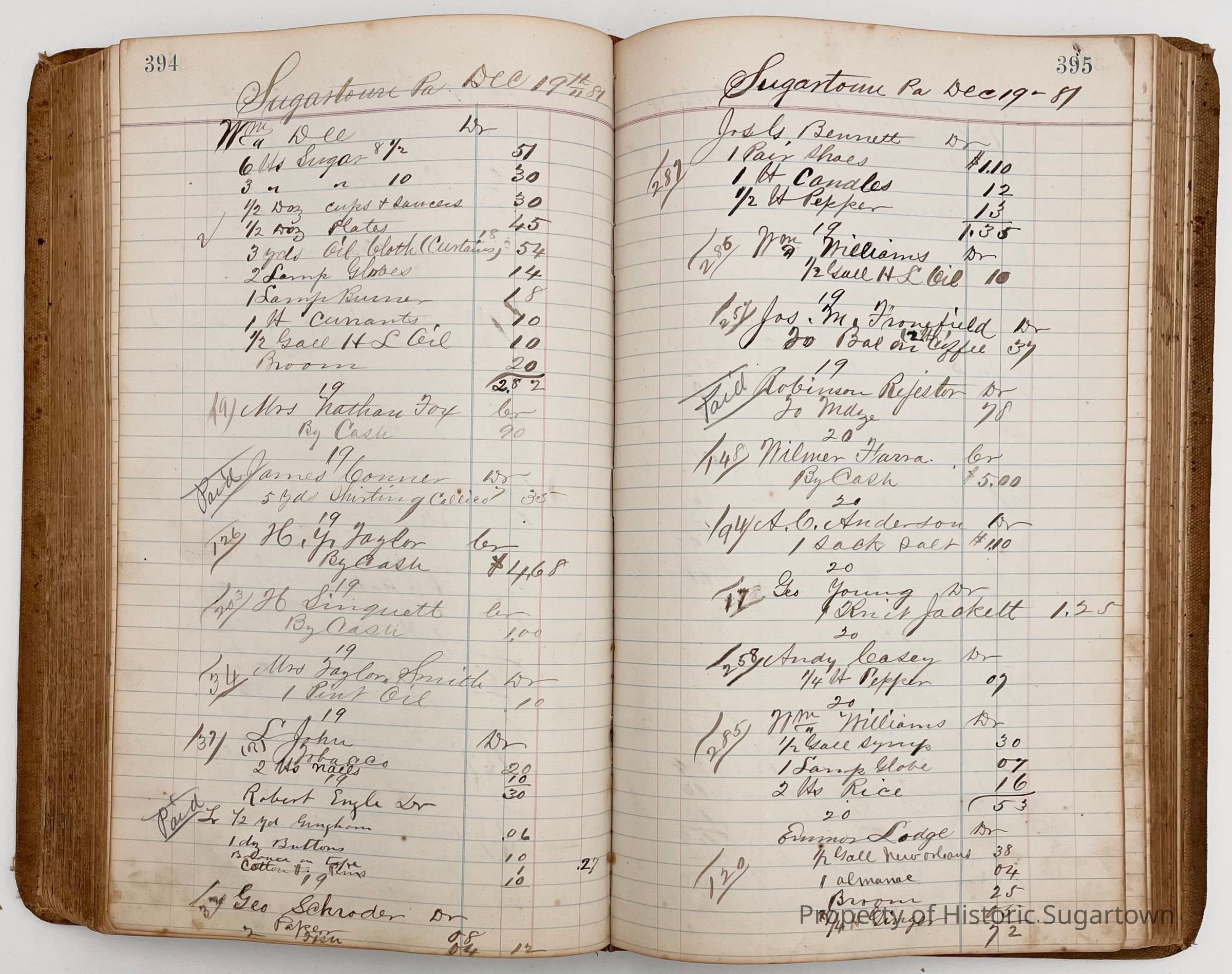 During the 1840s, Sharpless Worrall moved with his family to Sugartown in Willistown Township, Chester County, Pennsylvania, where he took over ownership of a general store and served as postmaster for 20 years. Upon his retirement, Worrall's son-in-law Hillery John took over the store, which he ran until his death. At that point it was taken over by Hillery's son, Clyde B. John, who eventually turned the business into an antiques shop. Worrall and John family papers and business records, 1830-1939, primarily consist of the business records of the general store under all three owners as well personal and family papers relating to the Worrall and John families.Context