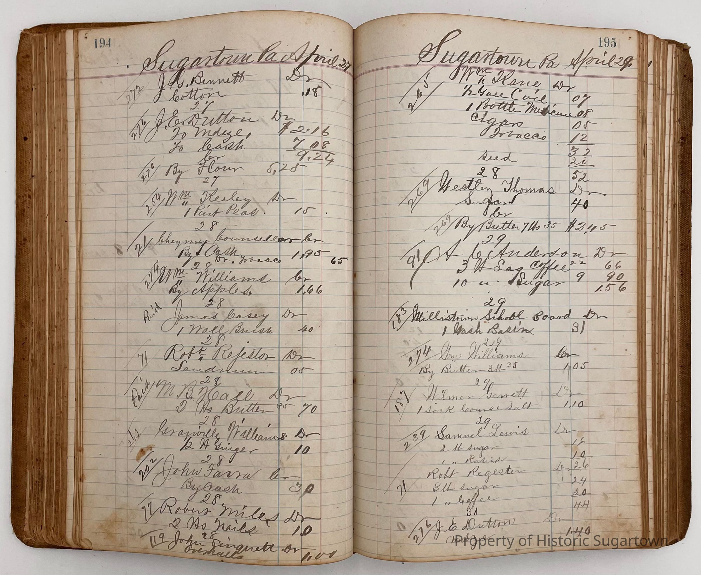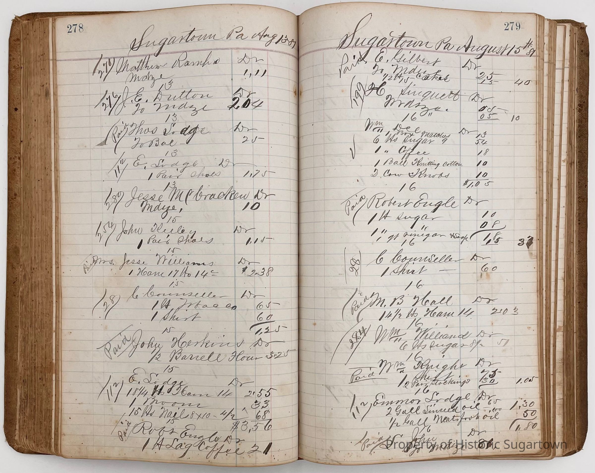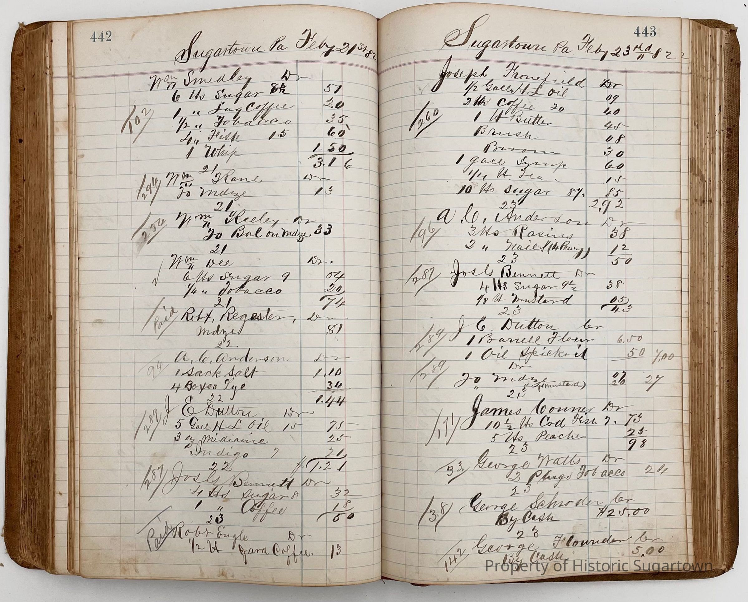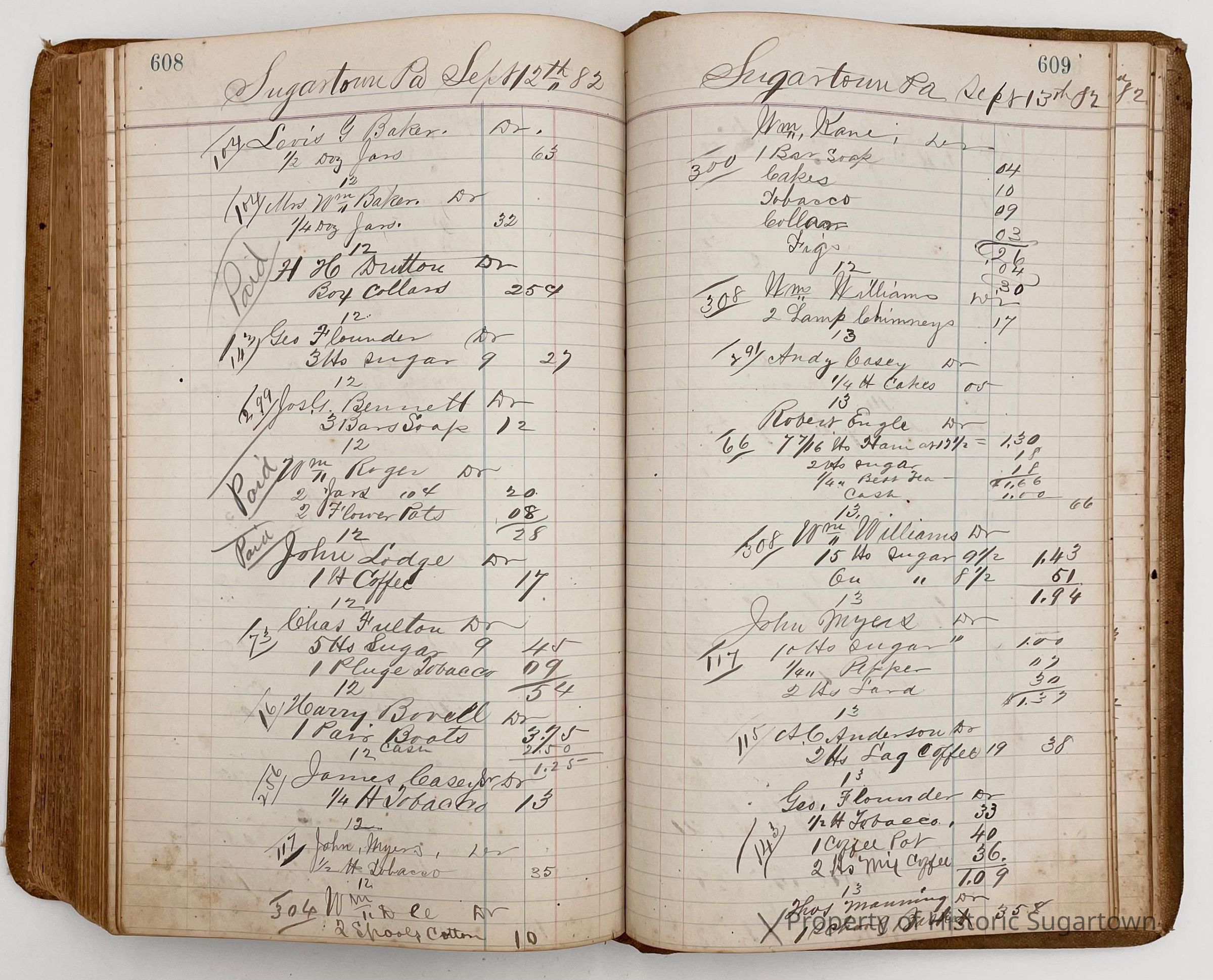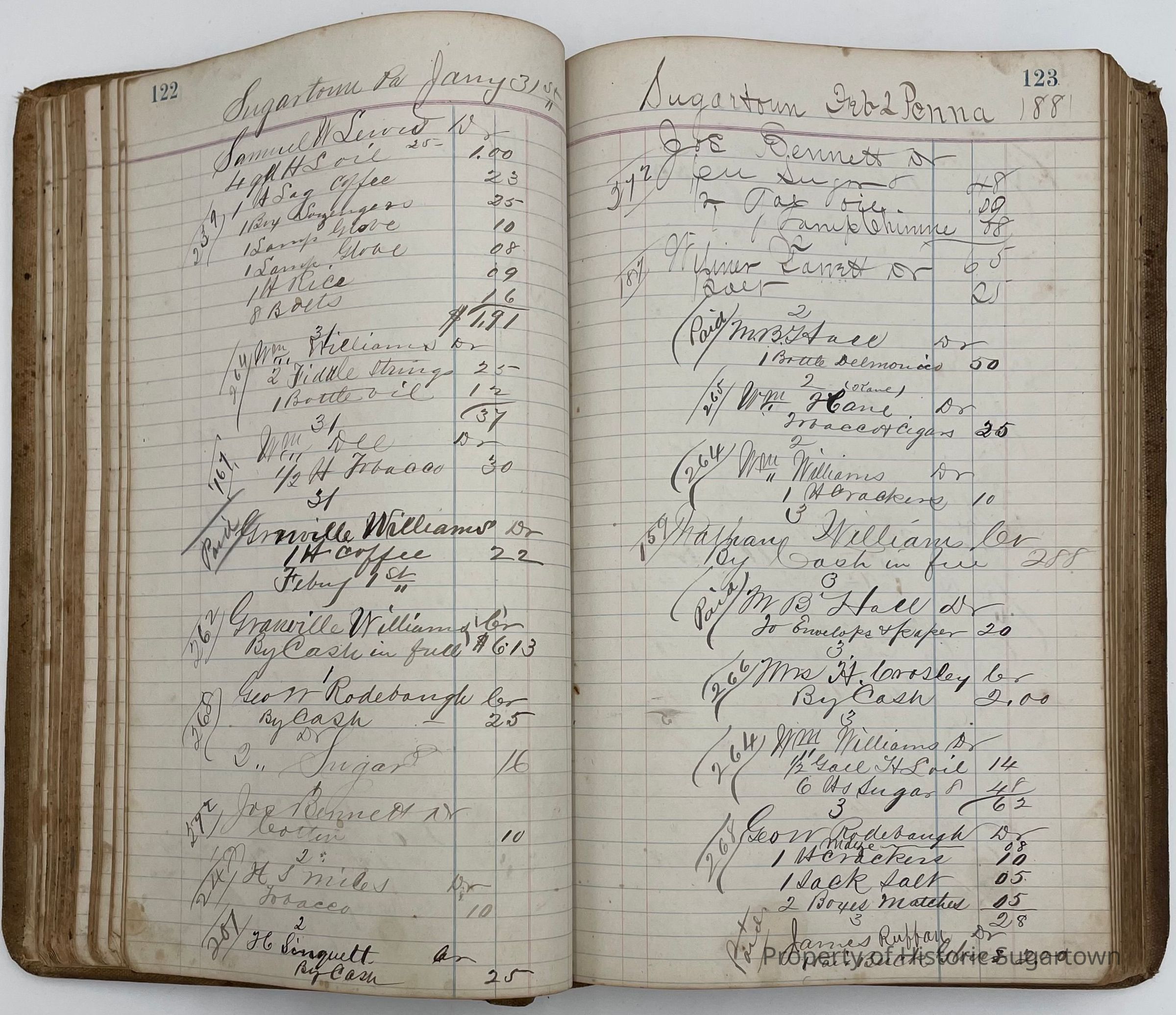 During the 1840s, Sharpless Worrall moved with his family to Sugartown in Willistown Township, Chester County, Pennsylvania, where he took over ownership of a general store and served as postmaster for 20 years. Upon his retirement, Worrall's son-in-law Hillery John took over the store, which he ran until his death. At that point it was taken over by Hillery's son, Clyde B. John, who eventually turned the business into an antiques shop. Worrall and John family papers and business records, 1830-1939, primarily consist of the business records of the general store under all three owners as well personal and family papers relating to the Worrall and John families.Context