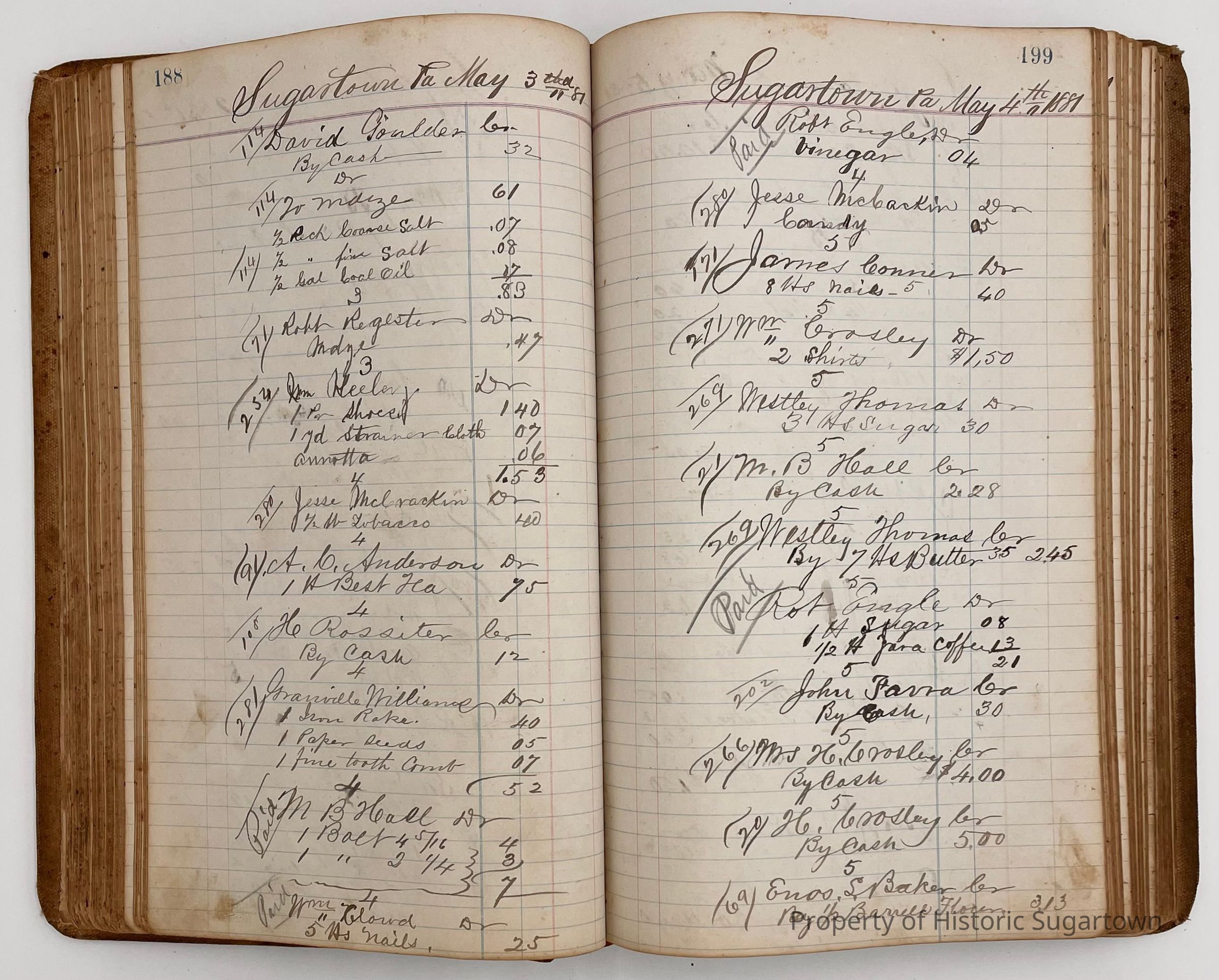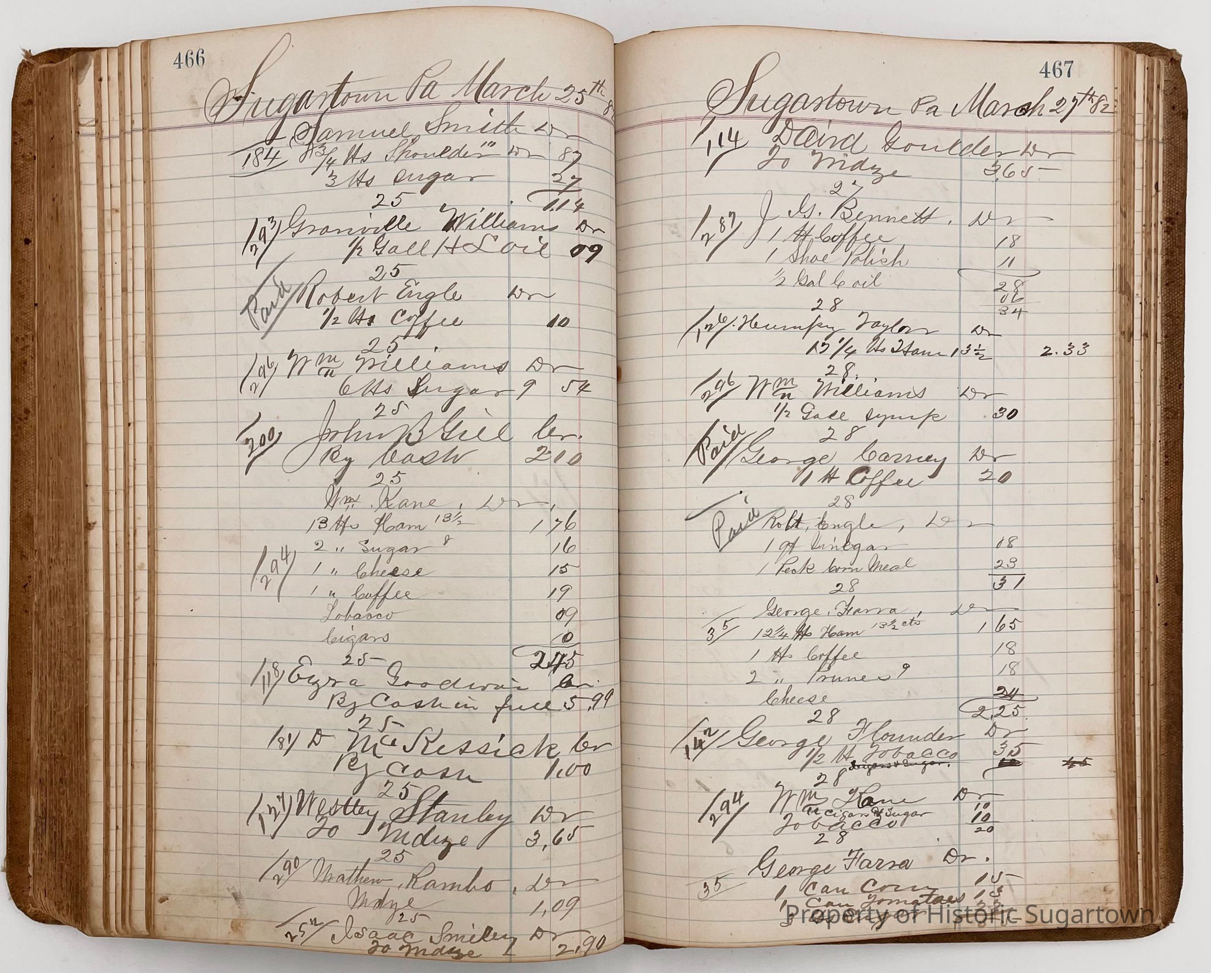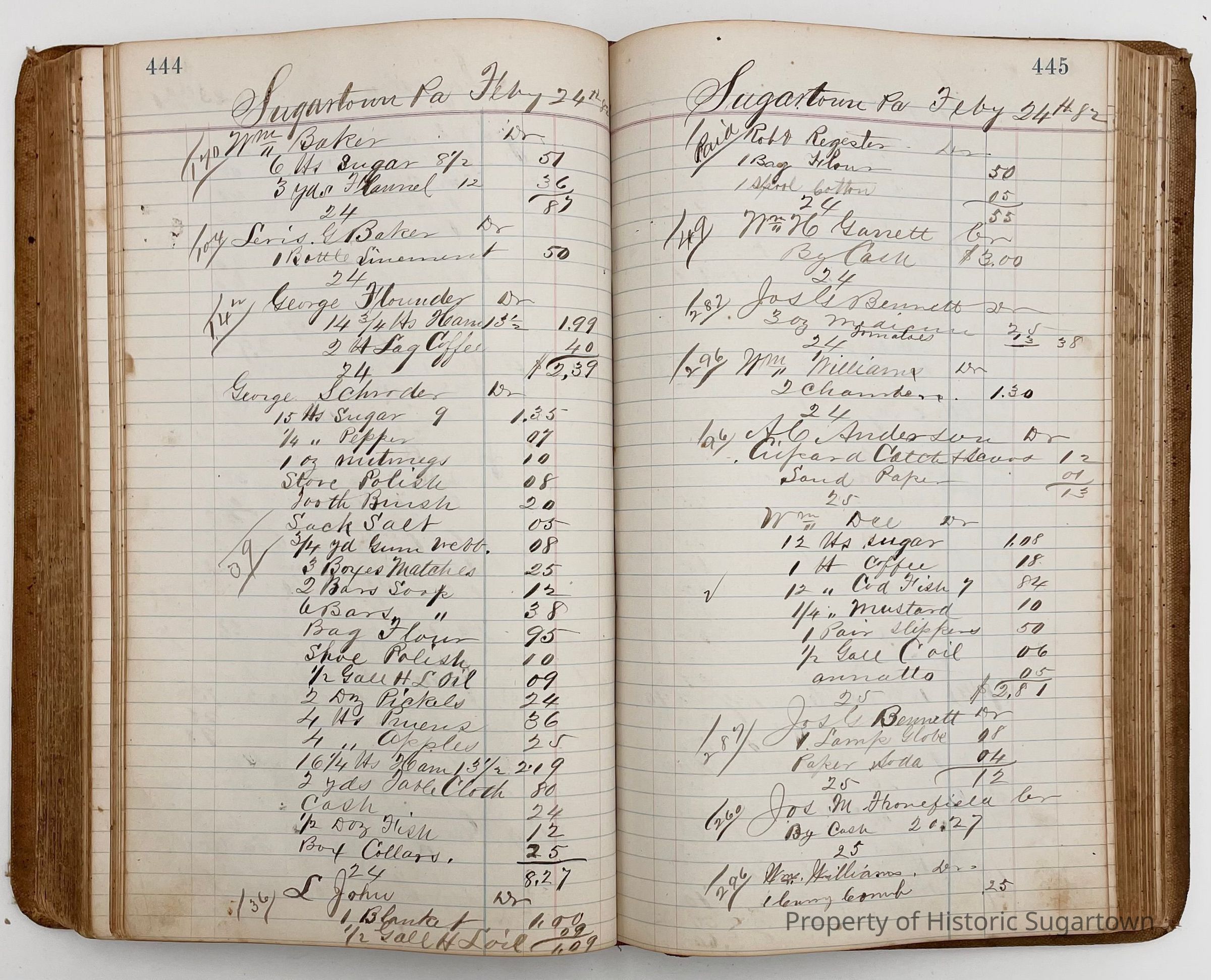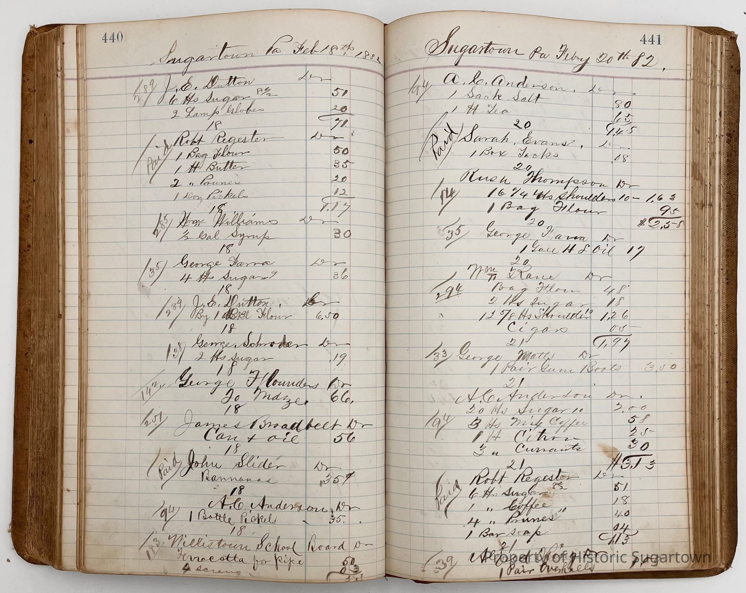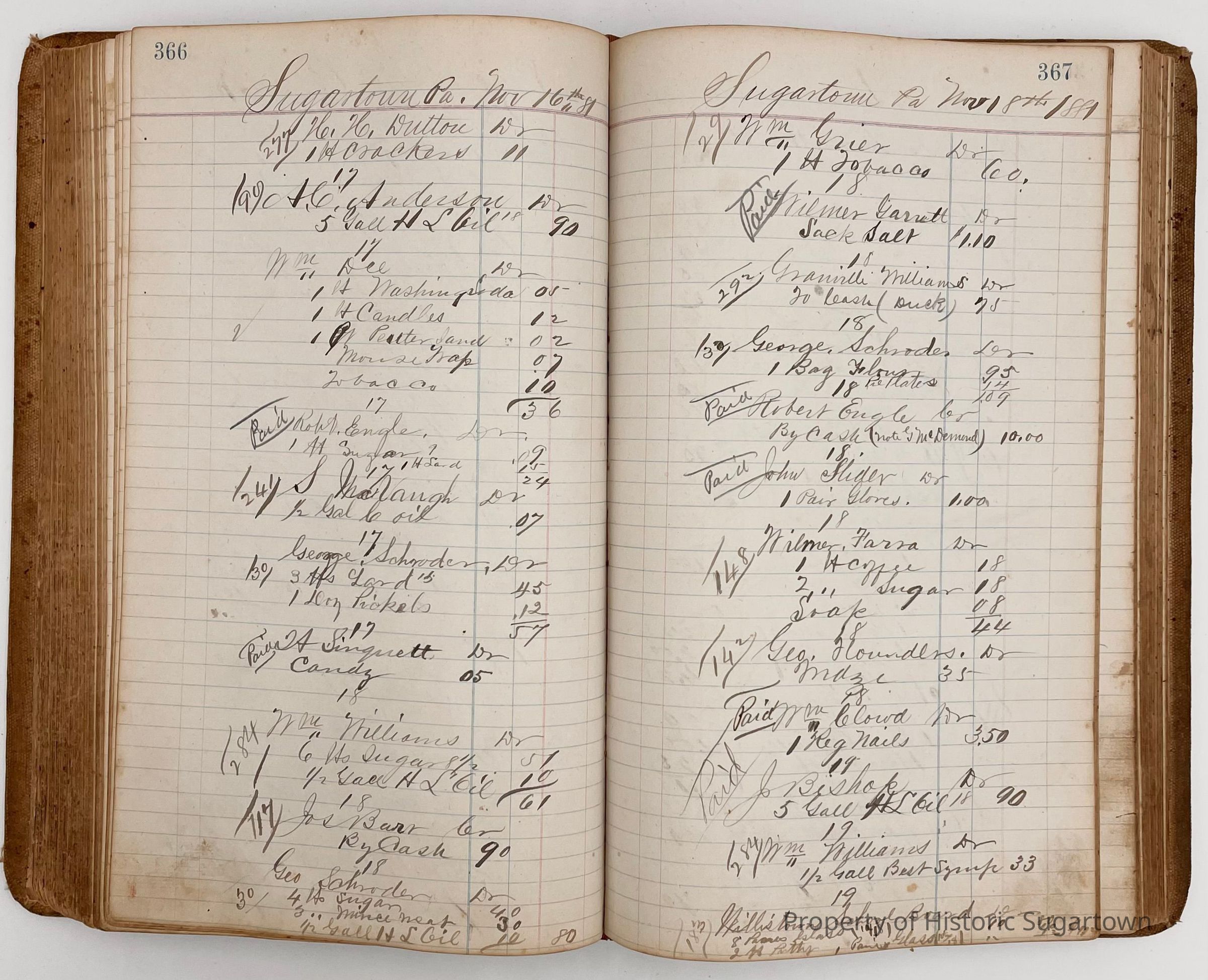 During the 1840s, Sharpless Worrall moved with his family to Sugartown in Willistown Township, Chester County, Pennsylvania, where he took over ownership of a general store and served as postmaster for 20 years. Upon his retirement, Worrall's son-in-law Hillery John took over the store, which he ran until his death. At that point it was taken over by Hillery's son, Clyde B. John, who eventually turned the business into an antiques shop. Worrall and John family papers and business records, 1830-1939, primarily consist of the business records of the general store under all three owners as well personal and family papers relating to the Worrall and John families.Context