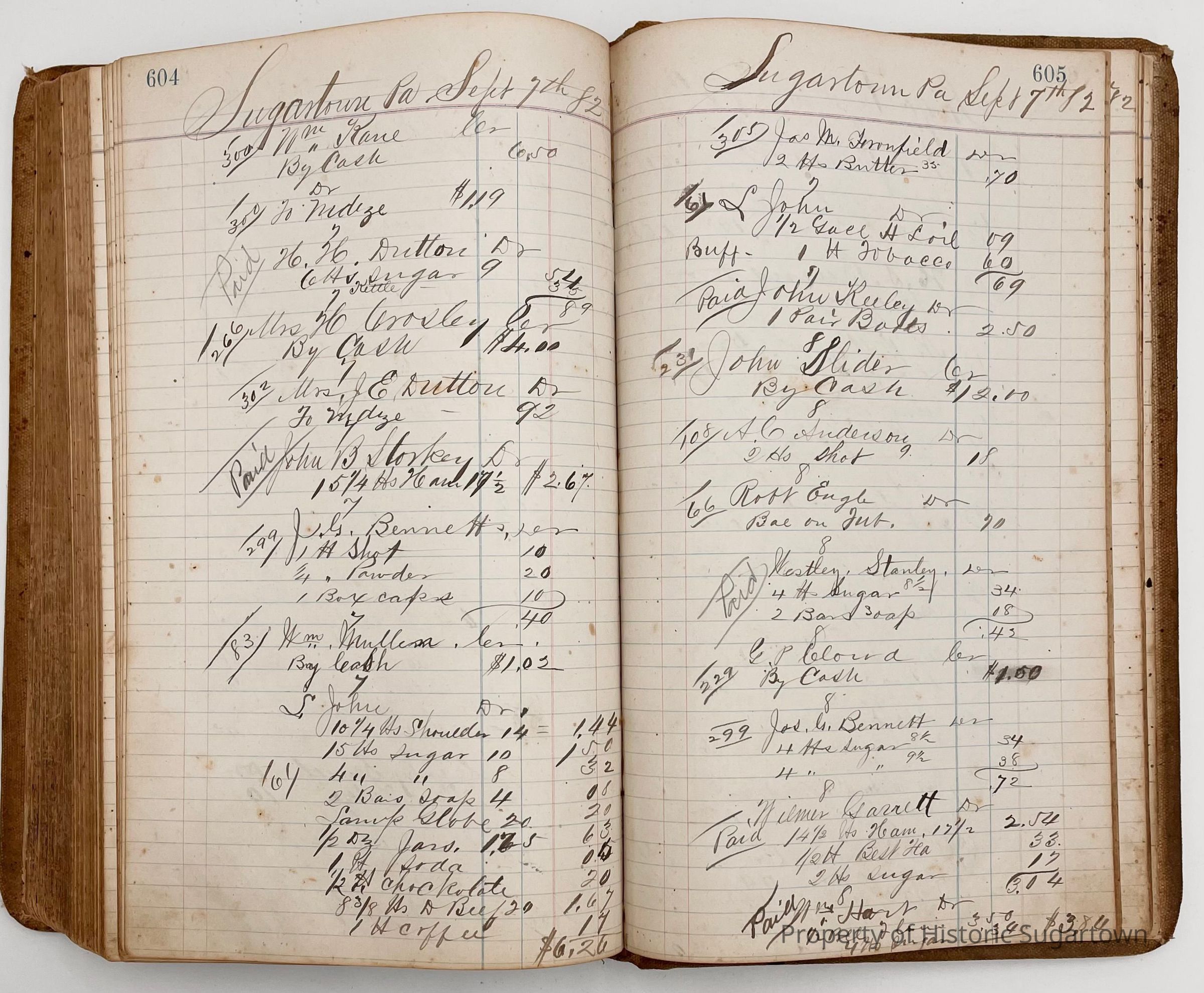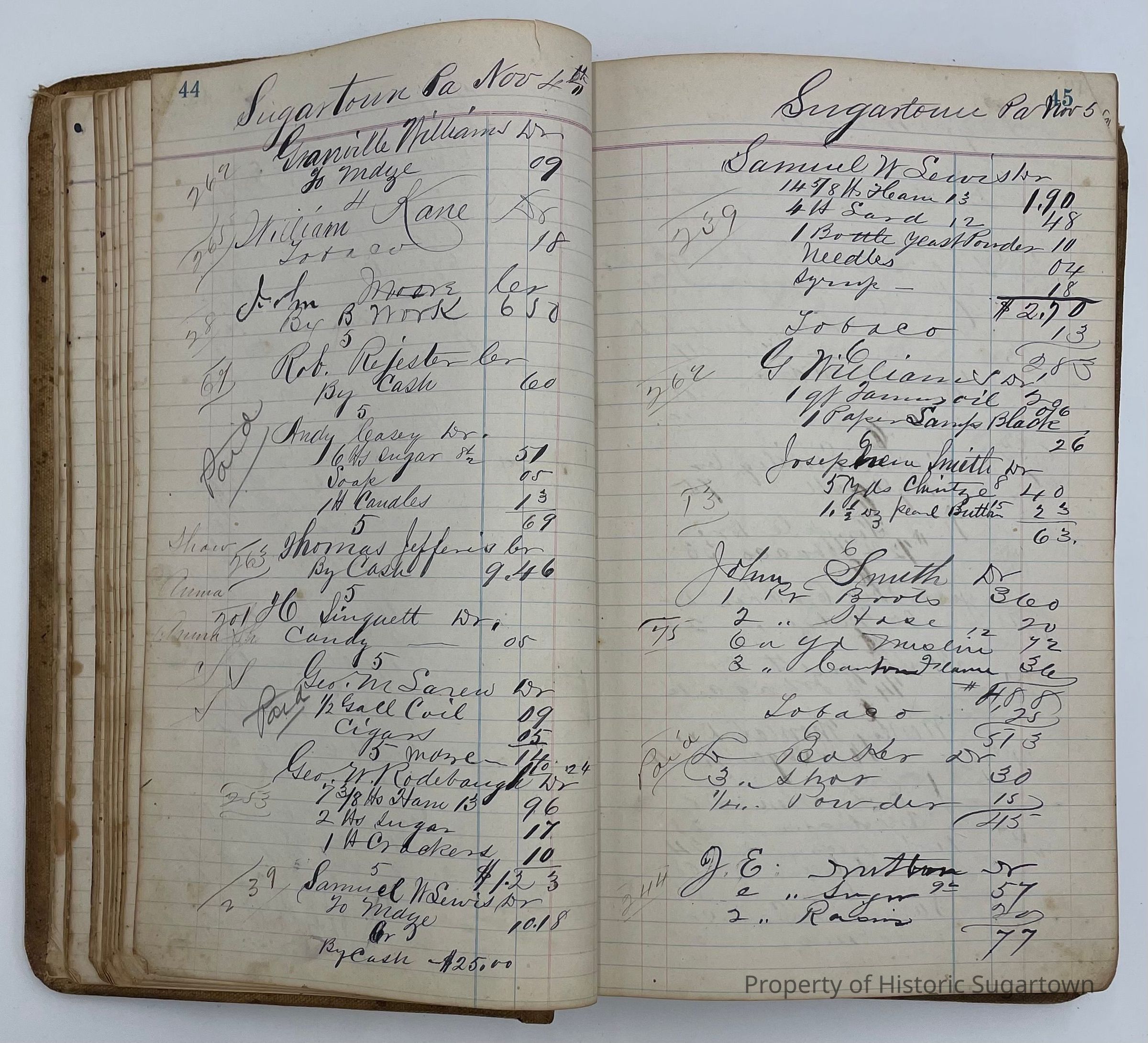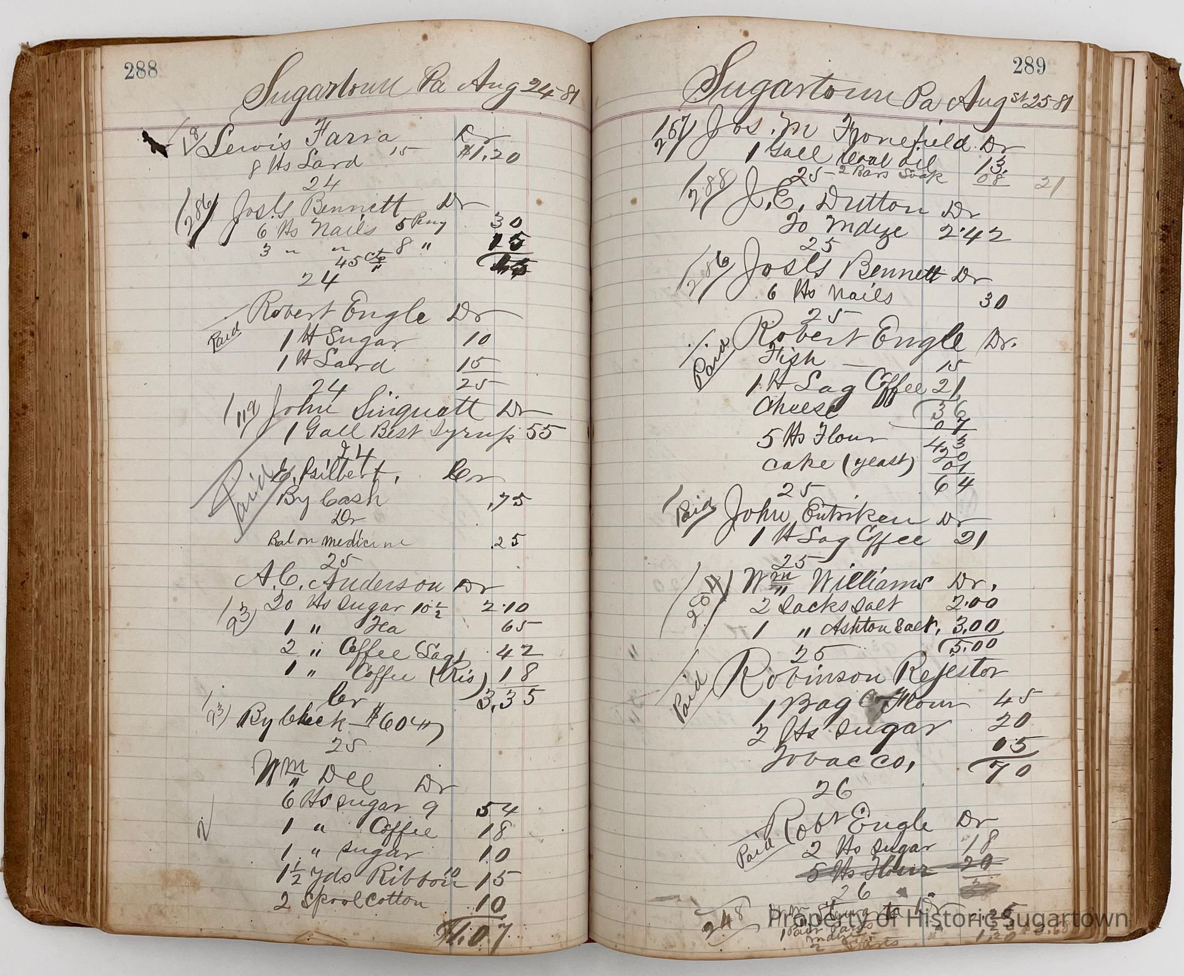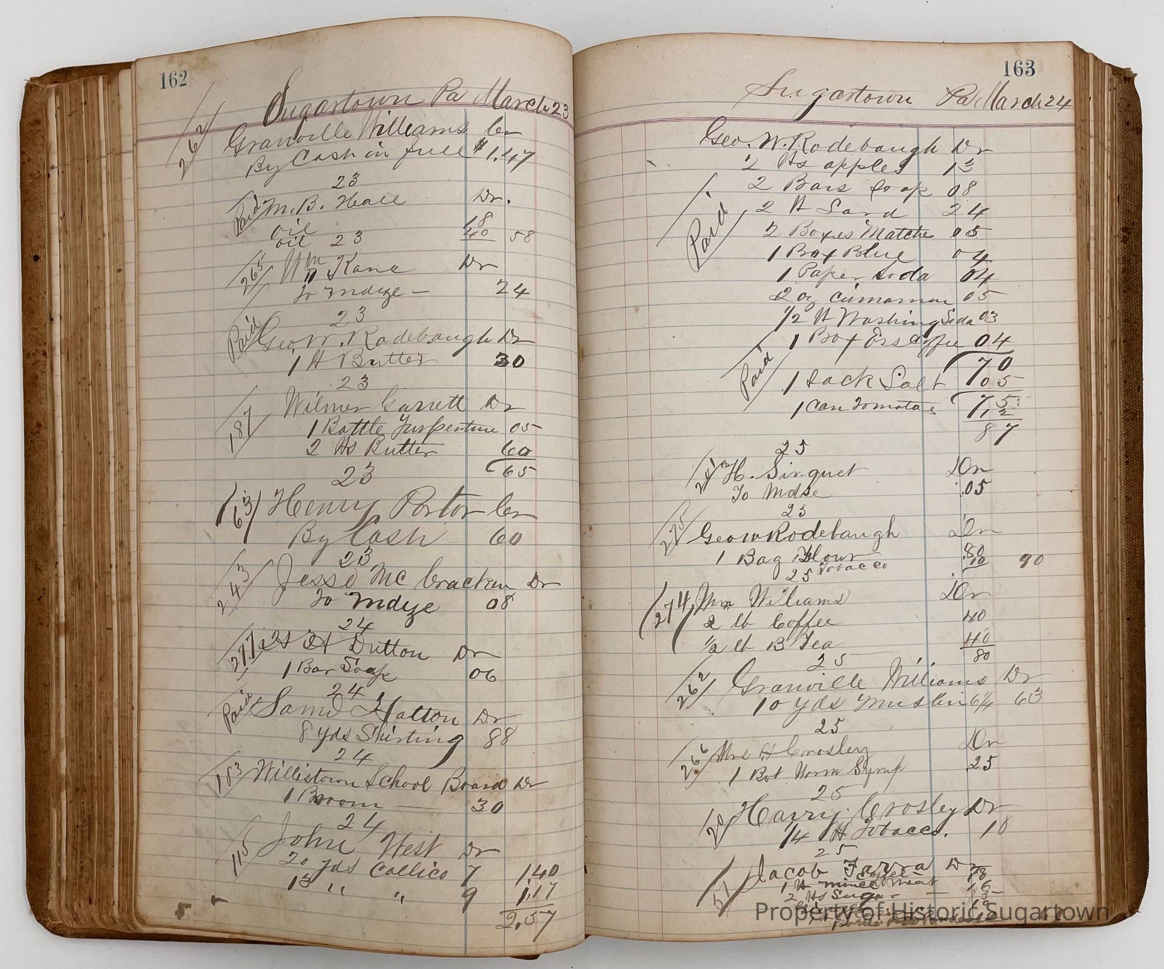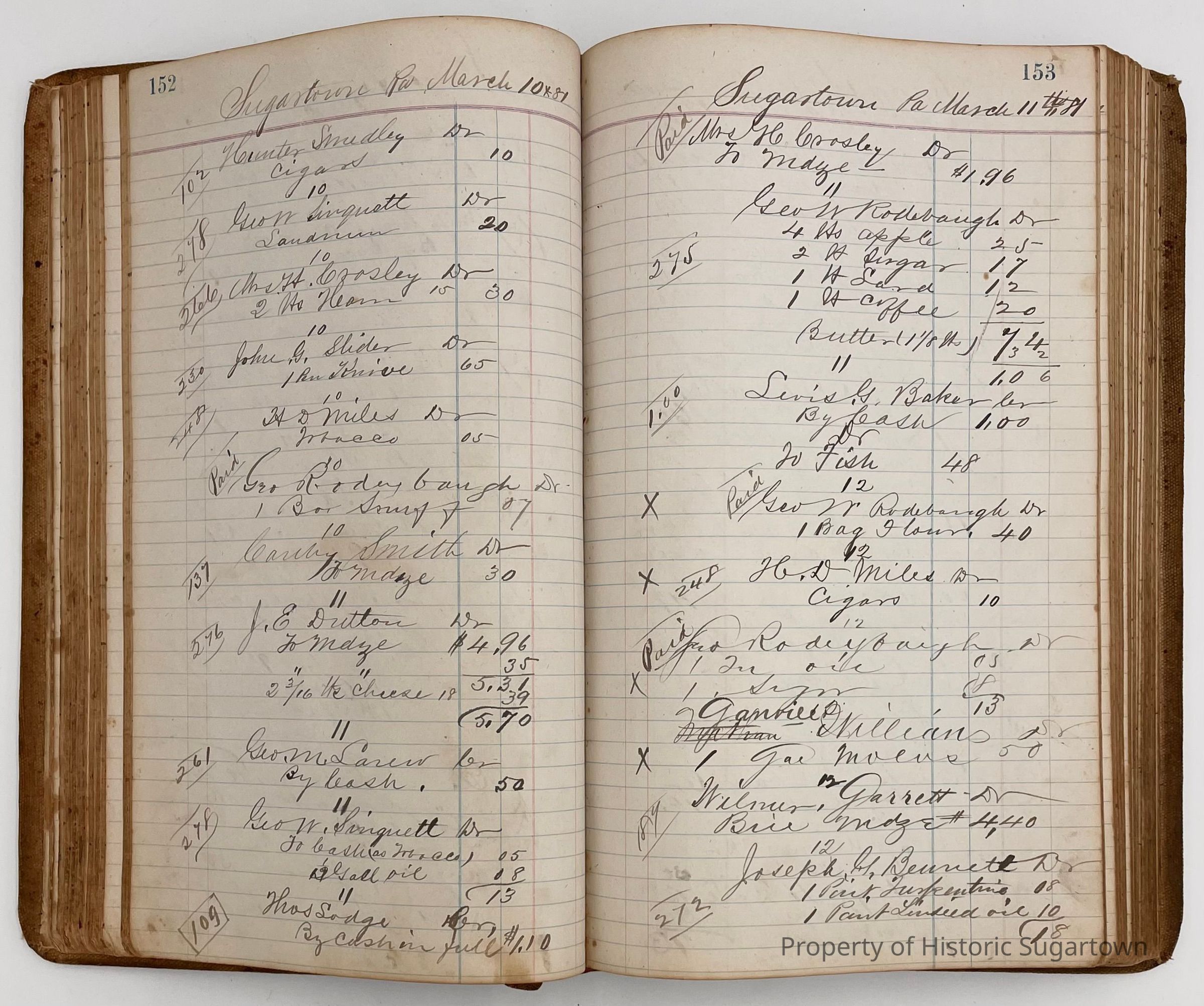 During the 1840s, Sharpless Worrall moved with his family to Sugartown in Willistown Township, Chester County, Pennsylvania, where he took over ownership of a general store and served as postmaster for 20 years. Upon his retirement, Worrall's son-in-law Hillery John took over the store, which he ran until his death. At that point it was taken over by Hillery's son, Clyde B. John, who eventually turned the business into an antiques shop. Worrall and John family papers and business records, 1830-1939, primarily consist of the business records of the general store under all three owners as well personal and family papers relating to the Worrall and John families.Context