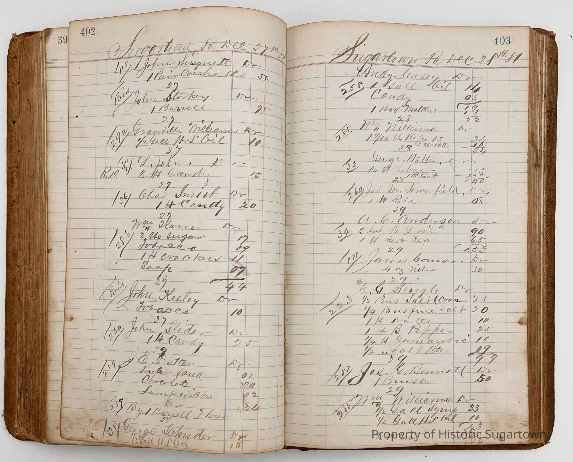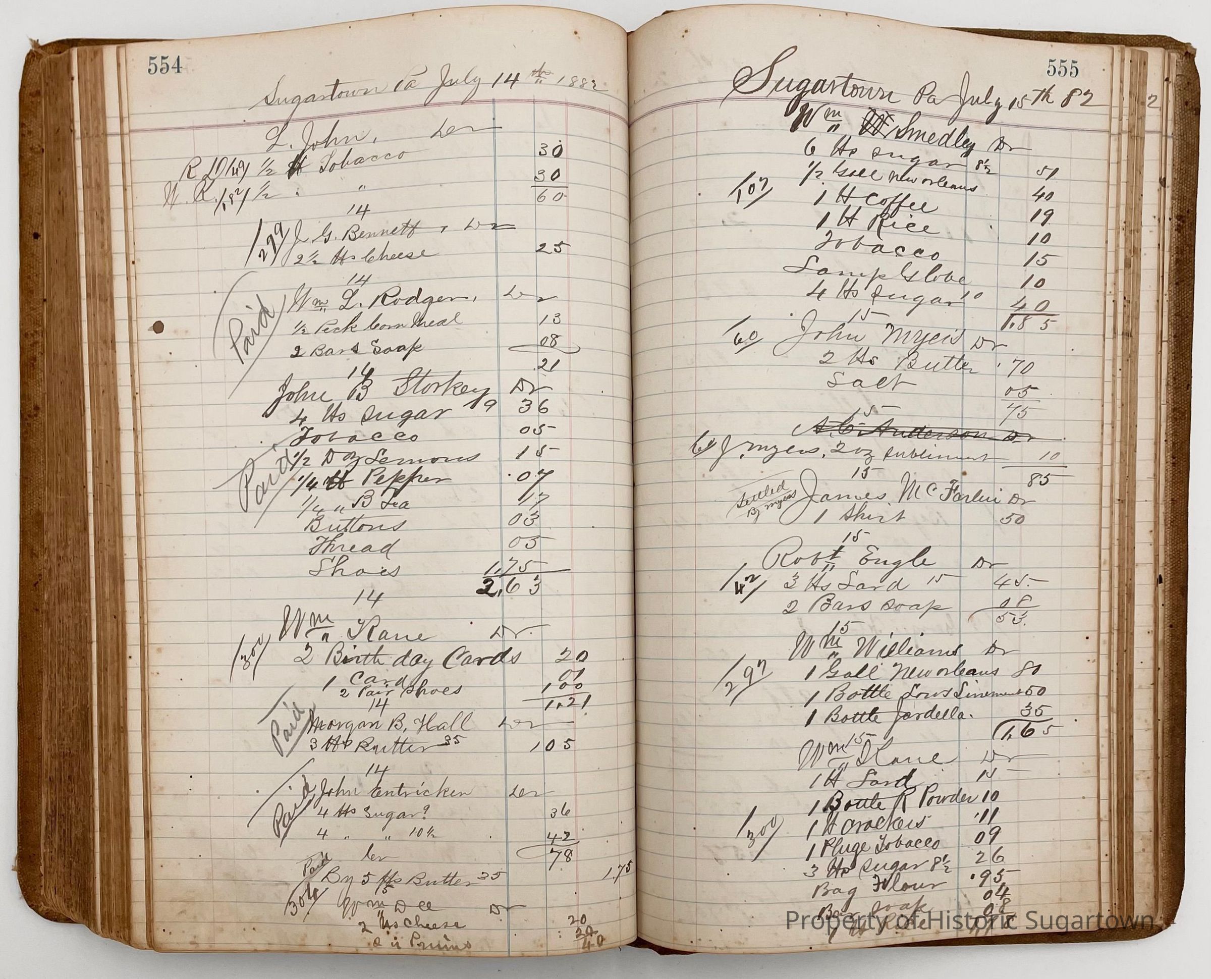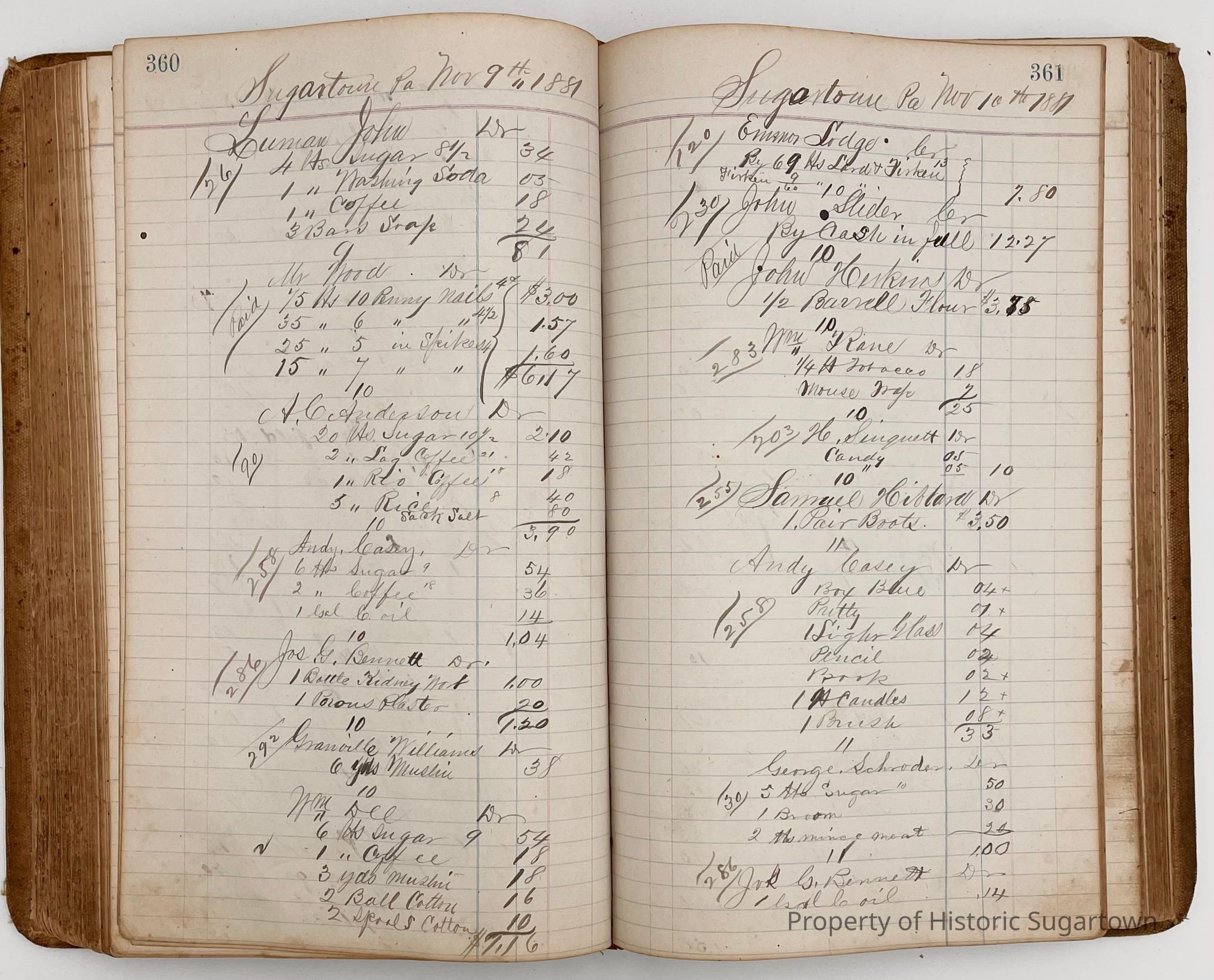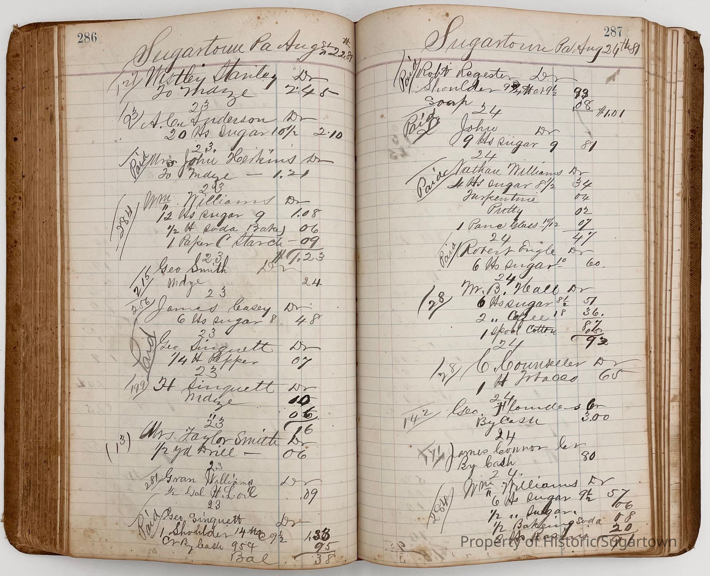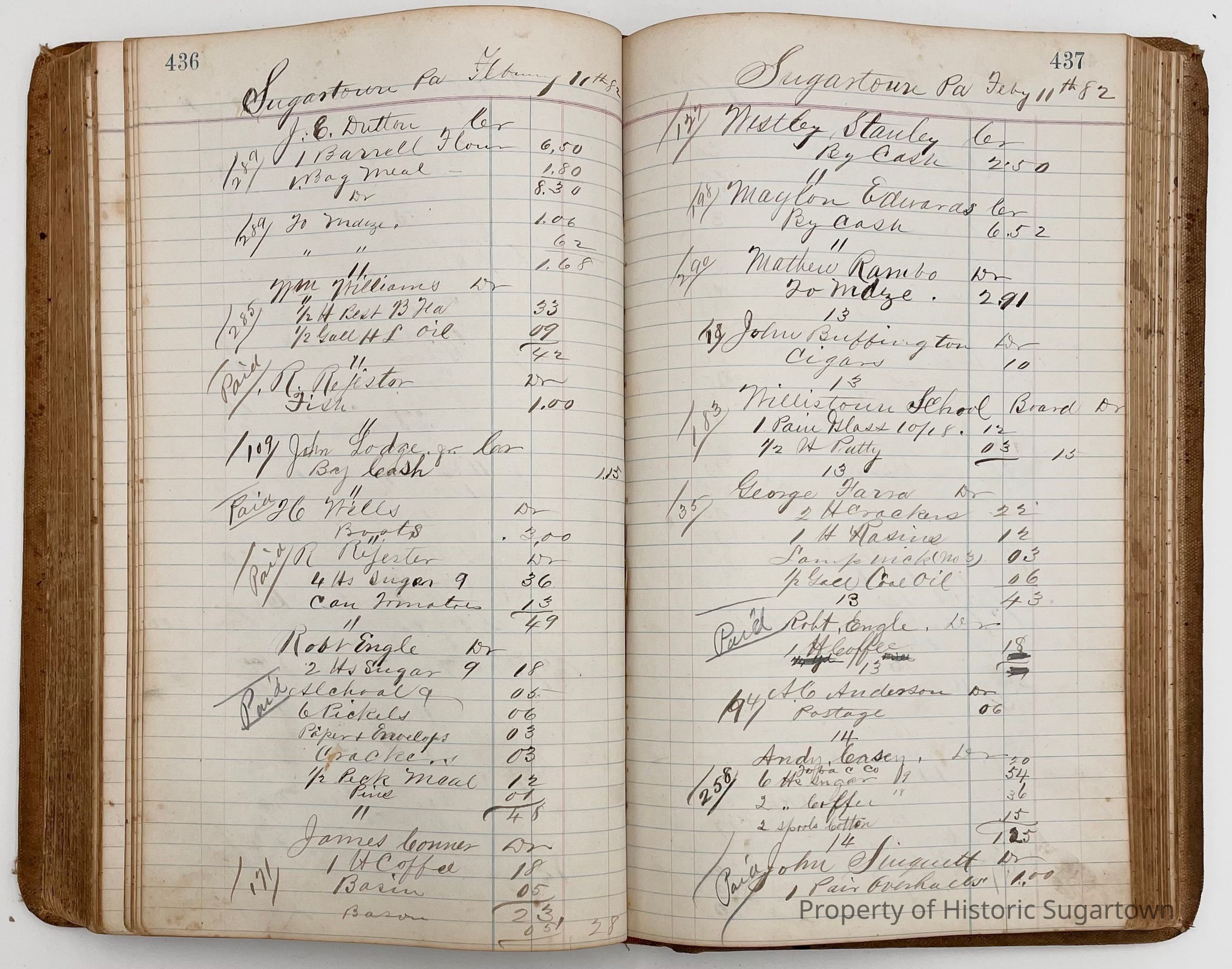 During the 1840s, Sharpless Worrall moved with his family to Sugartown in Willistown Township, Chester County, Pennsylvania, where he took over ownership of a general store and served as postmaster for 20 years. Upon his retirement, Worrall's son-in-law Hillery John took over the store, which he ran until his death. At that point it was taken over by Hillery's son, Clyde B. John, who eventually turned the business into an antiques shop. Worrall and John family papers and business records, 1830-1939, primarily consist of the business records of the general store under all three owners as well personal and family papers relating to the Worrall and John families.Context