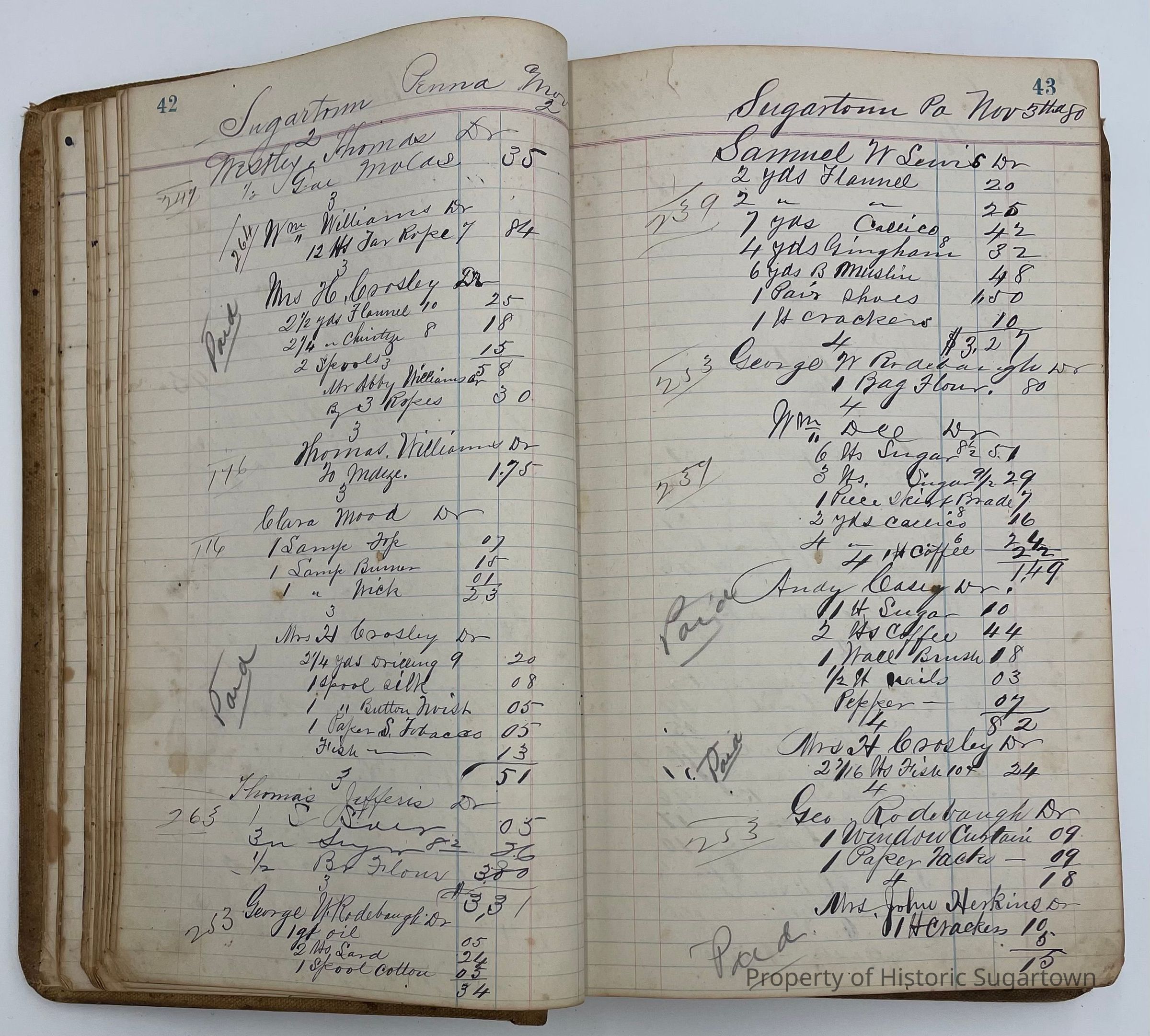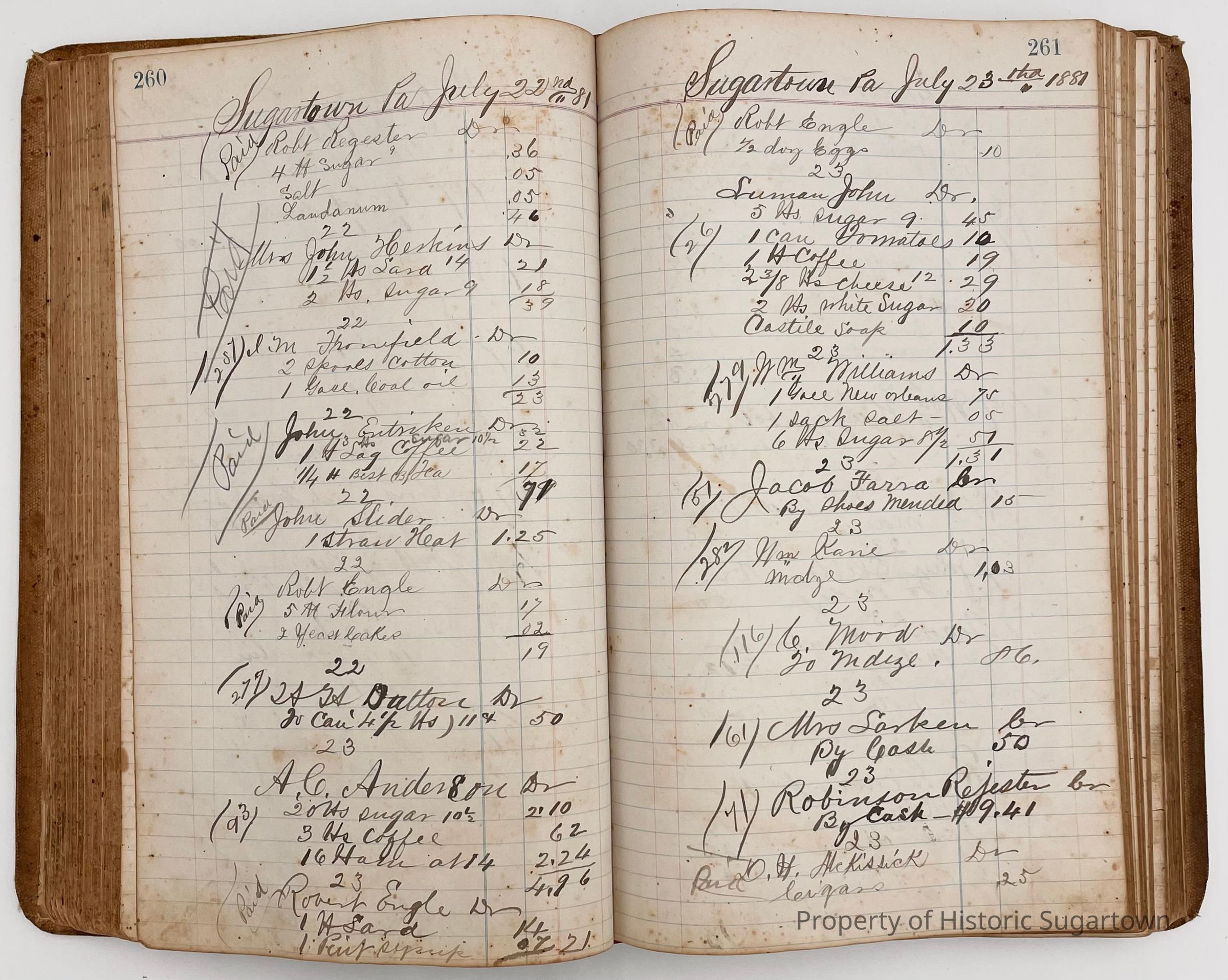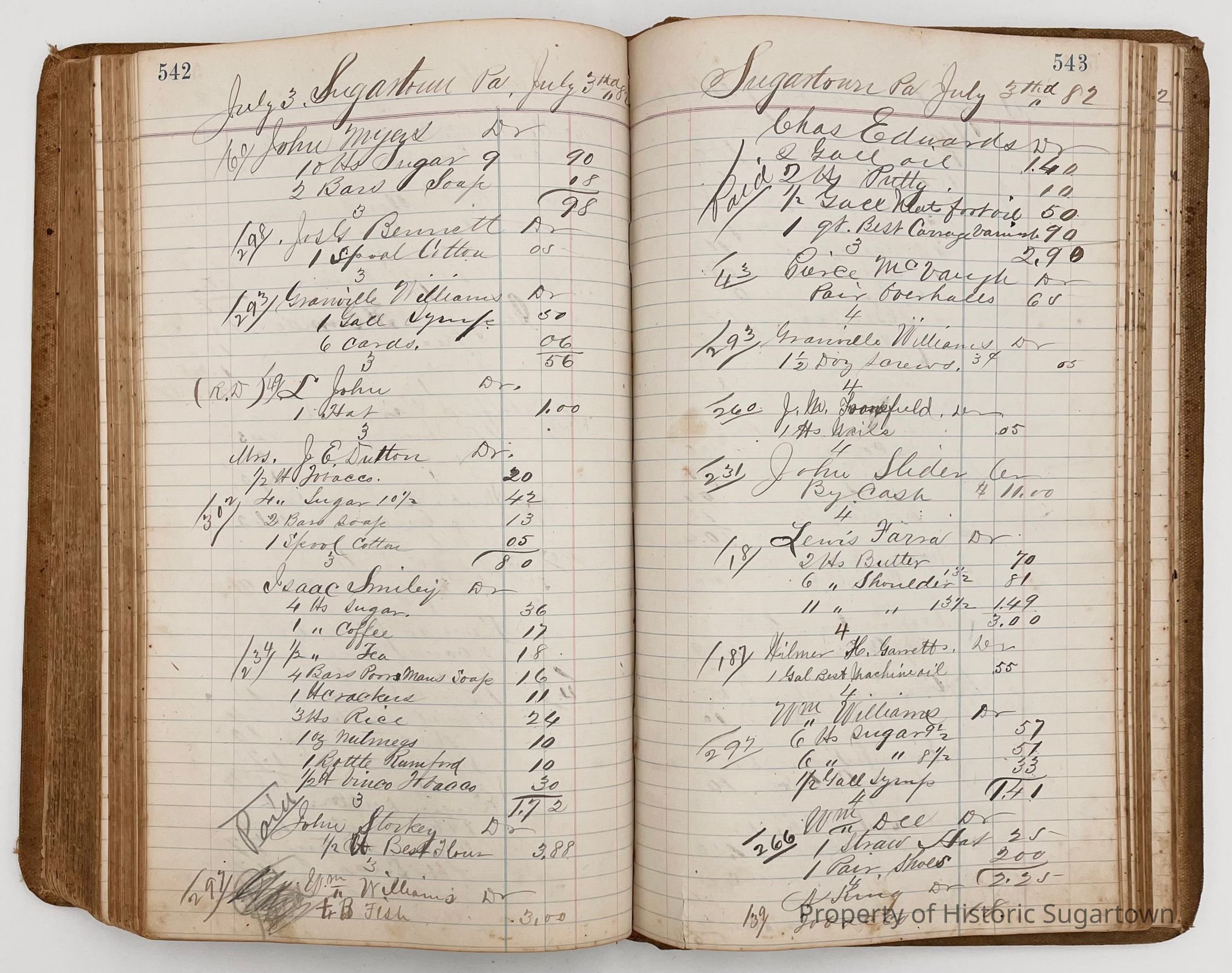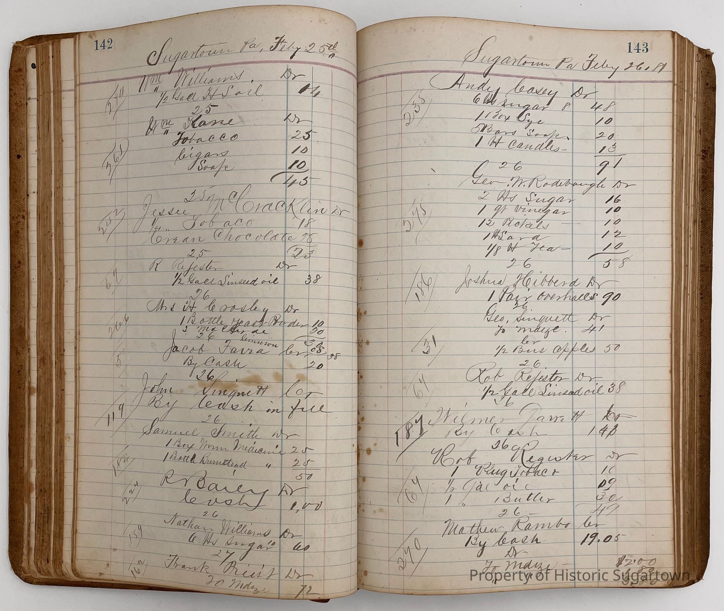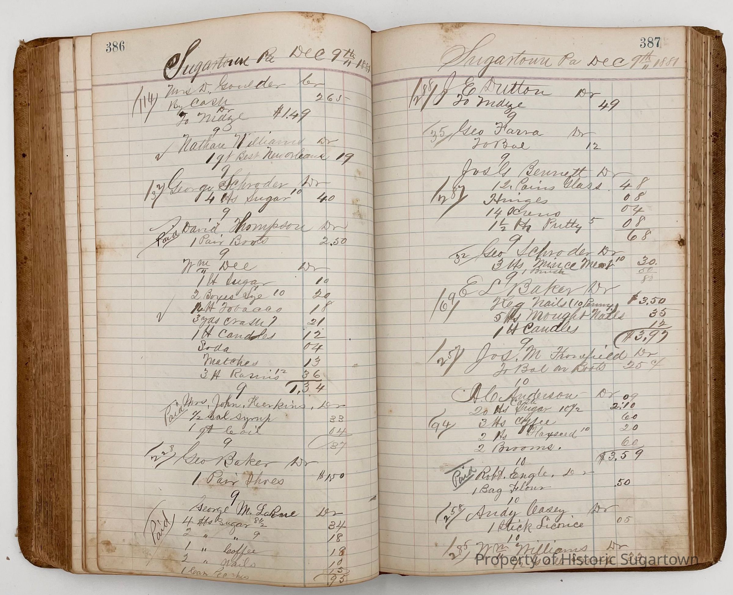 During the 1840s, Sharpless Worrall moved with his family to Sugartown in Willistown Township, Chester County, Pennsylvania, where he took over ownership of a general store and served as postmaster for 20 years. Upon his retirement, Worrall's son-in-law Hillery John took over the store, which he ran until his death. At that point it was taken over by Hillery's son, Clyde B. John, who eventually turned the business into an antiques shop. Worrall and John family papers and business records, 1830-1939, primarily consist of the business records of the general store under all three owners as well personal and family papers relating to the Worrall and John families.Context